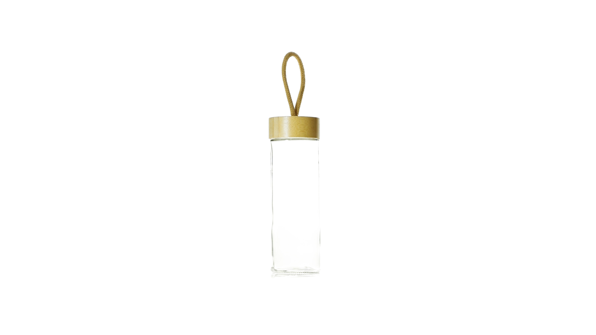 Aufbewahrungsgefäss der Linie Nature mit 420 ml Fassungsvermögen. Körper aus Glas und Schraubdeckel aus Bambus. Mit Trageschlaufe in Naturfarbe. Präsentiert in einer individuellen Designbox.