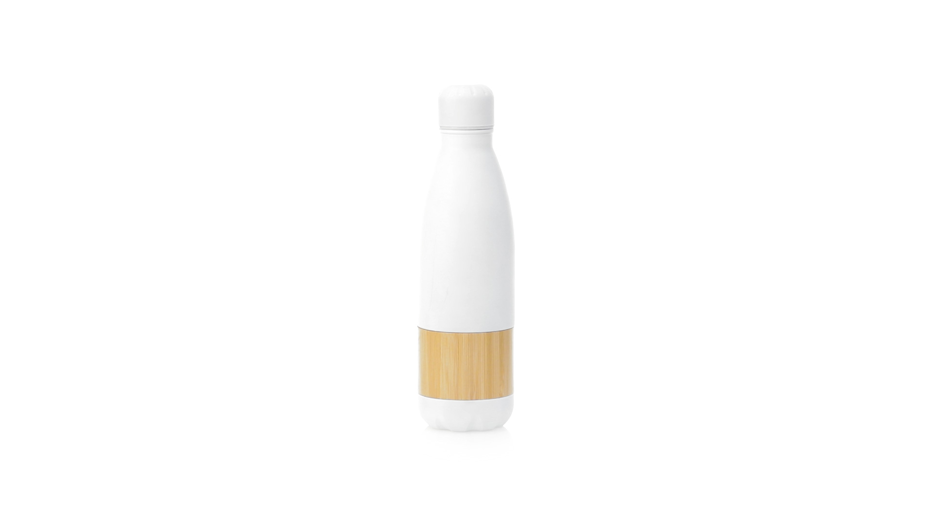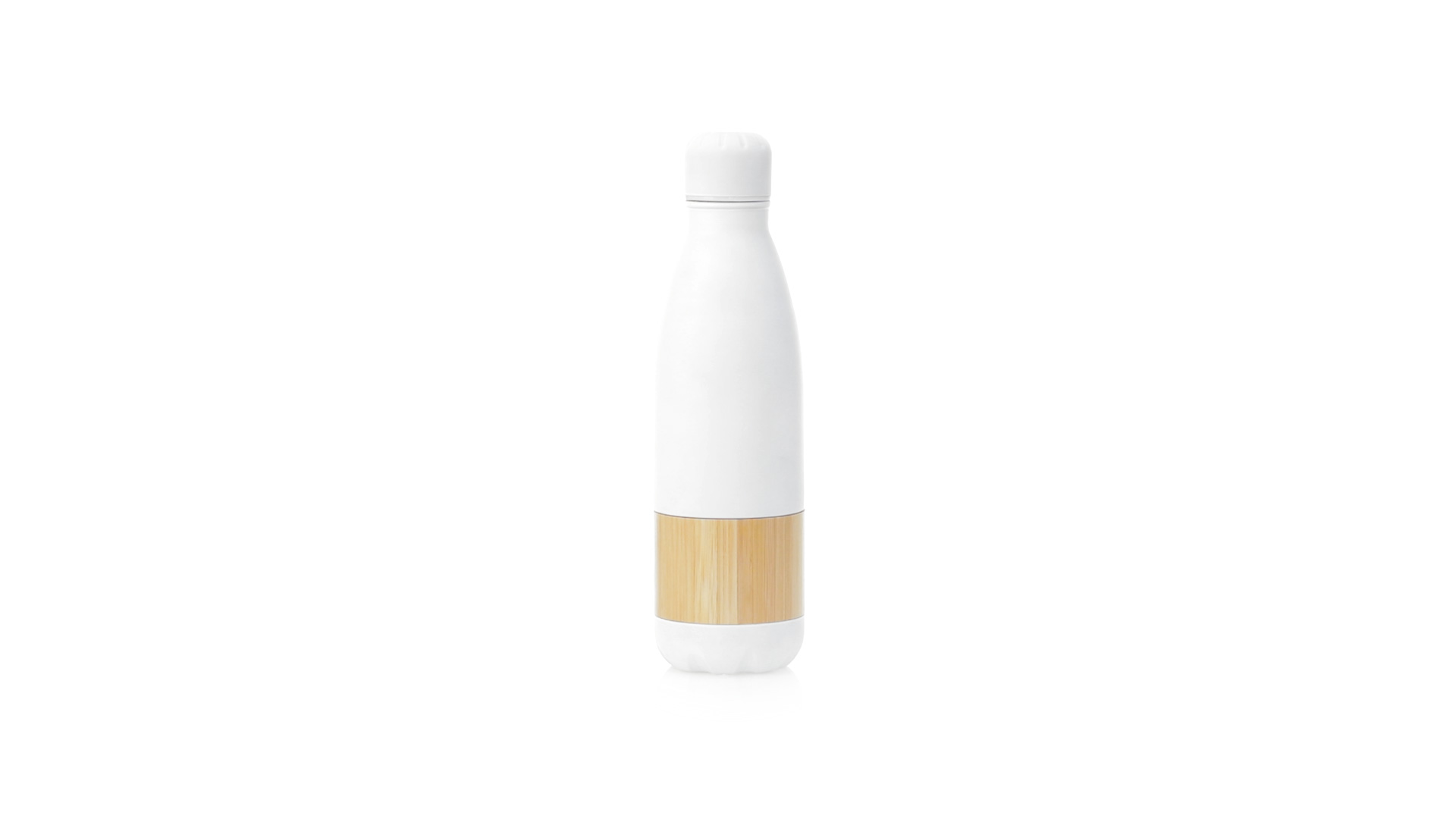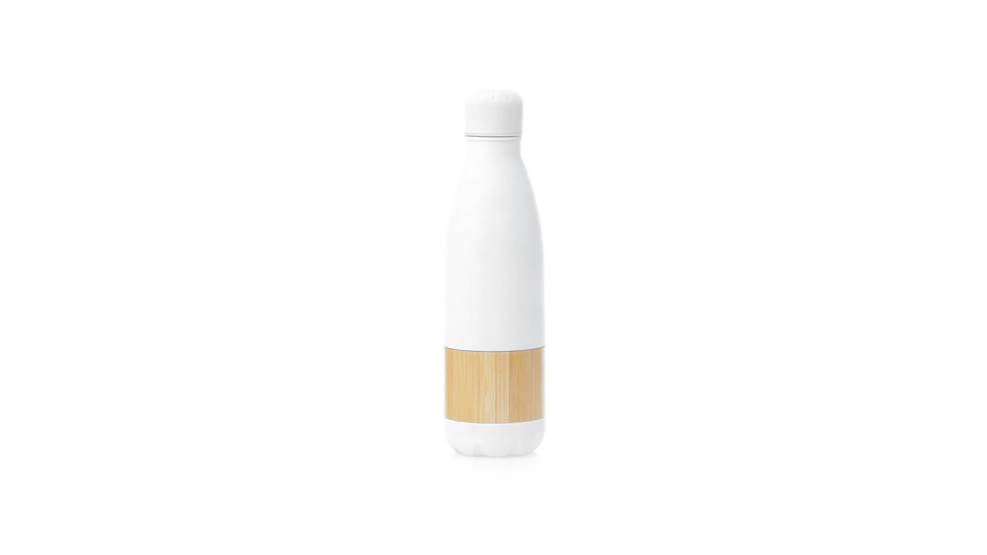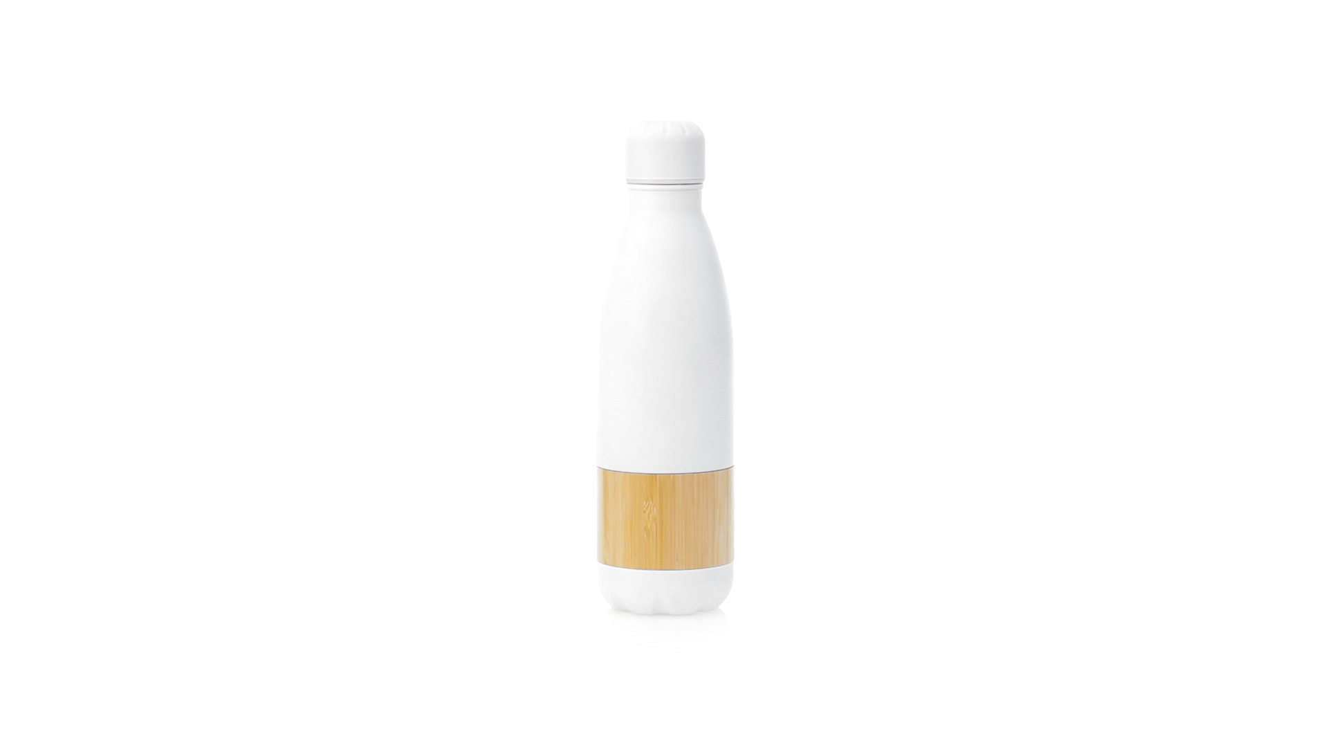Nature Line Flasche mit 750ml Fassungsvermögen. Edelstahlgehäuse in mattweisser Ausführung, mit zentralem Bambusstreifen. Mit passendem Sicherheitsschraubverschluss und präsentiert in einer attraktiven Öko-Design-Box.