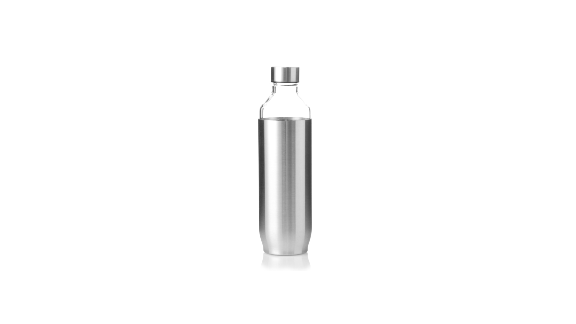 Hochwertige Designflasche, Inhalt 850 ml. Hergestellt aus Borosilikatglas, das aussergewöhnliche Festigkeit, Ästhetik und Haltbarkeit bietet, seine Lebensdauer verlängert und unzählige Male wiederverwendet werden kann. Gehäusekappe und Deckel aus Edelstahl. Präsentiert in einer schönen Designbox.
