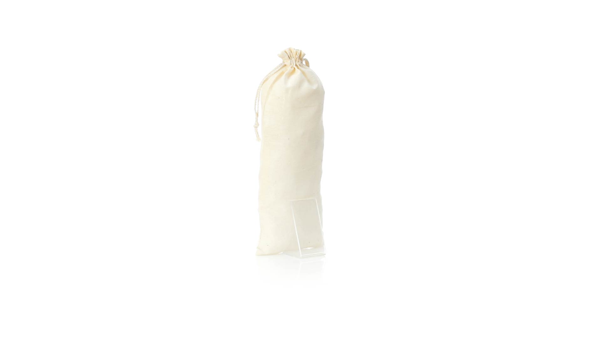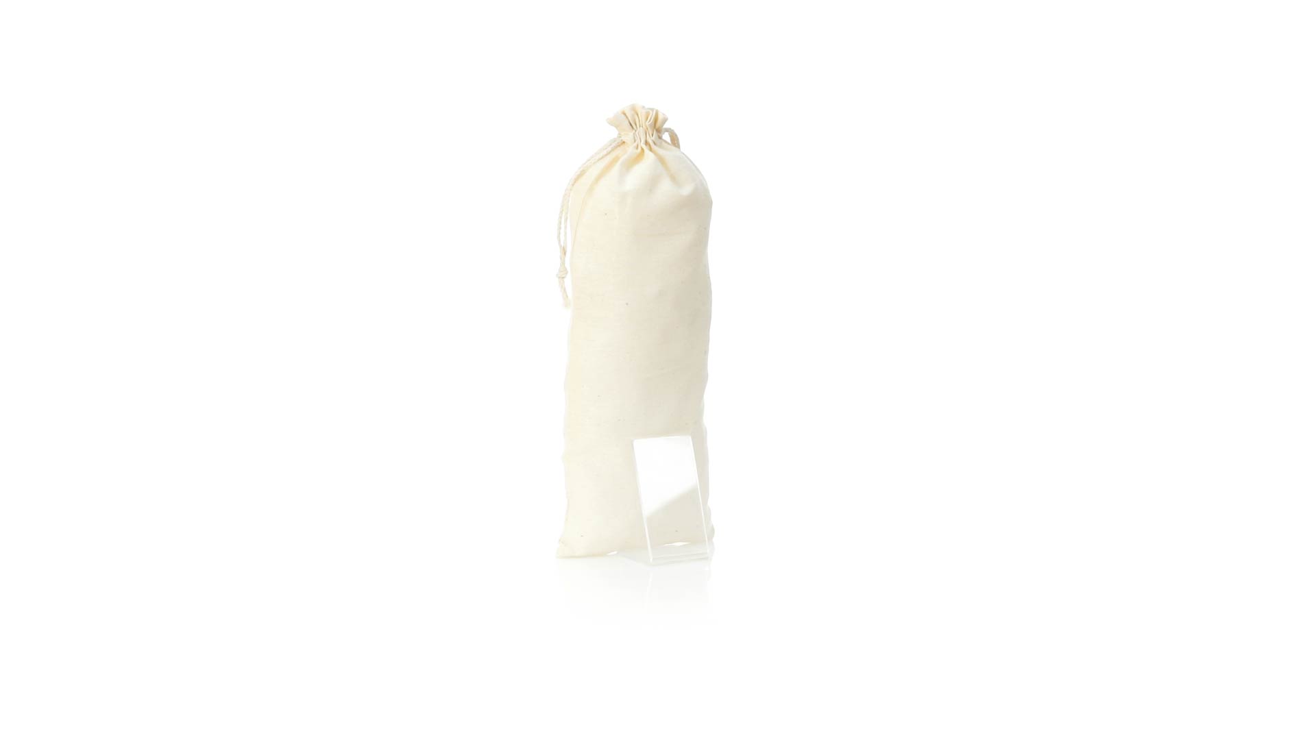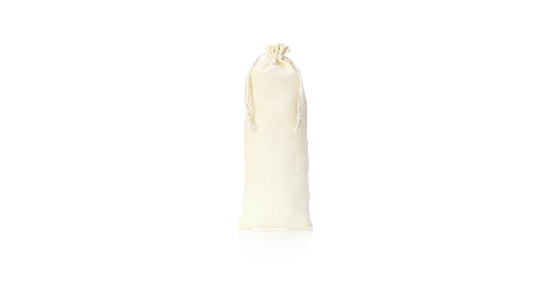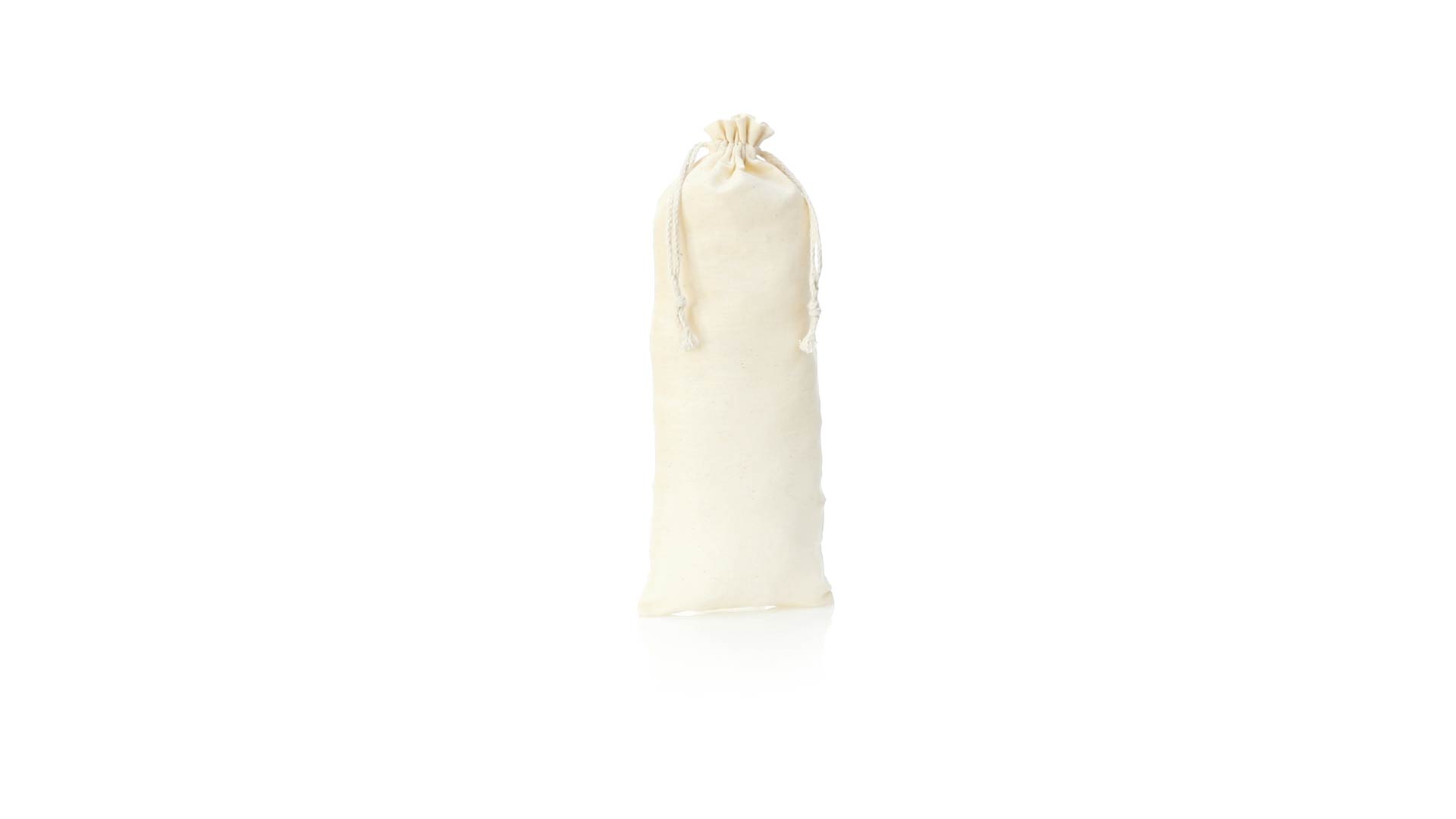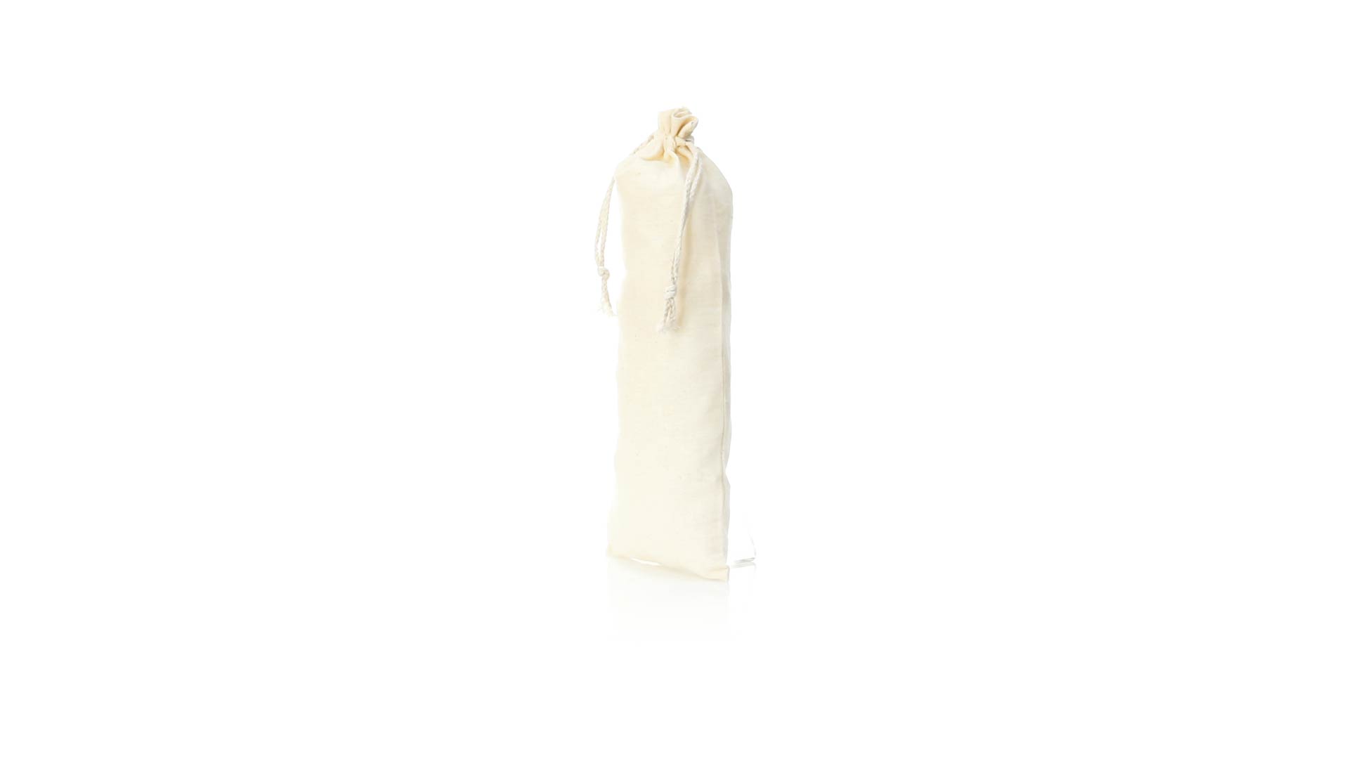 Tasche aus der Naturlinie, aus Baumwolle 105g/m2.Grösse 12x33 cm, mit genähter Verarbeitung und selbstschliessenden Schnüren aus Baumwolle. Speziell für die Verpackung von Flaschen und Thermoskannen hergestellt.