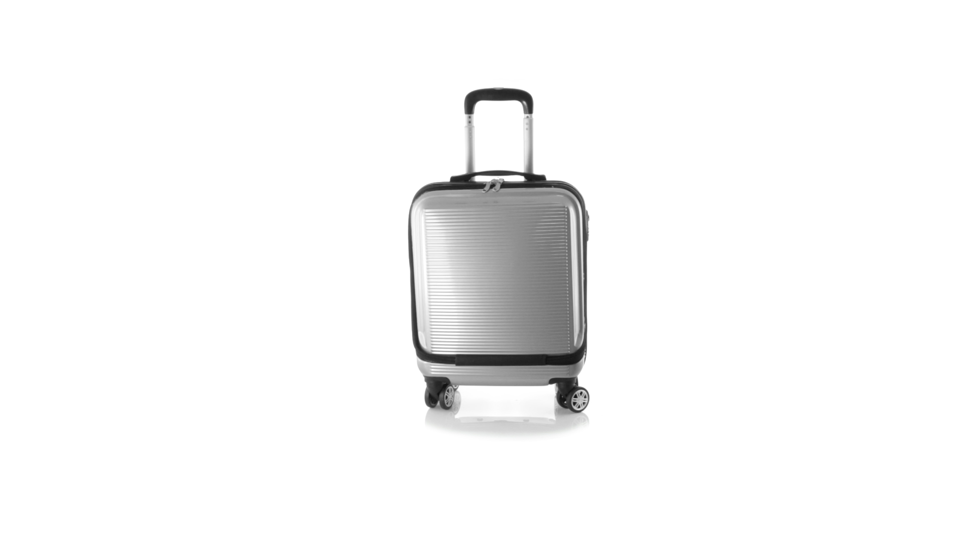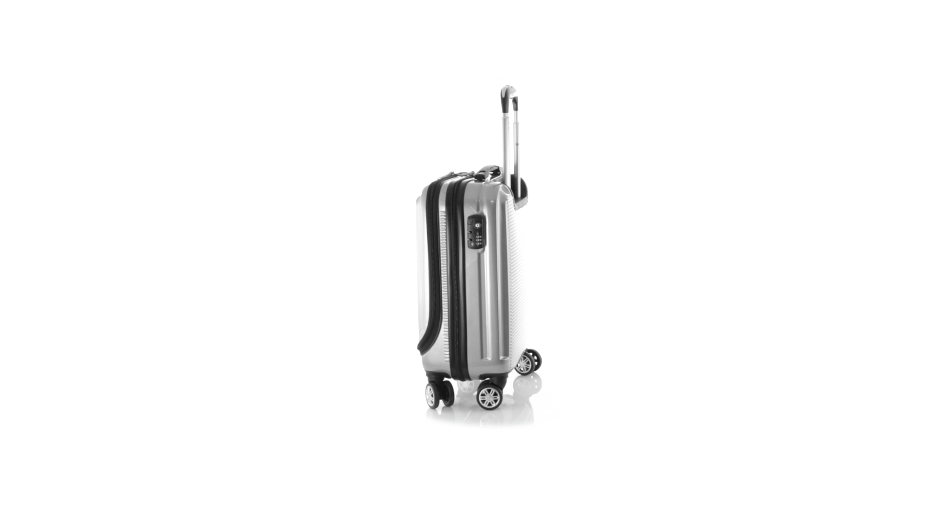 Stabiler Business-Trolley aus robustem Material in silberner Ausführung. Vollständig zu öffnen, mit vier 360-Grad-Rollen und Sicherheitsschloss. Schloss nach der Norm der TSA (Transportation Security Administration), die es den Zollbehörden dank eines speziellen Schlüssels ermöglicht, den Inhalt des Gepäcks zu kontrollieren, ohne das Schloss aufbrechen zu müssen. Hauptfach mit Doppelreissverschluss. Innen gefüttert und mit gepolstertem Fach für Laptops von bis zu 17 Zoll.