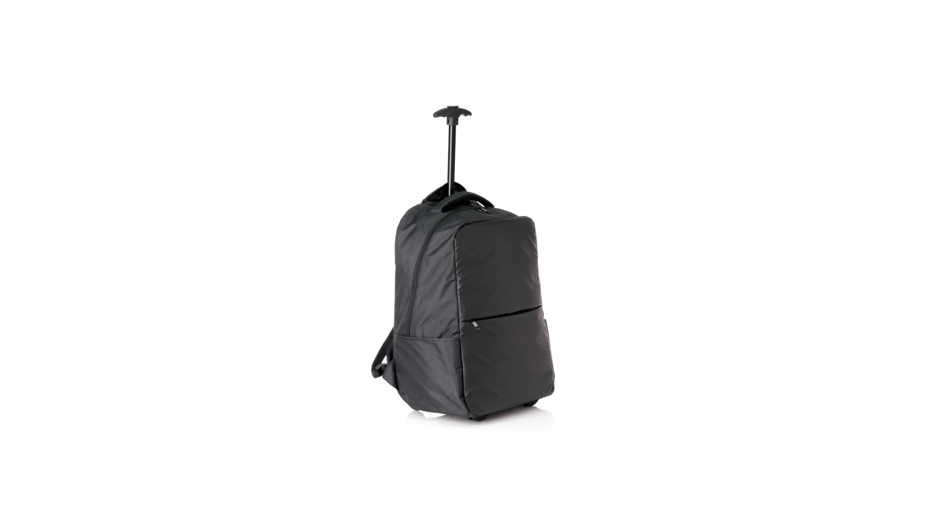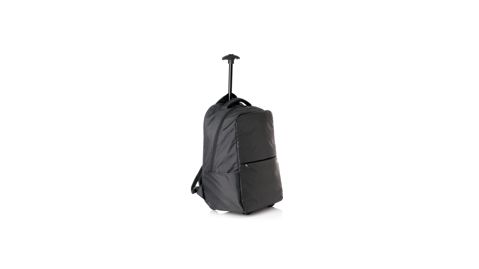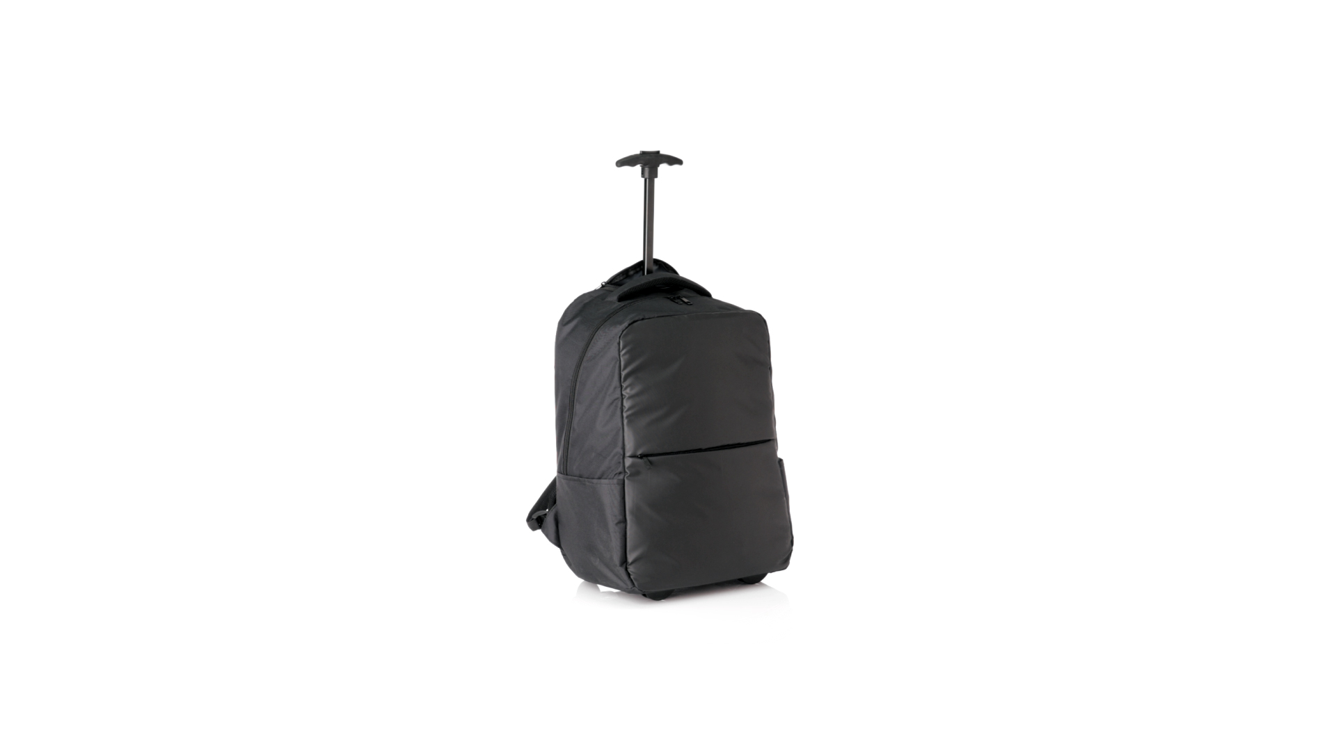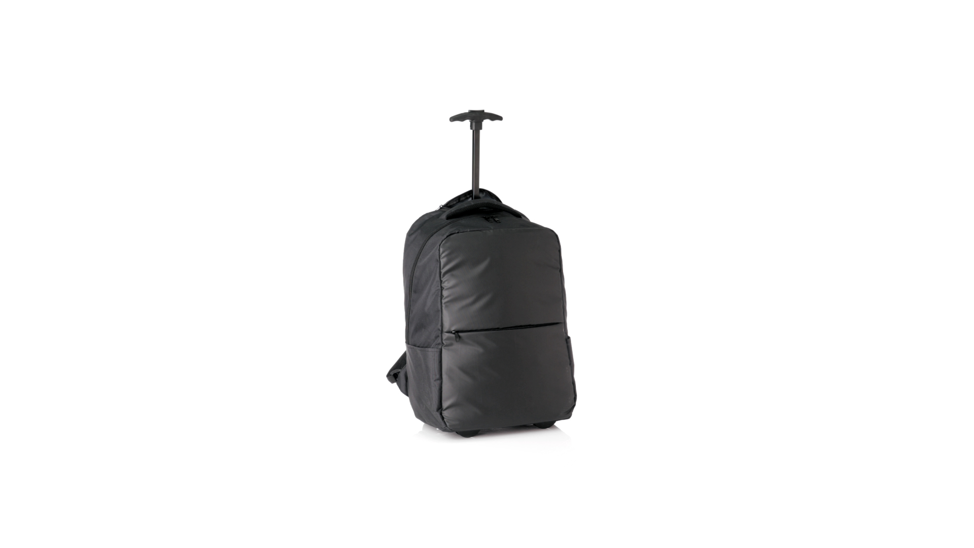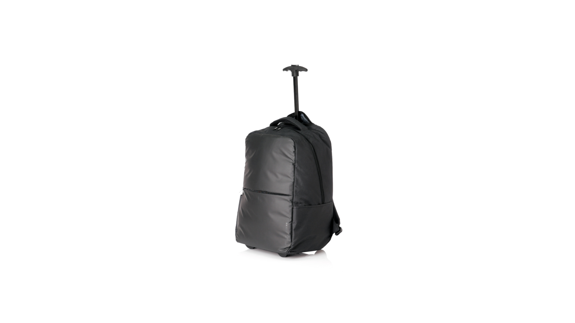 Antonio Miro Trolley-Rucksack, aus strapazierfähigem 300D-Polyester mit schwarzer Oberfläche. Hauptfach und Aussentasche mit passendem Reissverschluss, gepolstertem Tragegriff und Seitentaschen Markenlogo auf einer Seite. Gepolstertes Innenfach für Laptops bis zu 15" und Tablet-Tasche bis zu 11". Gepolsterte, verstellbare Schultergurte.