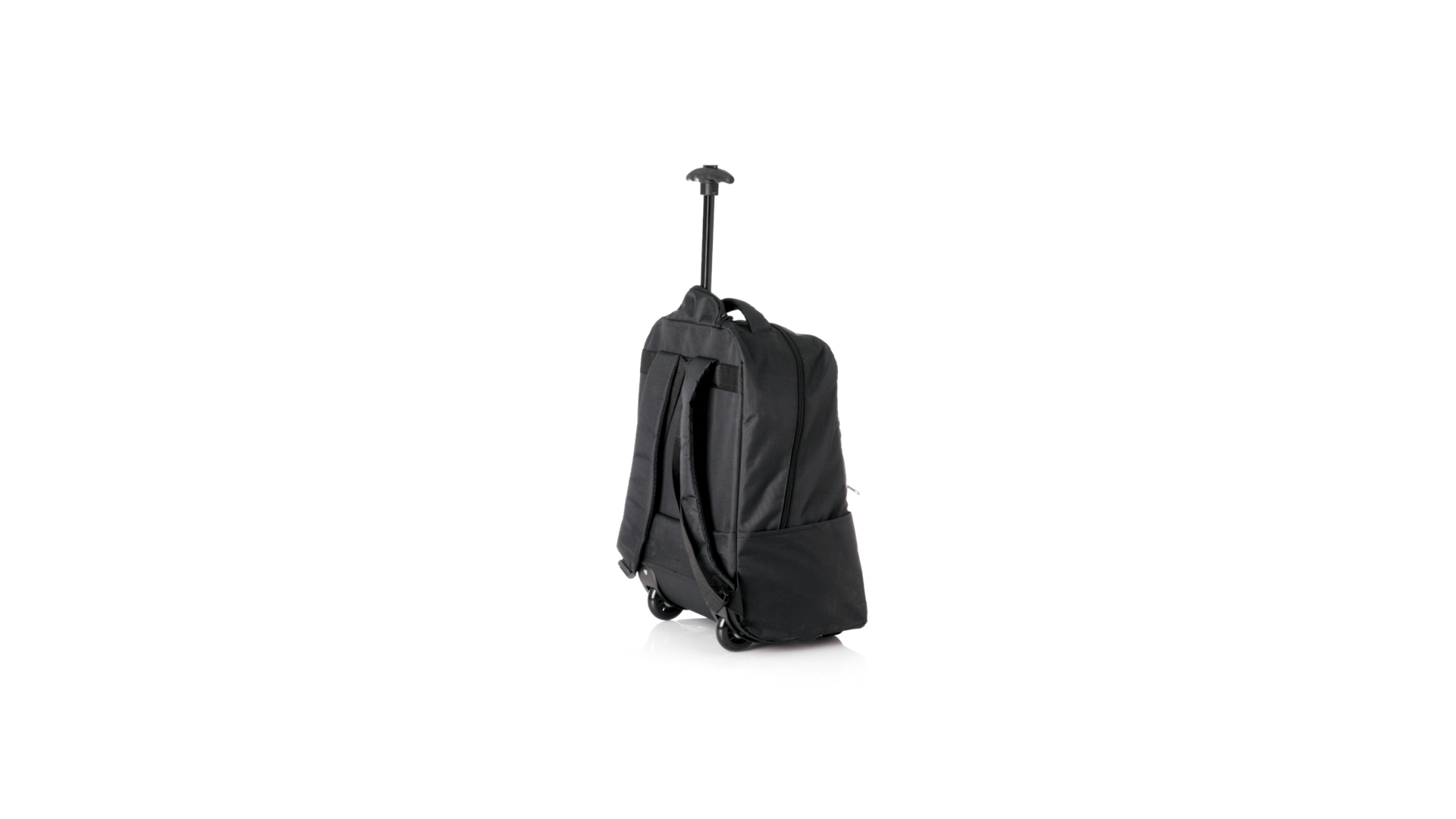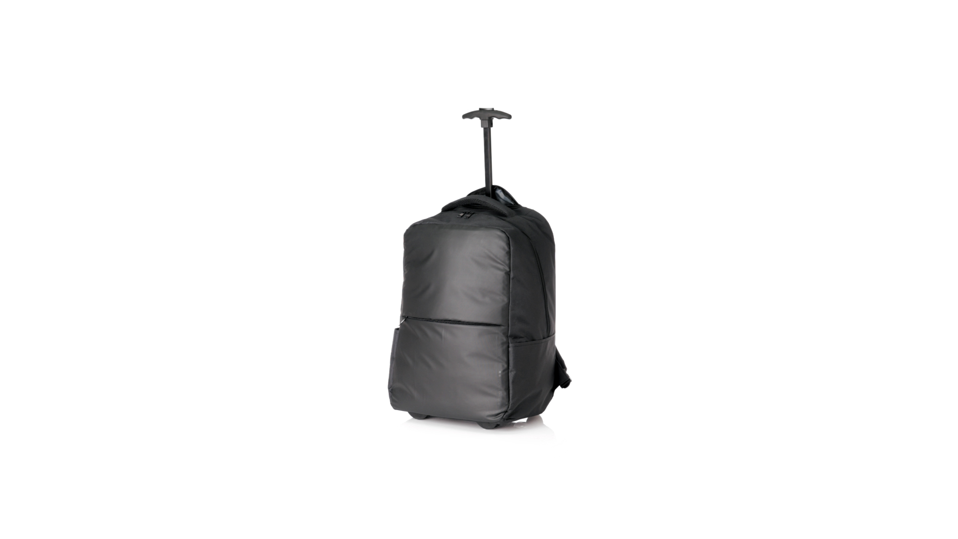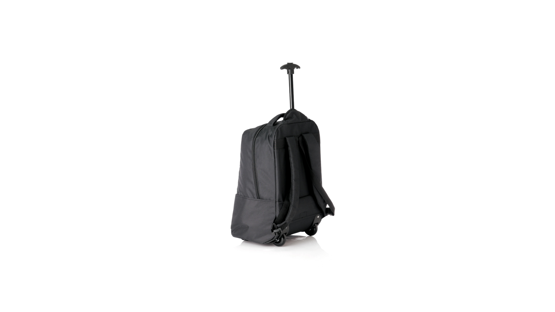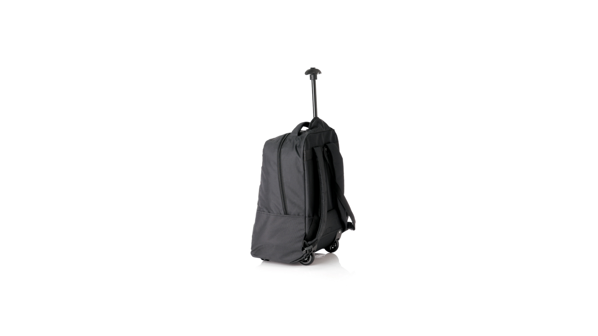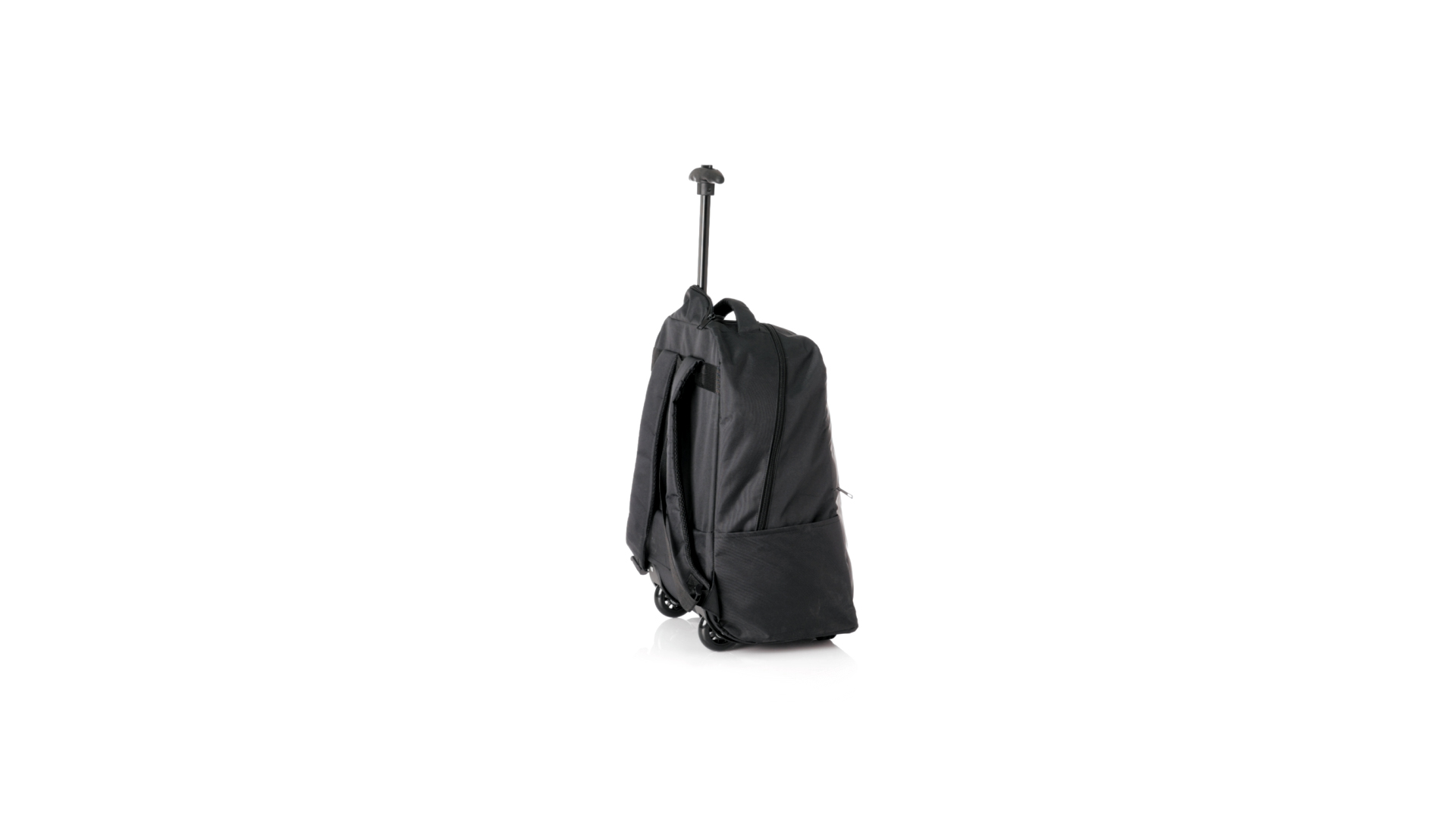 Antonio Miro Trolley-Rucksack, aus strapazierfähigem 300D-Polyester mit schwarzer Oberfläche. Hauptfach und Aussentasche mit passendem Reissverschluss, gepolstertem Tragegriff und Seitentaschen Markenlogo auf einer Seite. Gepolstertes Innenfach für Laptops bis zu 15" und Tablet-Tasche bis zu 11". Gepolsterte, verstellbare Schultergurte.
