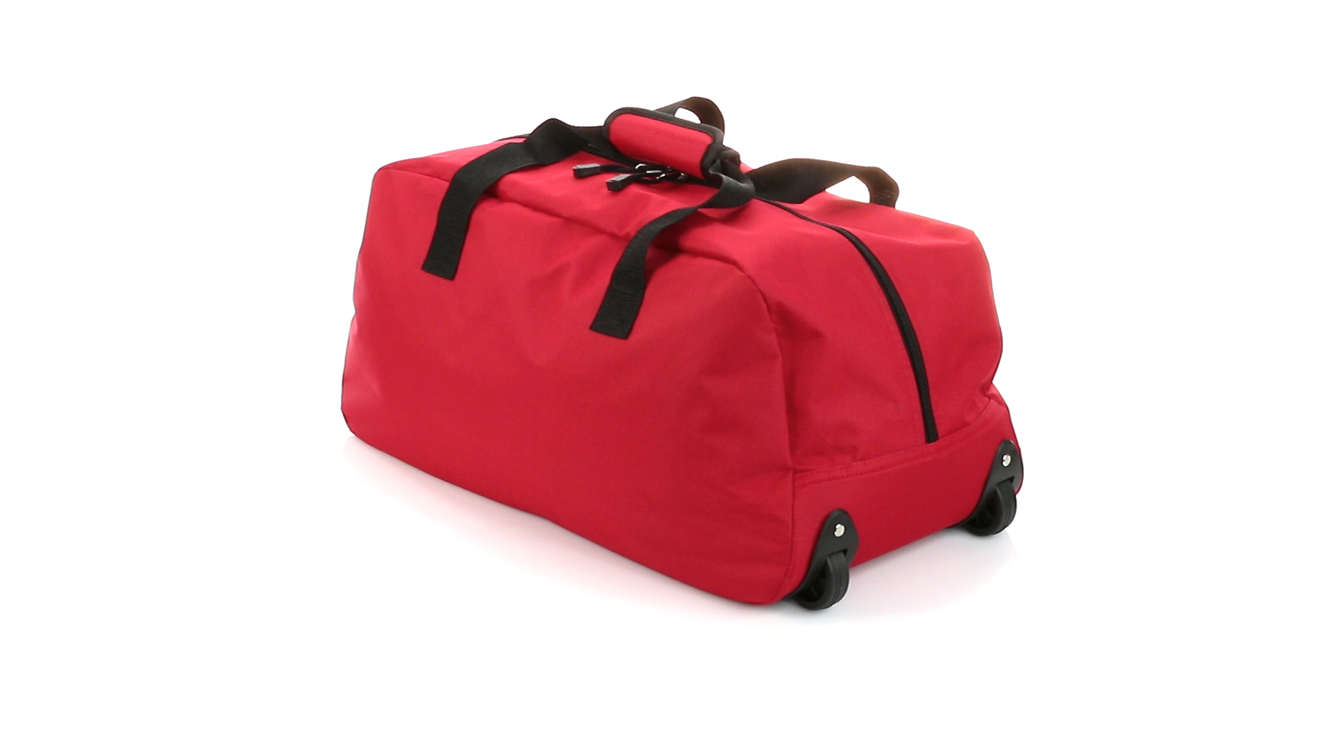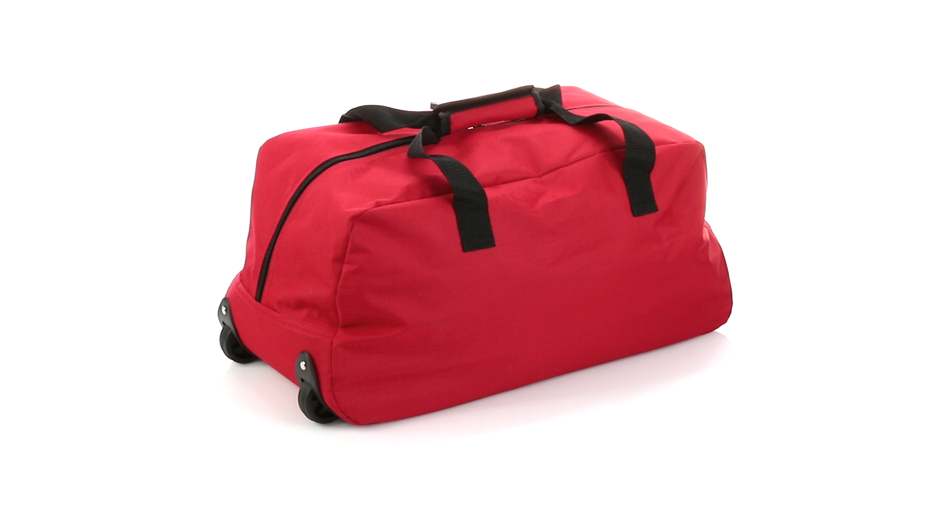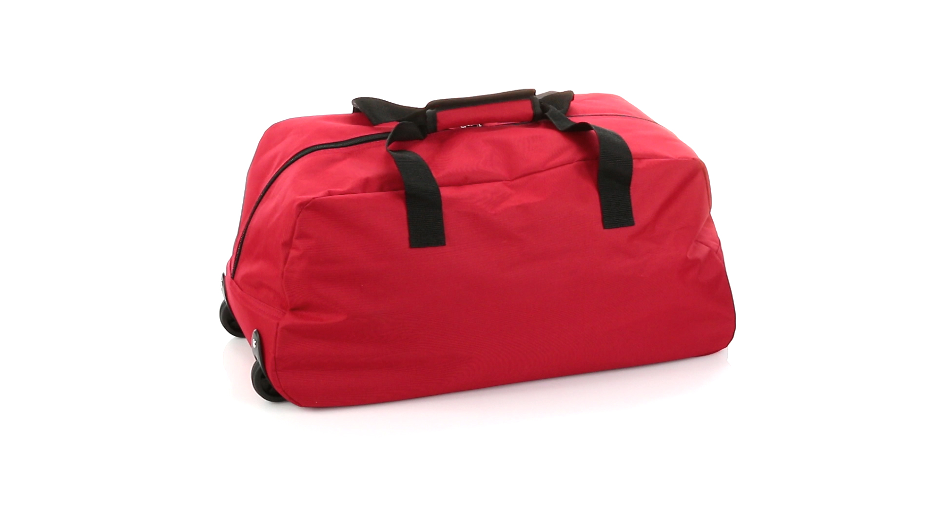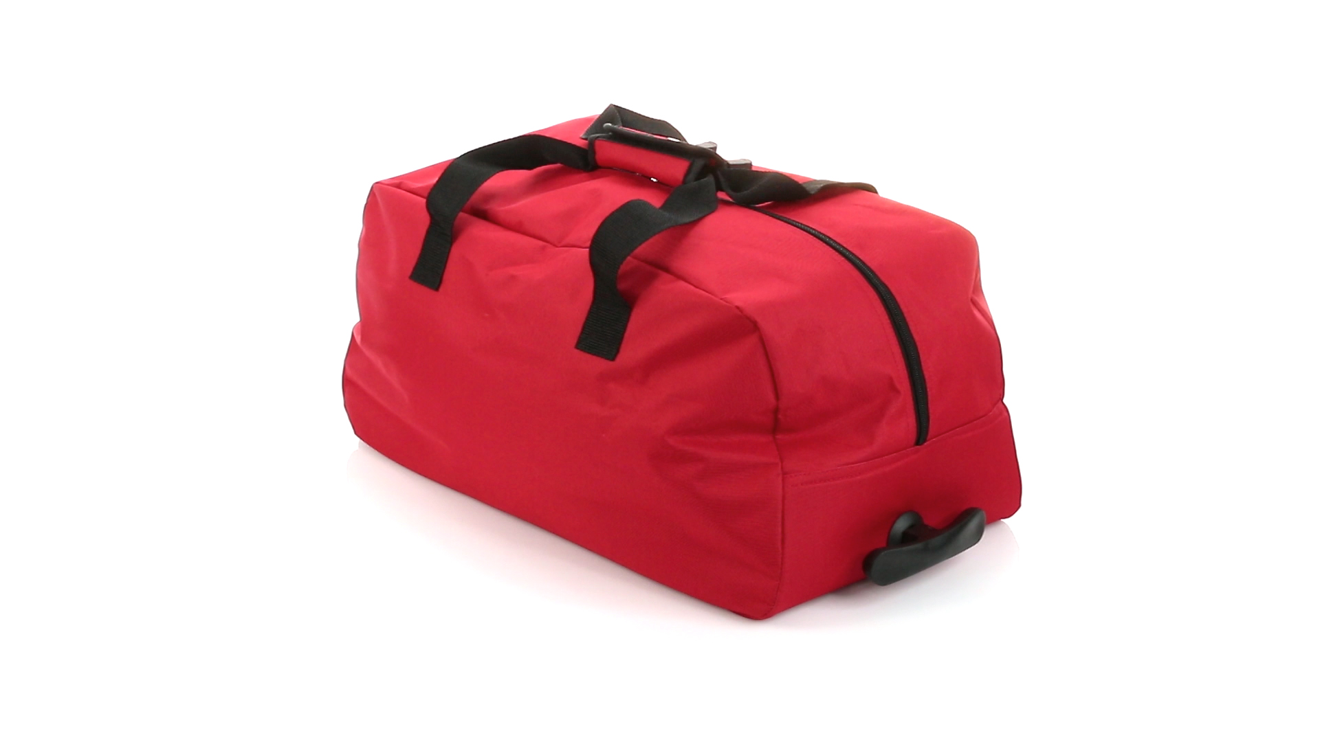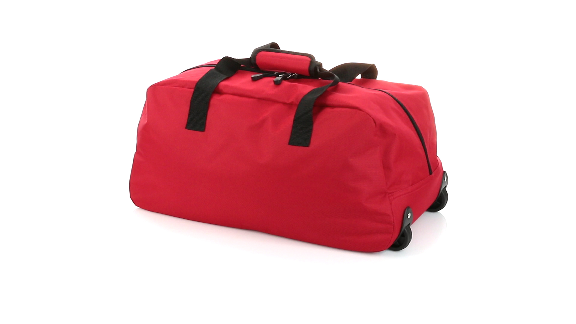 Trolley-Tasche mit 2 Rollen aus 600D Polyester in verschiedenen lebendigen Farben. Reissverschluss-Hauptfach mit doppeltem Zipper mit Zugbändern für einfaches Öffnen. Tragegriffe aus robustem Nylon, verstärkt mit farblich passendem Klettverschluss. Interieur mit farblich passender Fütterung und stabilem Boden.
