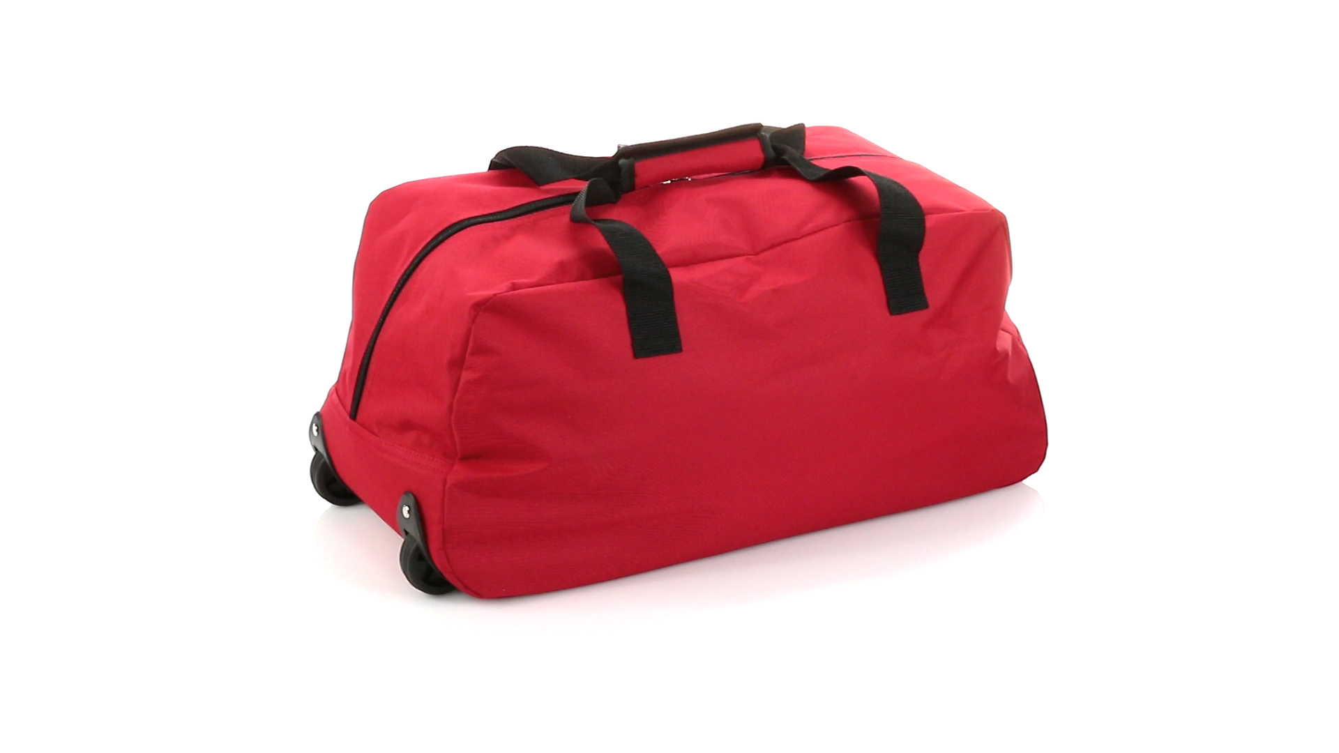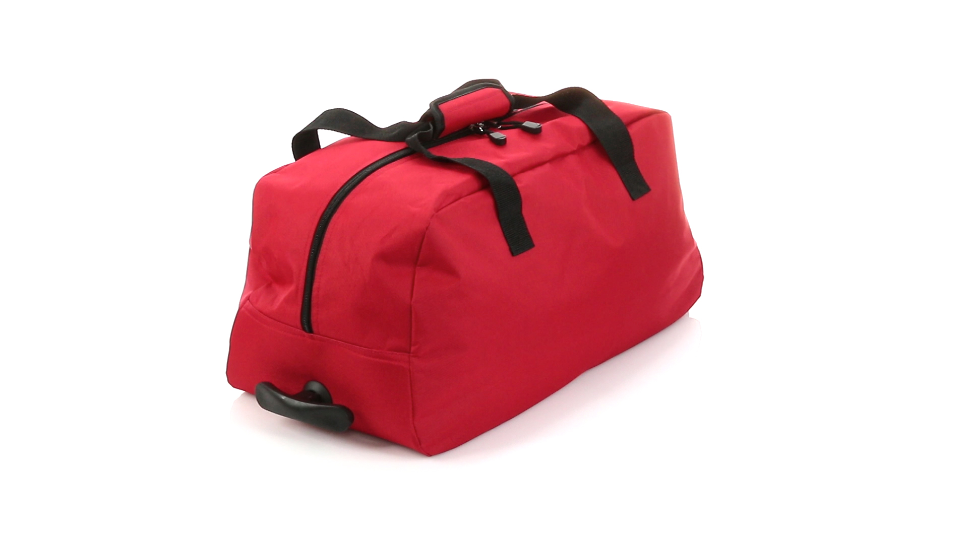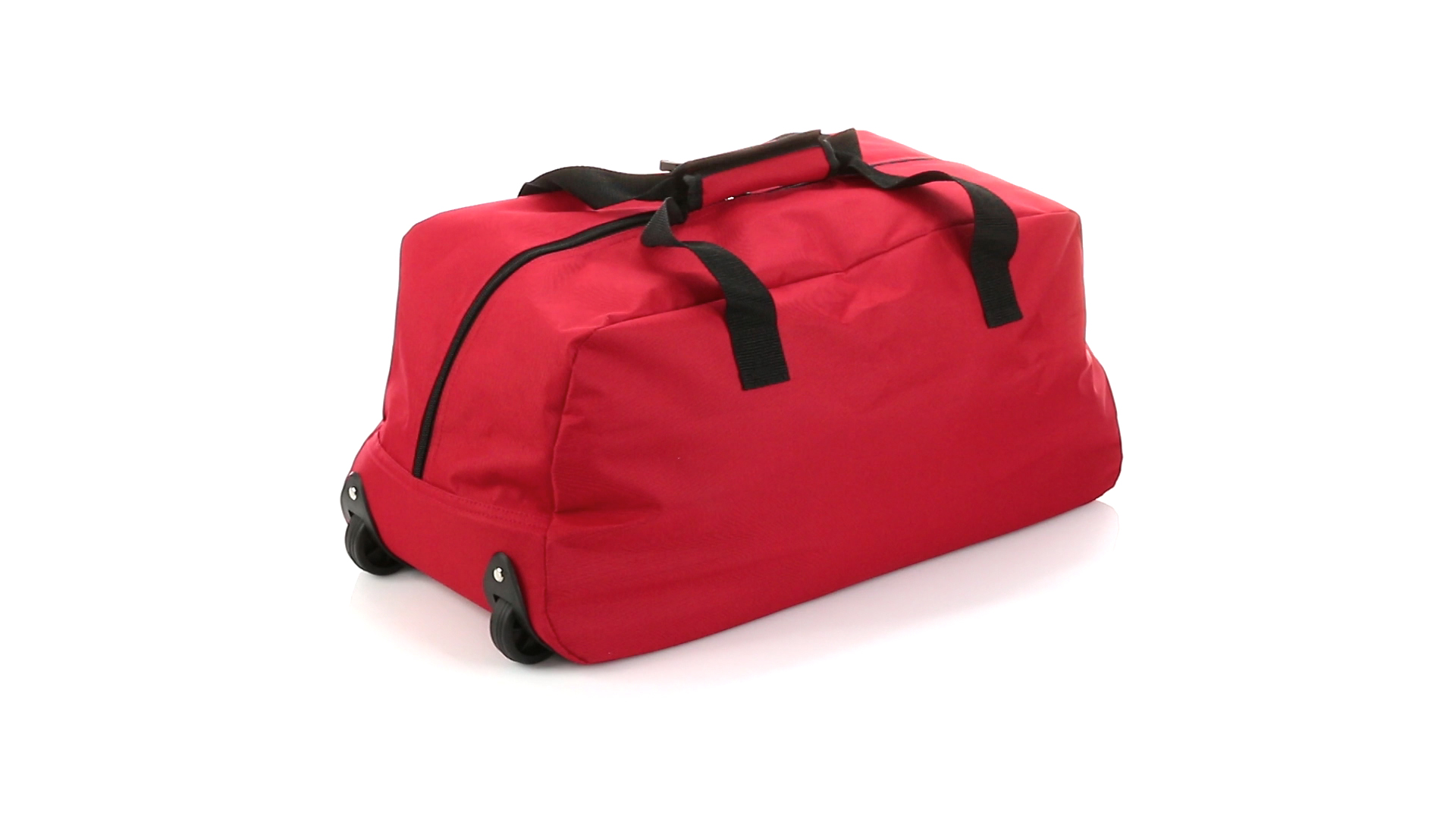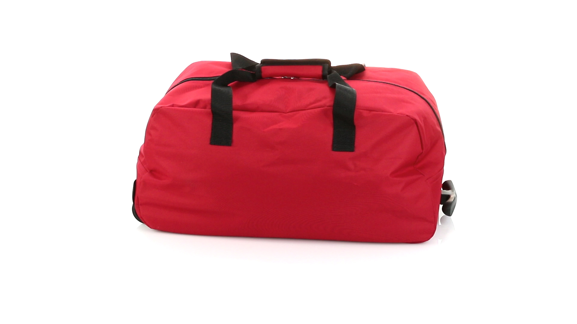 Trolley-Tasche mit 2 Rollen aus 600D Polyester in verschiedenen lebendigen Farben. Reissverschluss-Hauptfach mit doppeltem Zipper mit Zugbändern für einfaches Öffnen. Tragegriffe aus robustem Nylon, verstärkt mit farblich passendem Klettverschluss. Interieur mit farblich passender Fütterung und stabilem Boden.