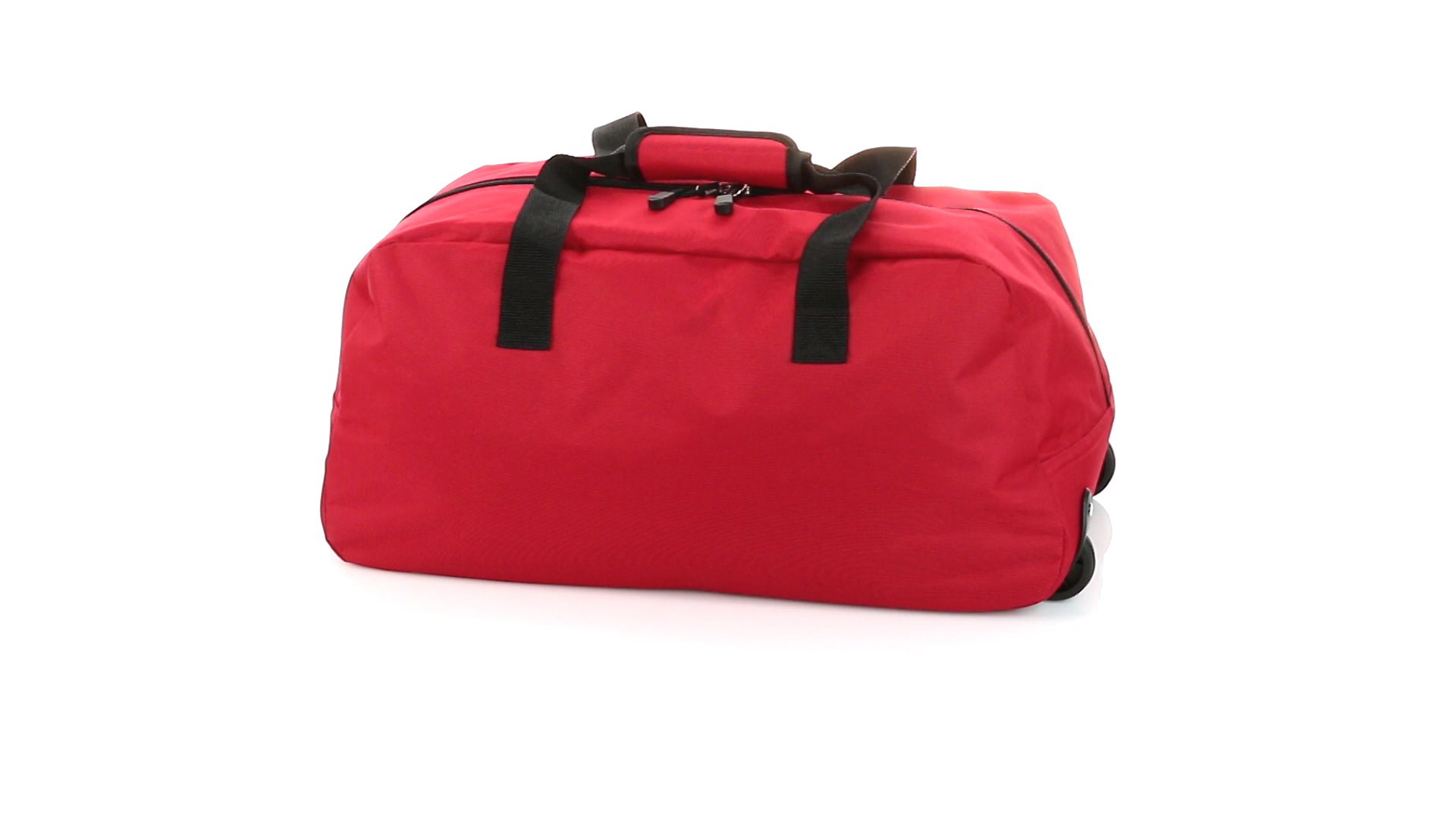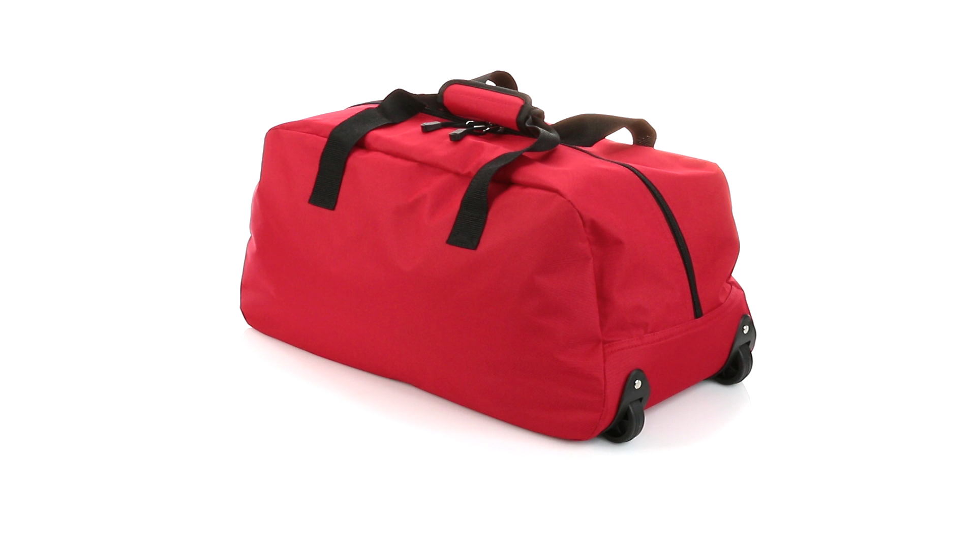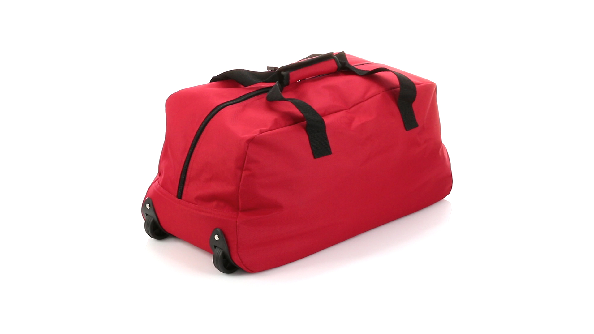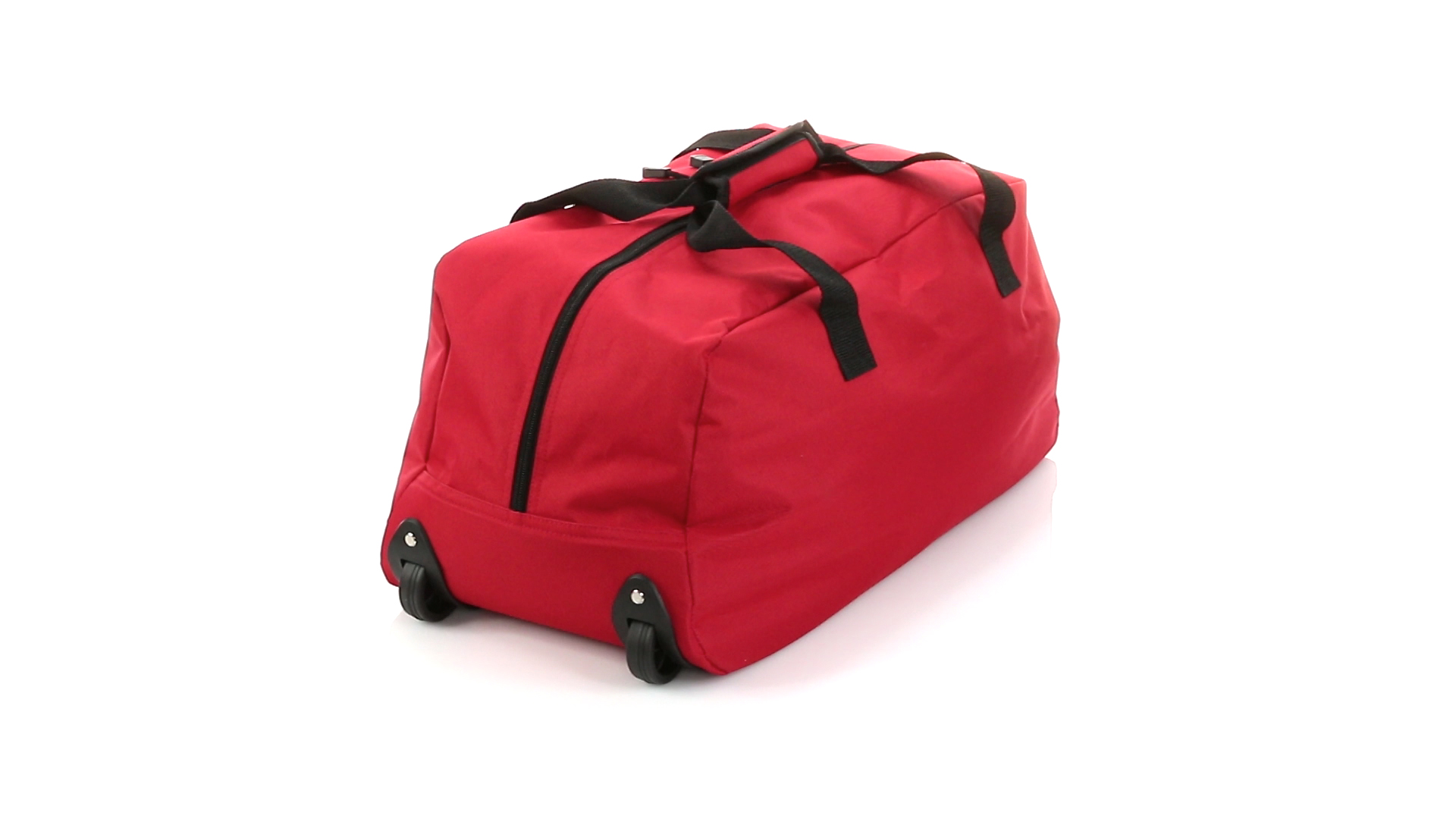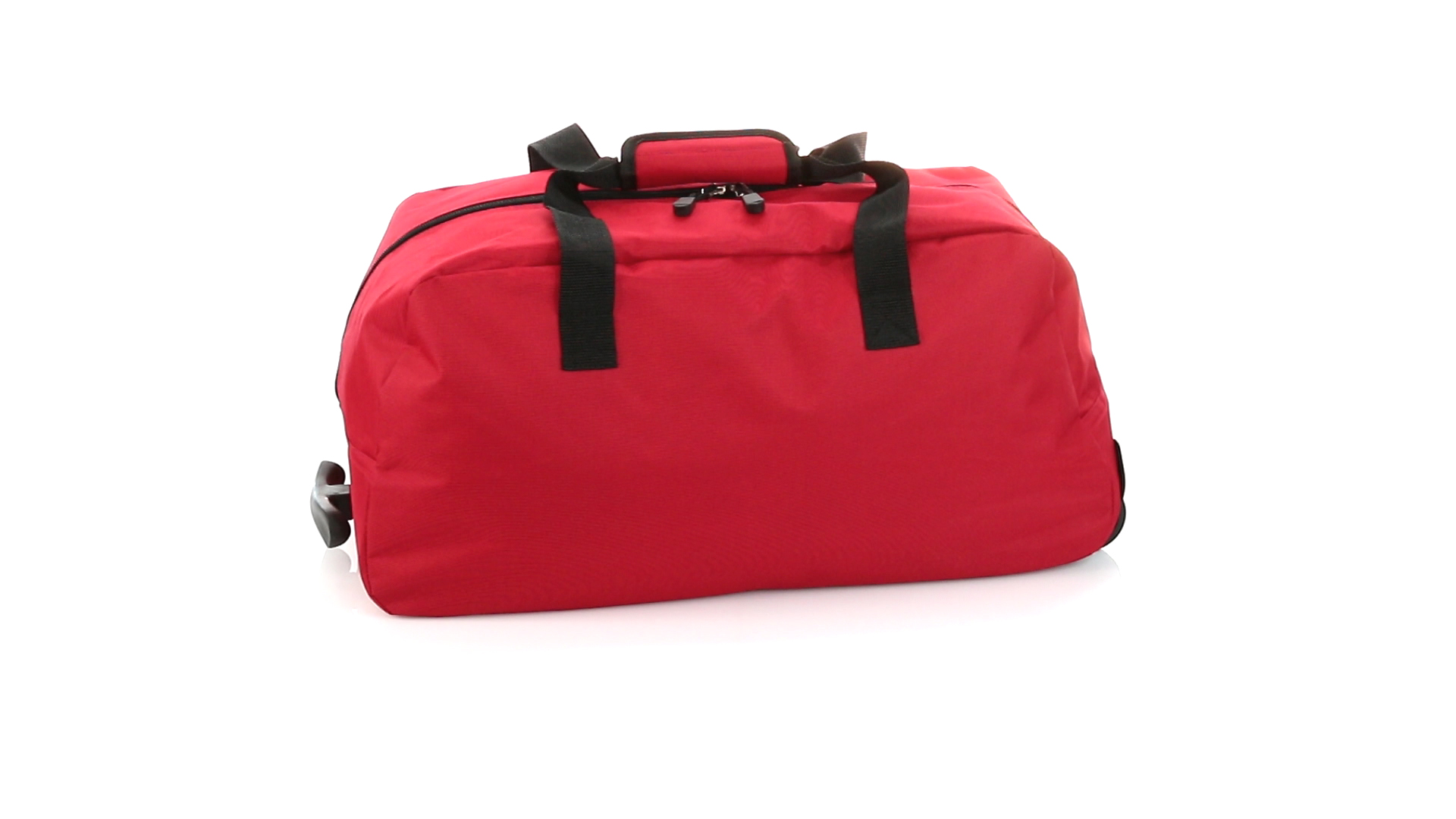 Trolley-Tasche mit 2 Rollen aus 600D Polyester in verschiedenen lebendigen Farben. Reissverschluss-Hauptfach mit doppeltem Zipper mit Zugbändern für einfaches Öffnen. Tragegriffe aus robustem Nylon, verstärkt mit farblich passendem Klettverschluss. Interieur mit farblich passender Fütterung und stabilem Boden.