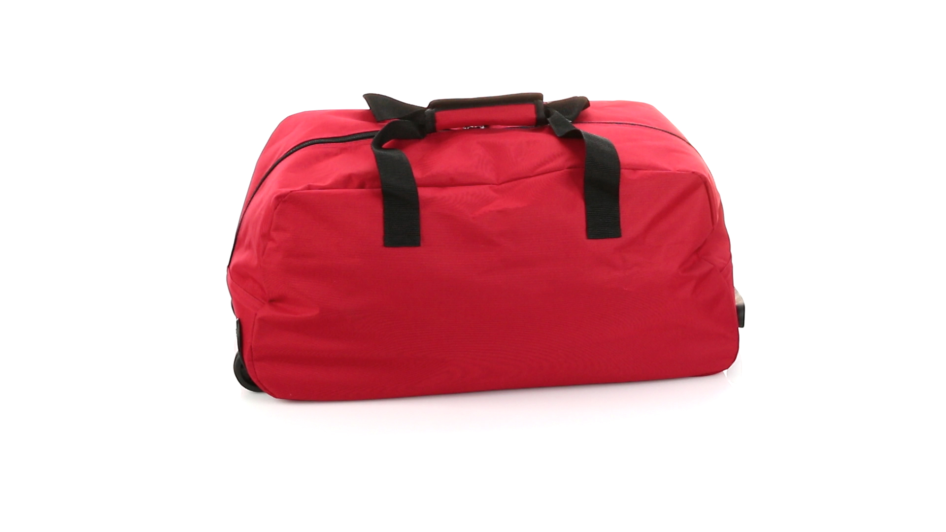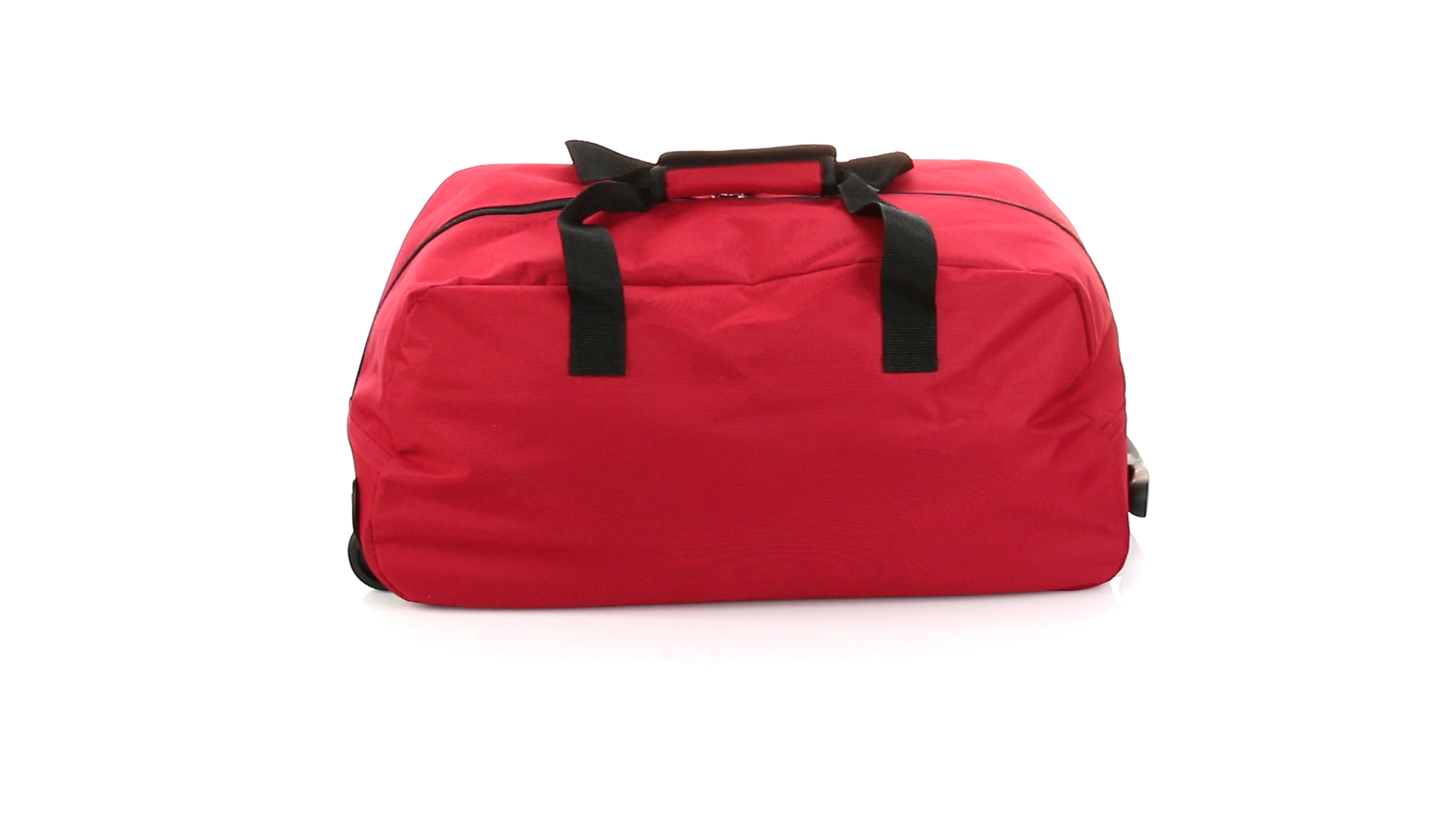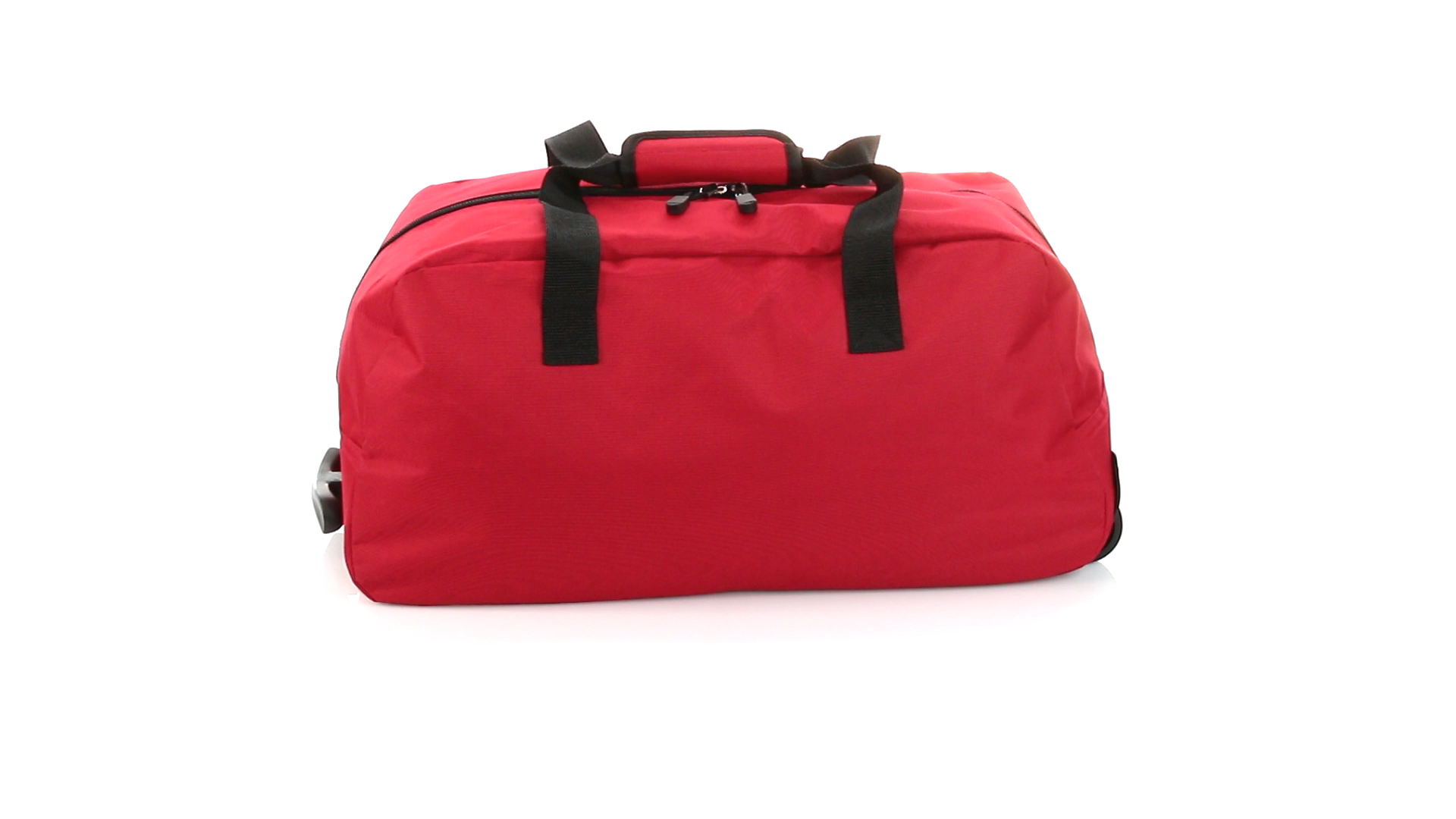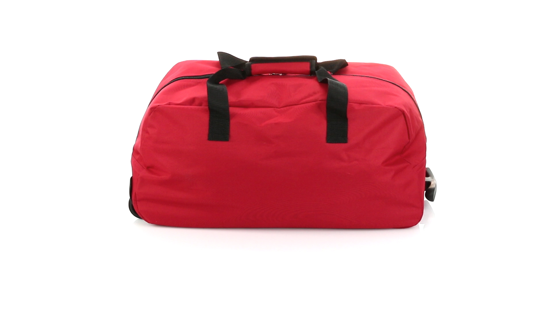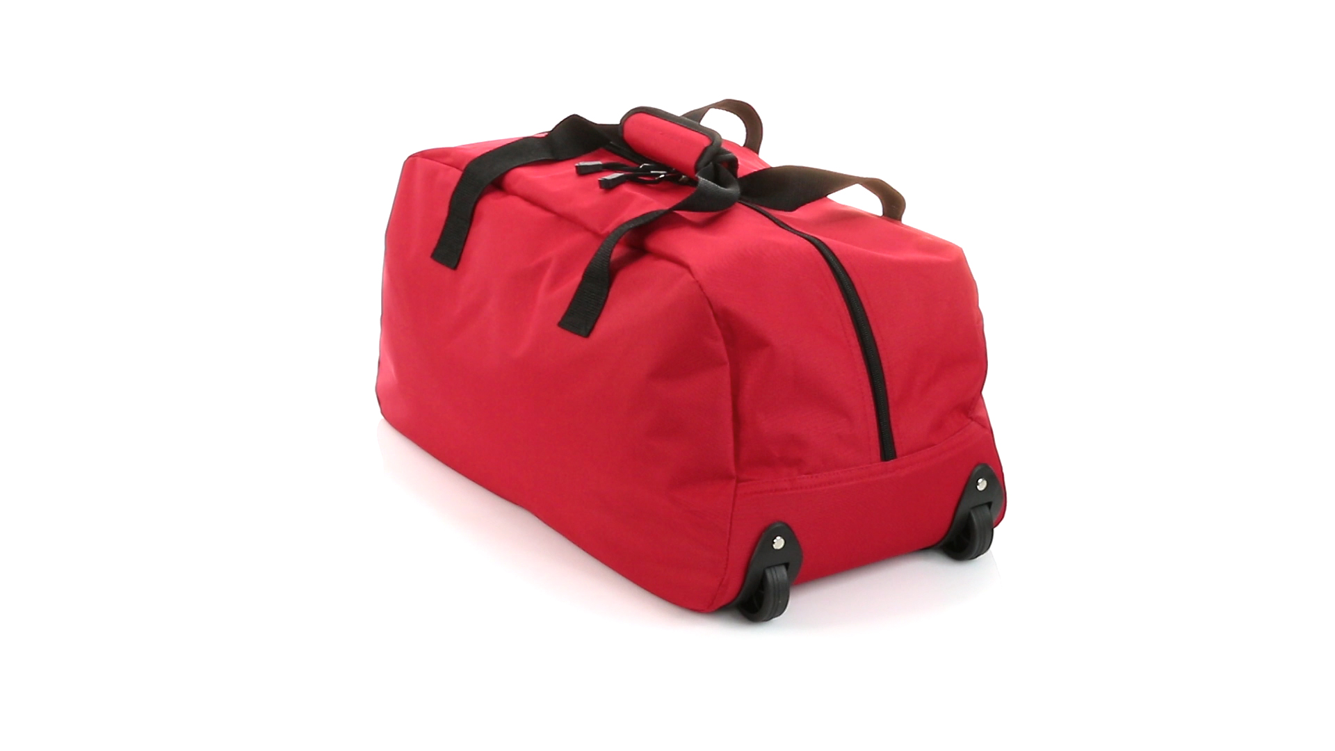 Trolley-Tasche mit 2 Rollen aus 600D Polyester in verschiedenen lebendigen Farben. Reissverschluss-Hauptfach mit doppeltem Zipper mit Zugbändern für einfaches Öffnen. Tragegriffe aus robustem Nylon, verstärkt mit farblich passendem Klettverschluss. Interieur mit farblich passender Fütterung und stabilem Boden.