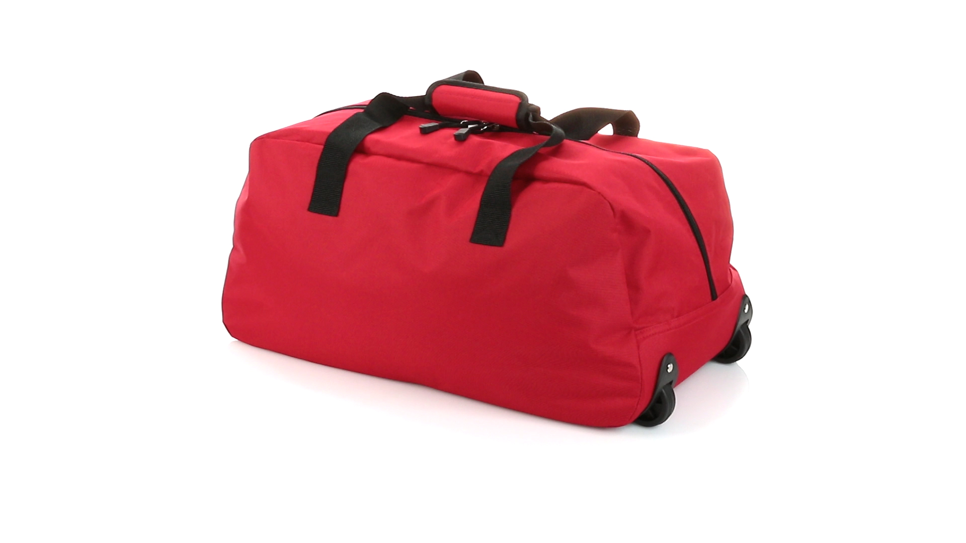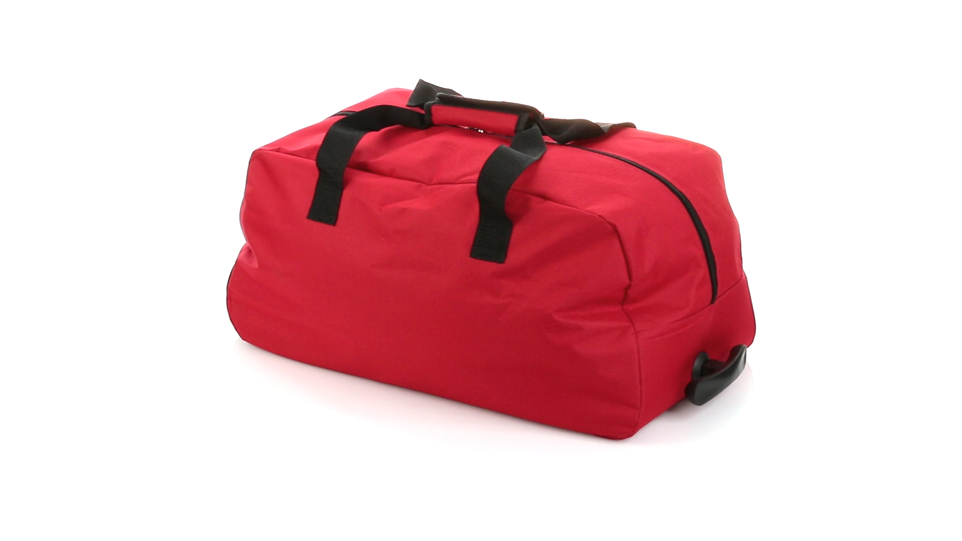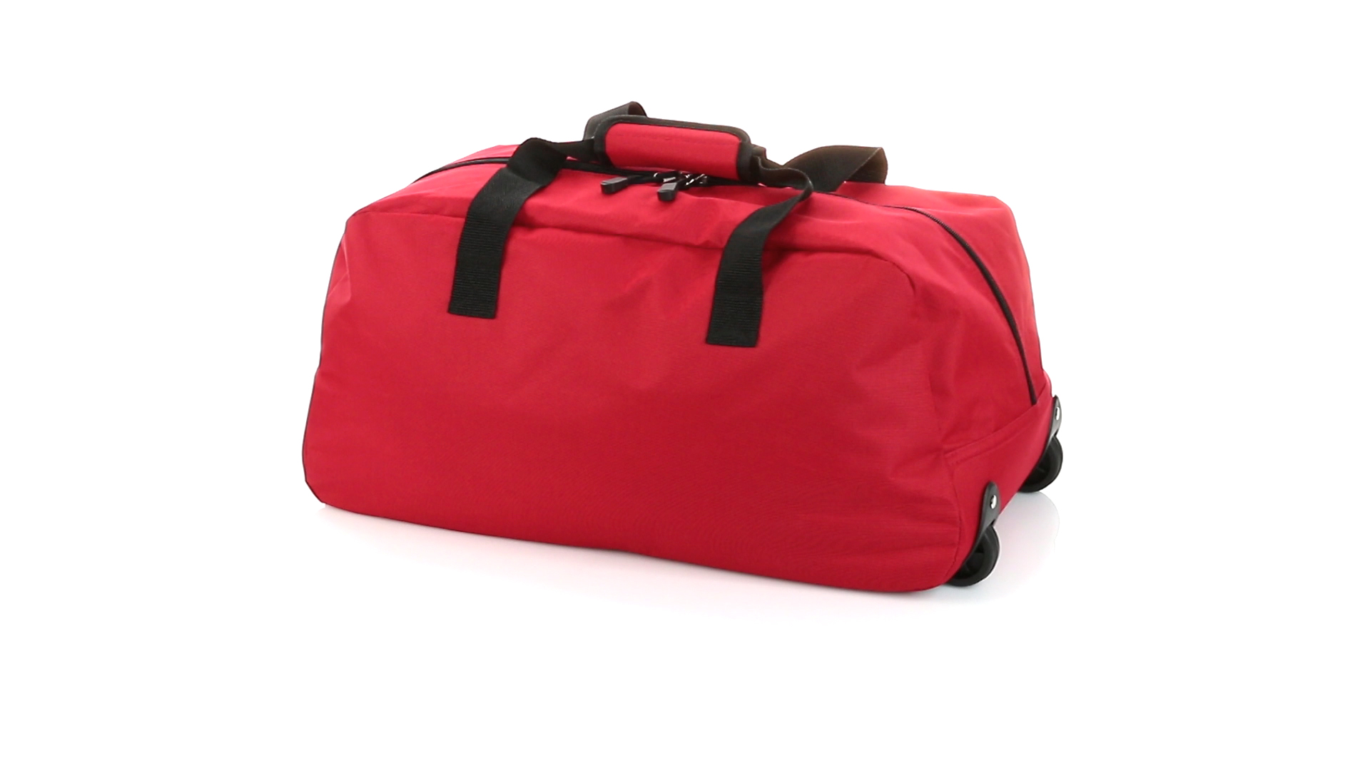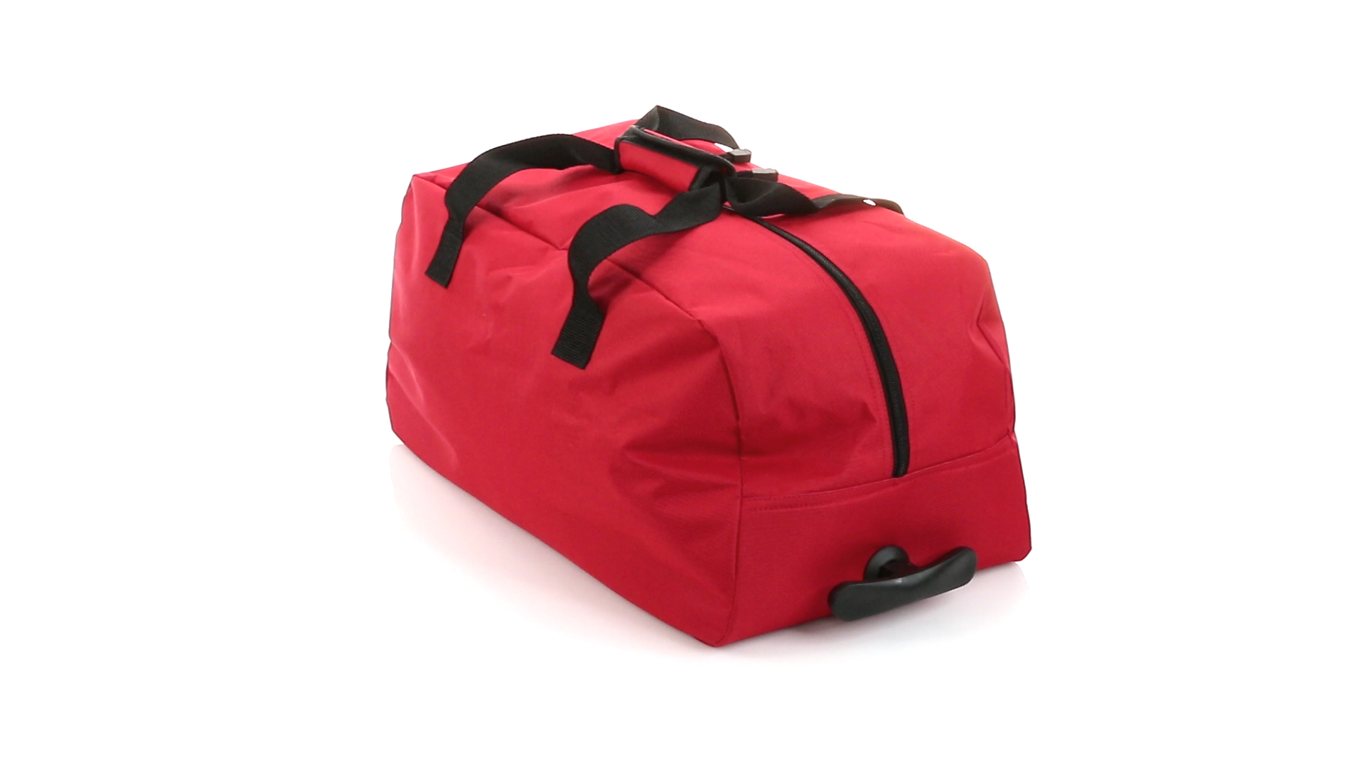 Trolley-Tasche mit 2 Rollen aus 600D Polyester in verschiedenen lebendigen Farben. Reissverschluss-Hauptfach mit doppeltem Zipper mit Zugbändern für einfaches Öffnen. Tragegriffe aus robustem Nylon, verstärkt mit farblich passendem Klettverschluss. Interieur mit farblich passender Fütterung und stabilem Boden.