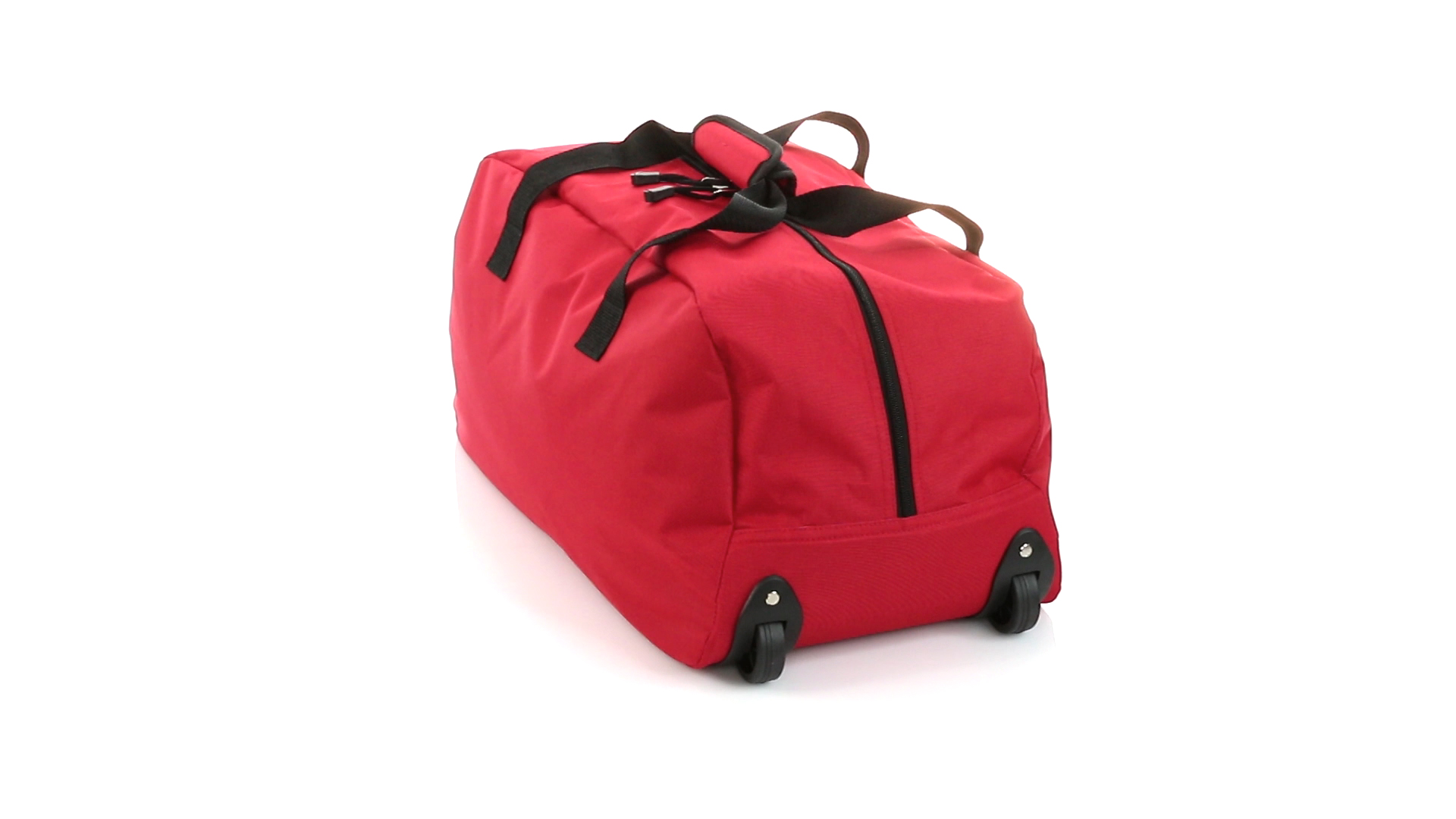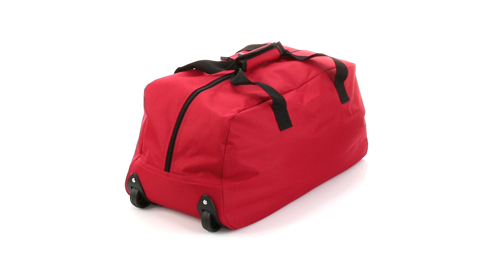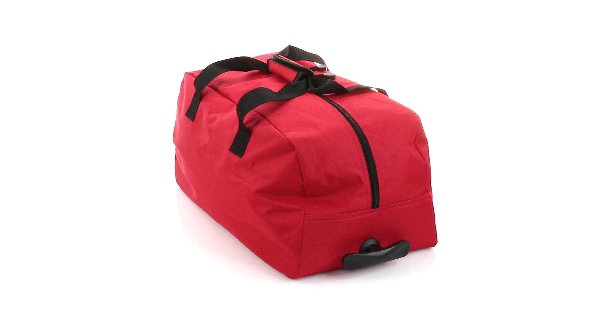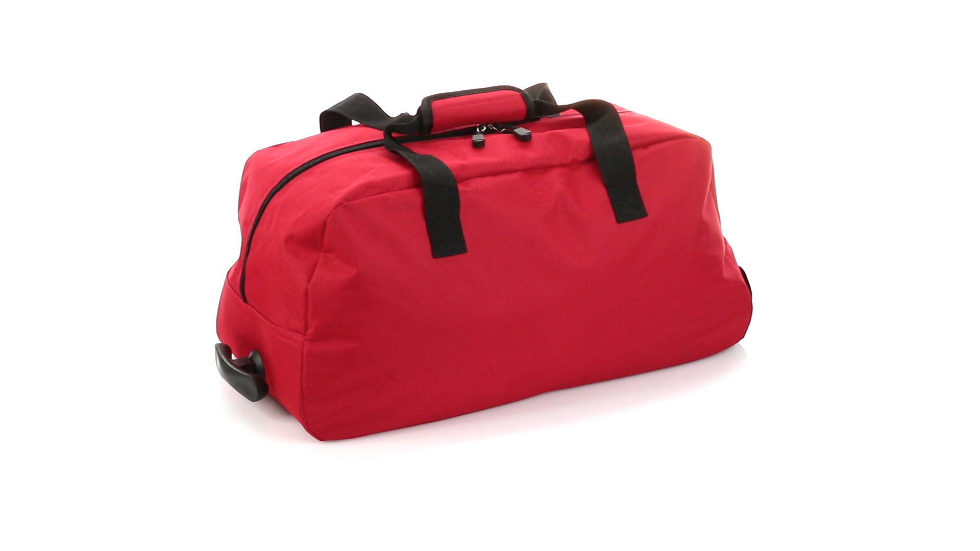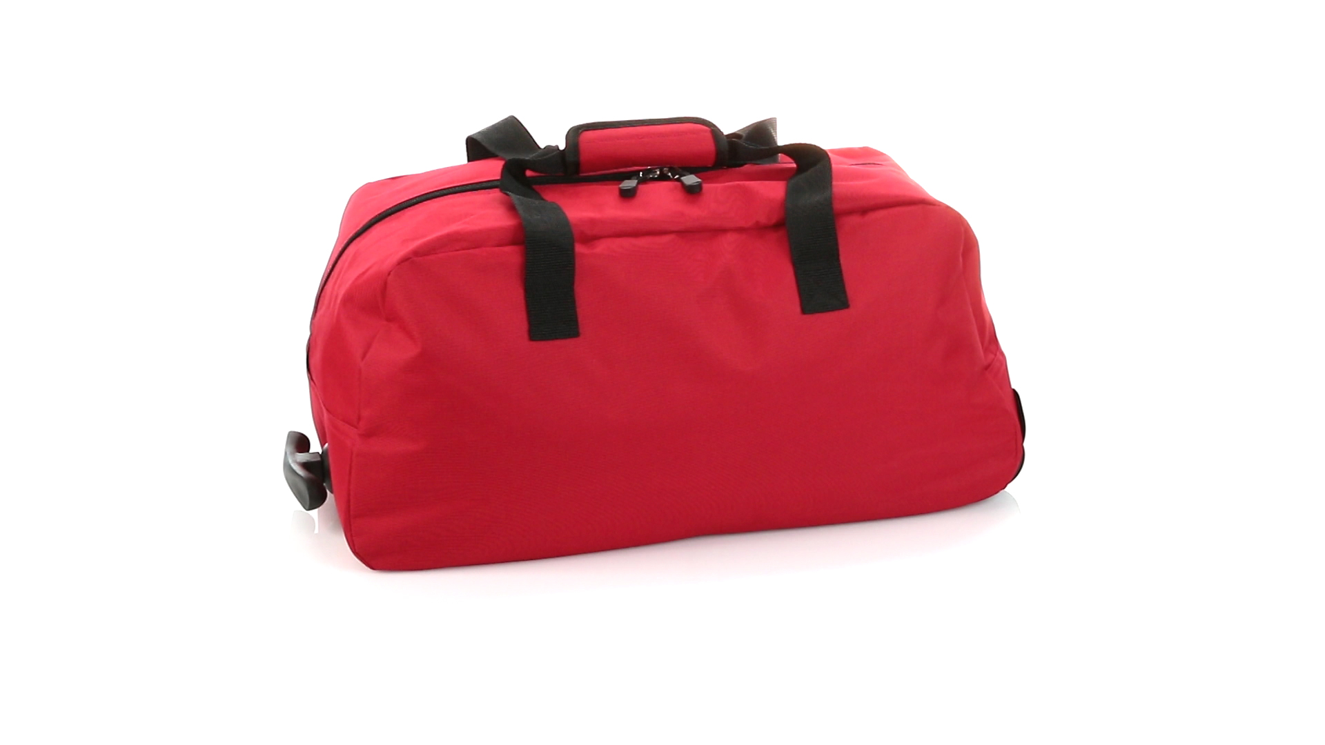 Trolley-Tasche mit 2 Rollen aus 600D Polyester in verschiedenen lebendigen Farben. Reissverschluss-Hauptfach mit doppeltem Zipper mit Zugbändern für einfaches Öffnen. Tragegriffe aus robustem Nylon, verstärkt mit farblich passendem Klettverschluss. Interieur mit farblich passender Fütterung und stabilem Boden.