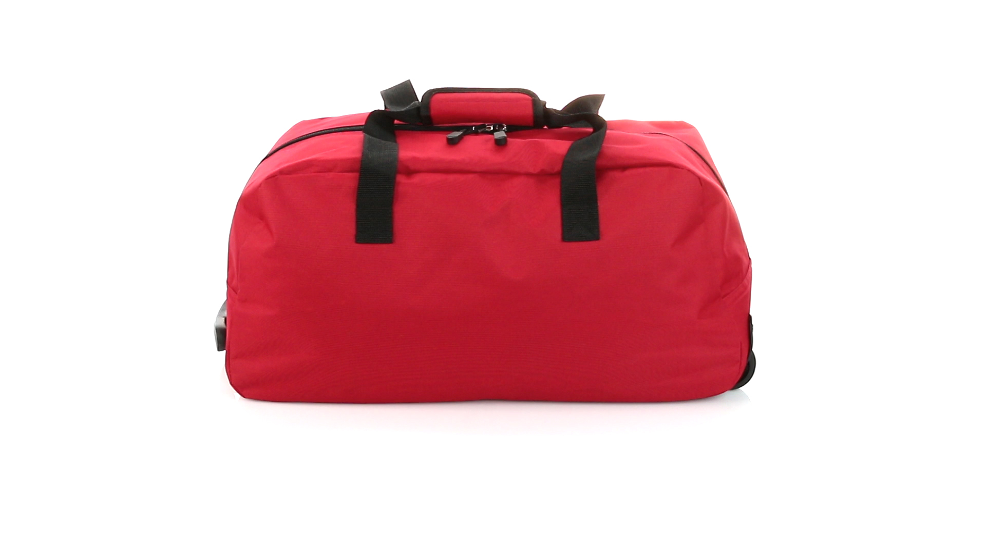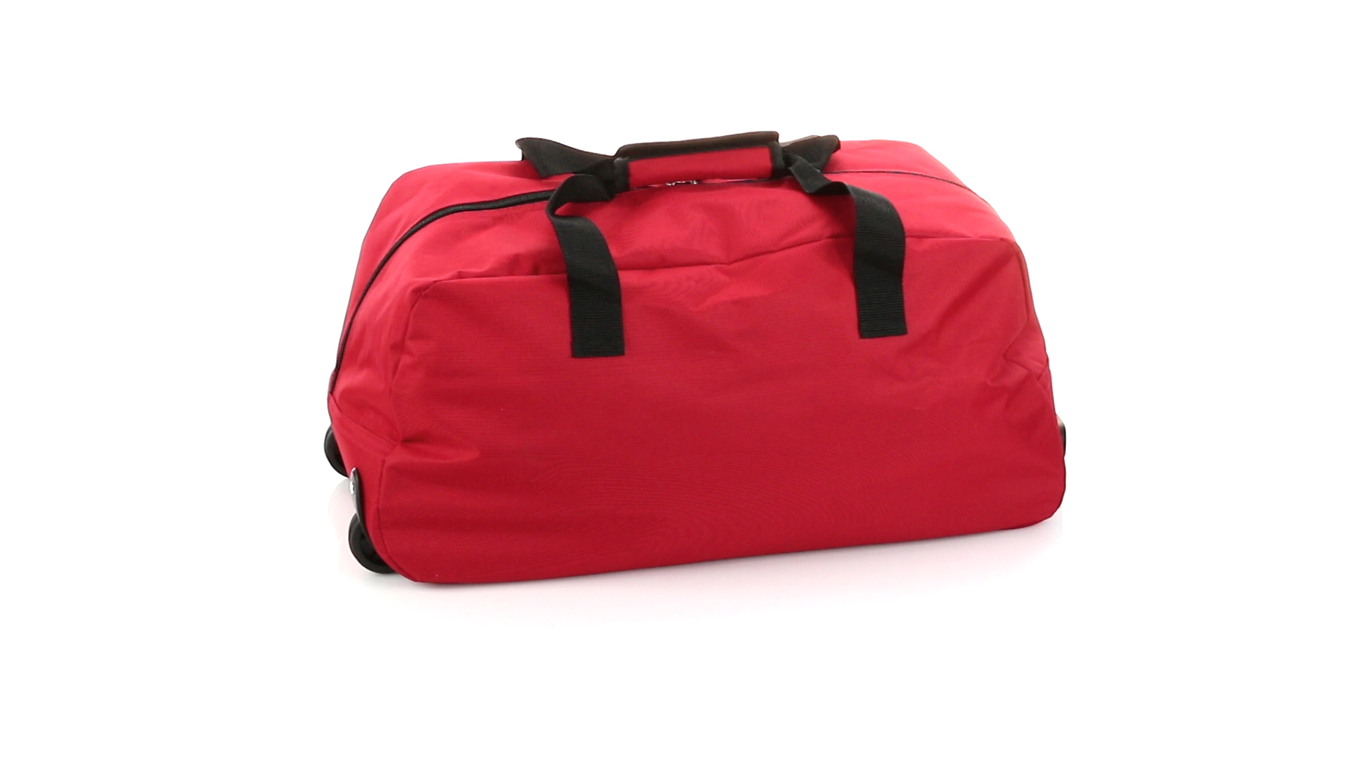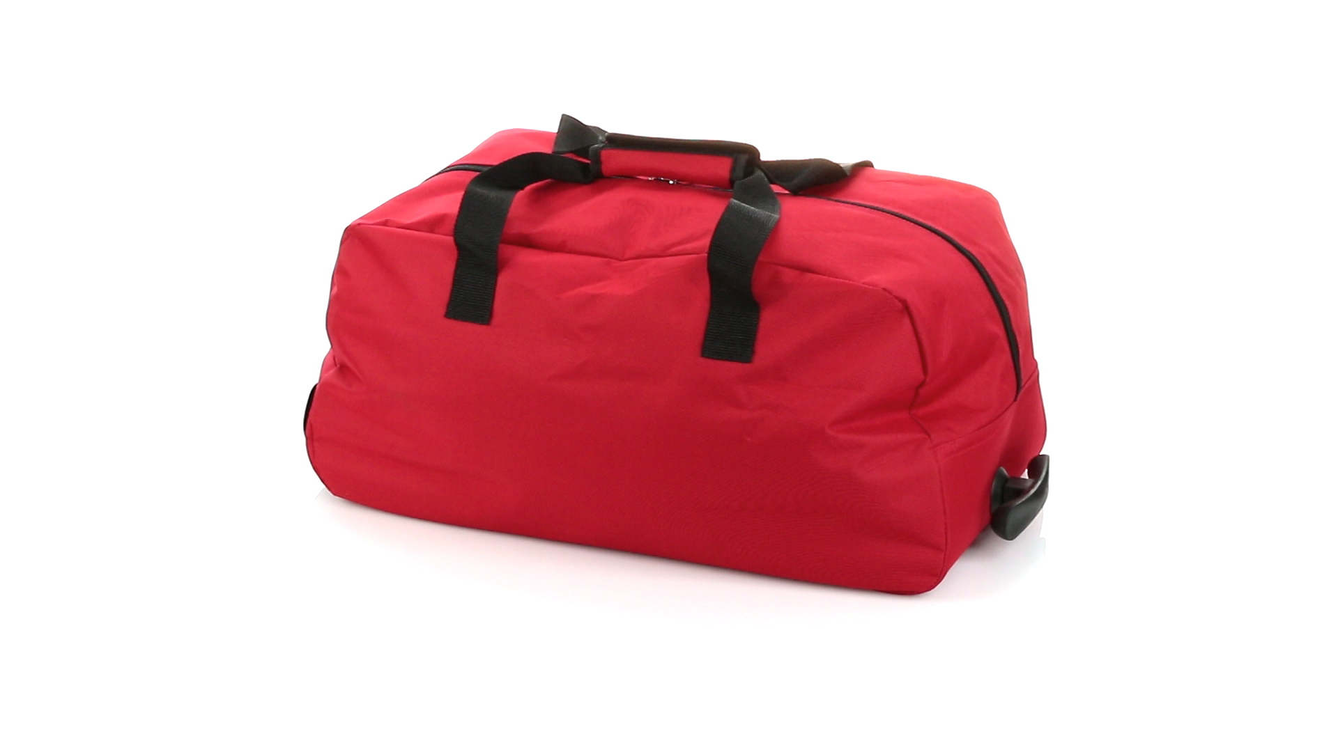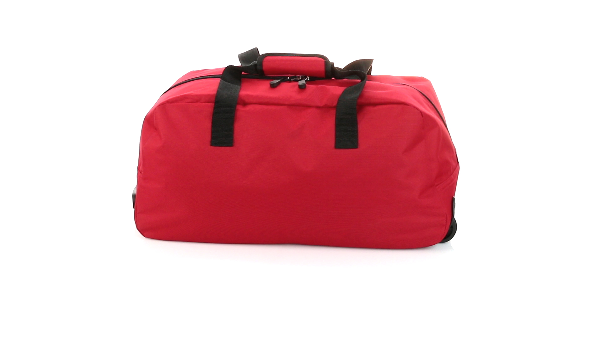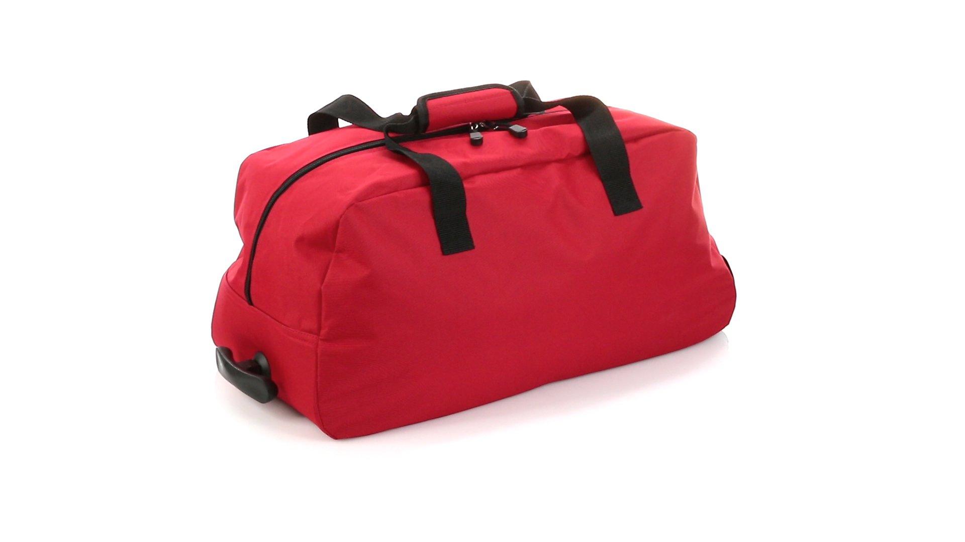 Trolley-Tasche mit 2 Rollen aus 600D Polyester in verschiedenen lebendigen Farben. Reissverschluss-Hauptfach mit doppeltem Zipper mit Zugbändern für einfaches Öffnen. Tragegriffe aus robustem Nylon, verstärkt mit farblich passendem Klettverschluss. Interieur mit farblich passender Fütterung und stabilem Boden.