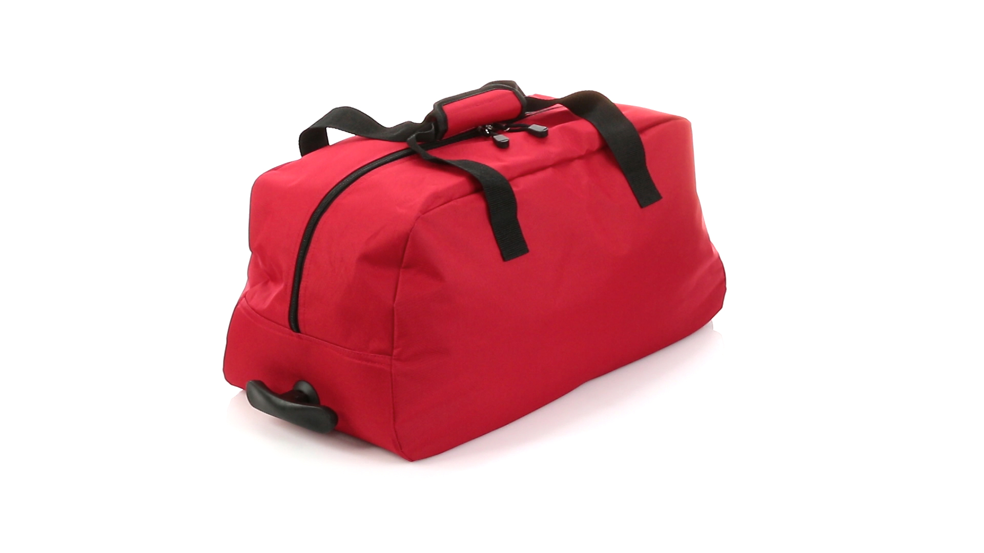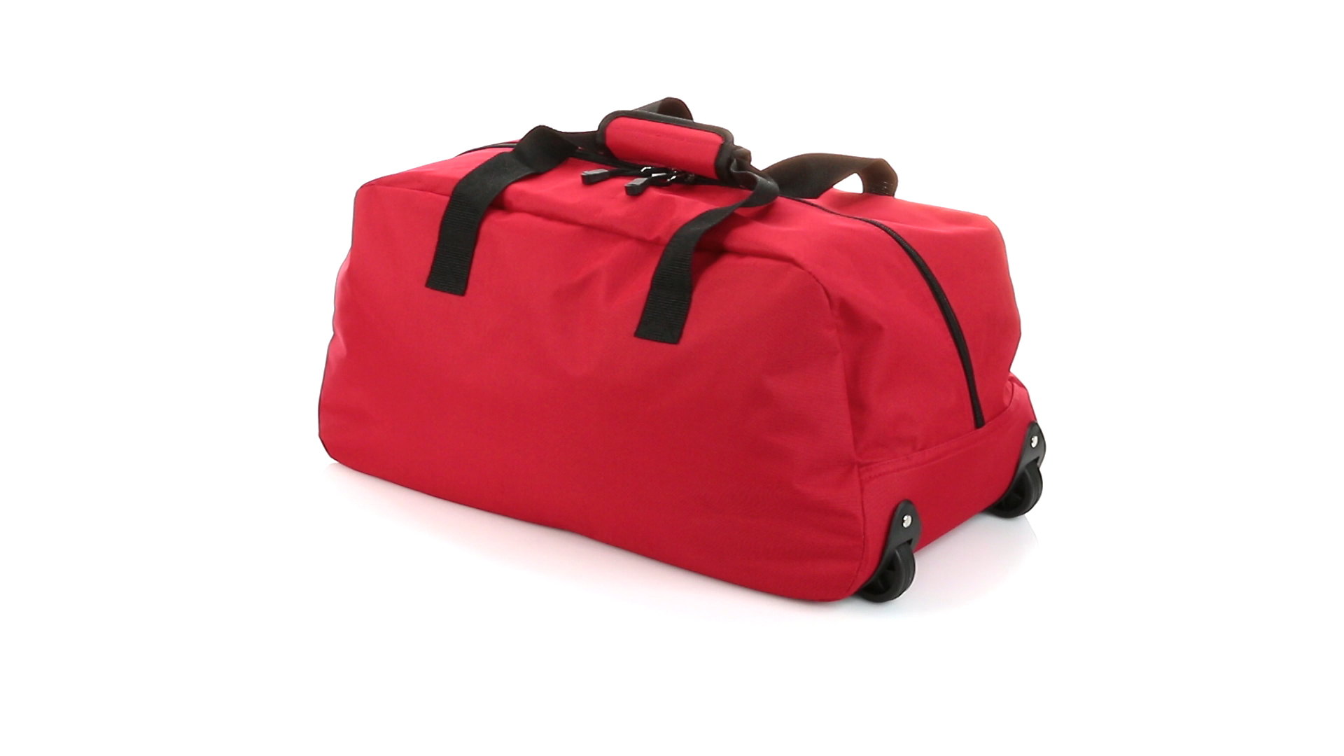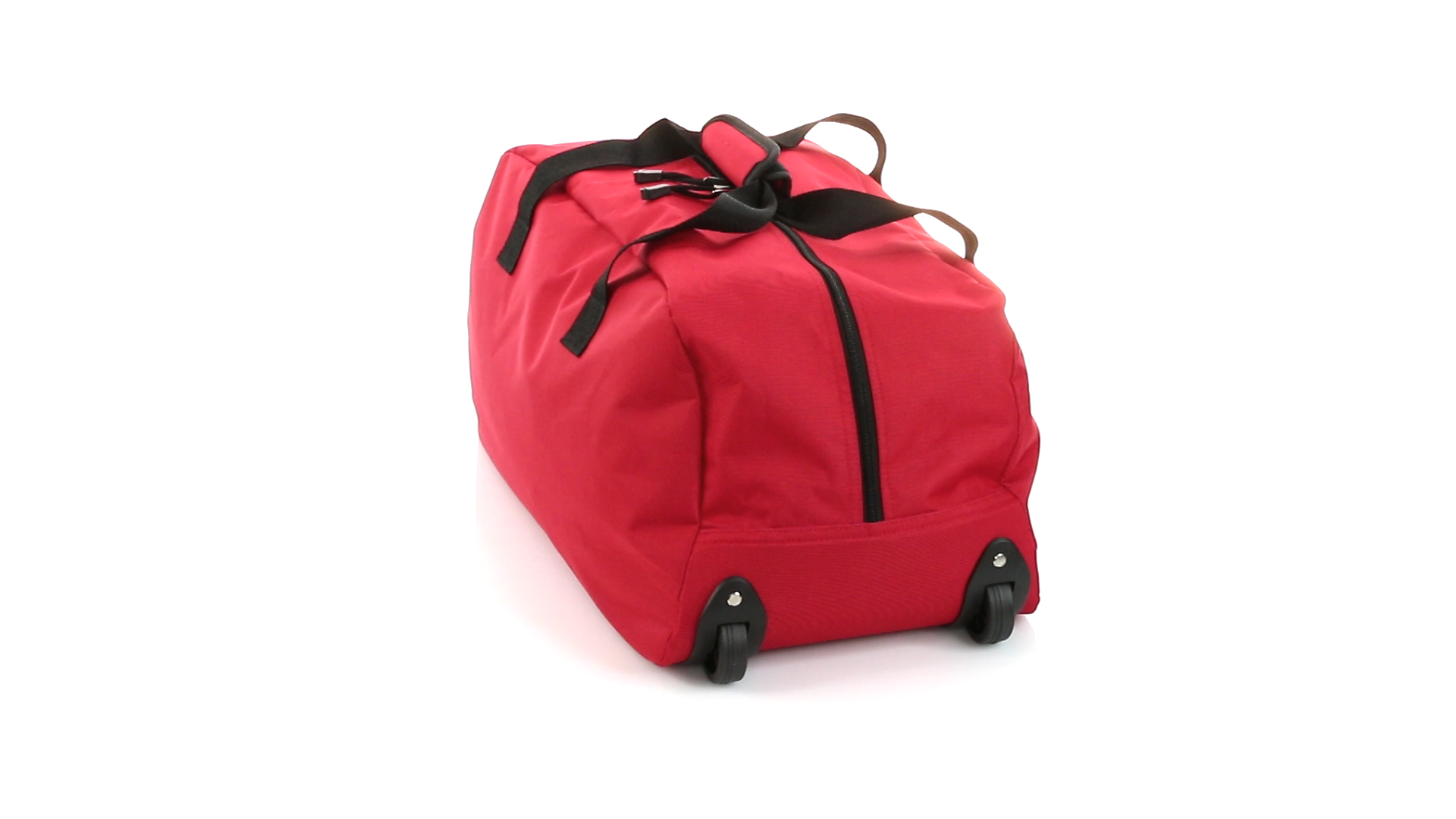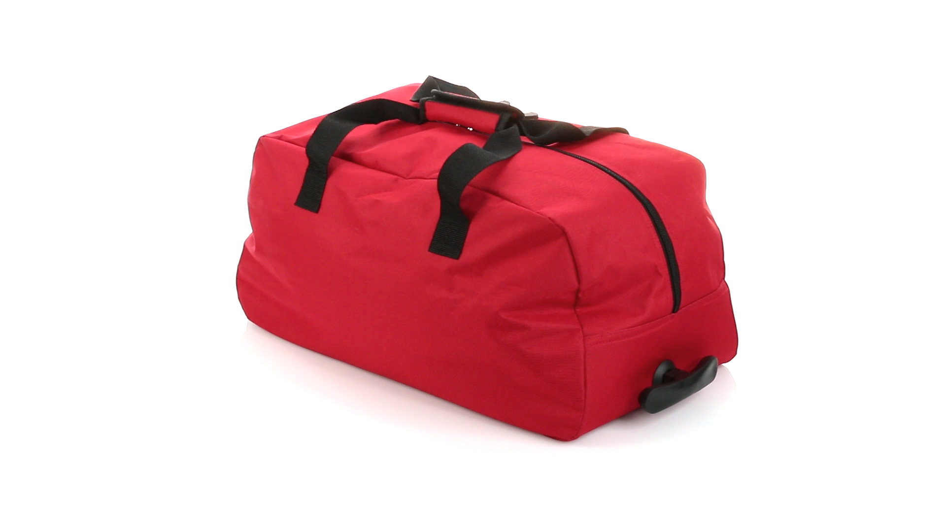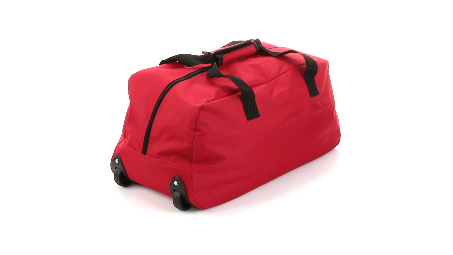 Trolley-Tasche mit 2 Rollen aus 600D Polyester in verschiedenen lebendigen Farben. Reissverschluss-Hauptfach mit doppeltem Zipper mit Zugbändern für einfaches Öffnen. Tragegriffe aus robustem Nylon, verstärkt mit farblich passendem Klettverschluss. Interieur mit farblich passender Fütterung und stabilem Boden.