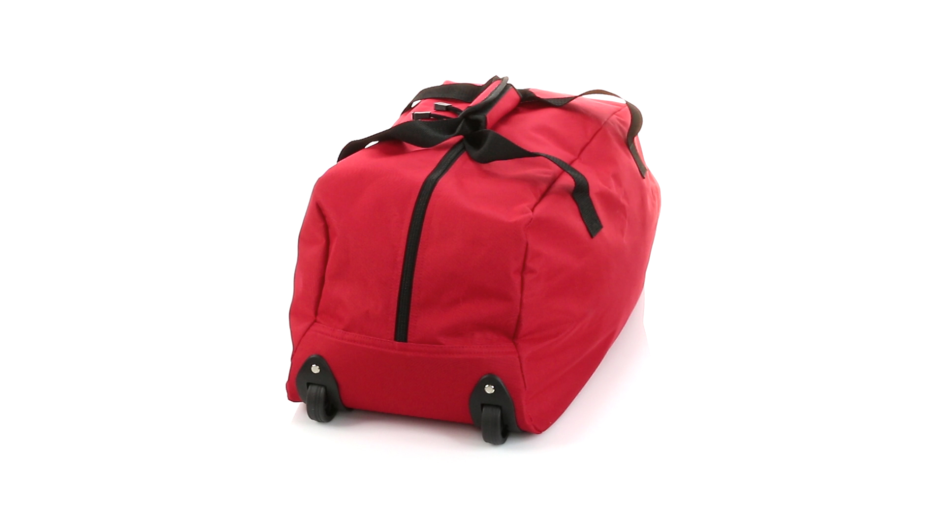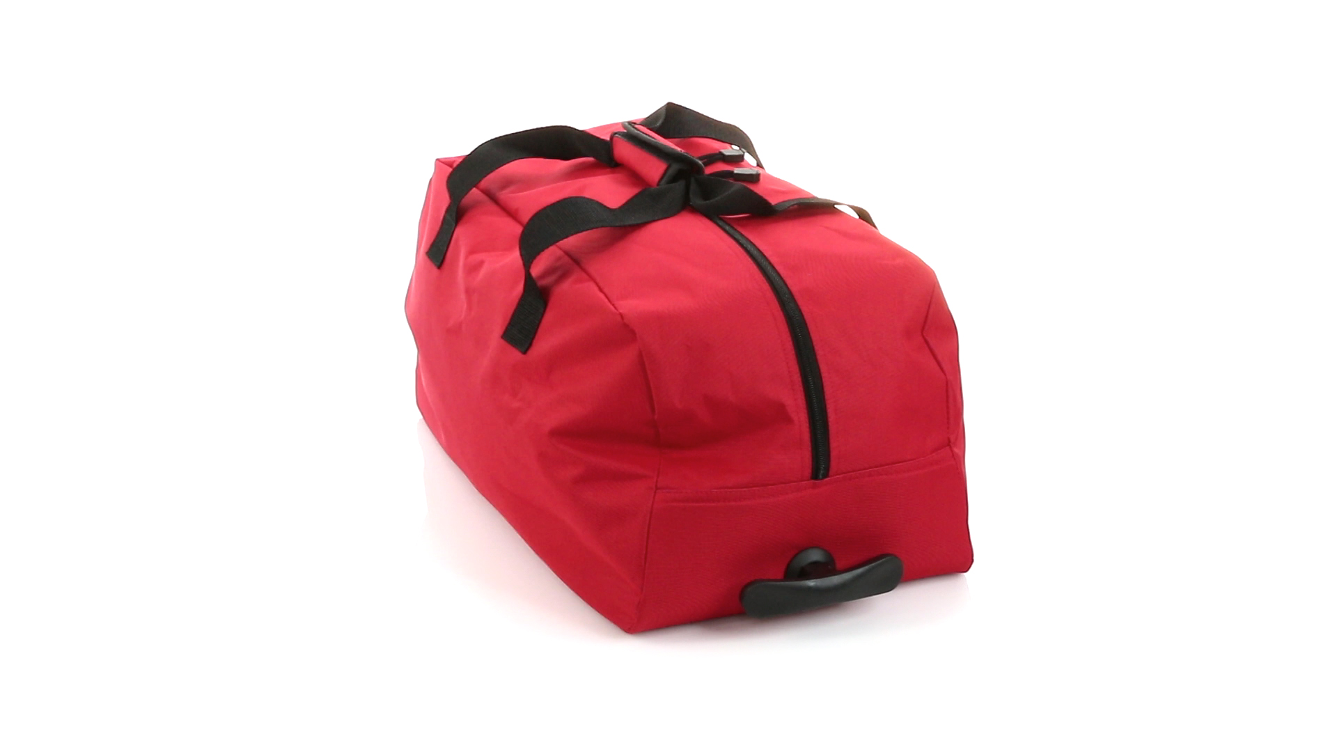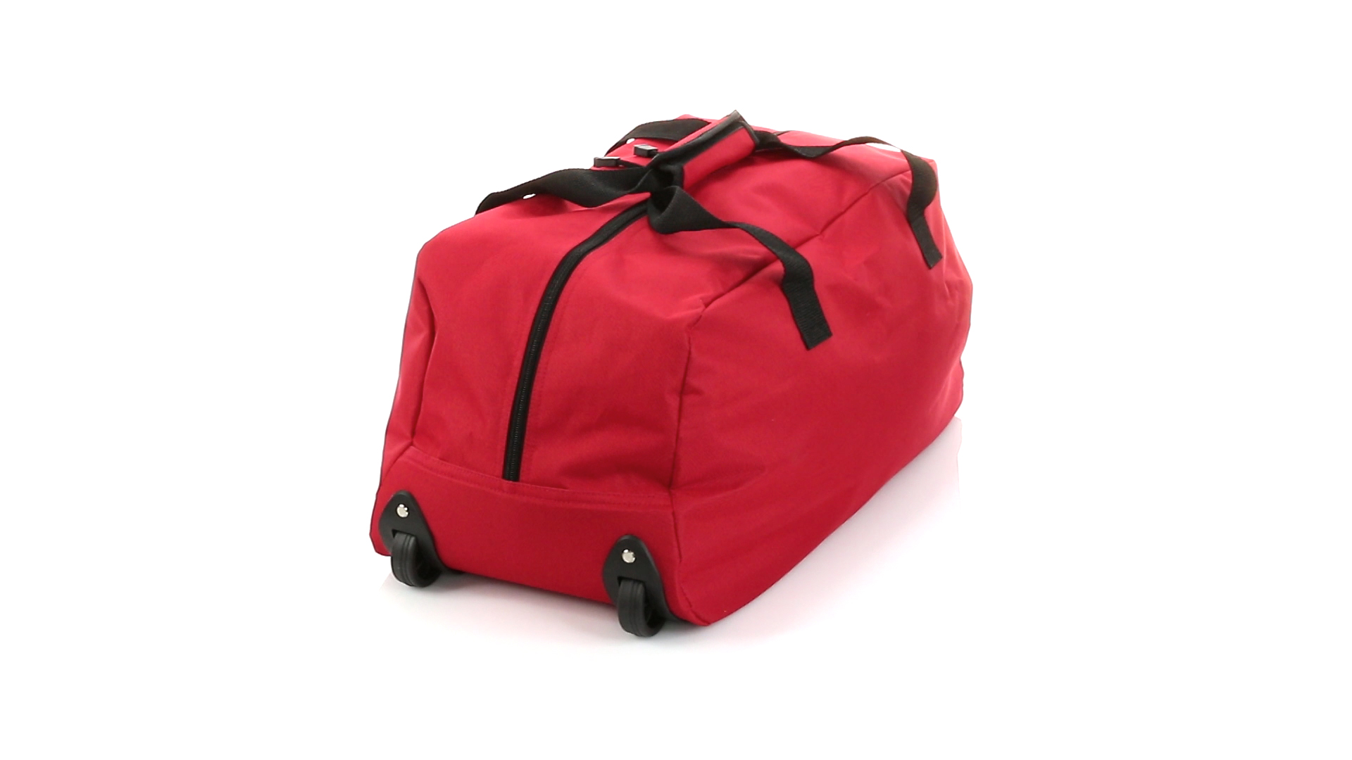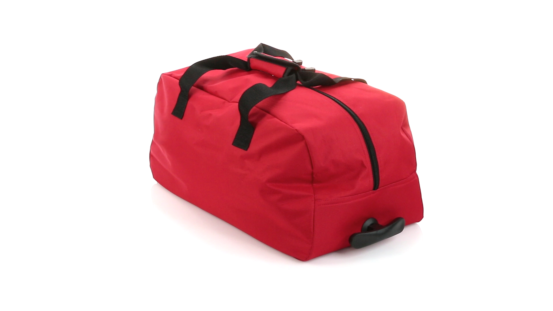 Trolley-Tasche mit 2 Rollen aus 600D Polyester in verschiedenen lebendigen Farben. Reissverschluss-Hauptfach mit doppeltem Zipper mit Zugbändern für einfaches Öffnen. Tragegriffe aus robustem Nylon, verstärkt mit farblich passendem Klettverschluss. Interieur mit farblich passender Fütterung und stabilem Boden.