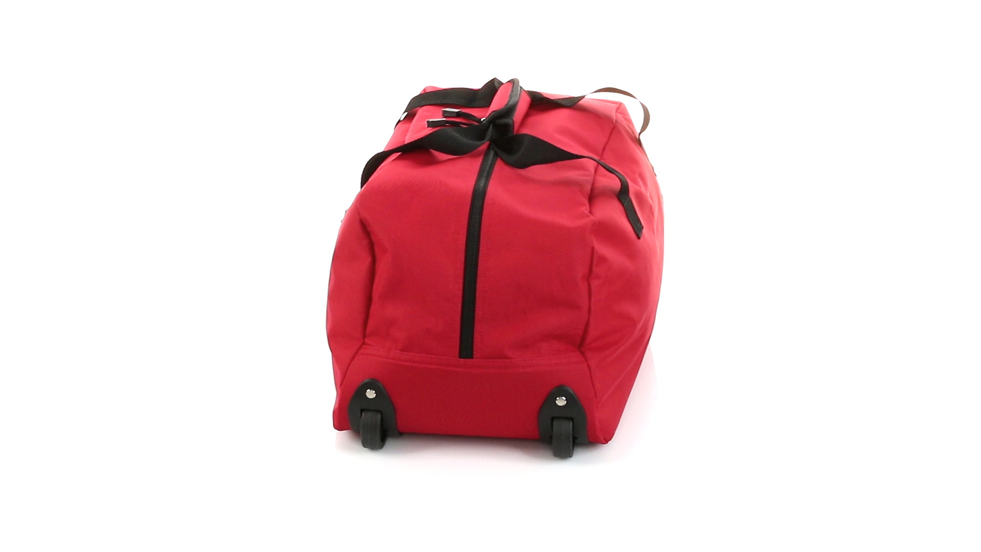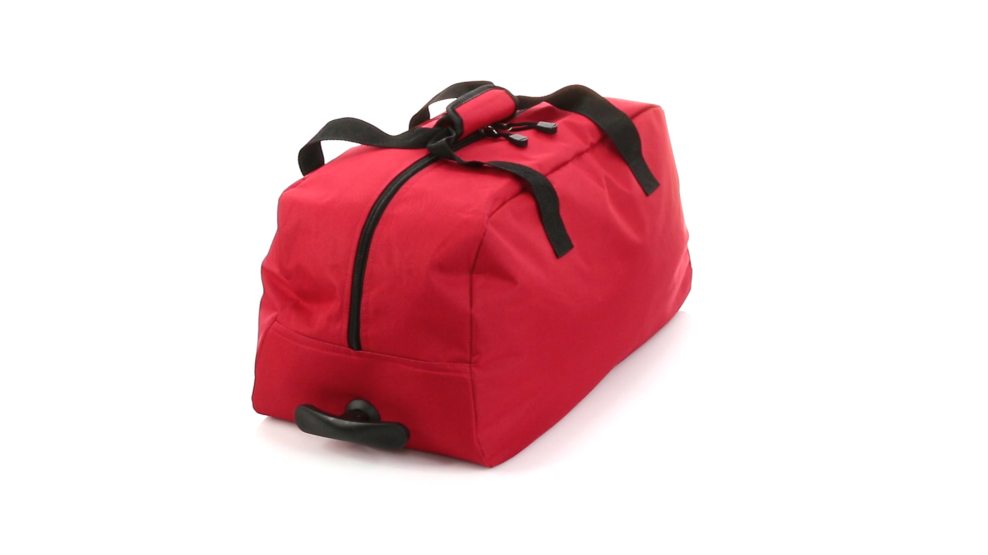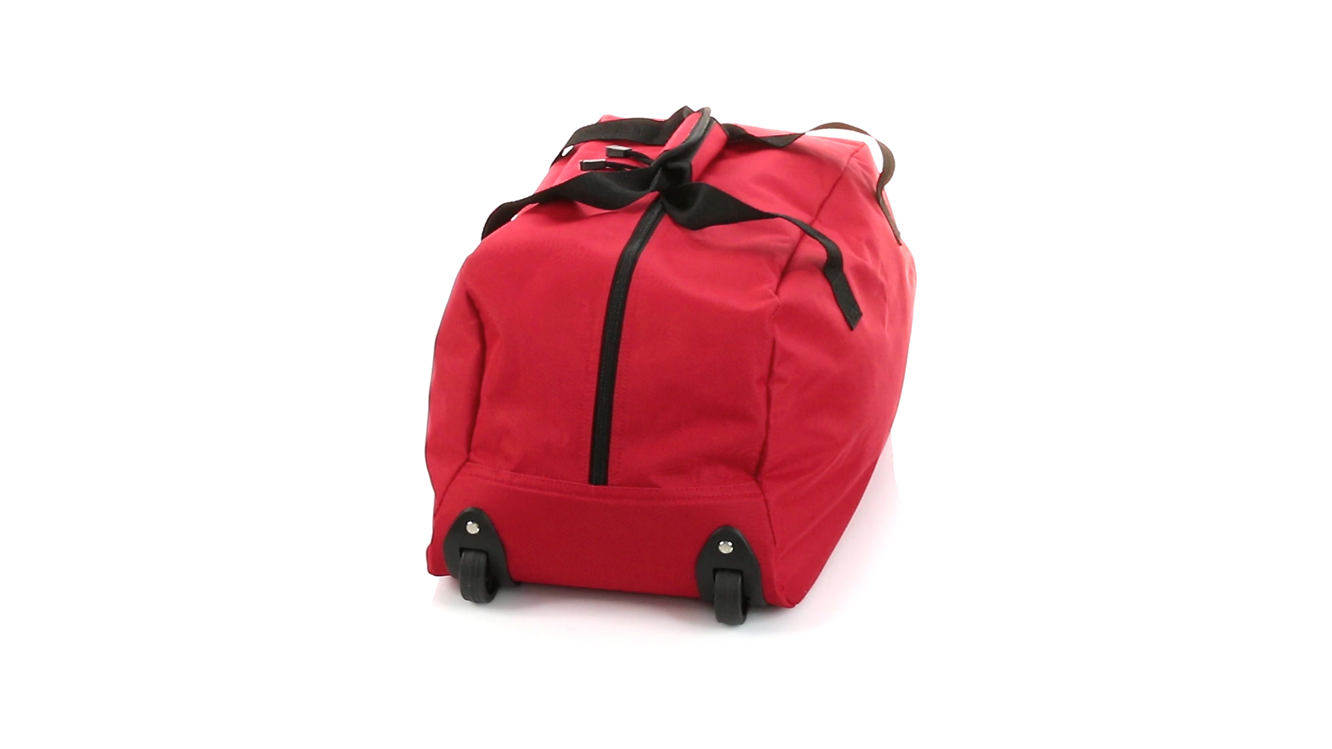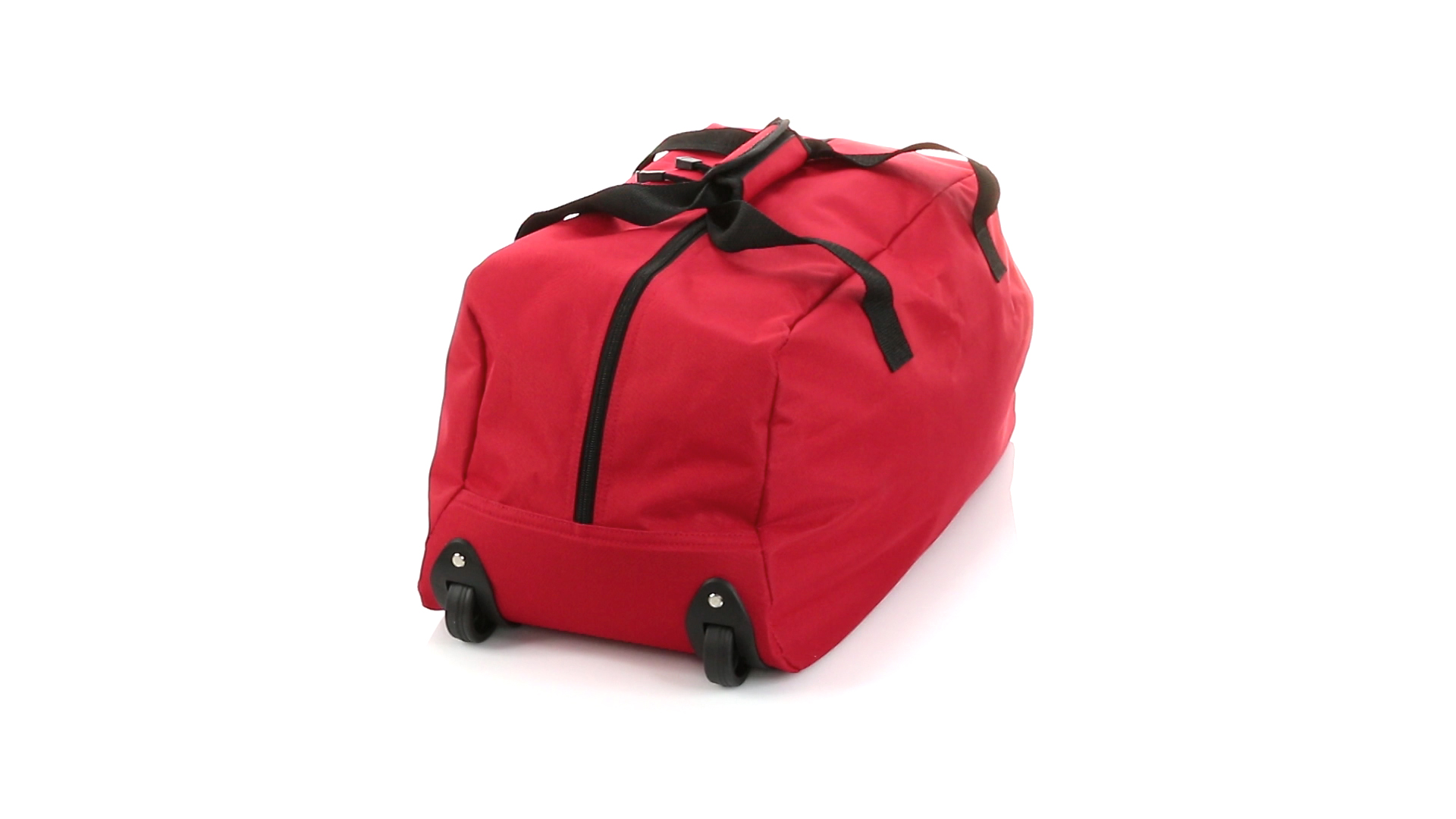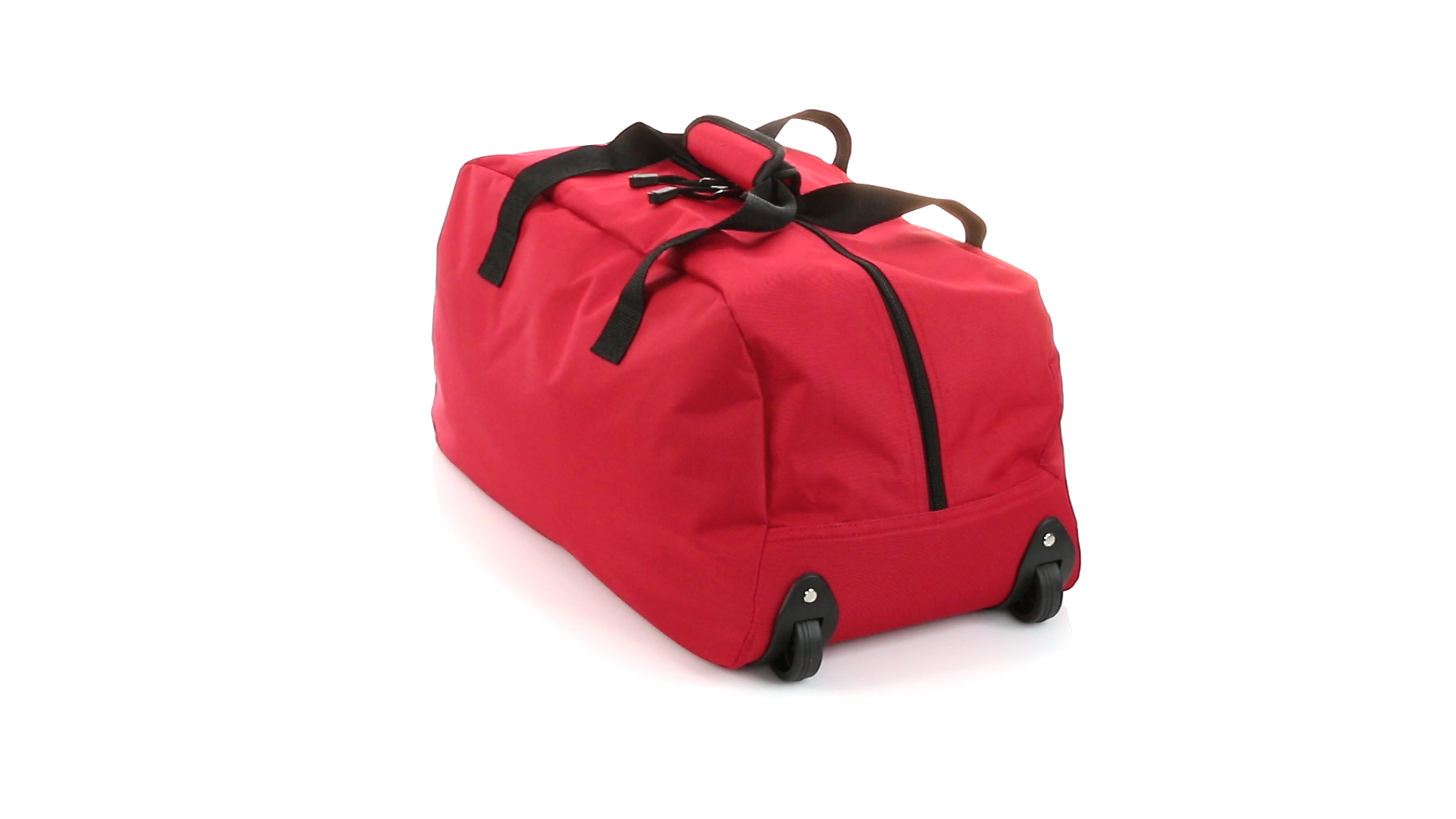 Trolley-Tasche mit 2 Rollen aus 600D Polyester in verschiedenen lebendigen Farben. Reissverschluss-Hauptfach mit doppeltem Zipper mit Zugbändern für einfaches Öffnen. Tragegriffe aus robustem Nylon, verstärkt mit farblich passendem Klettverschluss. Interieur mit farblich passender Fütterung und stabilem Boden.