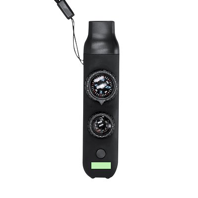 Überlebenspfeife aus widerstandsfähigem ABS mit gummiartiger Oberfläche. Es integriert 6 wesentliche Funktionen: – Kompass mit 2,55 cm Durchmesser mit Hinweisen auf Nord, Süd, Ost und West. – Hochleistungspfeife, ideal zum Aussenden von Notsignalen. – Thermometer mit einem Temperaturbereich von -20 ºC bis 50 ºC – Lupe mit 2 cm Durchmesser, perfekt zur Beobachtung kleiner Details oder sogar zum Entzünden von Feuern durch Konzentration von Sonnenlicht. – Spiegel, Eingebaut unten am Kompass. Taschenlampe mit 2 LEDs und Ein-/Aus-Knopf oben.Enthält ein praktisches Kabel für einfachen Transport, ideal zum bequemen Aufhängen am Hals.
