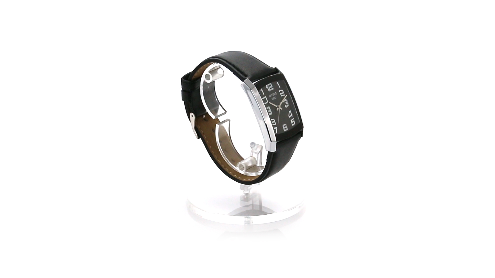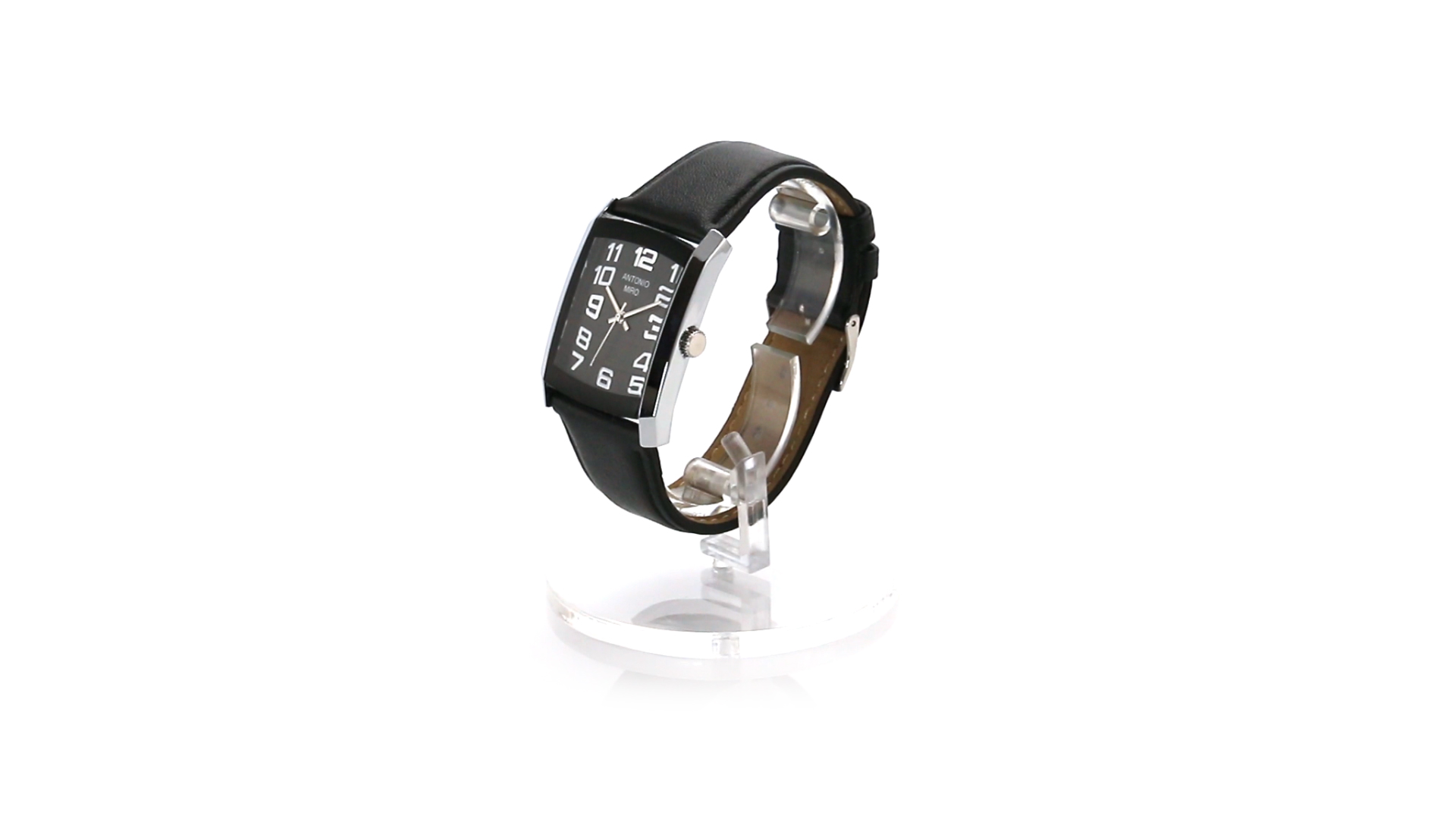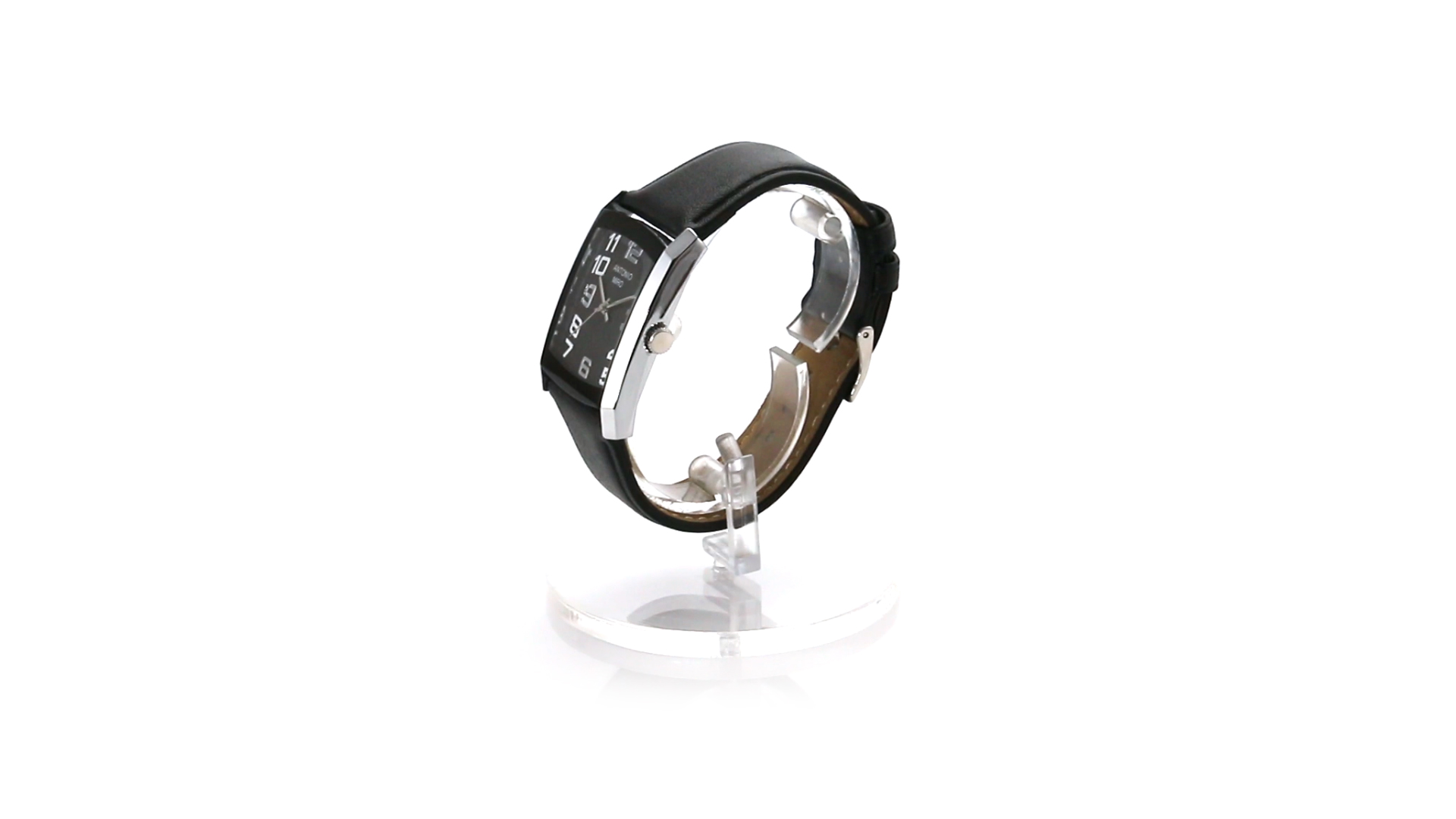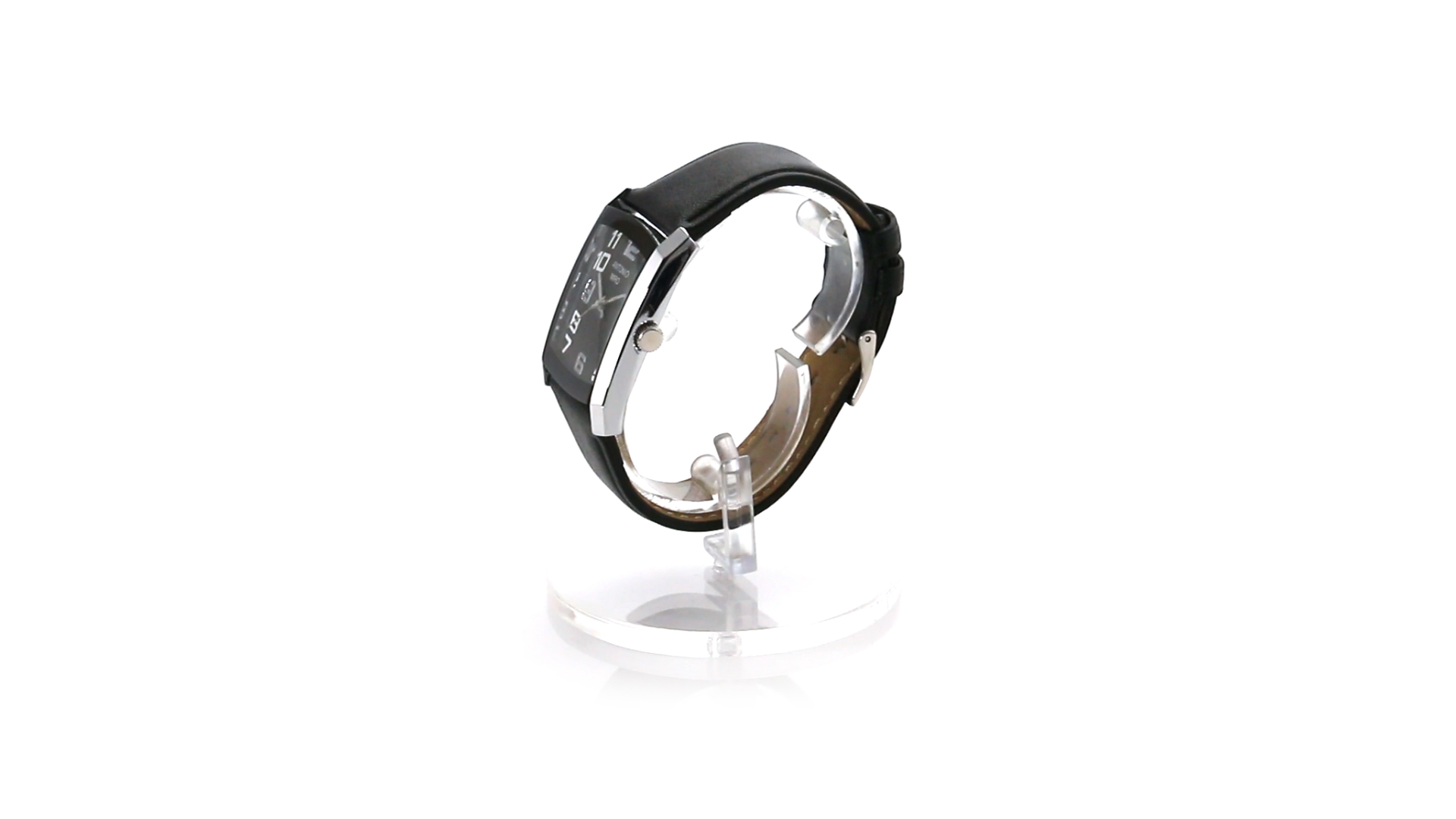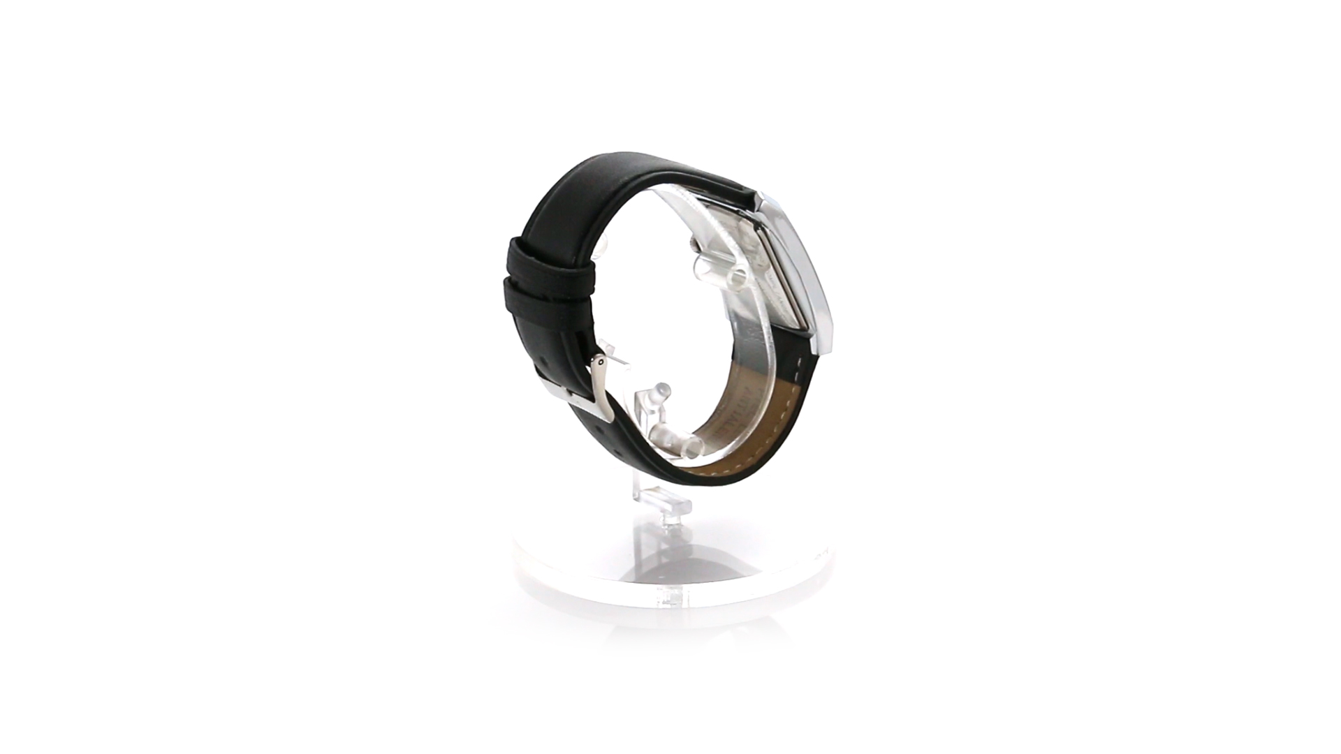 Elegante Armbanduhr von Antonio Miró. Mit Metallgehäuse und rechteckigem Analogzifferblatt mit dem Markenlogo und Mineralglas. Spritzwassergeschützt. Mit japanischem Quarzwerk und verstellbarem Lederarmband mit Schnallenverschluss. Präsentiert in einer individuellen Box in Schwarz mit dem Markenlogo und Stanzung im Inneren.