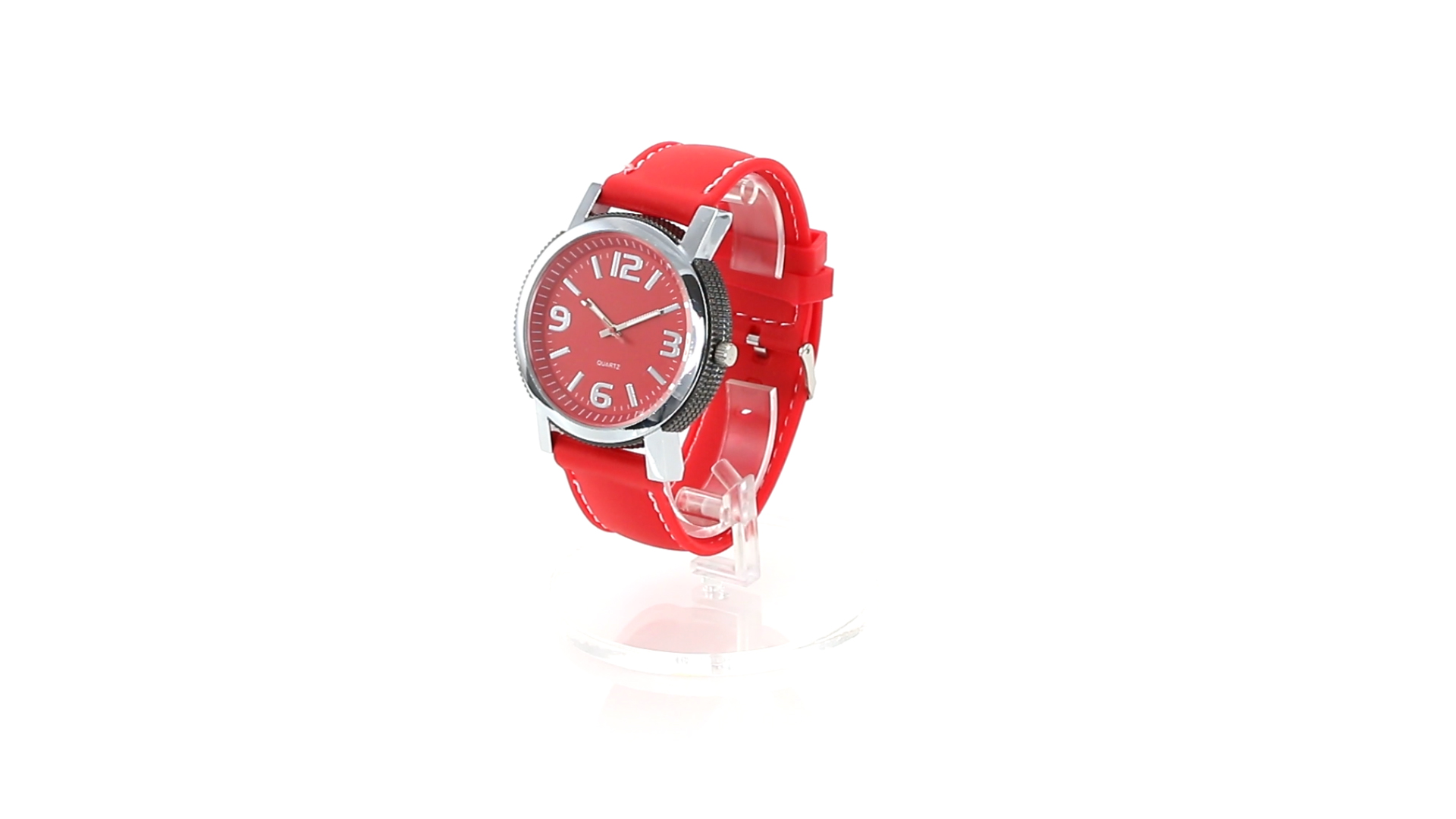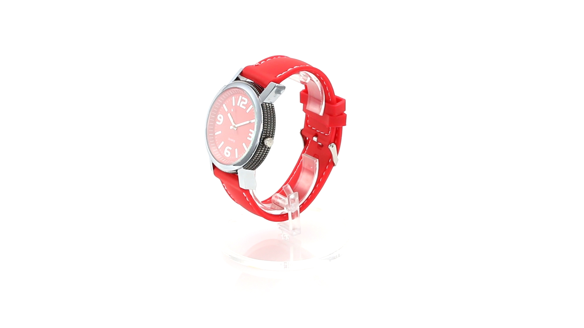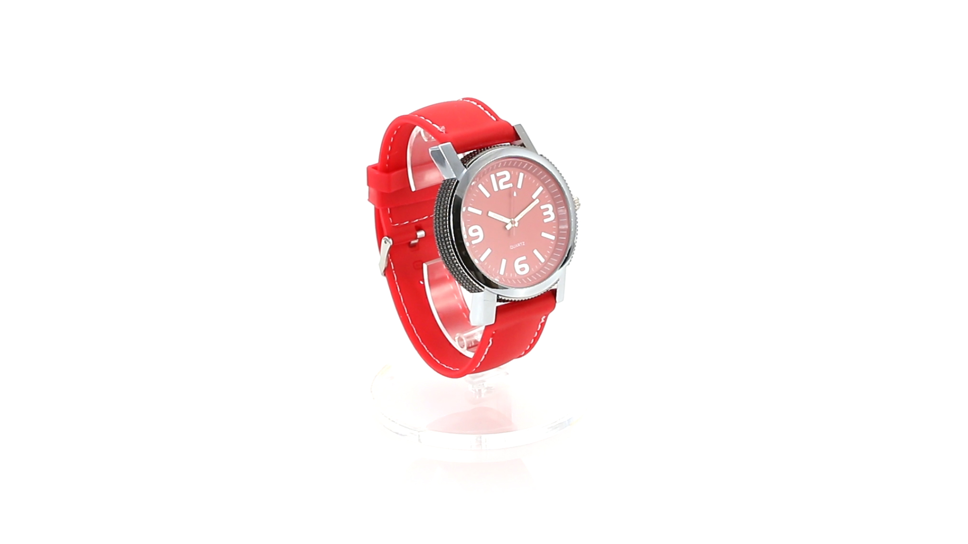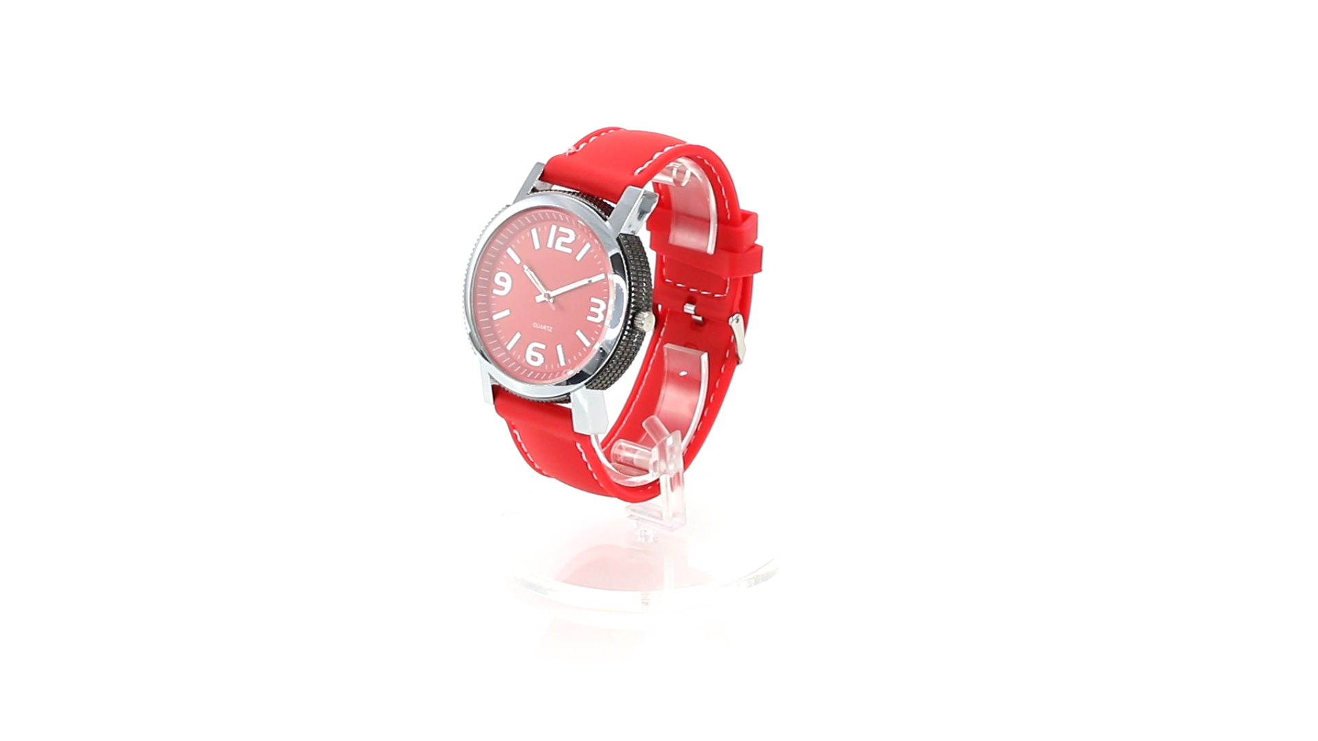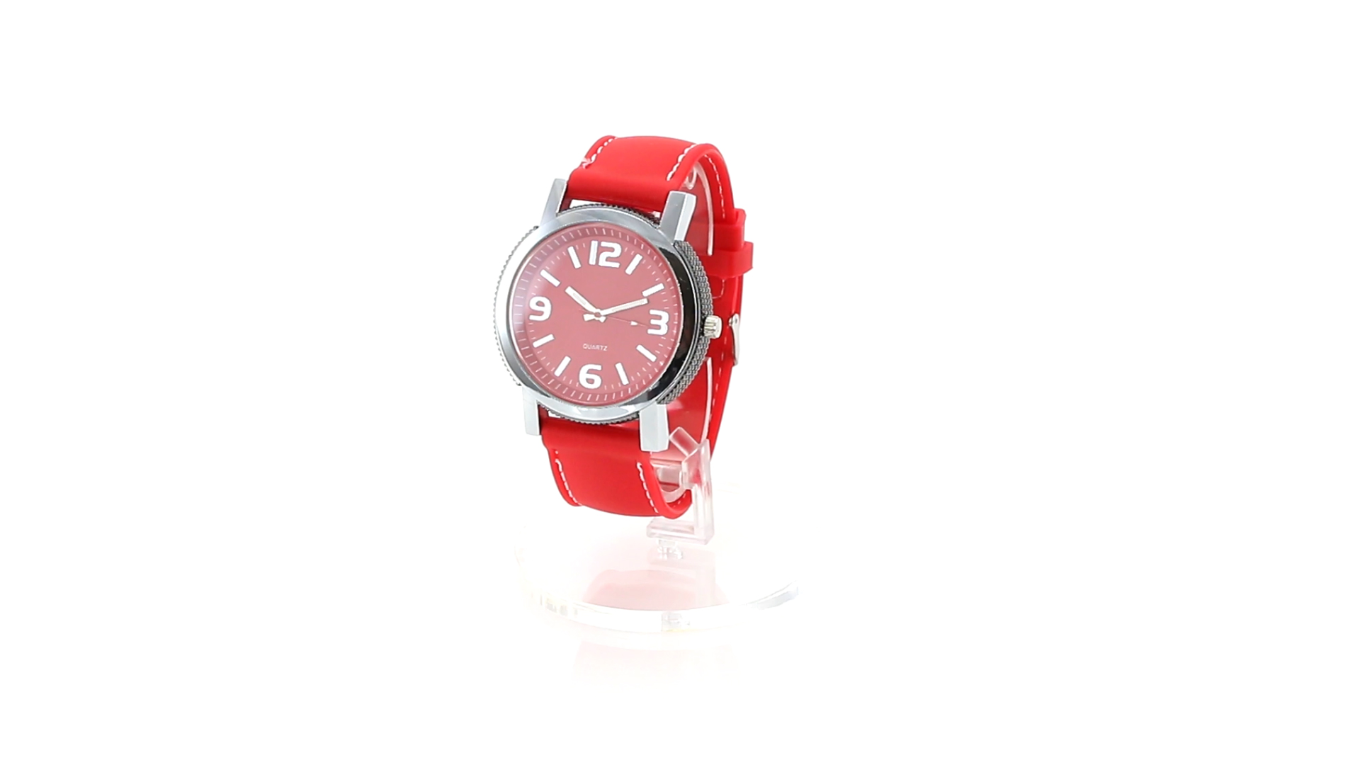 Armbanduhr mit coolem Design und kreisförmigem analogem Zifferblatt. Spritzwassergeschützt. In kräftigen Farben und mit verstellbarem Silikonarmband und weissem Klickverschluss. Präsentiert in einer individuellen Tasche mit verstärkendem Karton.
