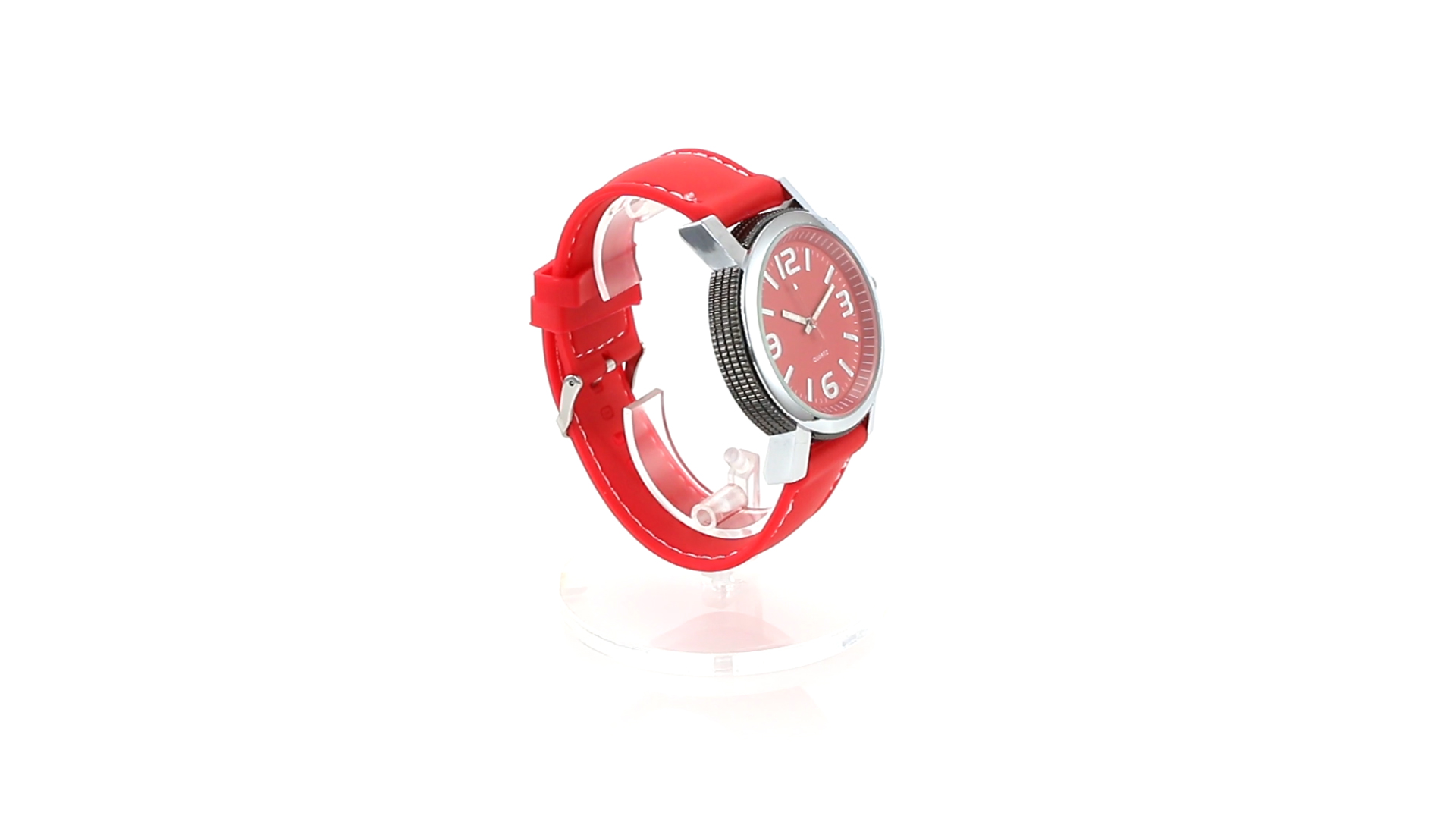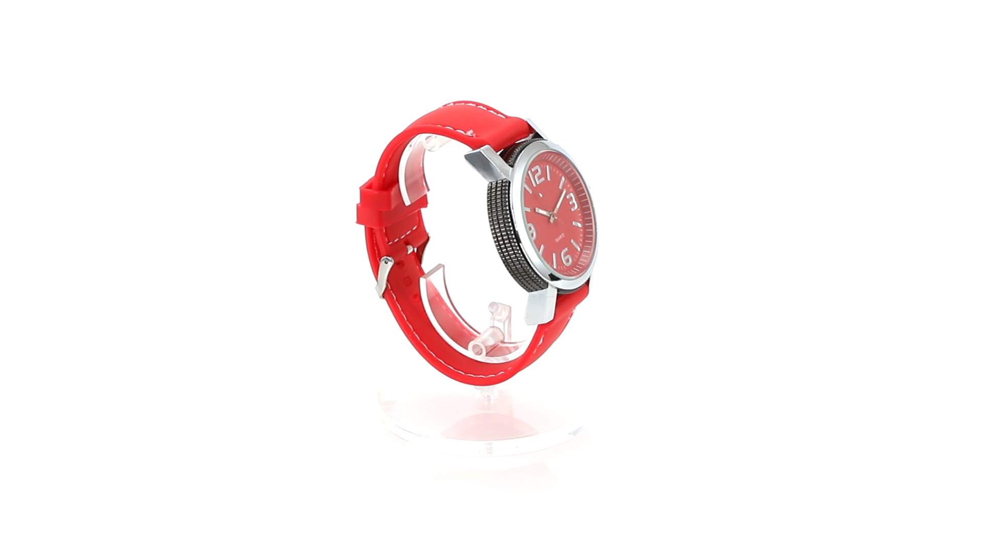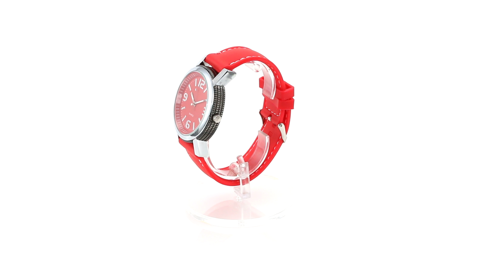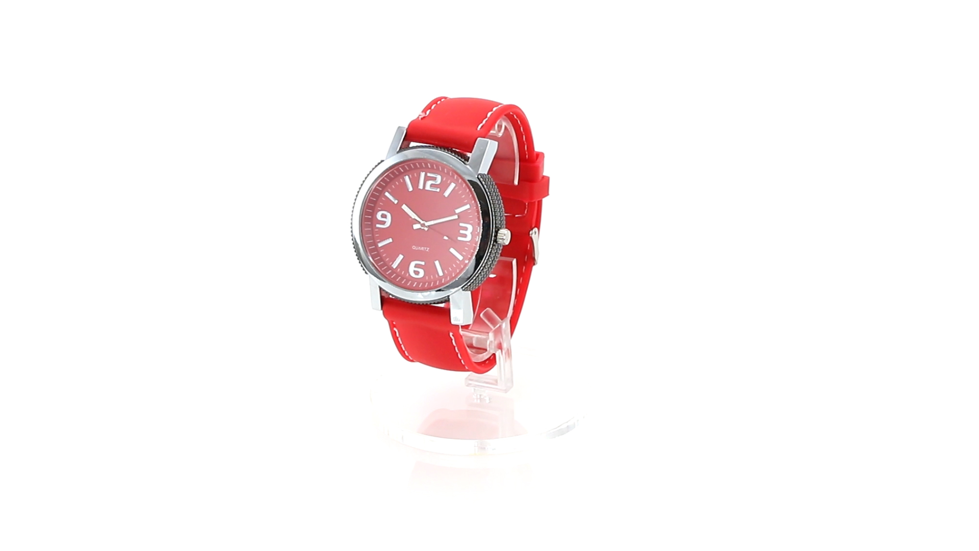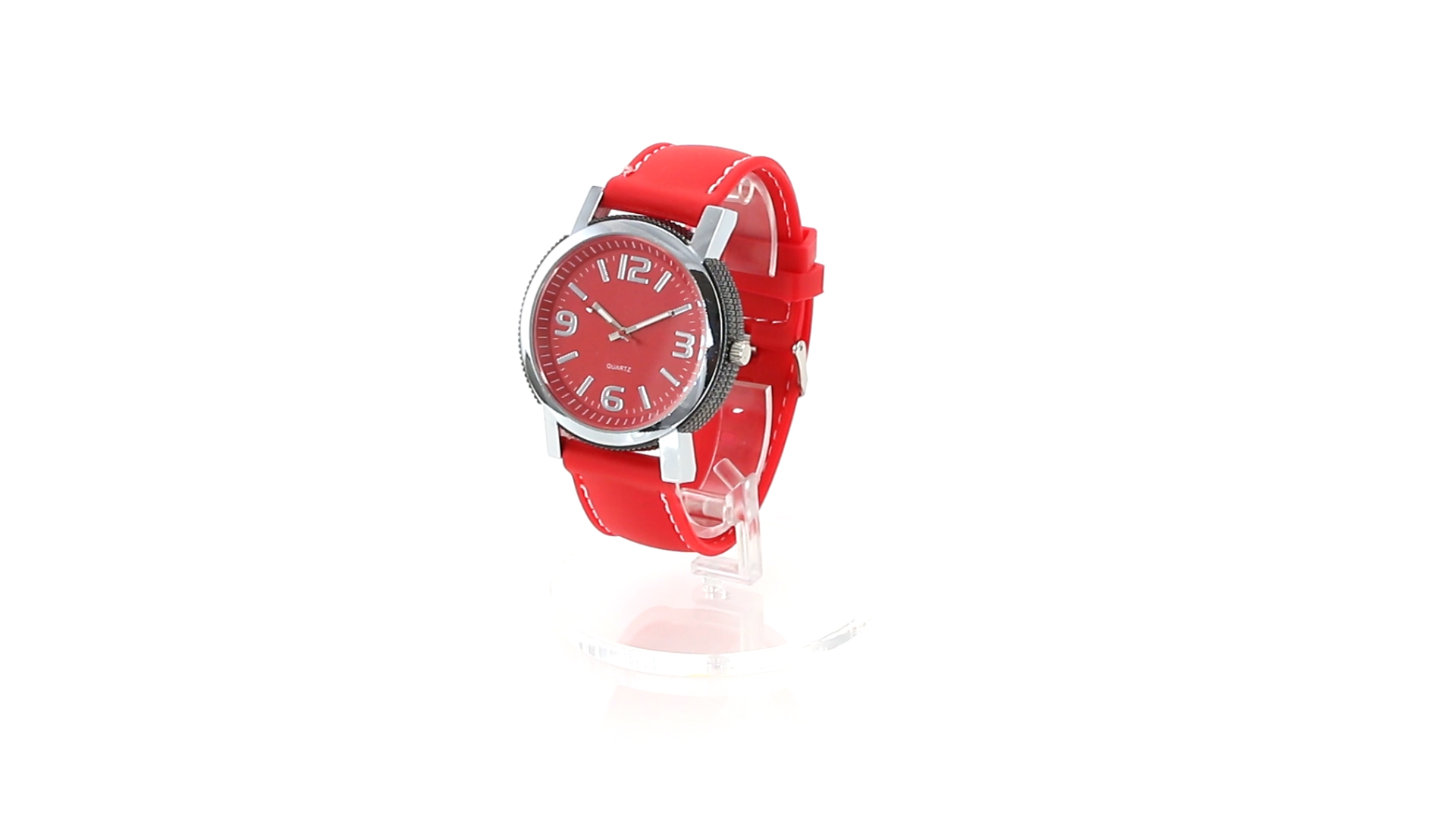 Armbanduhr mit coolem Design und kreisförmigem analogem Zifferblatt. Spritzwassergeschützt. In kräftigen Farben und mit verstellbarem Silikonarmband und weissem Klickverschluss. Präsentiert in einer individuellen Tasche mit verstärkendem Karton.