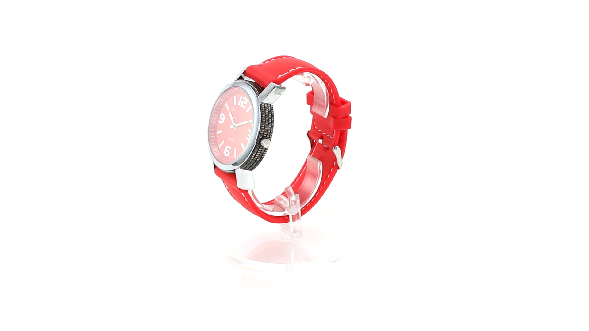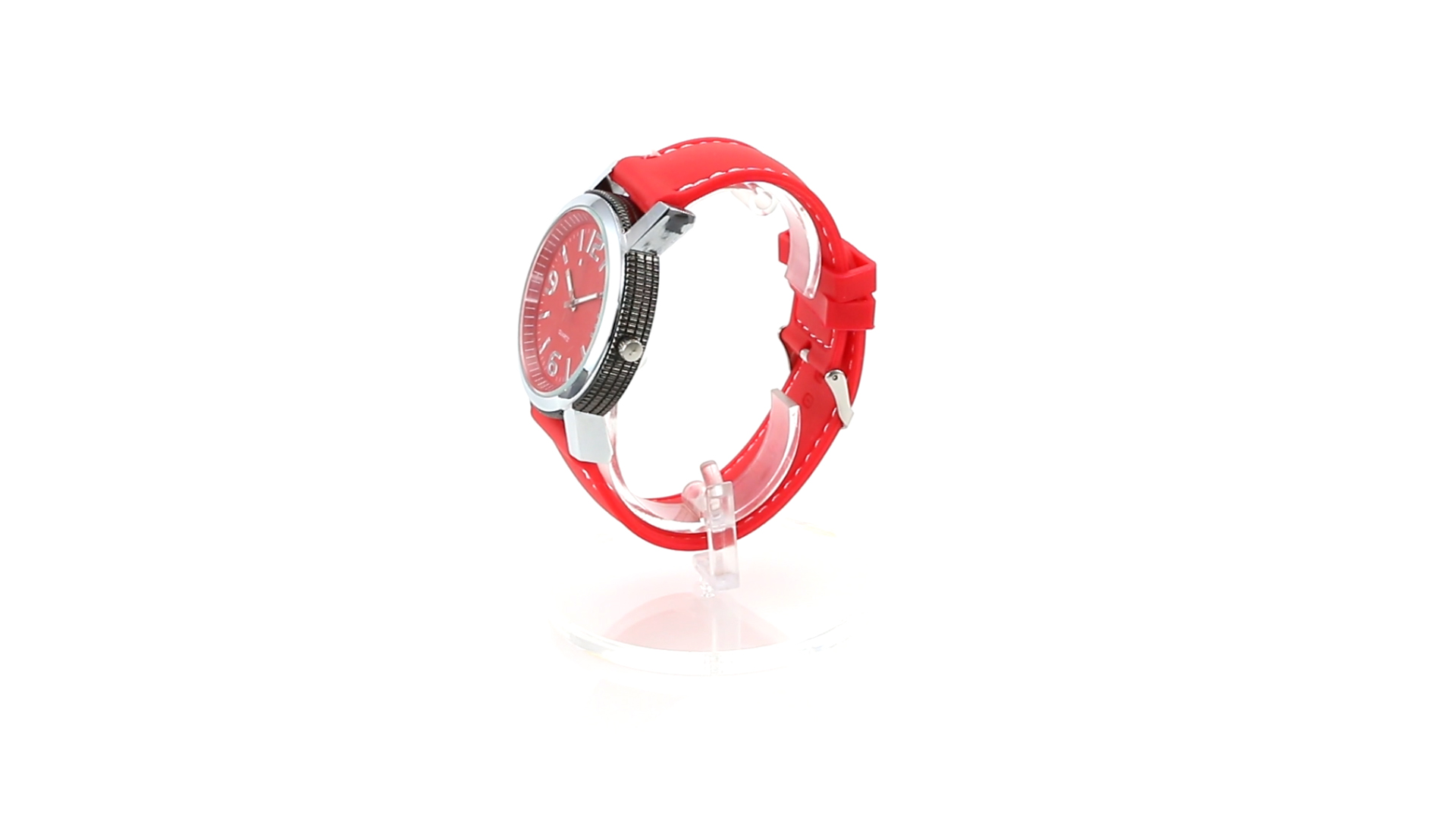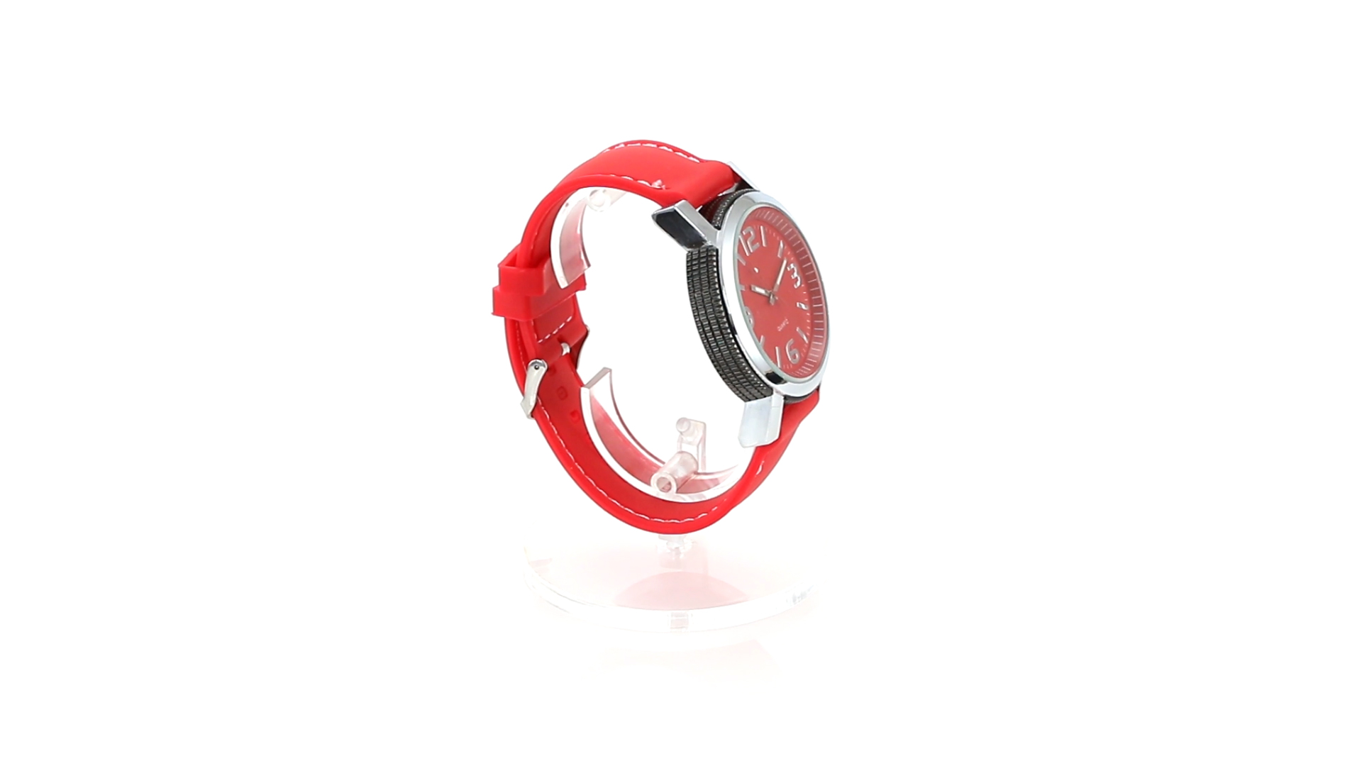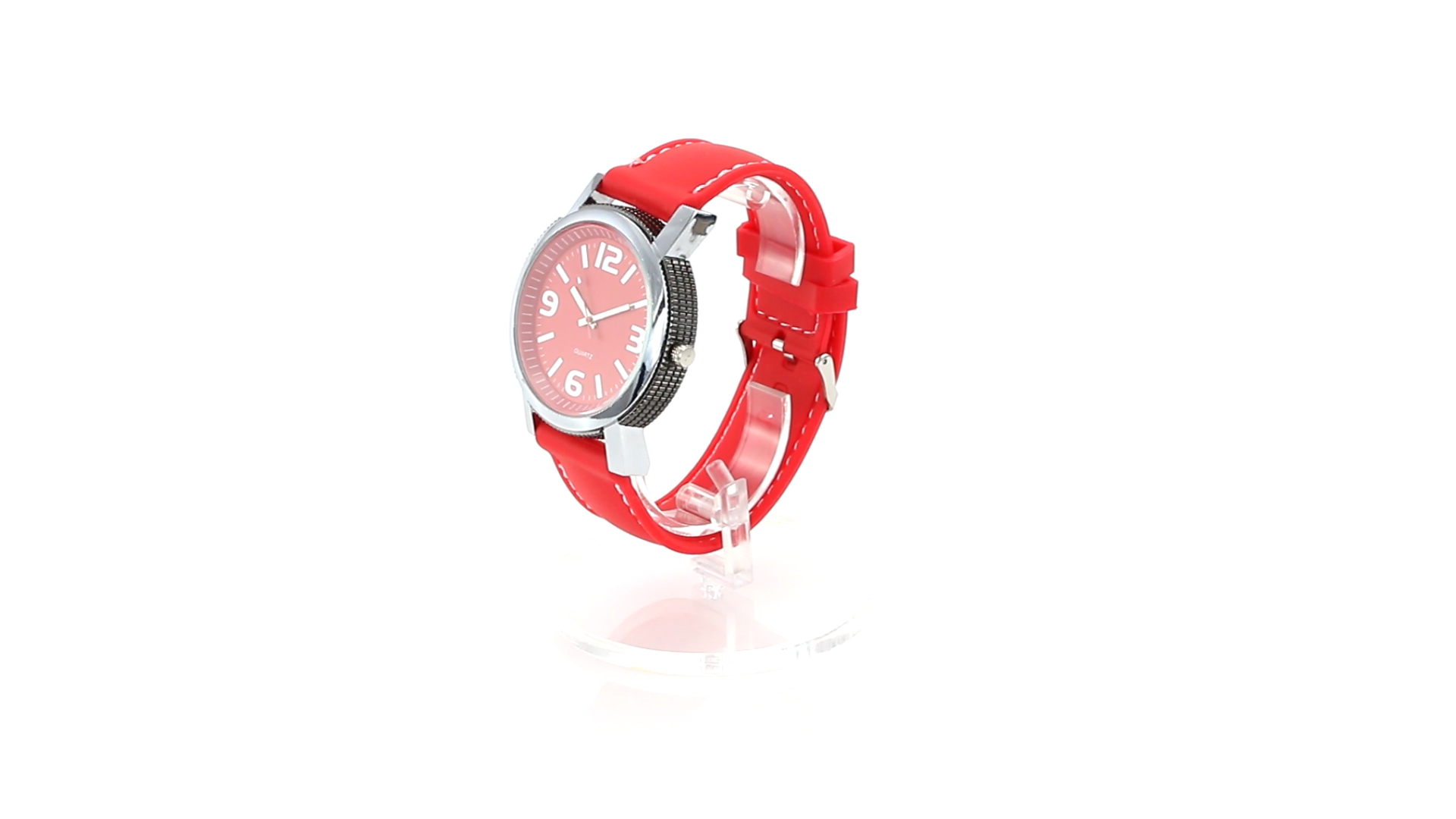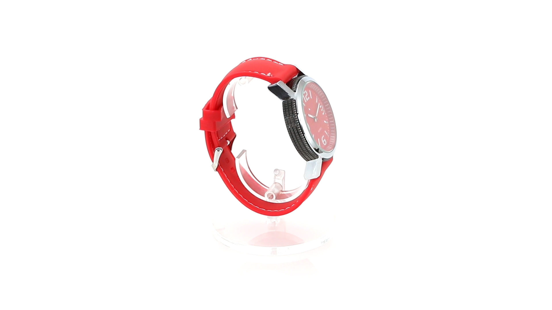 Armbanduhr mit coolem Design und kreisförmigem analogem Zifferblatt. Spritzwassergeschützt. In kräftigen Farben und mit verstellbarem Silikonarmband und weissem Klickverschluss. Präsentiert in einer individuellen Tasche mit verstärkendem Karton.
