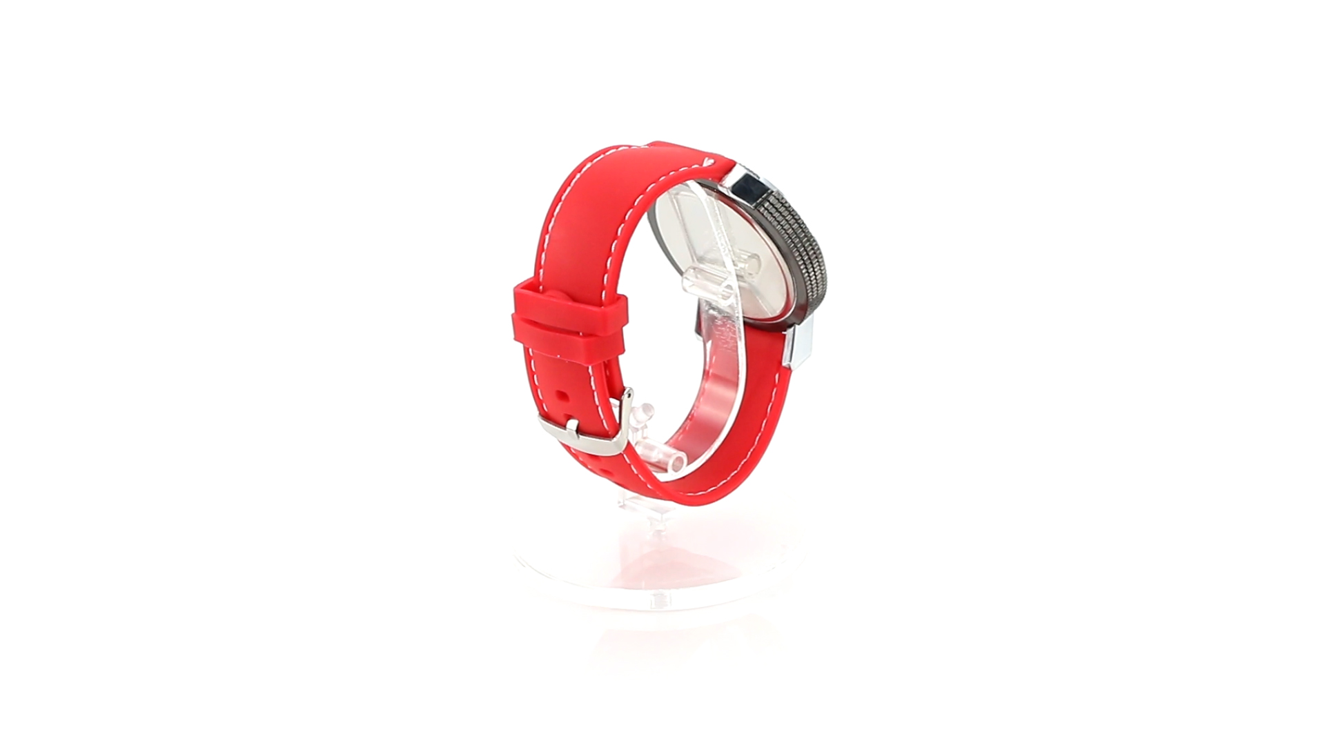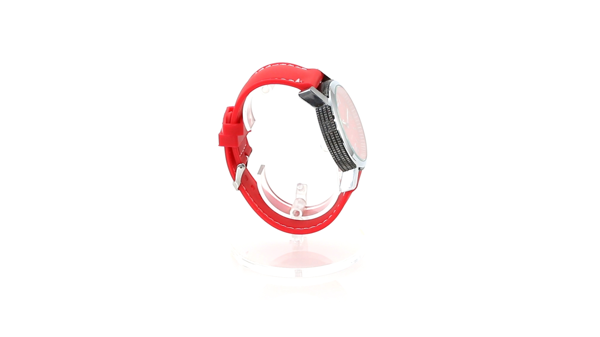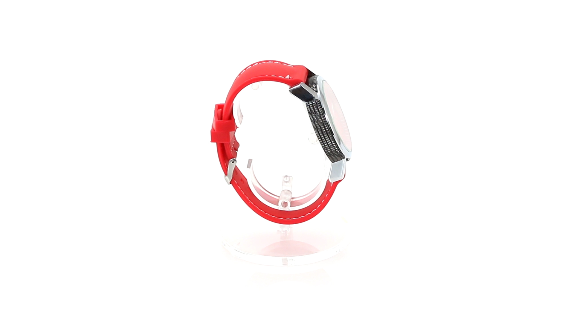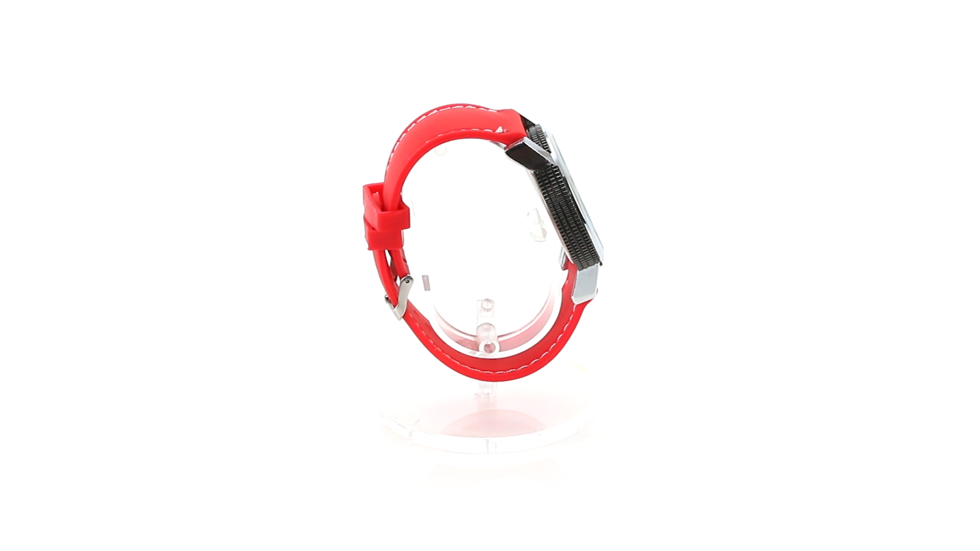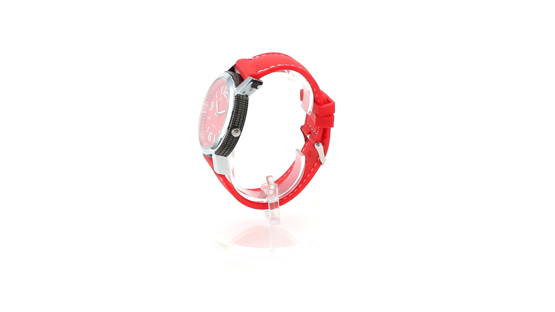 Armbanduhr mit coolem Design und kreisförmigem analogem Zifferblatt. Spritzwassergeschützt. In kräftigen Farben und mit verstellbarem Silikonarmband und weissem Klickverschluss. Präsentiert in einer individuellen Tasche mit verstärkendem Karton.