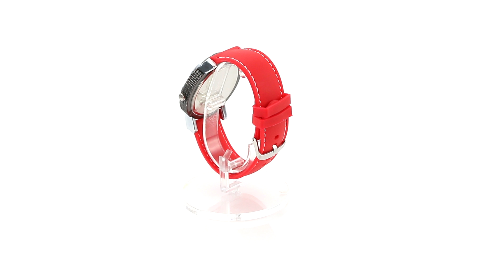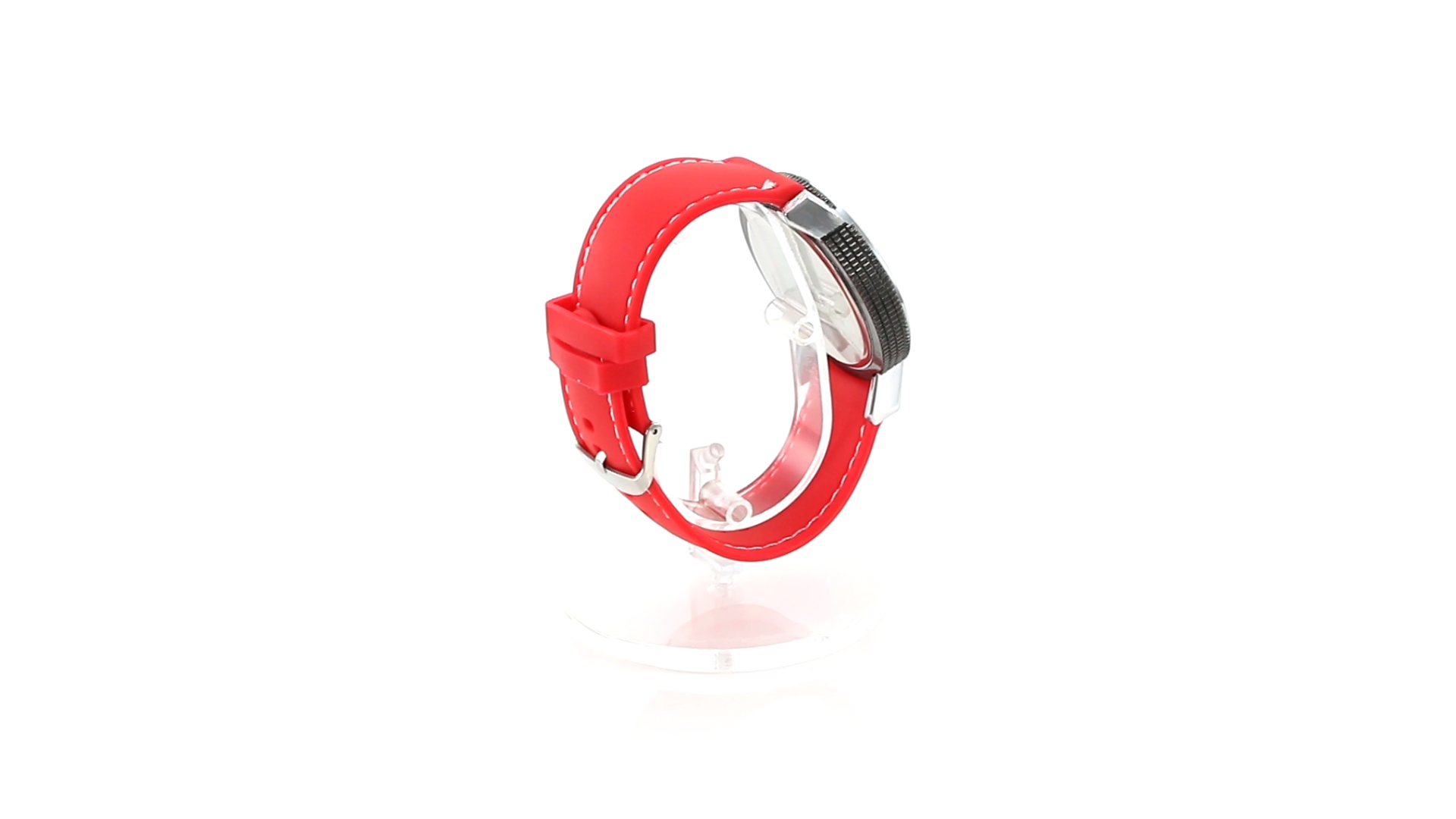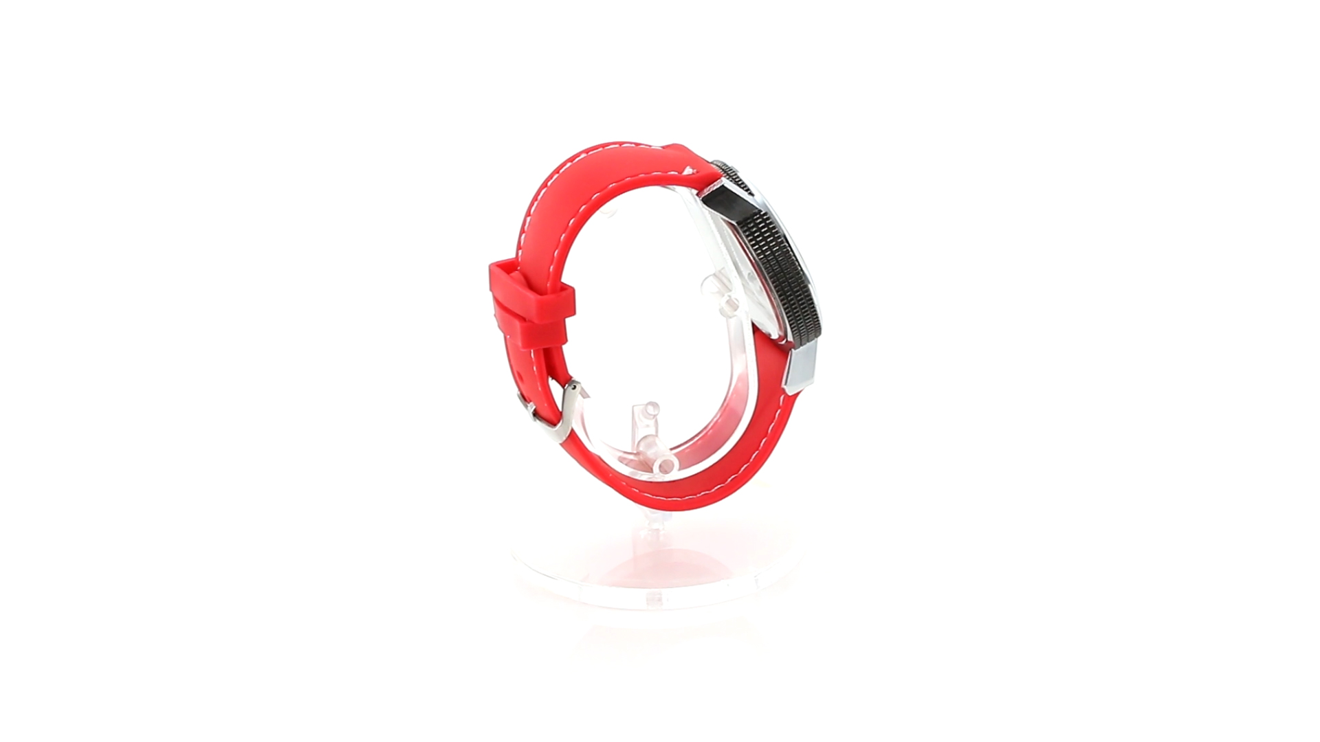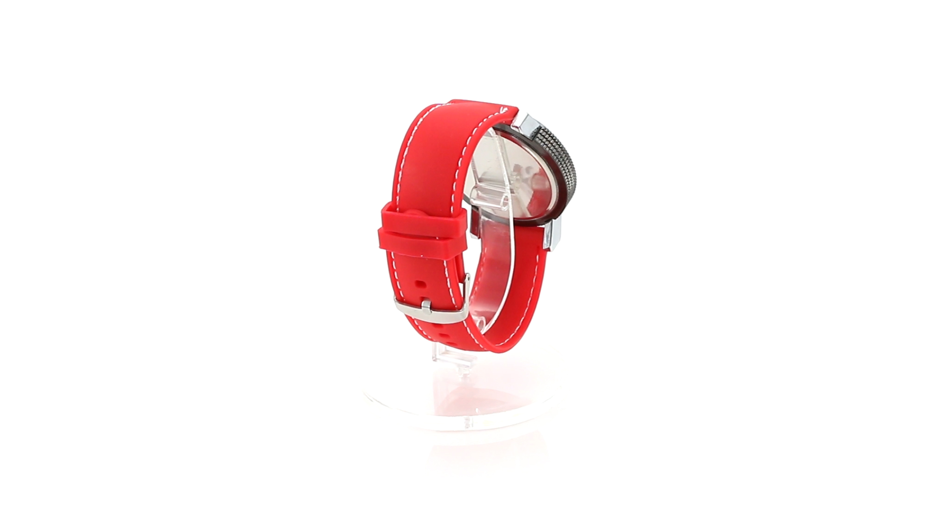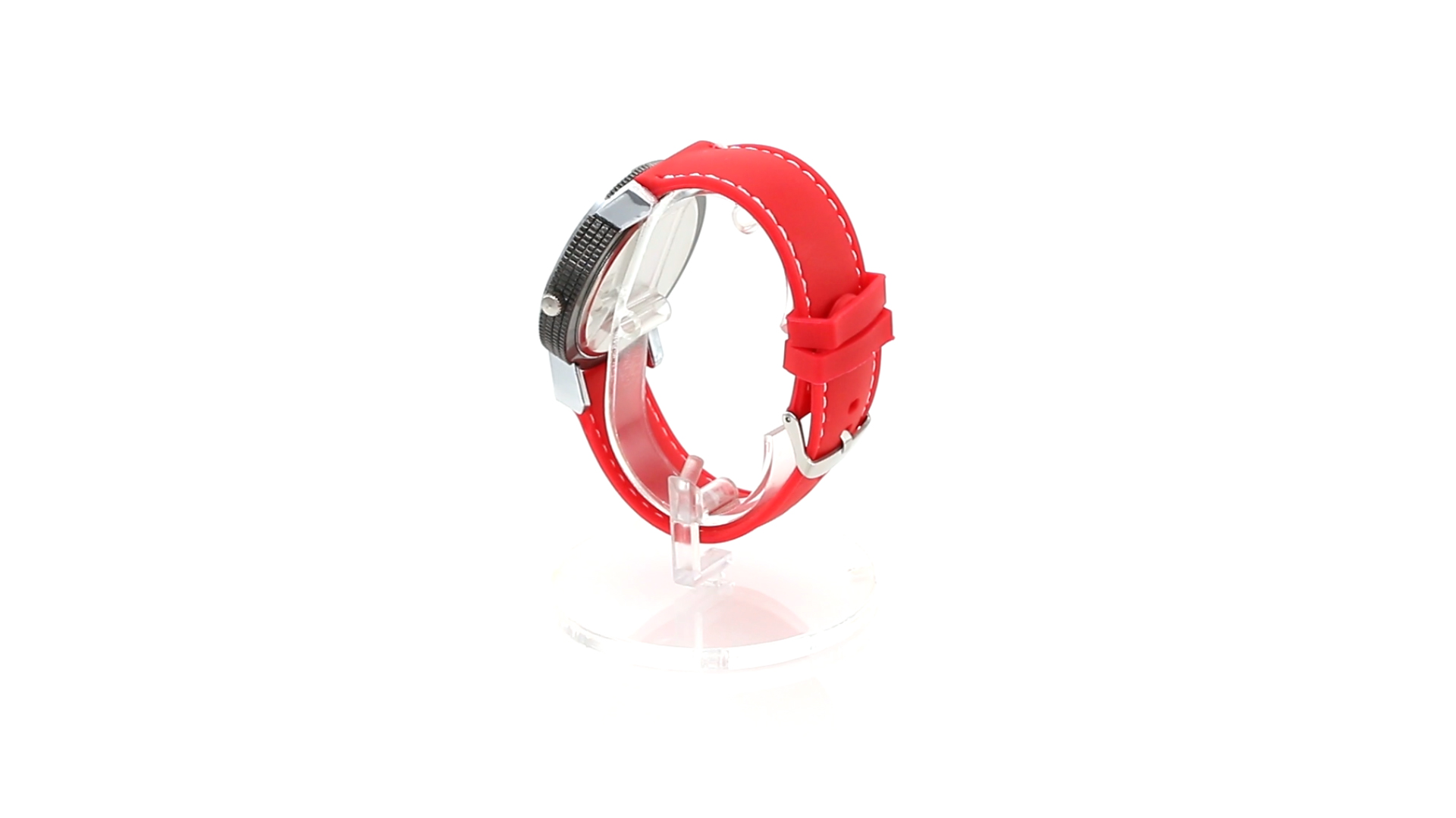 Armbanduhr mit coolem Design und kreisförmigem analogem Zifferblatt. Spritzwassergeschützt. In kräftigen Farben und mit verstellbarem Silikonarmband und weissem Klickverschluss. Präsentiert in einer individuellen Tasche mit verstärkendem Karton.