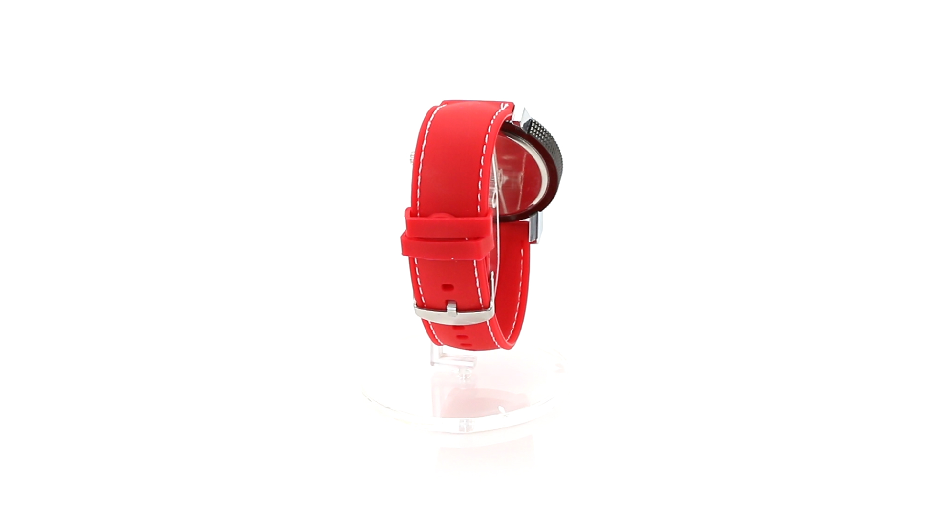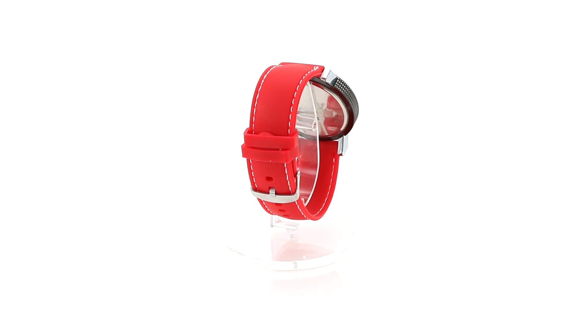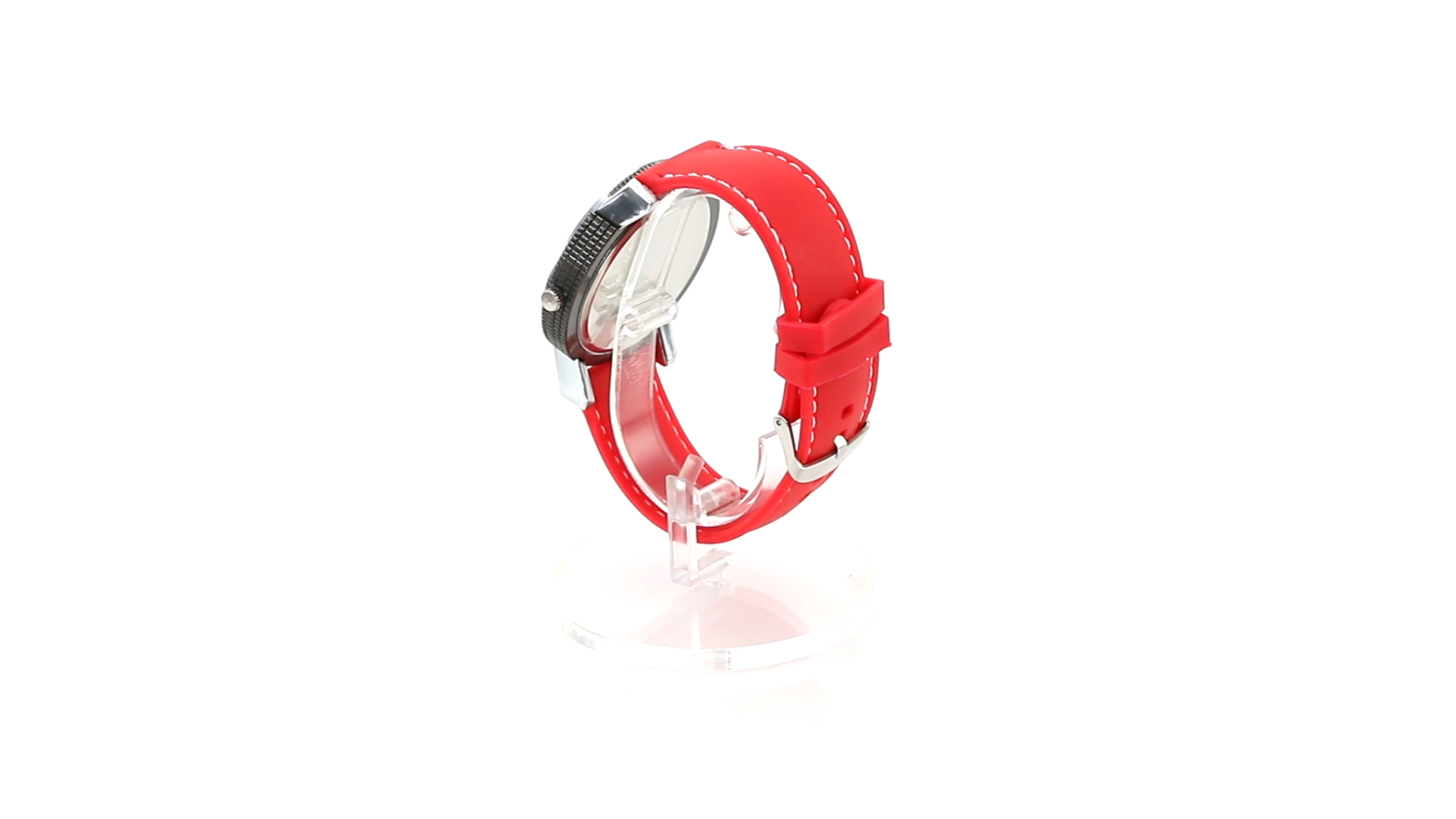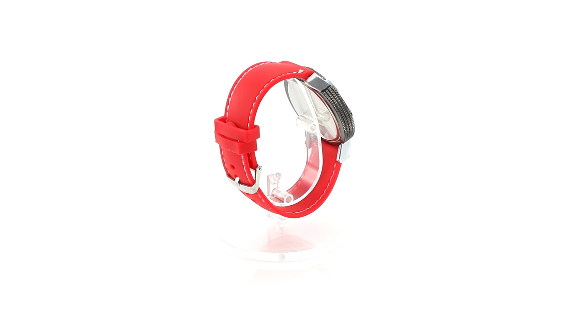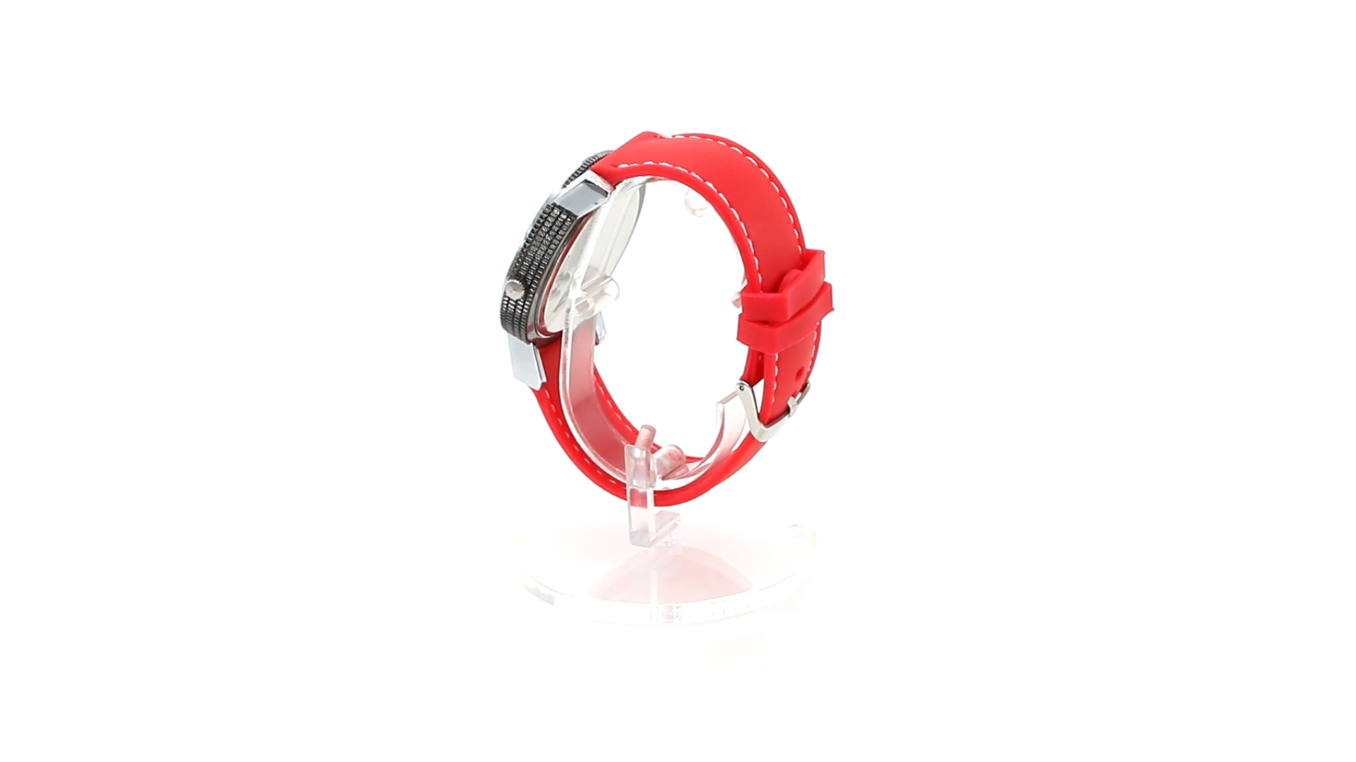 Armbanduhr mit coolem Design und kreisförmigem analogem Zifferblatt. Spritzwassergeschützt. In kräftigen Farben und mit verstellbarem Silikonarmband und weissem Klickverschluss. Präsentiert in einer individuellen Tasche mit verstärkendem Karton.