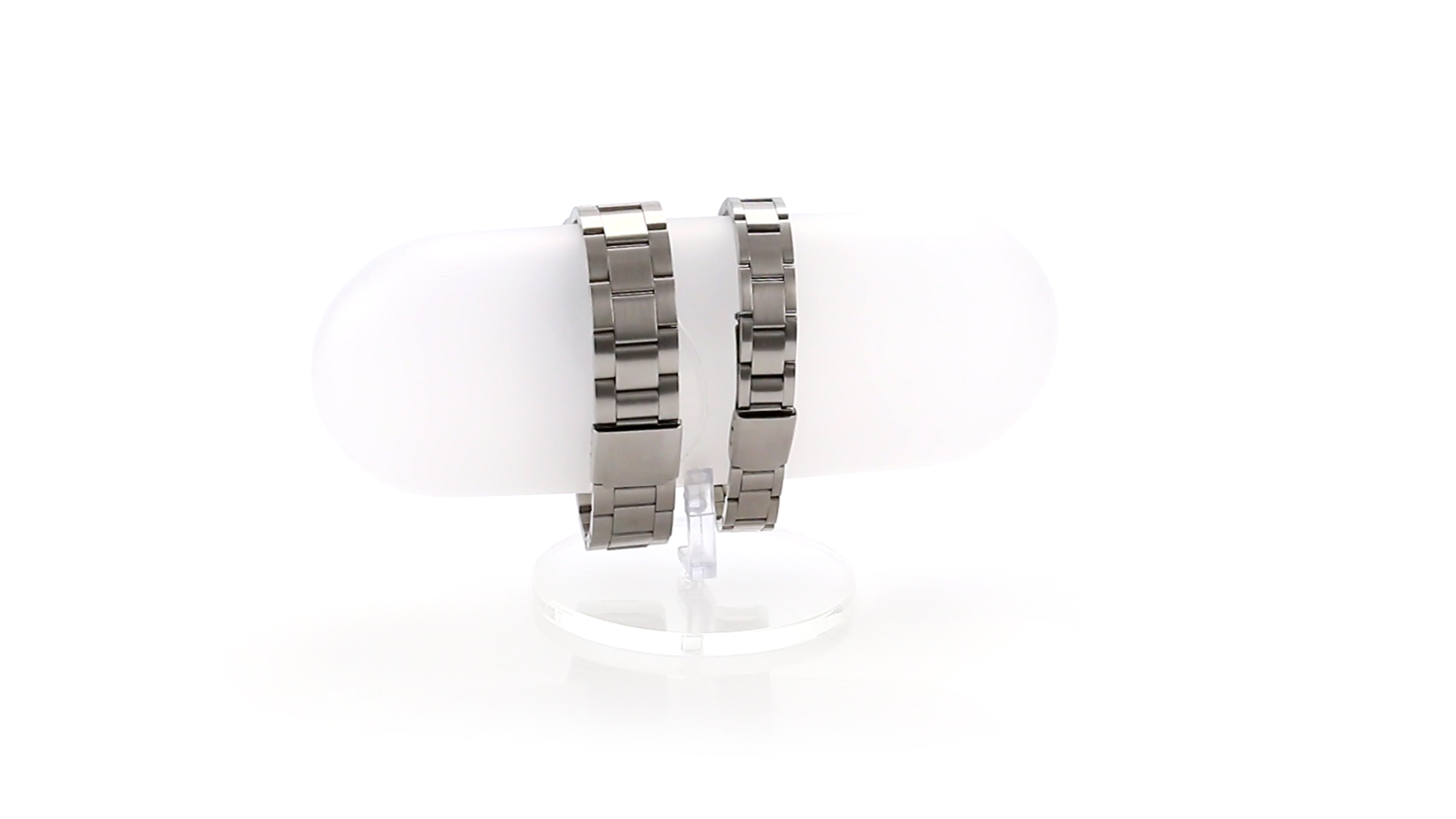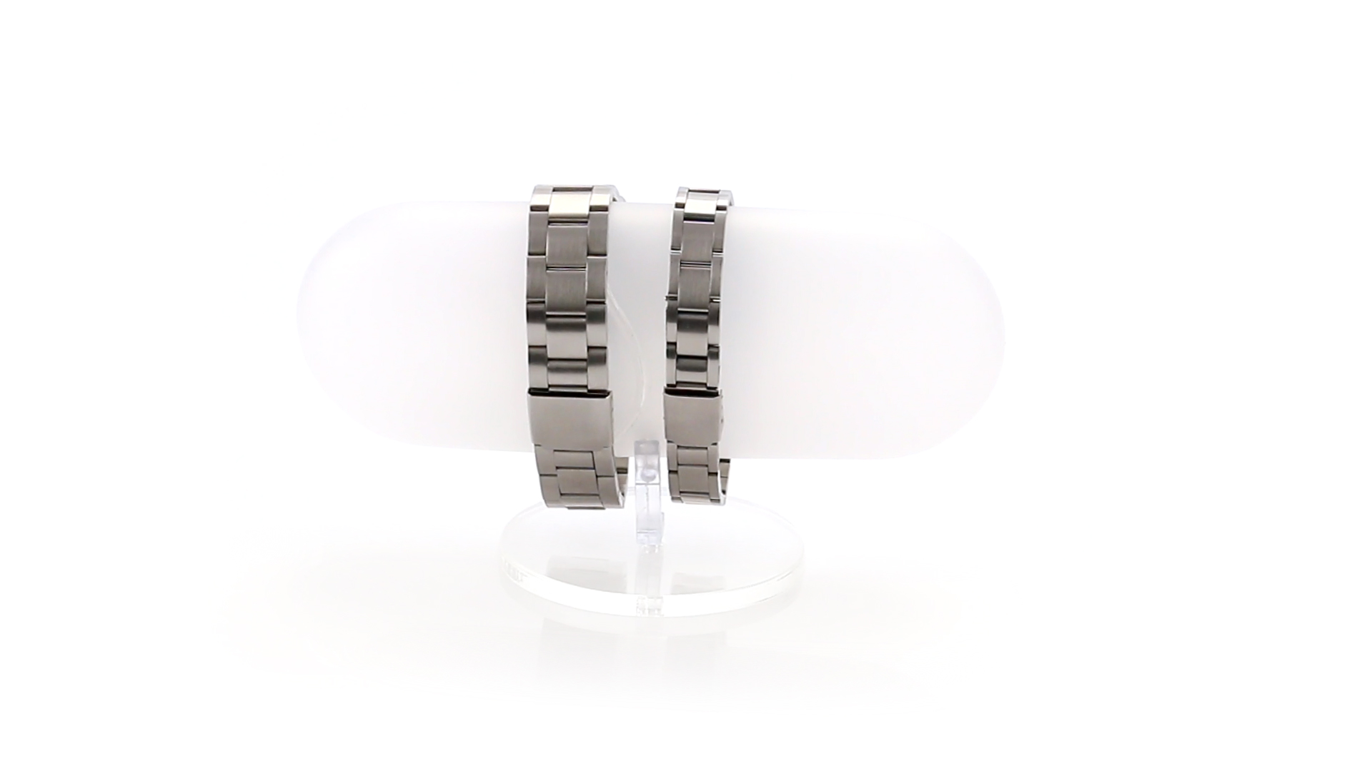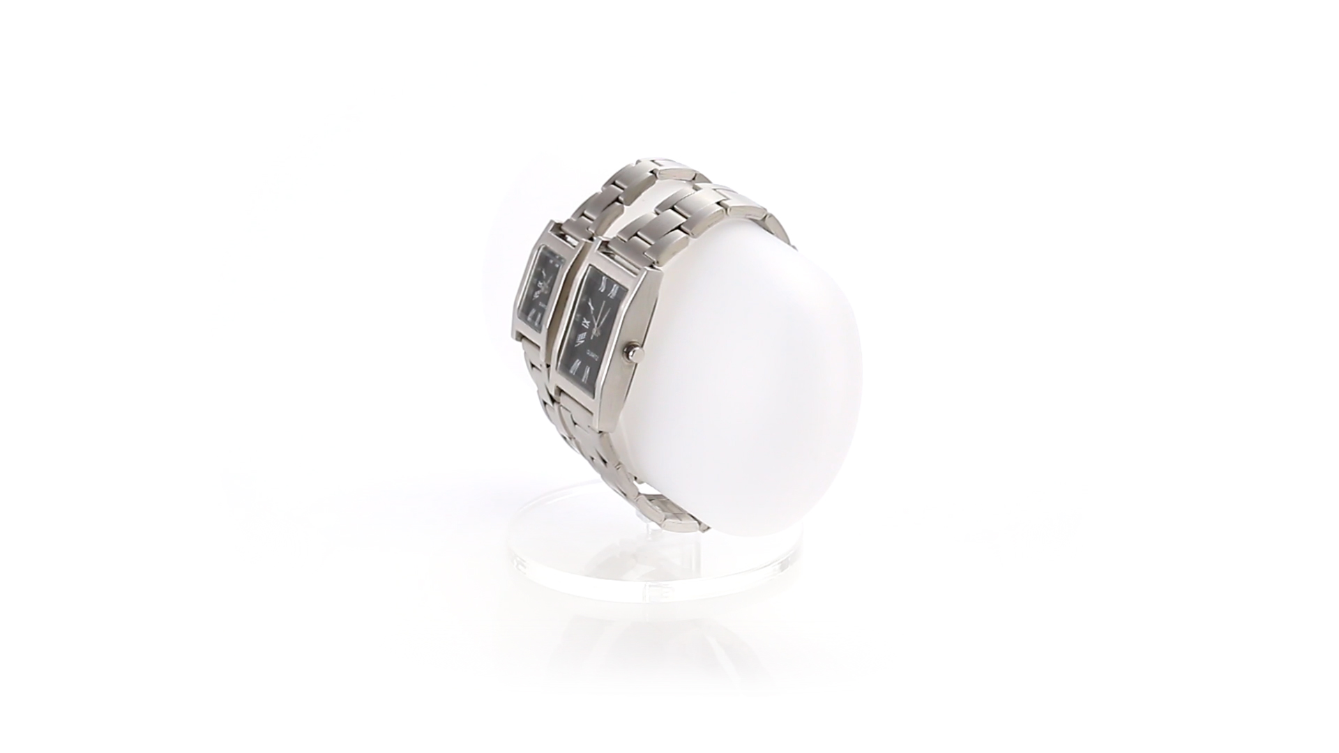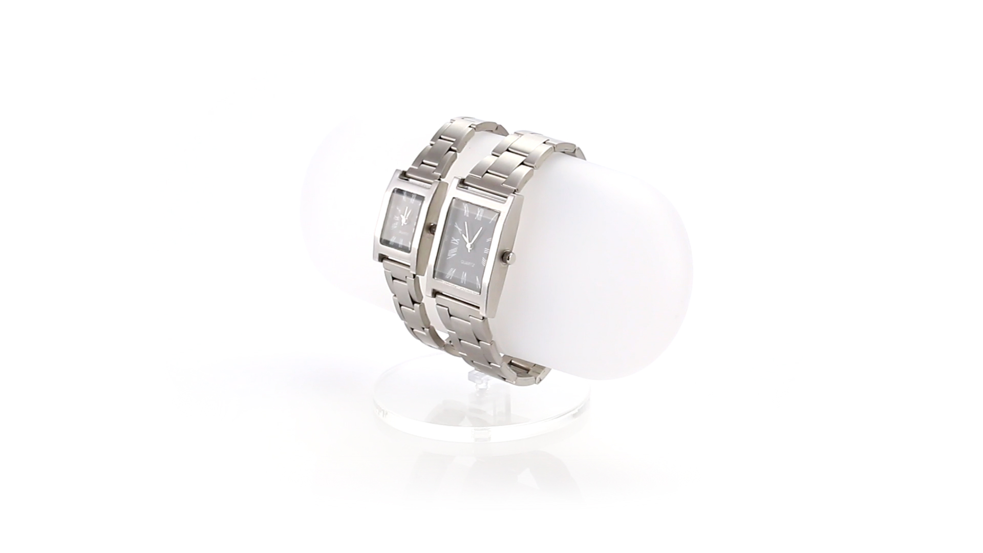 Elegantes Armbanduhren-Set für Mann und Frau. Metallgehäuse mit rechteckigem Analog-Zifferblatt sowie verstellbarem Metallband. Präsentiert in einer individuellen schwarzen Schachtel mit Magnetverschluss.
