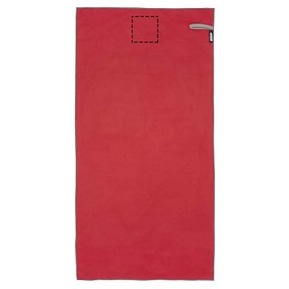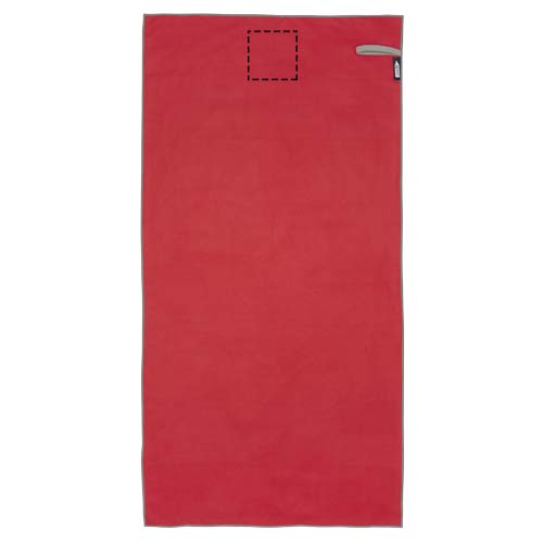 Die Pieter Sporthandtuch saugt sehr gut auf, ist leicht, trocknet schnell und der Stoff ist langlebig und extrem weich. Gefaltet und mit dem Gummiband gesichert ist das Handtuch klein und handlich, gut für Fitnessstudio, Schwimmbad oder für Rucksacktouren und Camping. Das Handtuch hat eine Grösse von 50 × 100 cm und besteht zu 90% aus GRS-recyceltem Polyester und zu 10% aus Nylon. Es kann bei 40 °C in der Maschine gewaschen werden. Das Handtuch wird mit einem Aufbewahrungsbeutel (17 × 13 cm) aus recyceltem PET-Kunststoff geliefert, der sich hervorragend für den Aufdruck eines Logos eignet.