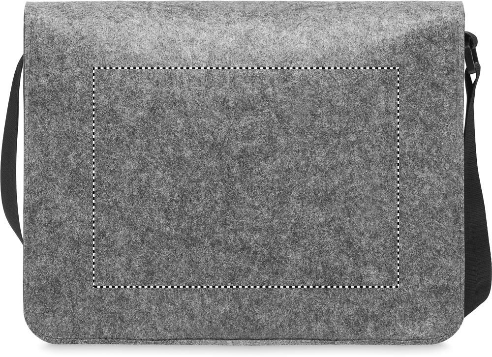 Umhängetasche aus RPET-Filz. Klettverschluss und Umhängegurt. Bietet Platz für einen 15'' Laptop.