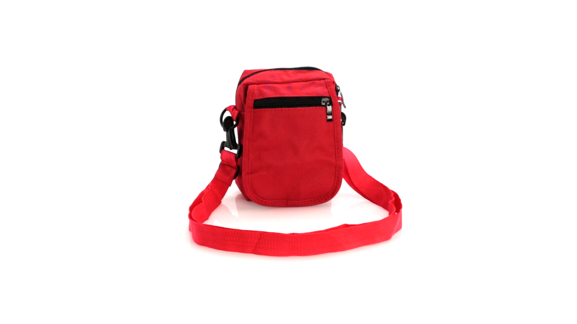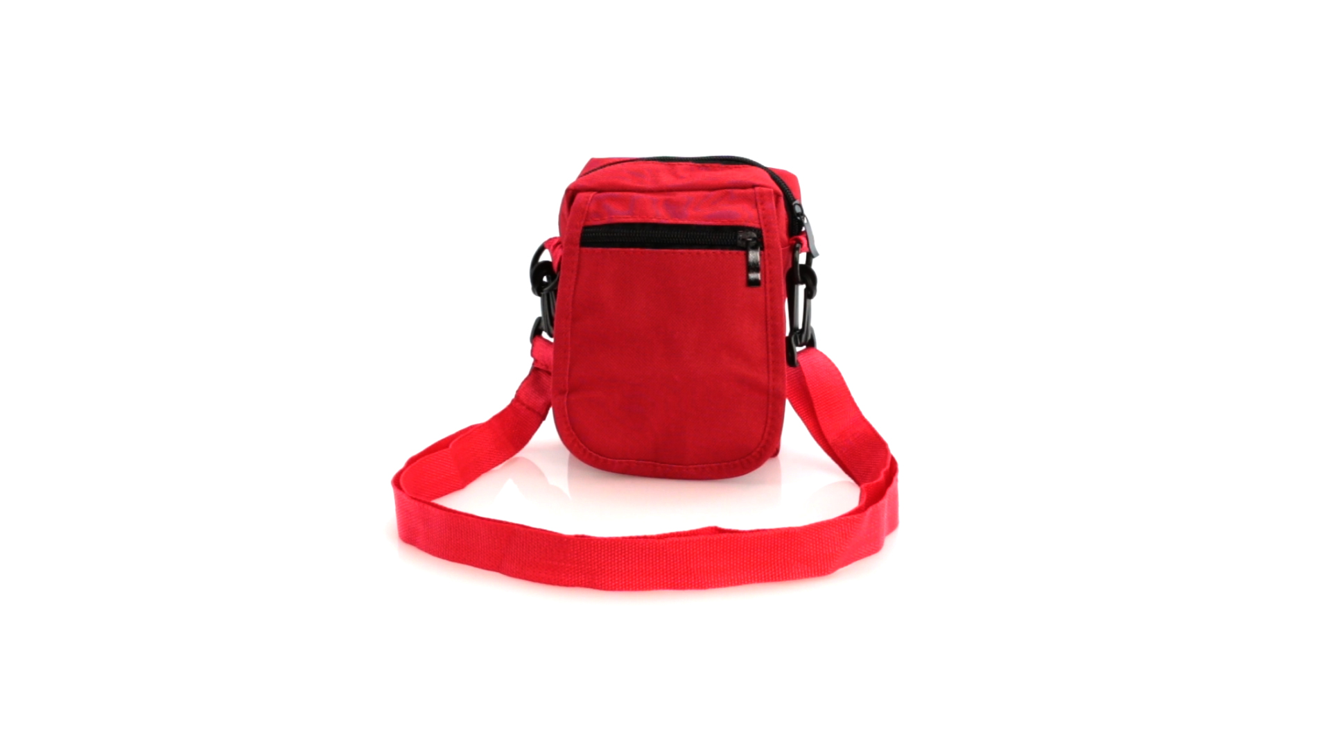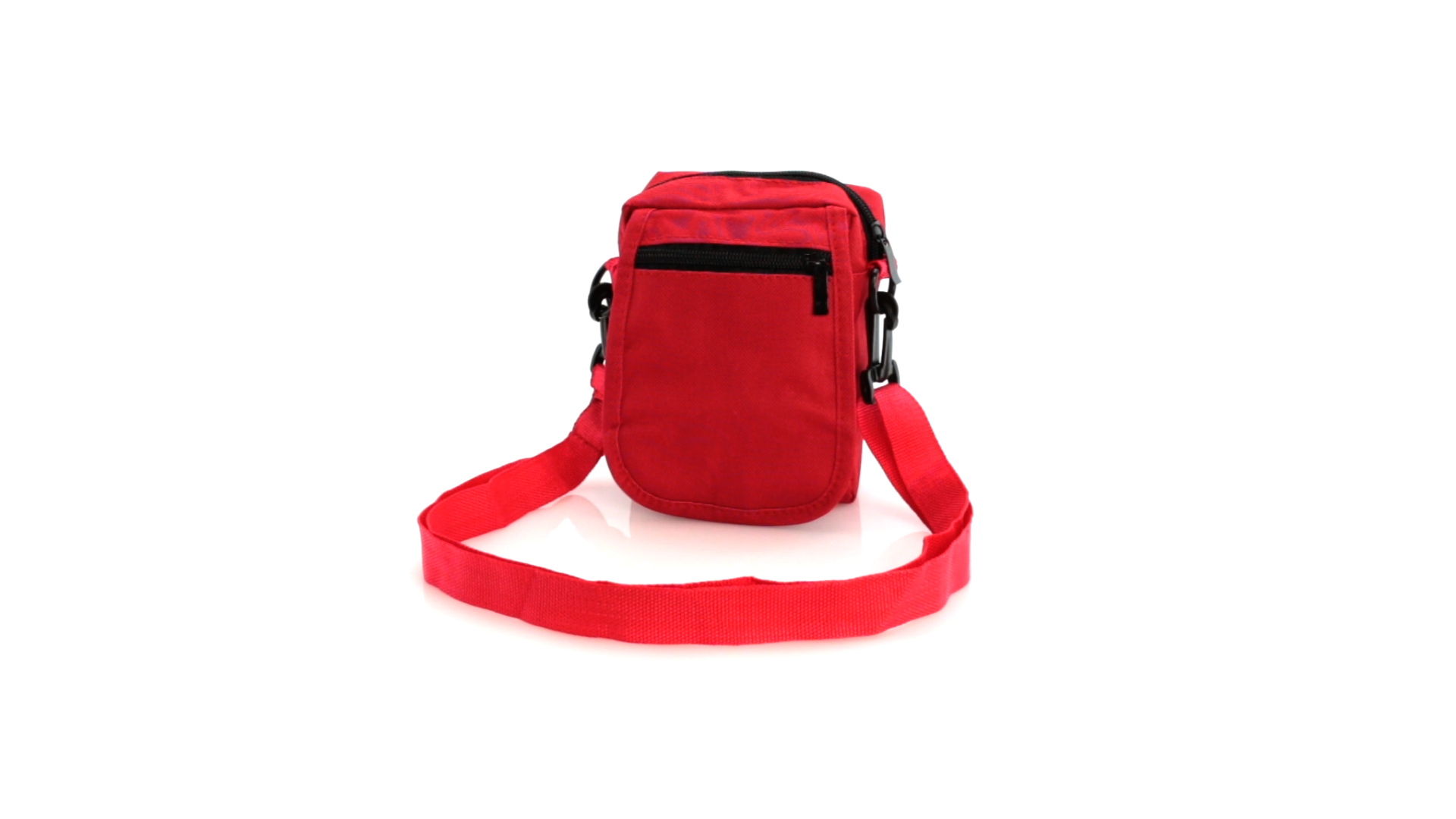 Mini-Umhängetasche aus resistentem 600D Polyester in verschiedenen Farben. Mit Reissverschluss, Klappe mit Klettverschluss und Reissverschlusstasche. Schlaufe für die Befestigung am Gürtel auf der Rückseite. Zudem mit farblich passendem, verstellbarem Schultergurt mit Karabinerbefestigung.