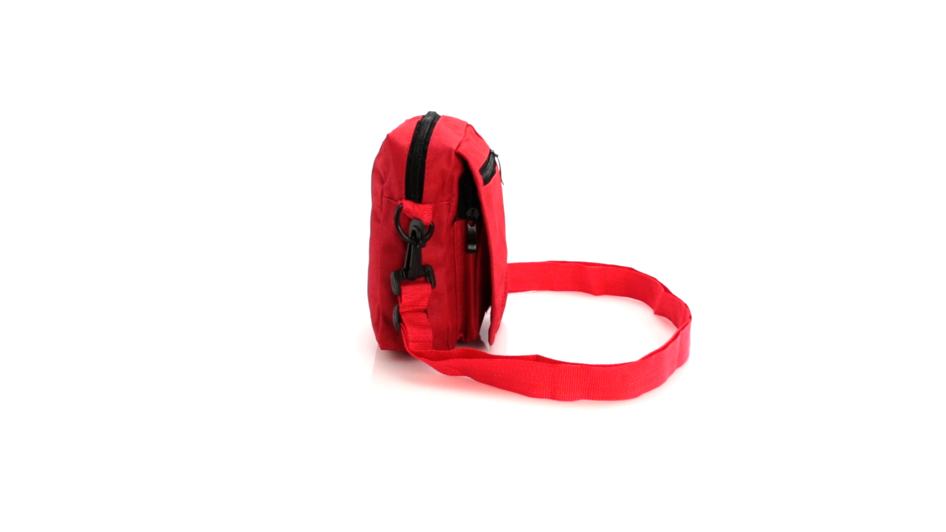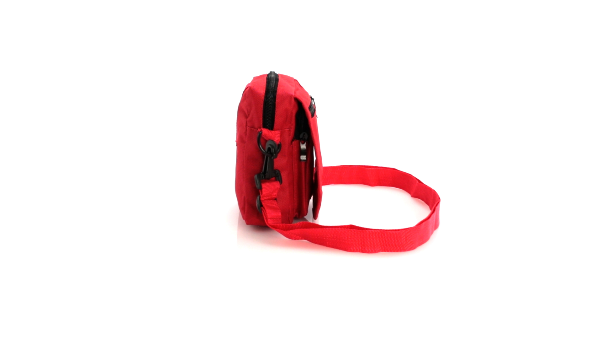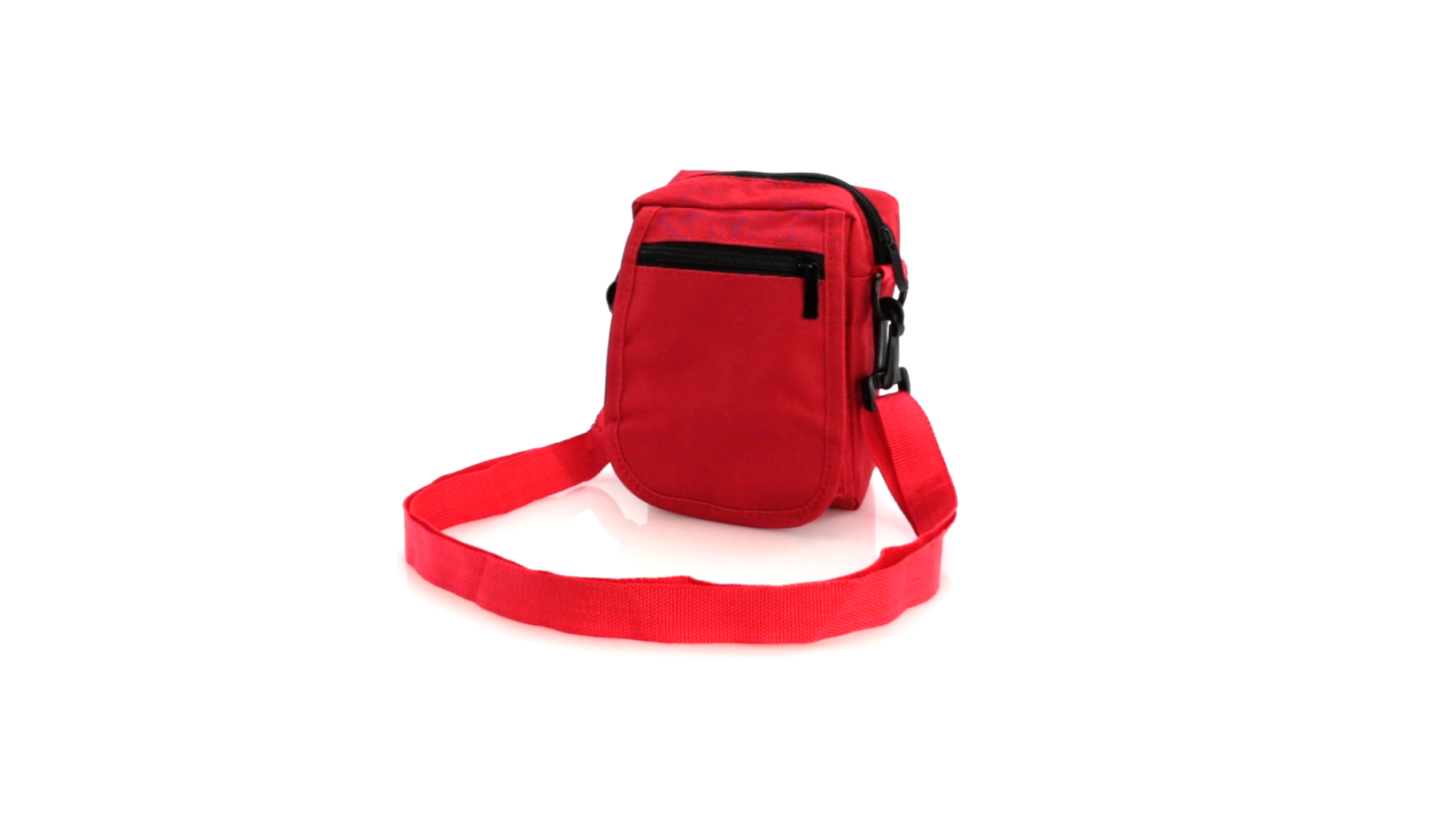 Mini-Umhängetasche aus resistentem 600D Polyester in verschiedenen Farben. Mit Reissverschluss, Klappe mit Klettverschluss und Reissverschlusstasche. Schlaufe für die Befestigung am Gürtel auf der Rückseite. Zudem mit farblich passendem, verstellbarem Schultergurt mit Karabinerbefestigung.