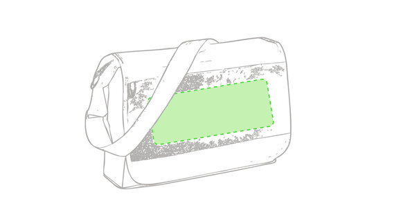 Originelle Schultertasche aus weichem 420D Polyester mit coolem, zweifarbigem Design in trendigen Farben. Mit Klettverschluss, Klappentasche mit Reissverschluss sowie verstellbaren Schultergurten und Zippern mit Stanzung für die Personalisierung mittels Doming / 3D Gel-Aufklebern.