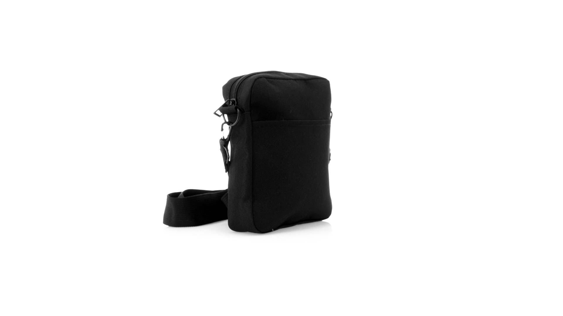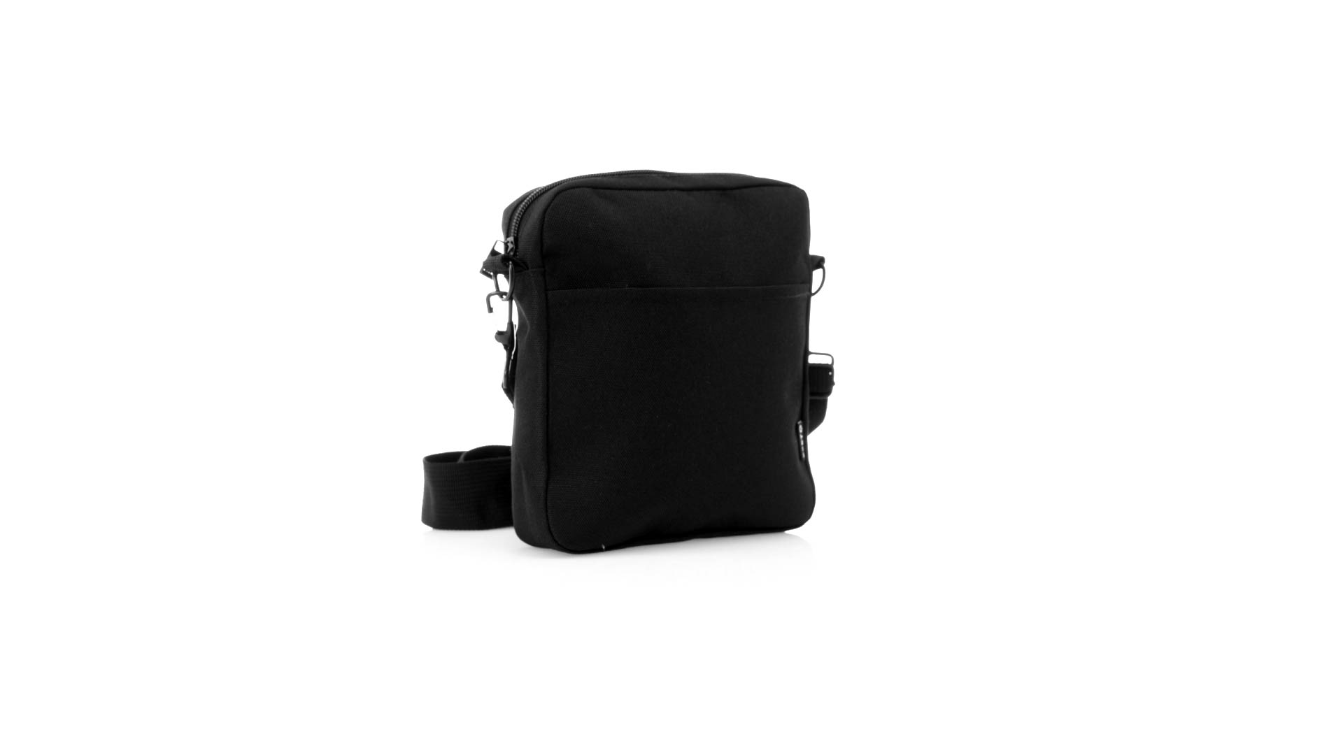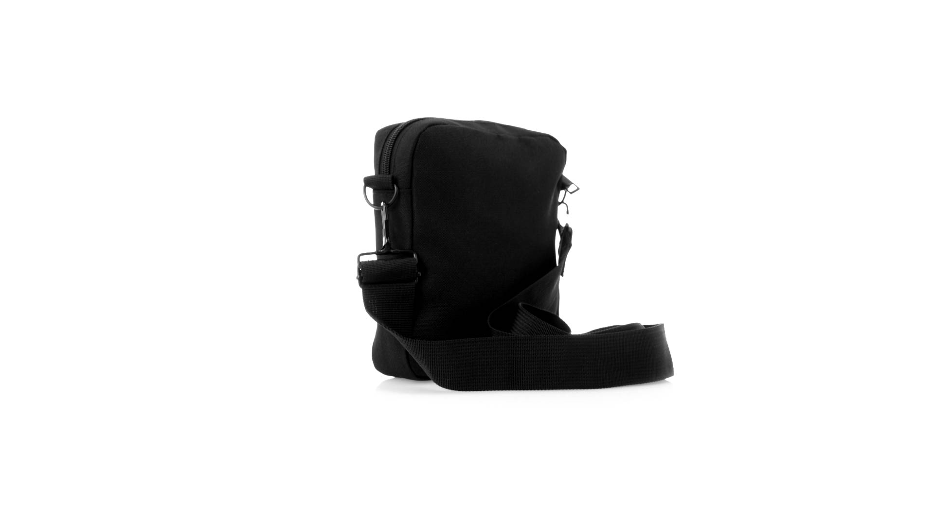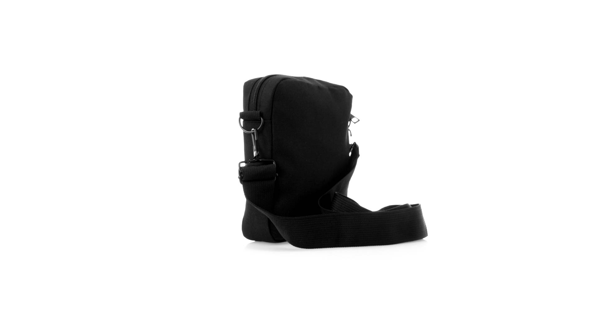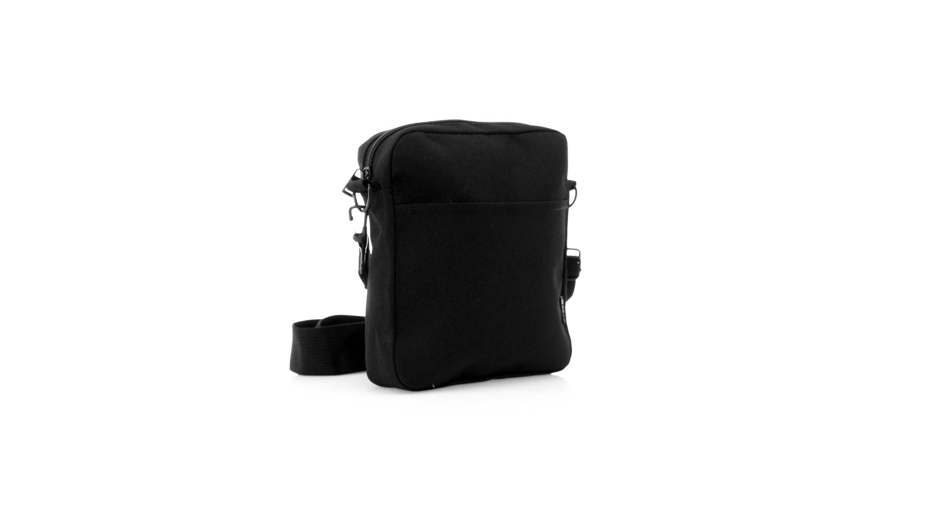 Umhängetasche aus RPET 600D-Polyester mit einer zentralen Reissverschlusstasche und einem leicht zugänglichen Vorderfach. Ausgestattet mit einem verstellbaren Riemen für mehr Komfort und einem RPET-Etikett. Einzeln in einer recycelten Tasche präsentiert.