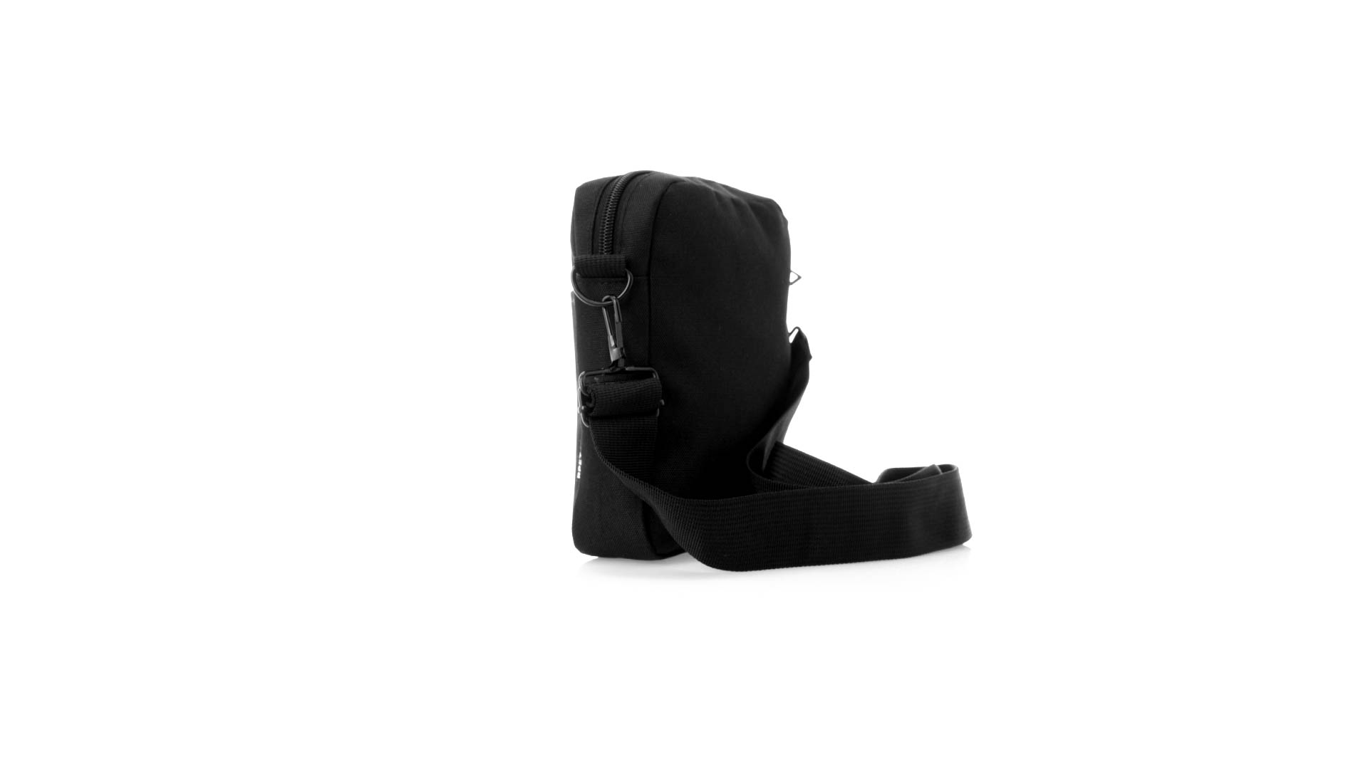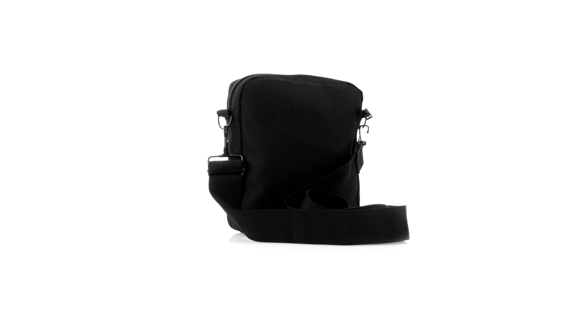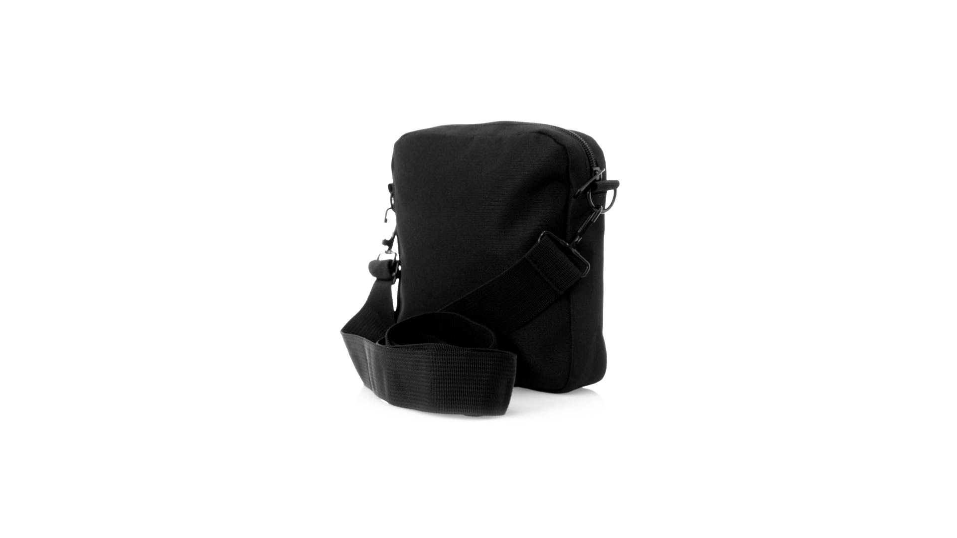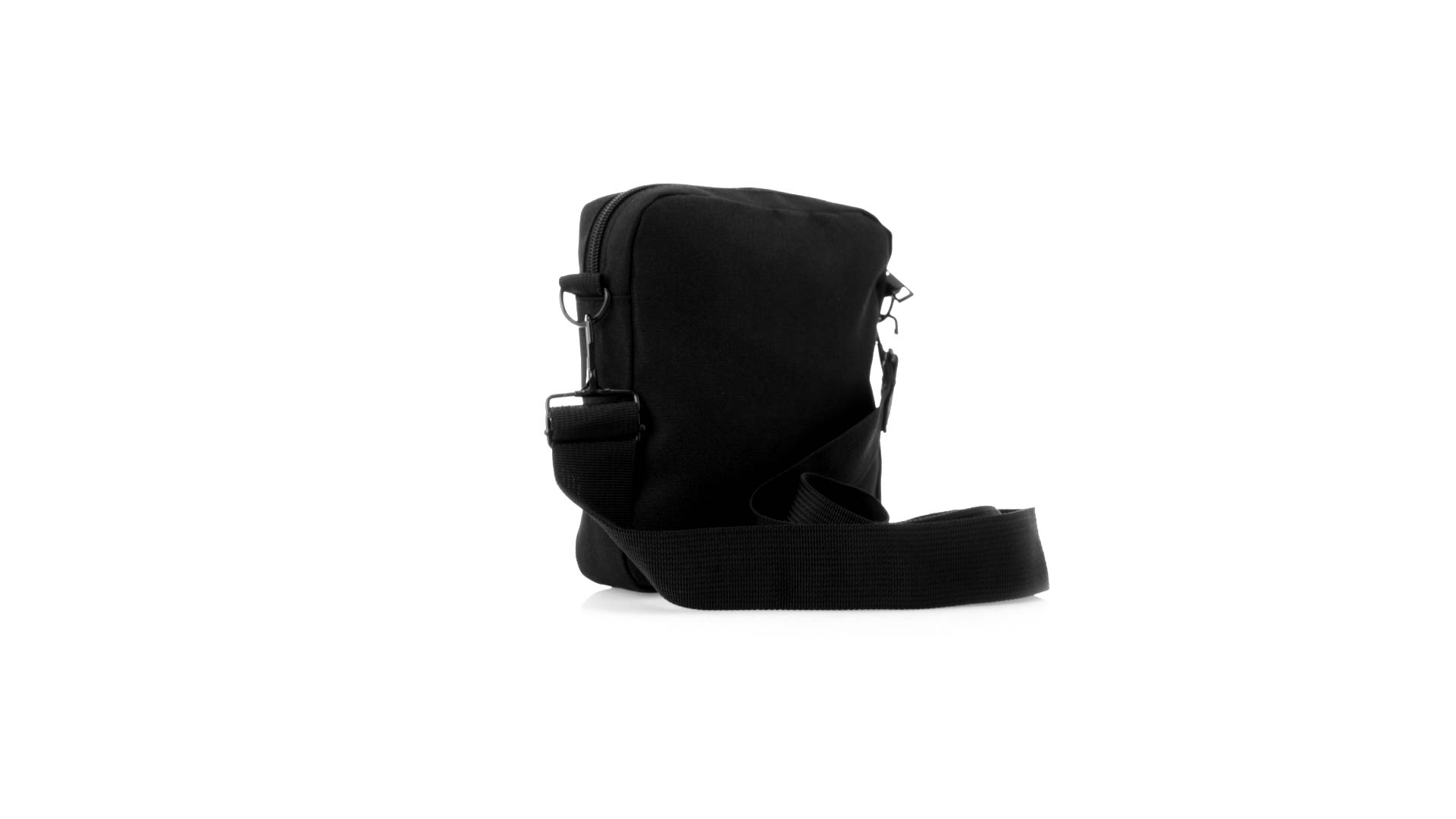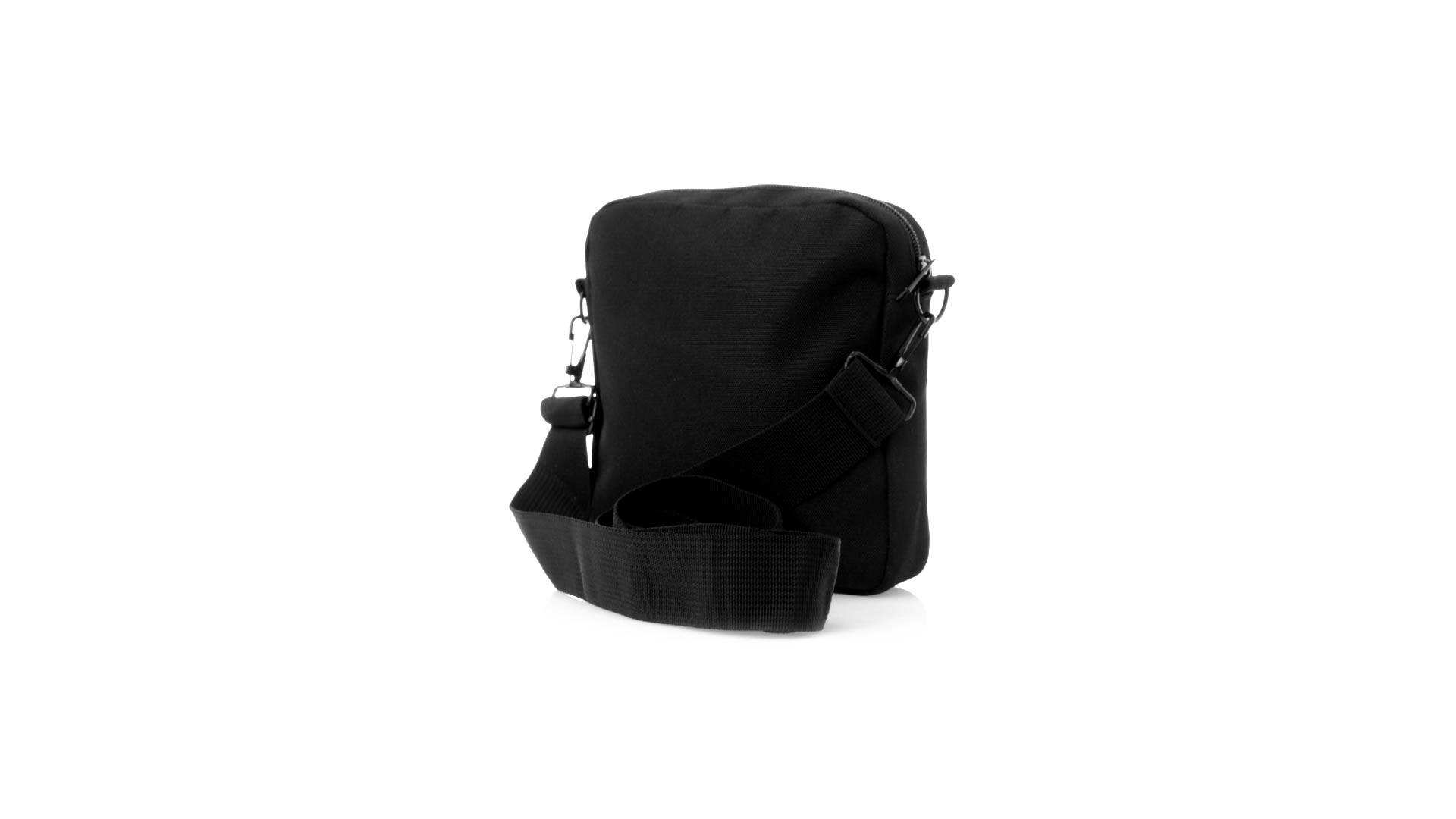 Umhängetasche aus RPET 600D-Polyester mit einer zentralen Reissverschlusstasche und einem leicht zugänglichen Vorderfach. Ausgestattet mit einem verstellbaren Riemen für mehr Komfort und einem RPET-Etikett. Einzeln in einer recycelten Tasche präsentiert.