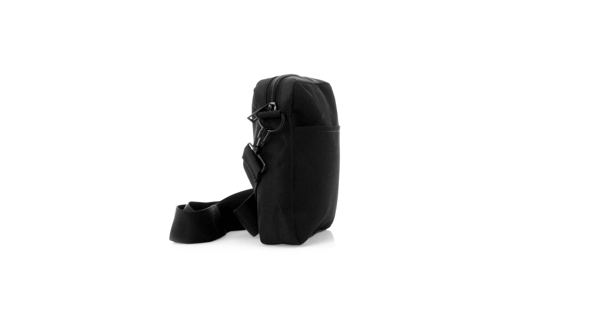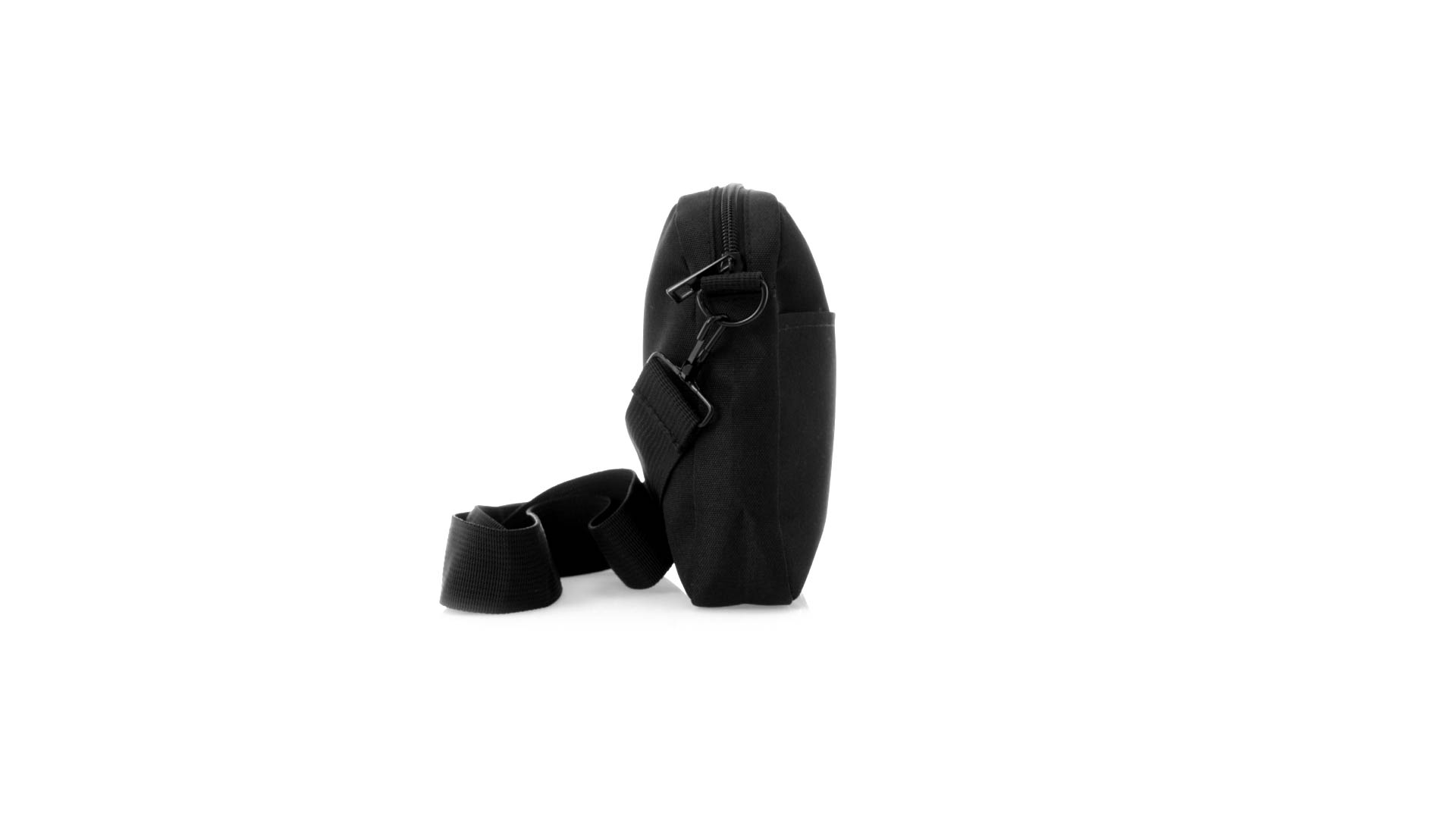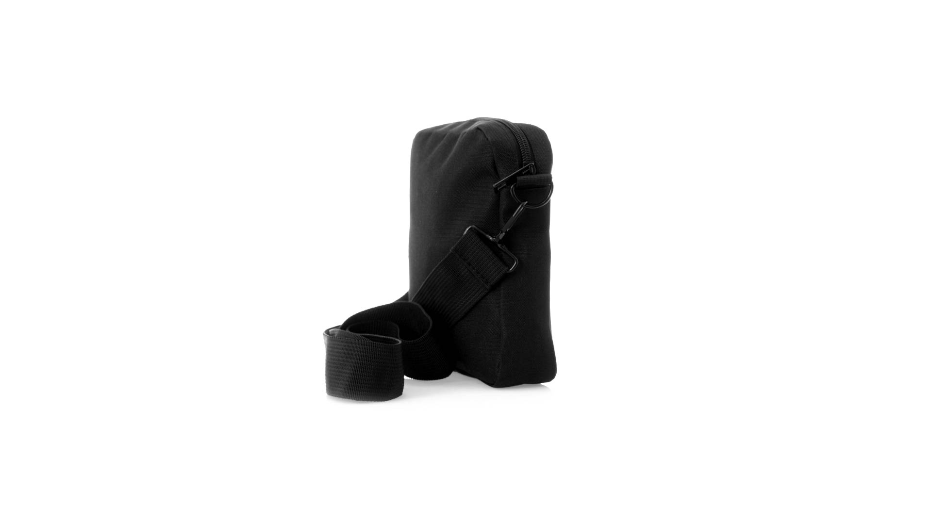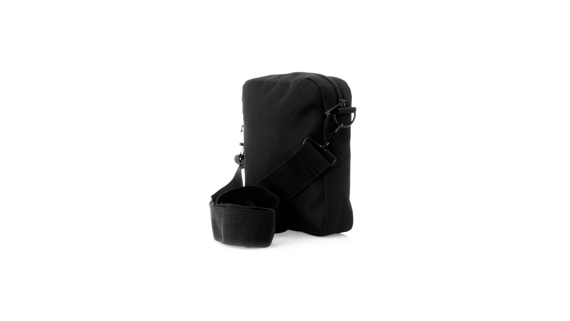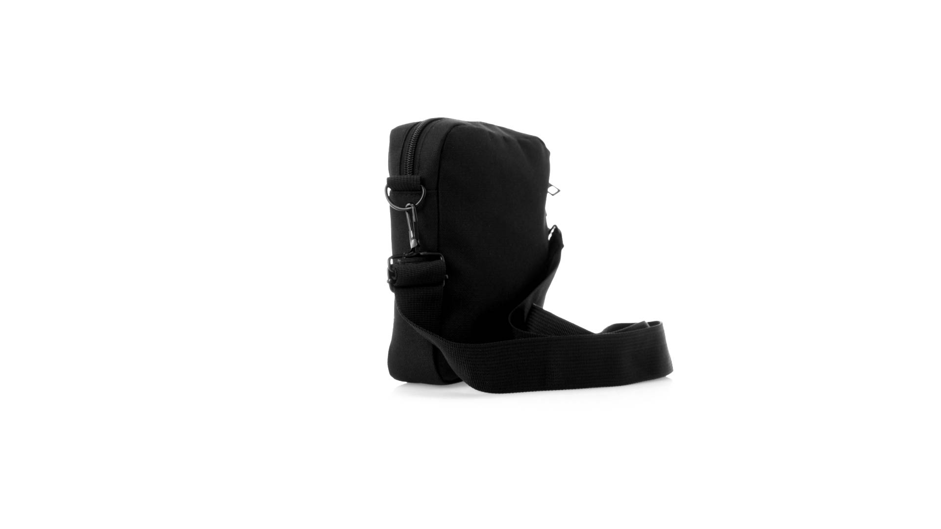 Umhängetasche aus RPET 600D-Polyester mit einer zentralen Reissverschlusstasche und einem leicht zugänglichen Vorderfach. Ausgestattet mit einem verstellbaren Riemen für mehr Komfort und einem RPET-Etikett. Einzeln in einer recycelten Tasche präsentiert.