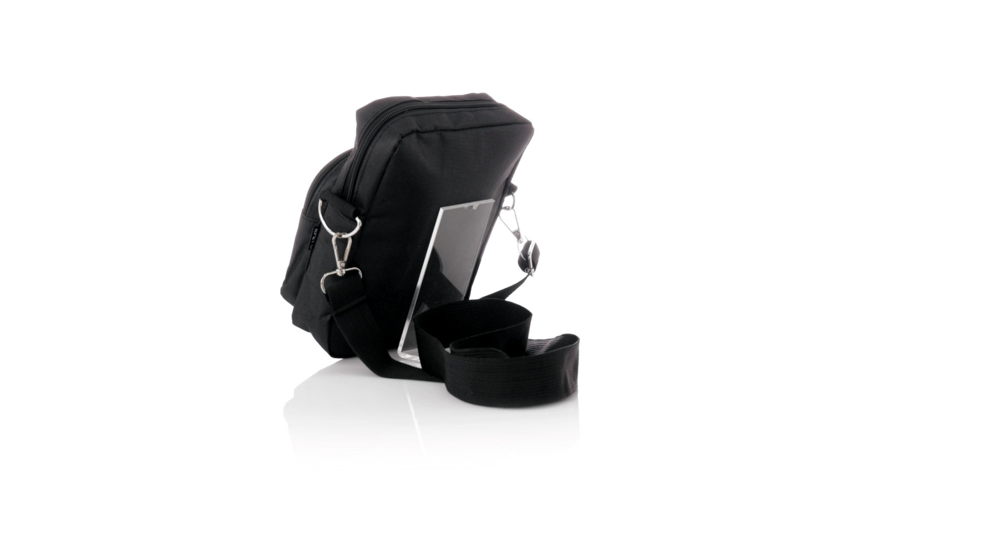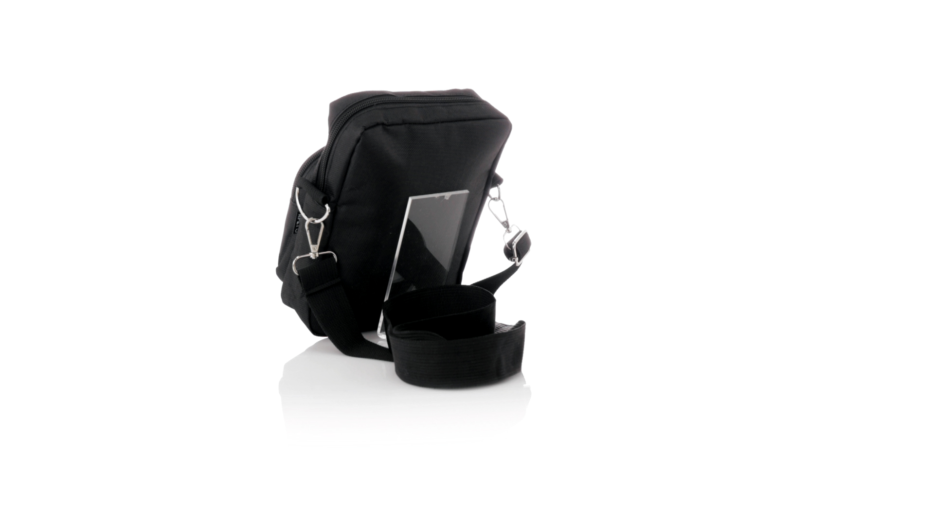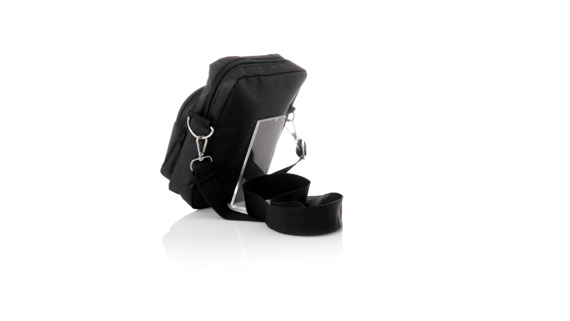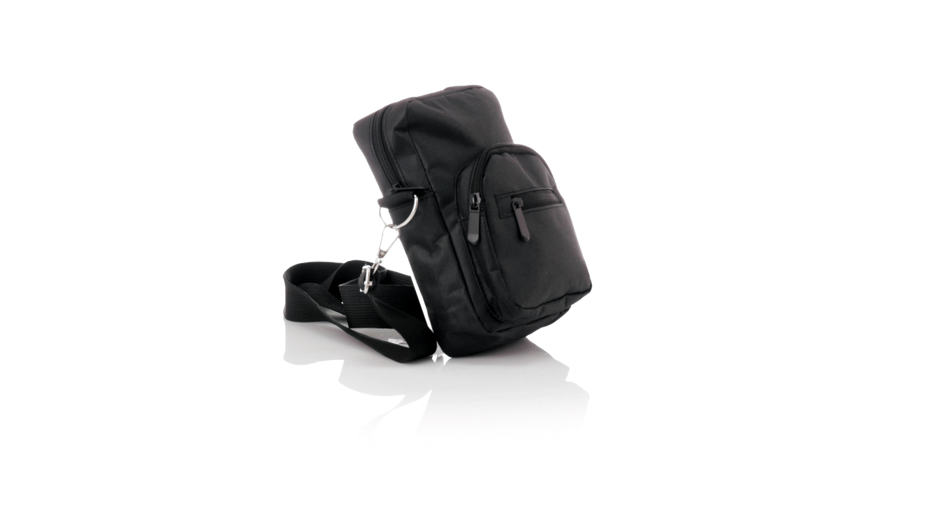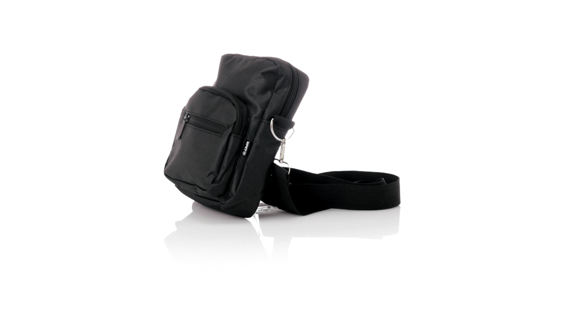 Umhängetasche aus RPET 600D-Polyester mit zentraler Reissverschlusstasche und doppeltem Reissverschluss sowie zwei Vorderfächern mit Schnellzugriff und Reissverschluss. Ausgestattet mit einem verstellbaren Riemen für mehr Komfort und einem RPET-Etikett. Einzeln in einer recycelten Tasche präsentiert. Umhängetasche aus RPET 600D-Polyester mit zentraler Reissverschlusstasche und doppeltem Reissverschluss sowie zwei Vorderfächern mit Schnellzugriff und Reissverschluss.