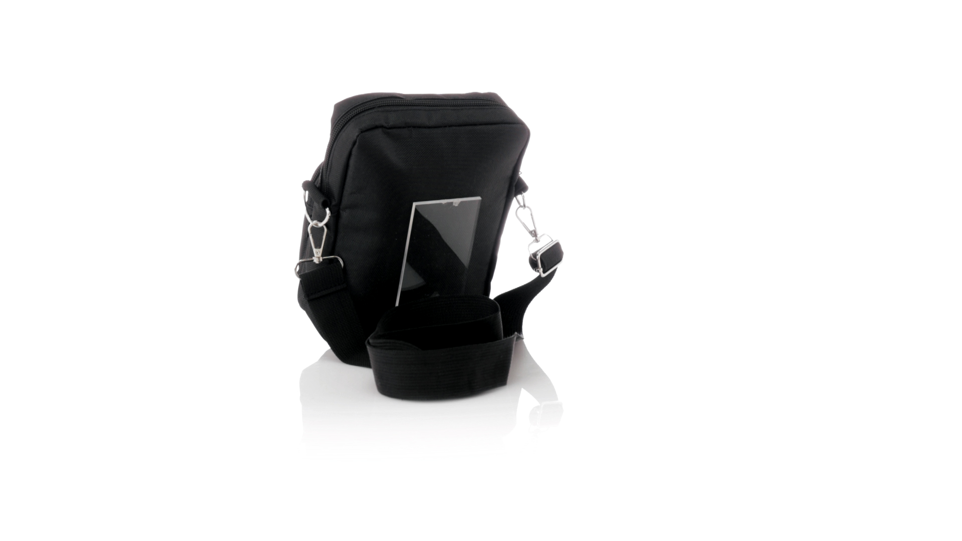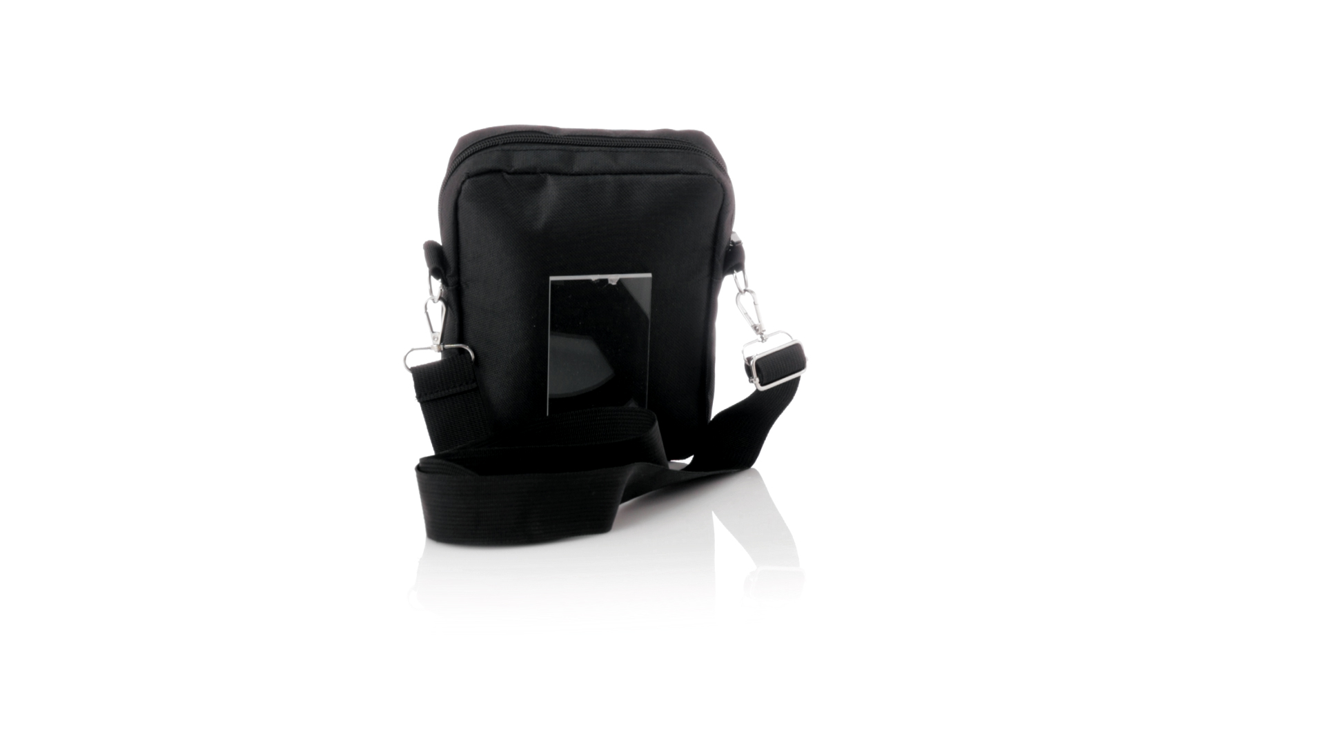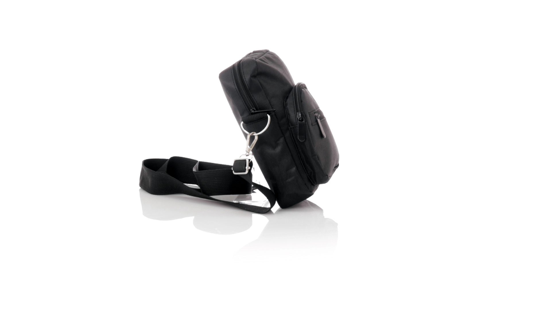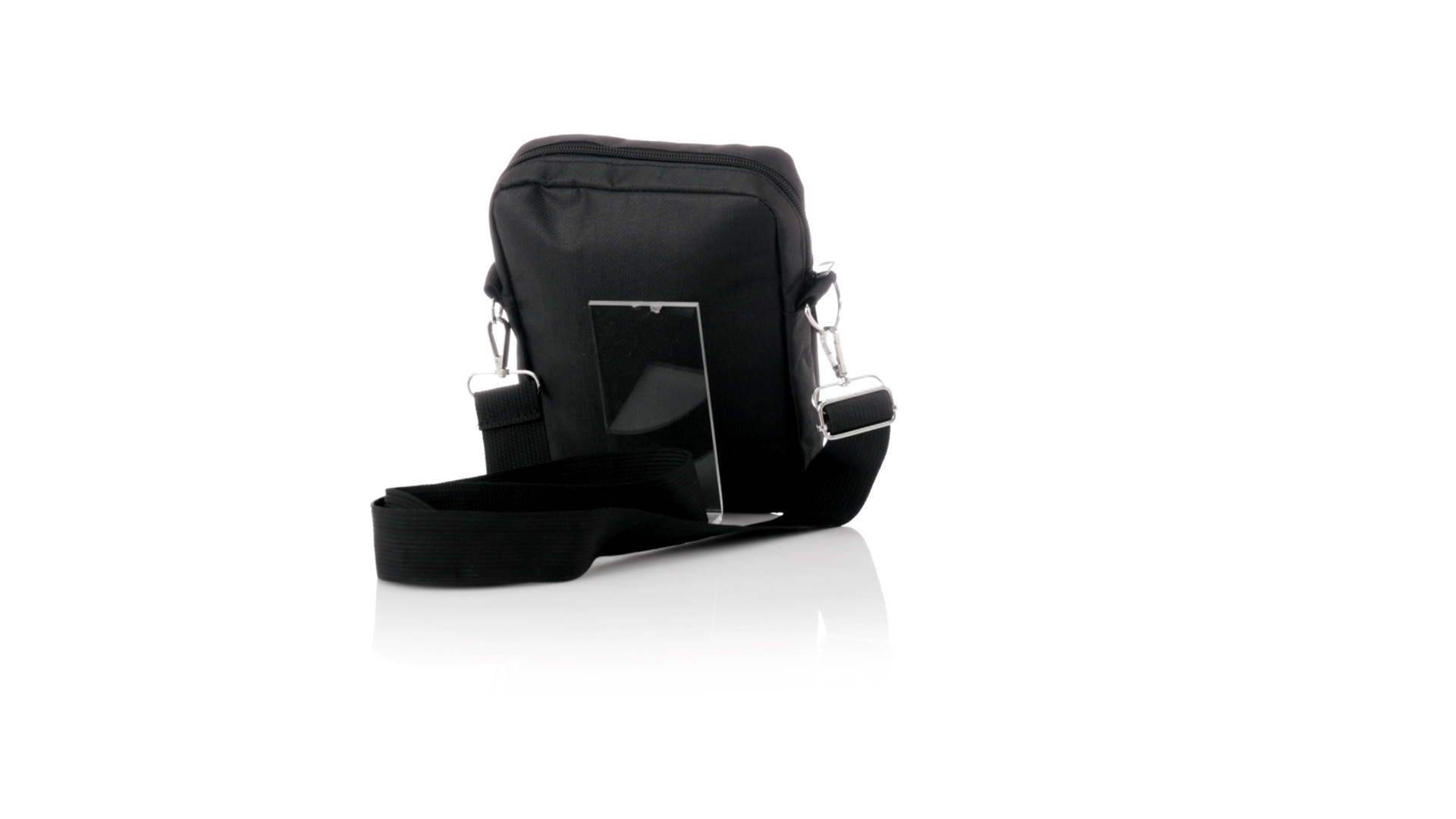 Umhängetasche aus RPET 600D-Polyester mit zentraler Reissverschlusstasche und doppeltem Reissverschluss sowie zwei Vorderfächern mit Schnellzugriff und Reissverschluss. Ausgestattet mit einem verstellbaren Riemen für mehr Komfort und einem RPET-Etikett. Einzeln in einer recycelten Tasche präsentiert. Umhängetasche aus RPET 600D-Polyester mit zentraler Reissverschlusstasche und doppeltem Reissverschluss sowie zwei Vorderfächern mit Schnellzugriff und Reissverschluss.