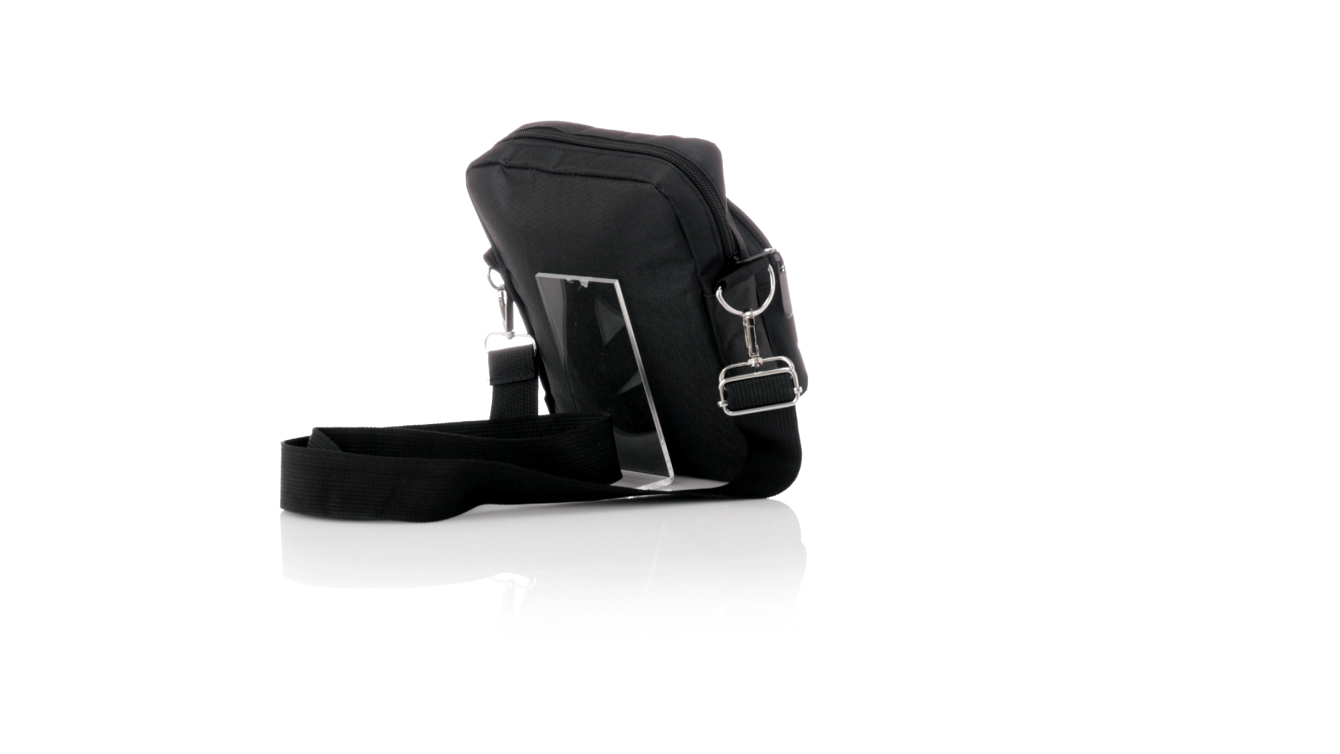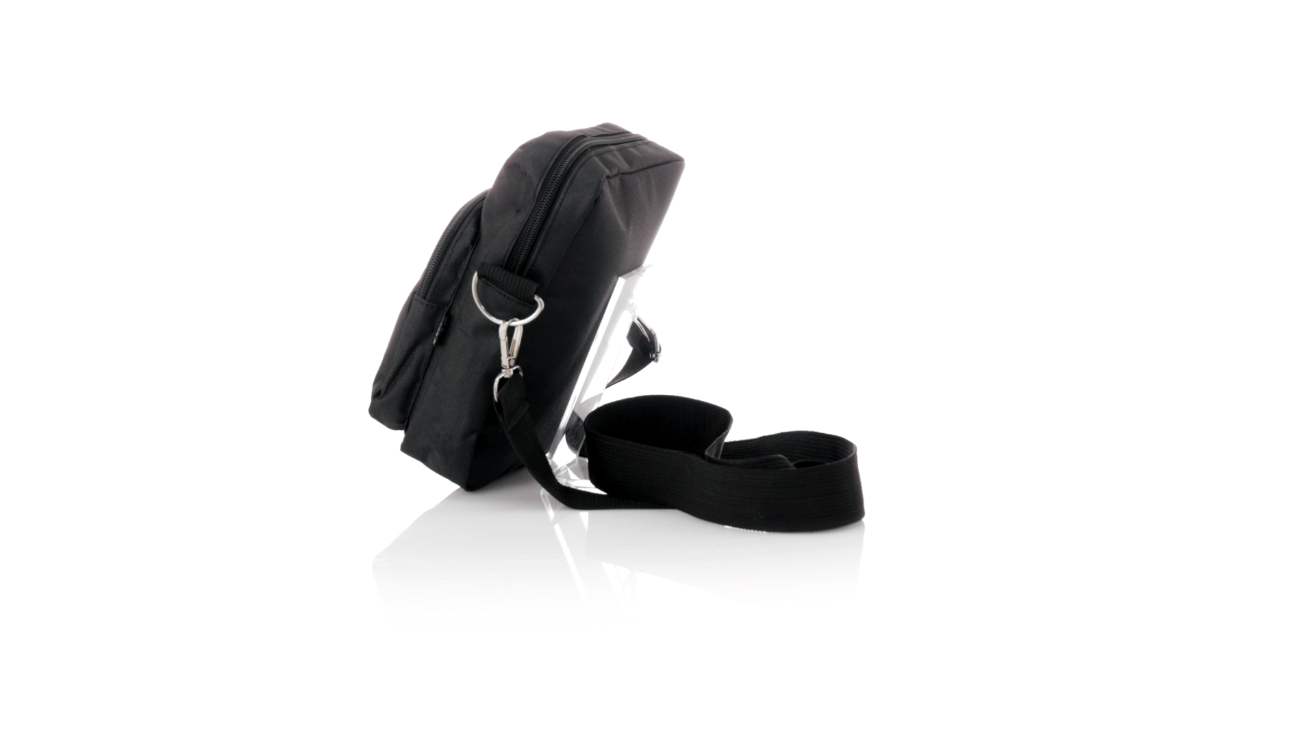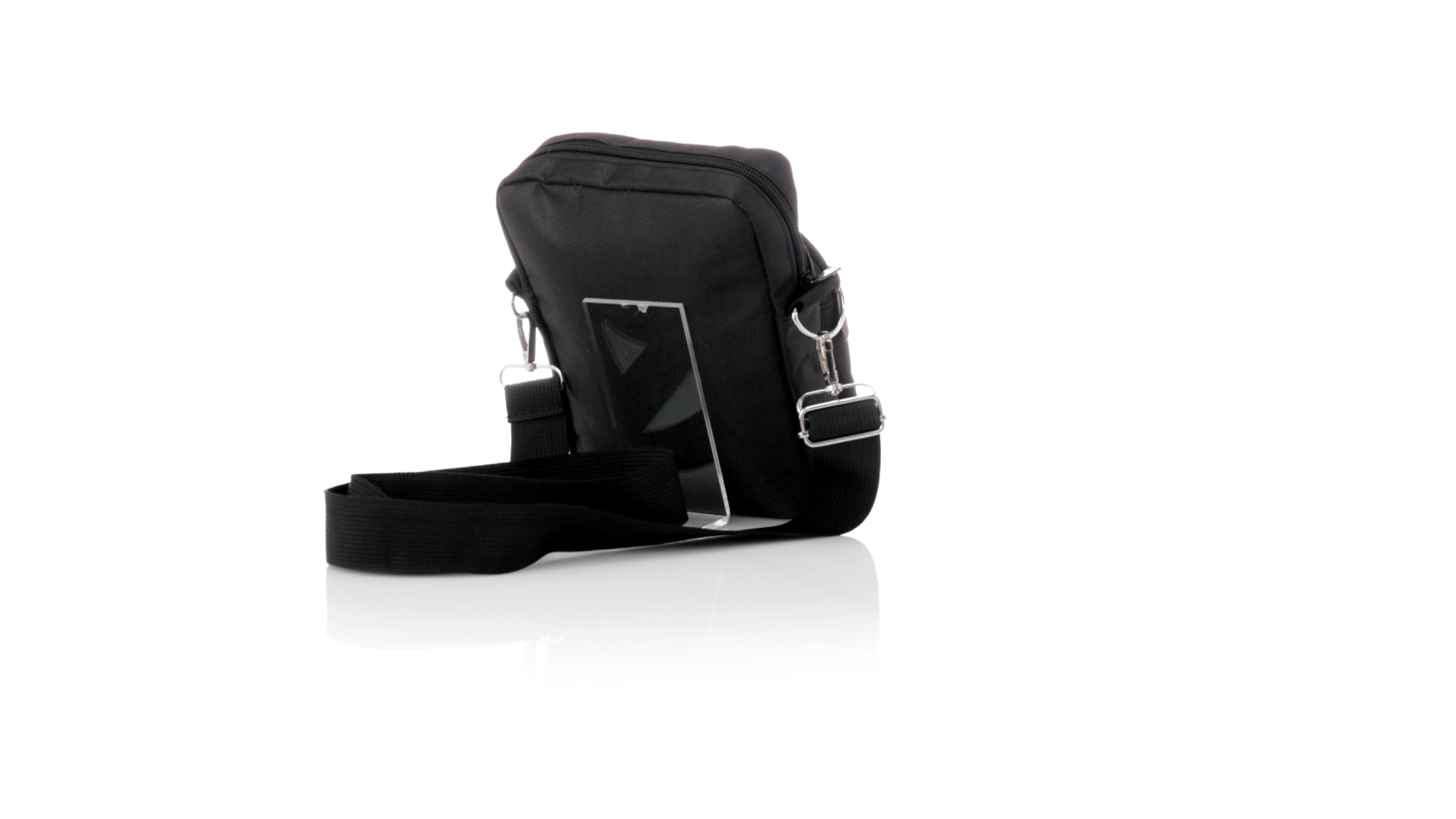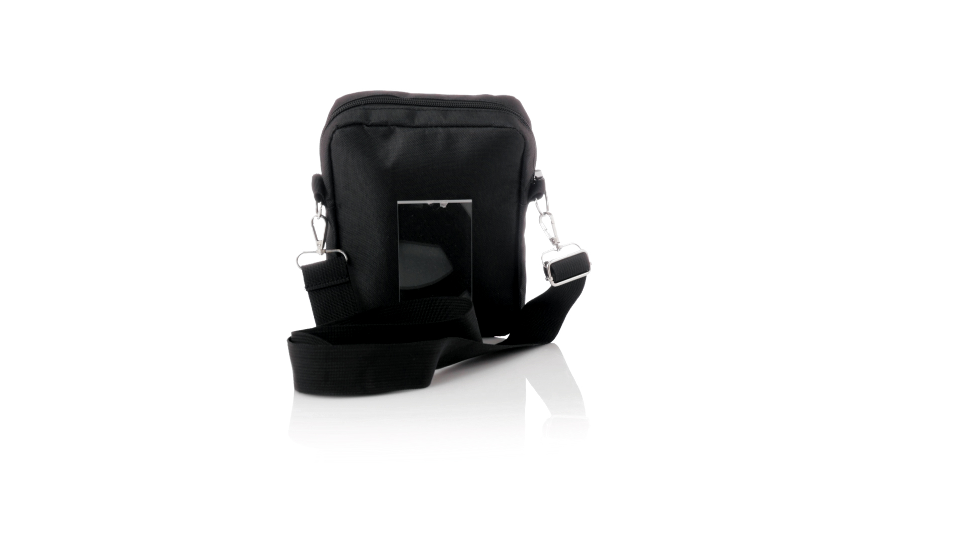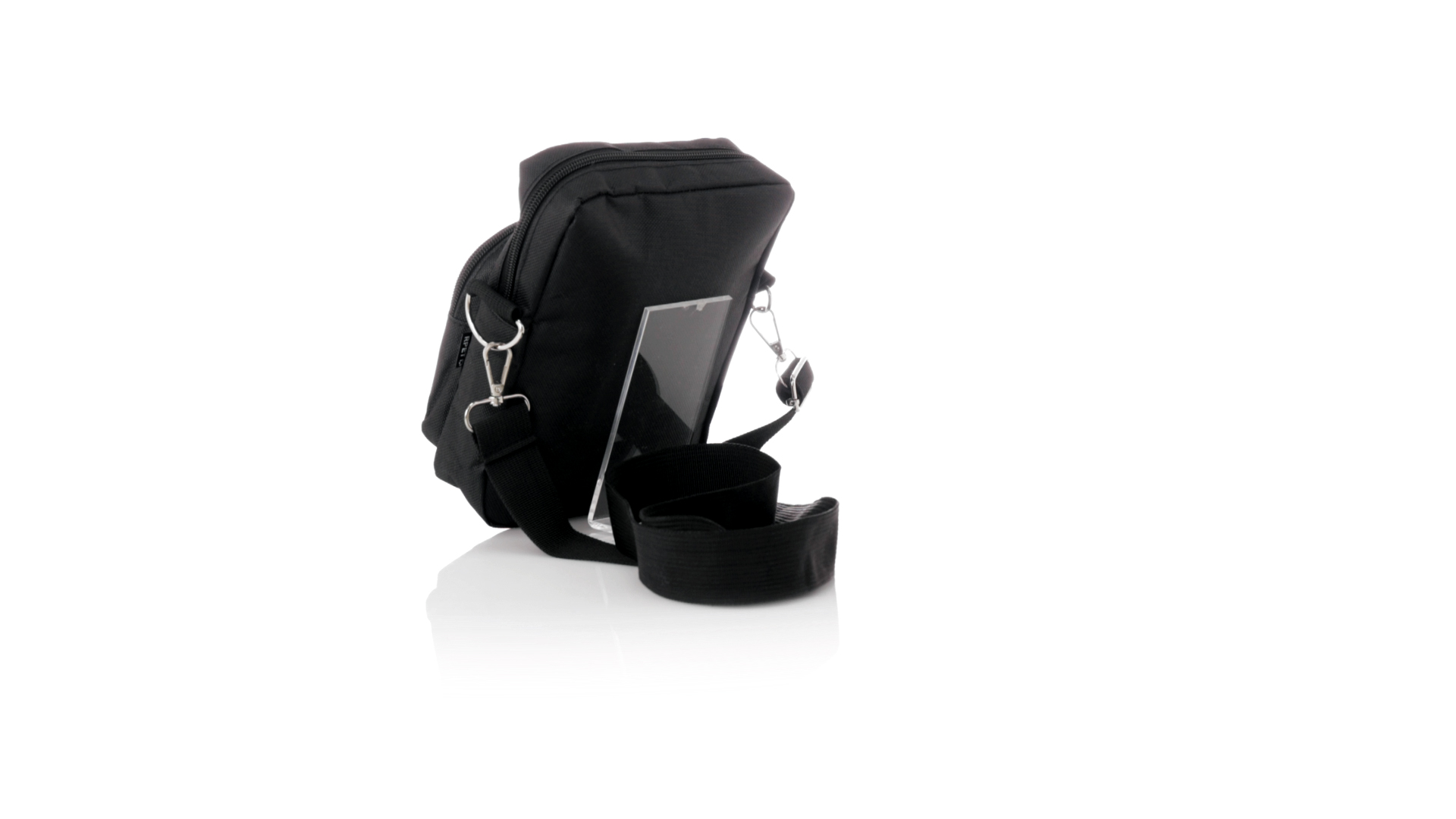 Umhängetasche aus RPET 600D-Polyester mit zentraler Reissverschlusstasche und doppeltem Reissverschluss sowie zwei Vorderfächern mit Schnellzugriff und Reissverschluss. Ausgestattet mit einem verstellbaren Riemen für mehr Komfort und einem RPET-Etikett. Einzeln in einer recycelten Tasche präsentiert. Umhängetasche aus RPET 600D-Polyester mit zentraler Reissverschlusstasche und doppeltem Reissverschluss sowie zwei Vorderfächern mit Schnellzugriff und Reissverschluss.