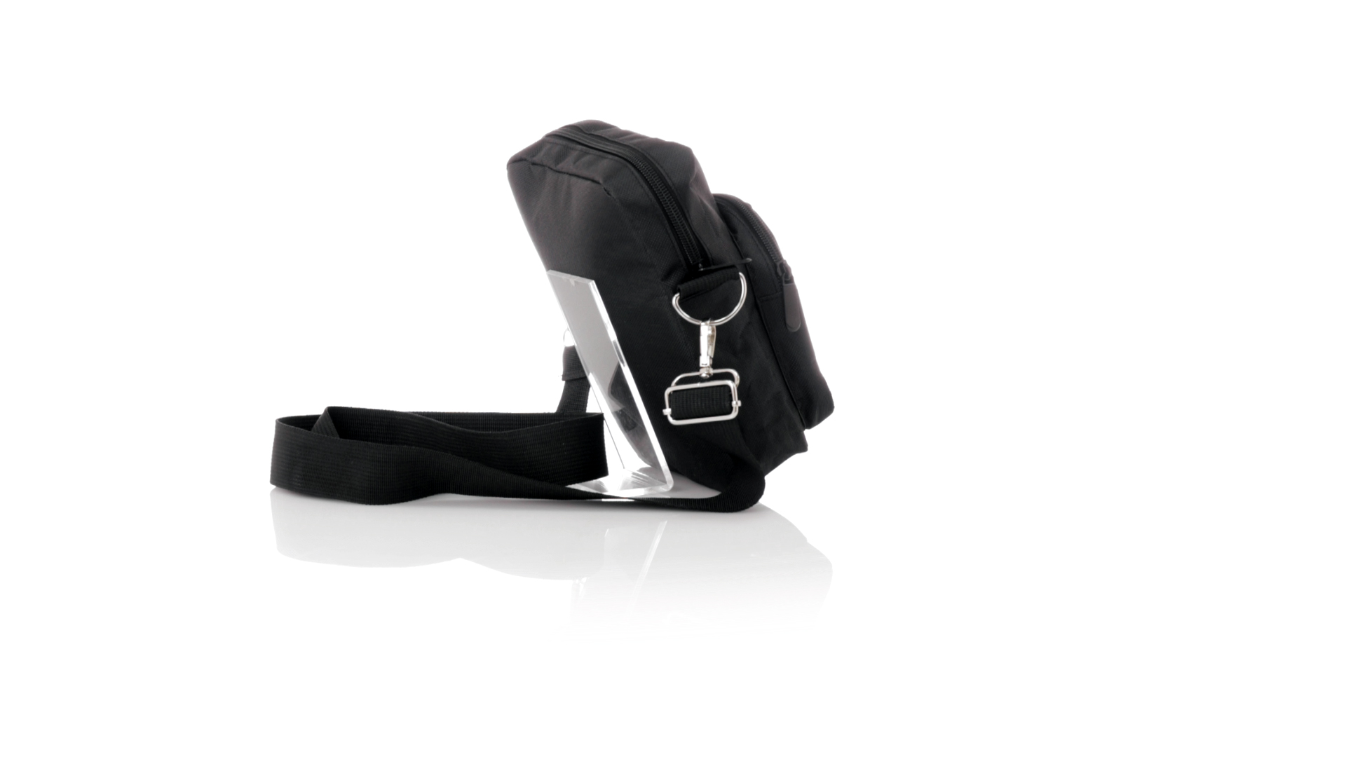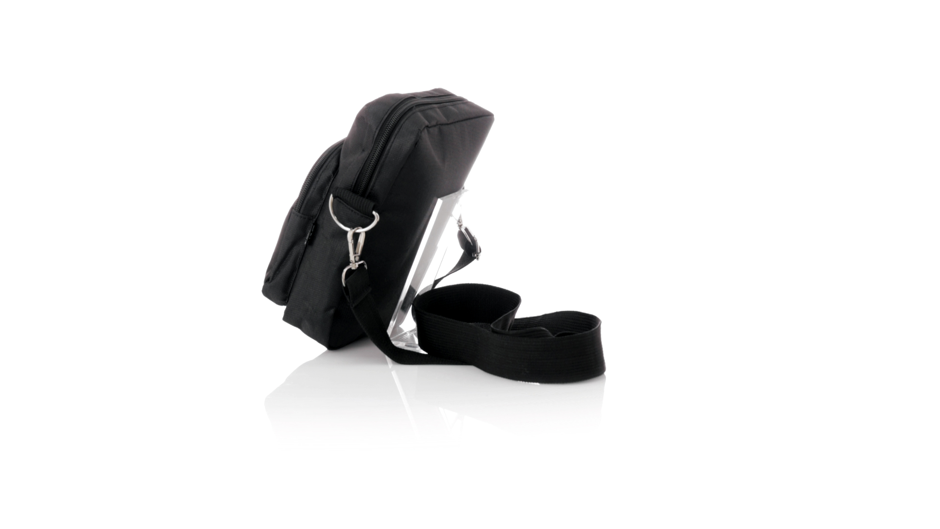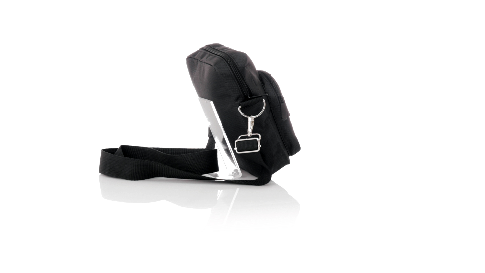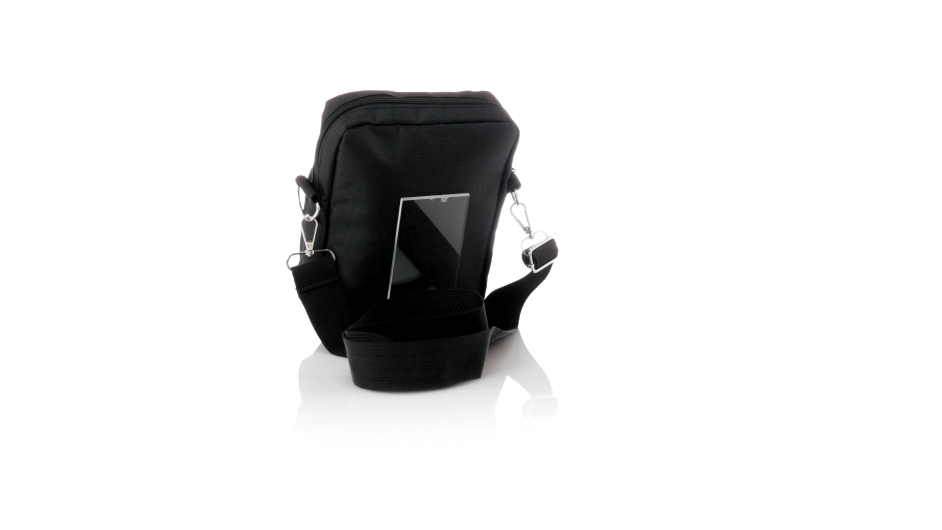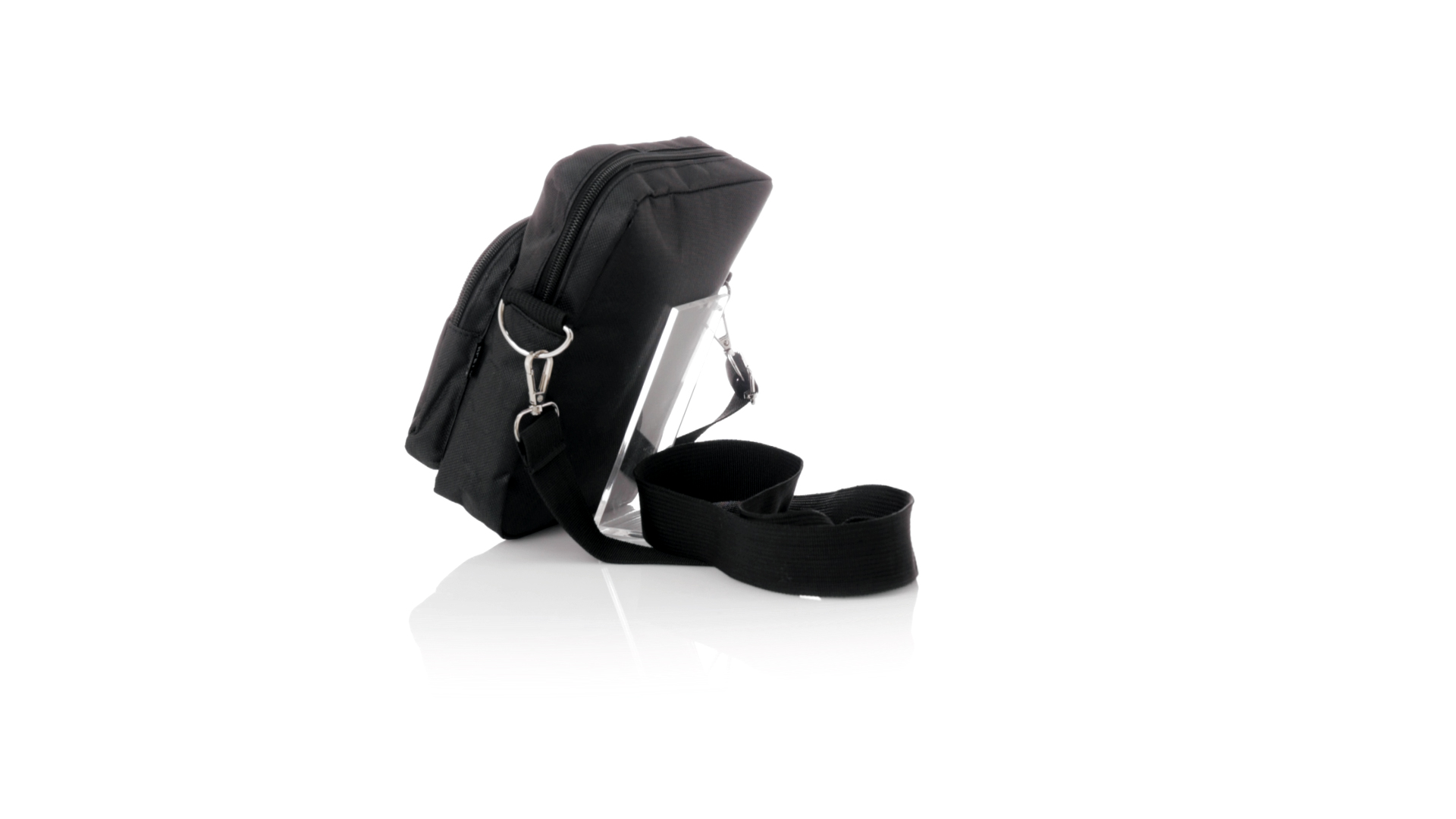 Umhängetasche aus RPET 600D-Polyester mit zentraler Reissverschlusstasche und doppeltem Reissverschluss sowie zwei Vorderfächern mit Schnellzugriff und Reissverschluss. Ausgestattet mit einem verstellbaren Riemen für mehr Komfort und einem RPET-Etikett. Einzeln in einer recycelten Tasche präsentiert. Umhängetasche aus RPET 600D-Polyester mit zentraler Reissverschlusstasche und doppeltem Reissverschluss sowie zwei Vorderfächern mit Schnellzugriff und Reissverschluss.