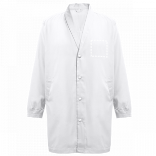 Arbeitskittel aus 20% Baumwolle und 80% Polyester (190g/m²), unisex. Eleganter, moderner und stilvoller Schnitt mit 2 Seitentaschen, elastische Bündchen und Druckknöpfen. Rückenöffnung für mehr Bewegungsfreiheit. Grössen: S, M, L, XL, XXL, 3XL