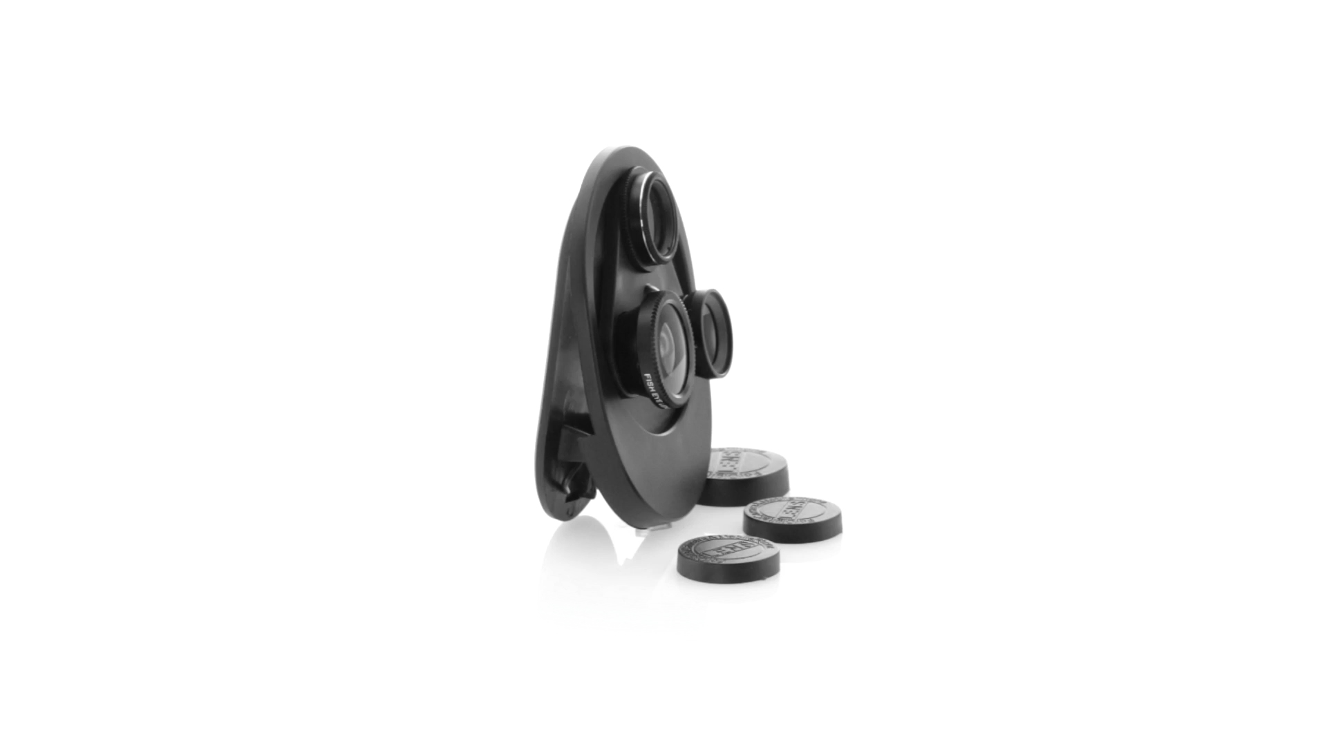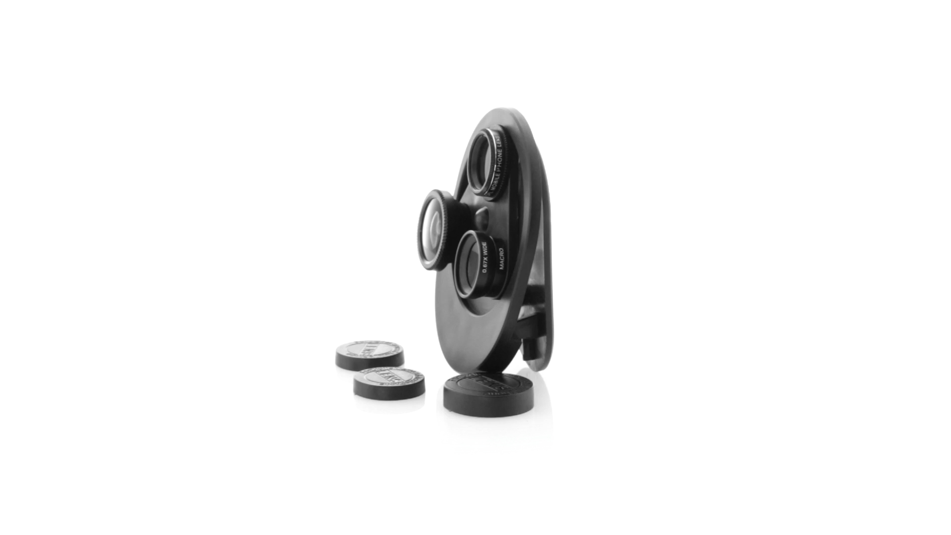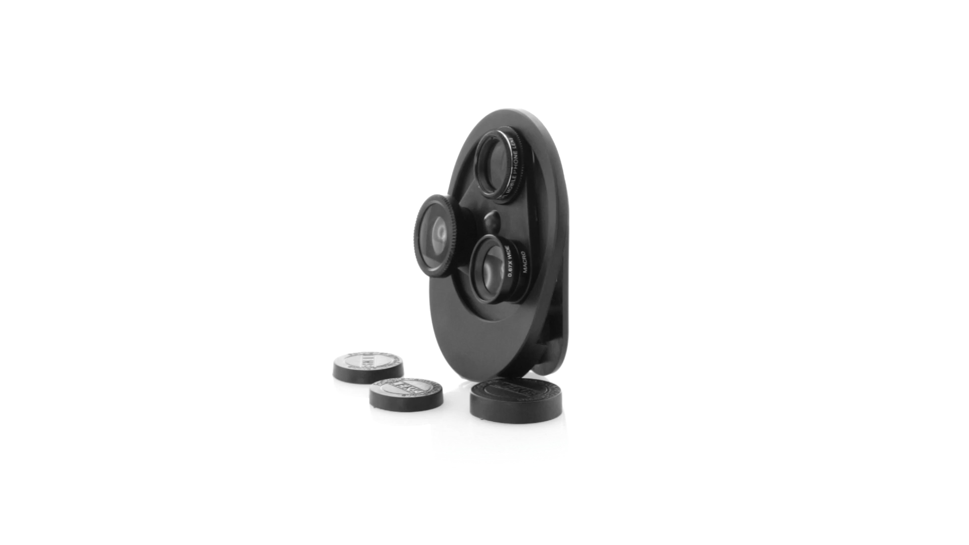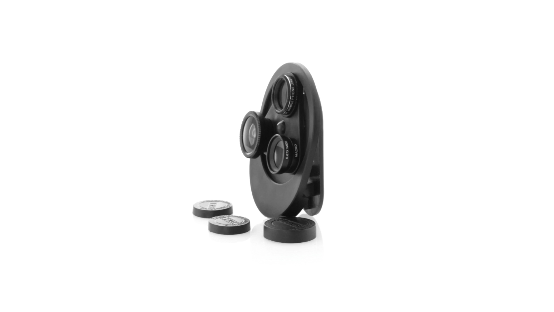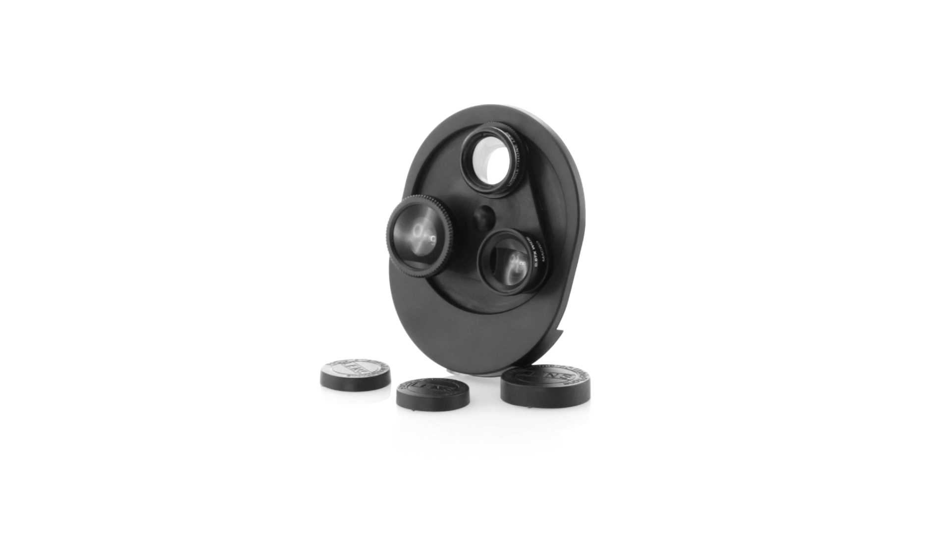 Originelles 4-in-1 Universalobjektiv für Smartphones. Der Austausch von Objektiven ist nicht notwendig, da mit einer einfachen Drehung zwischen Makro, CPL, Fischauge und Weitwinkel gewechselt werden kann. Mit Sicherheitsklemme zur Befestigung.