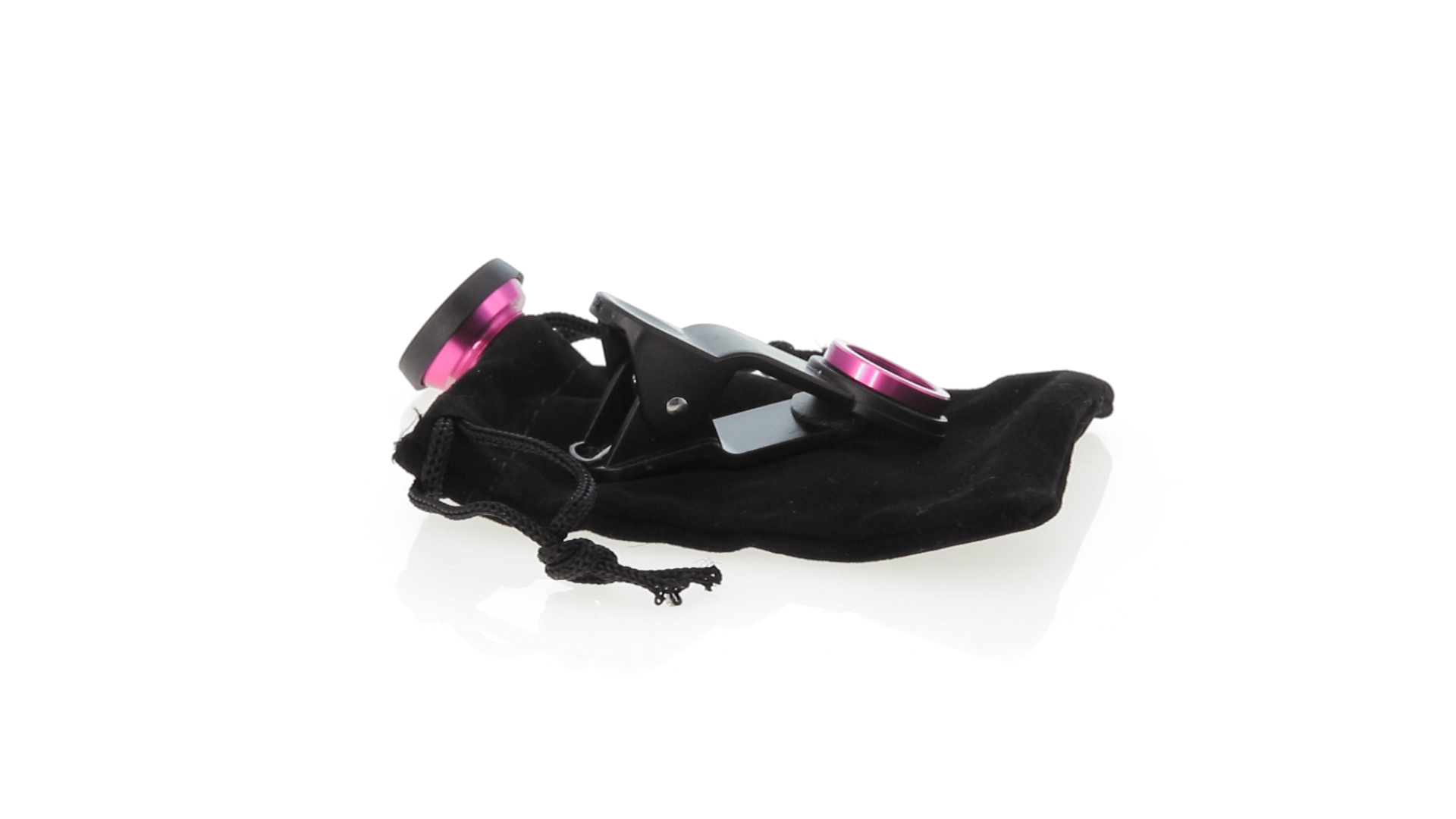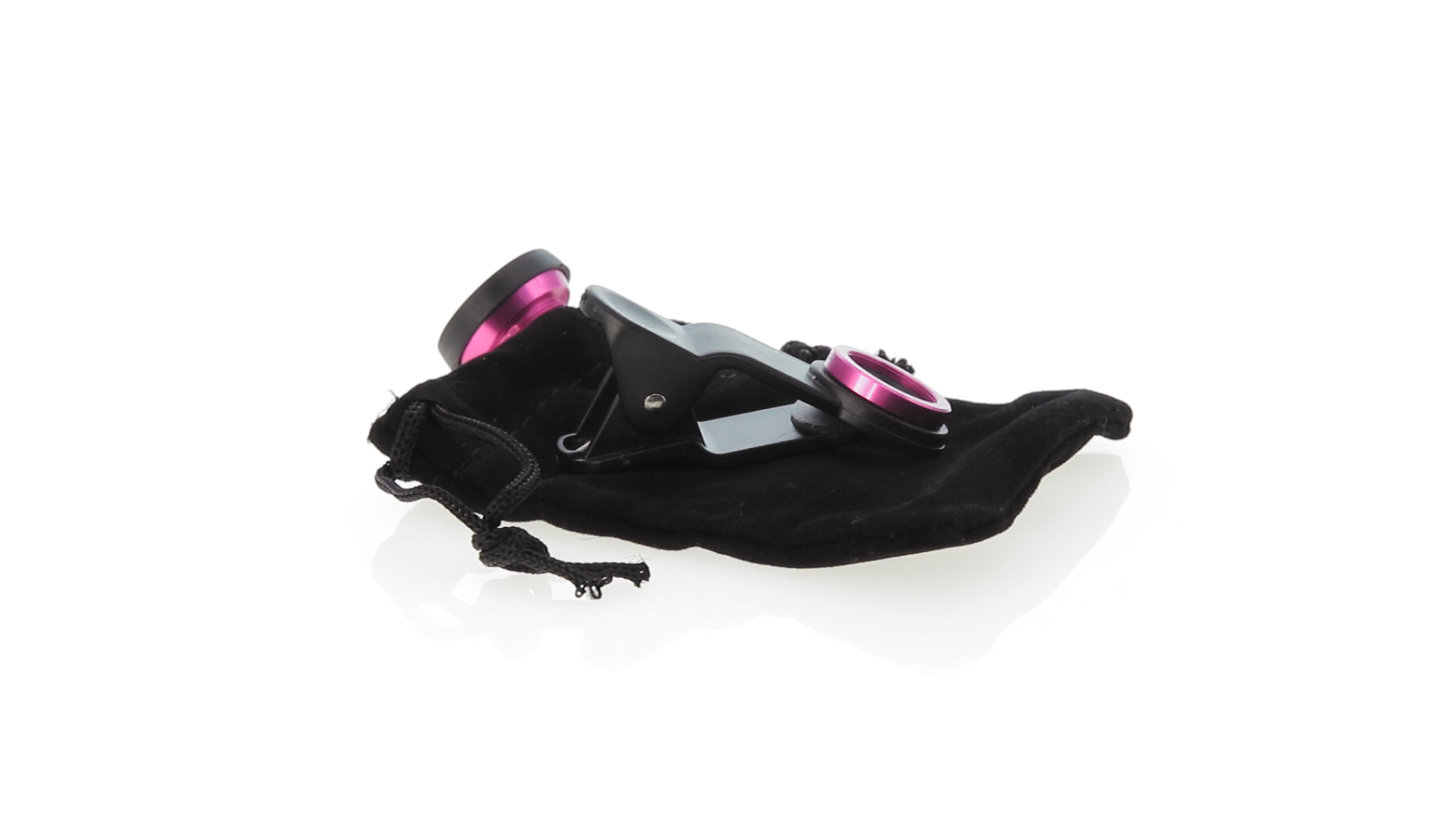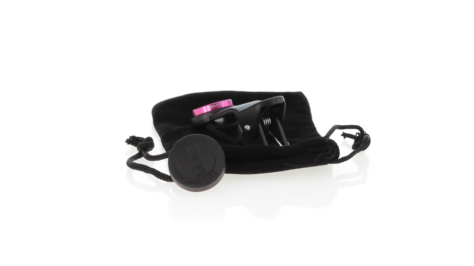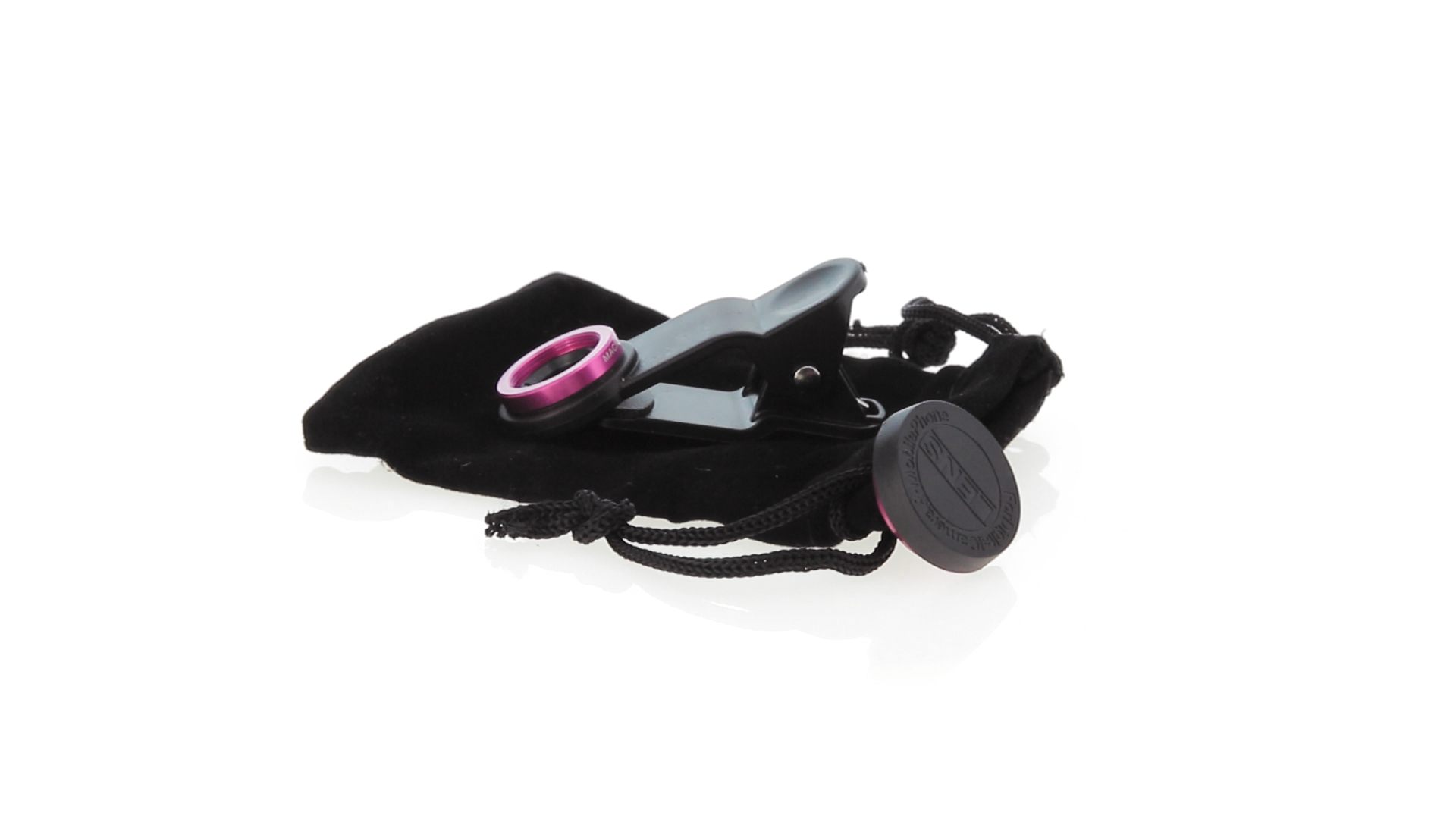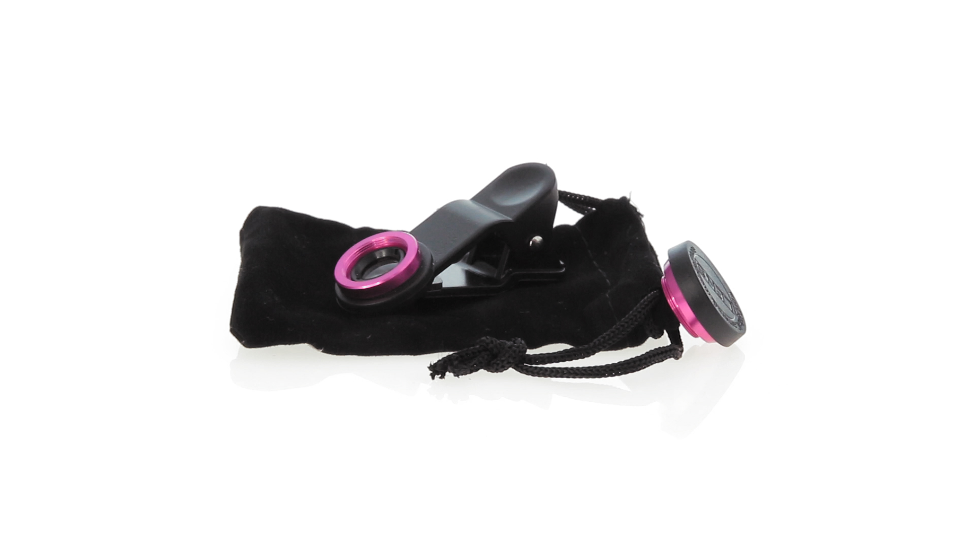 Set aus Universal-Objektiven für Smartphones - mit Clip zum Befestigen. Hergestellt aus Aluminium und Glas. Enthält Makro und Weitwinkel sowie ein Mikrofaser-Reinigungstuch. Objektive werden in einem Samtbeutel mit Kordelzug präsentiert. Set präsentiert in einer attraktiven Designbox.