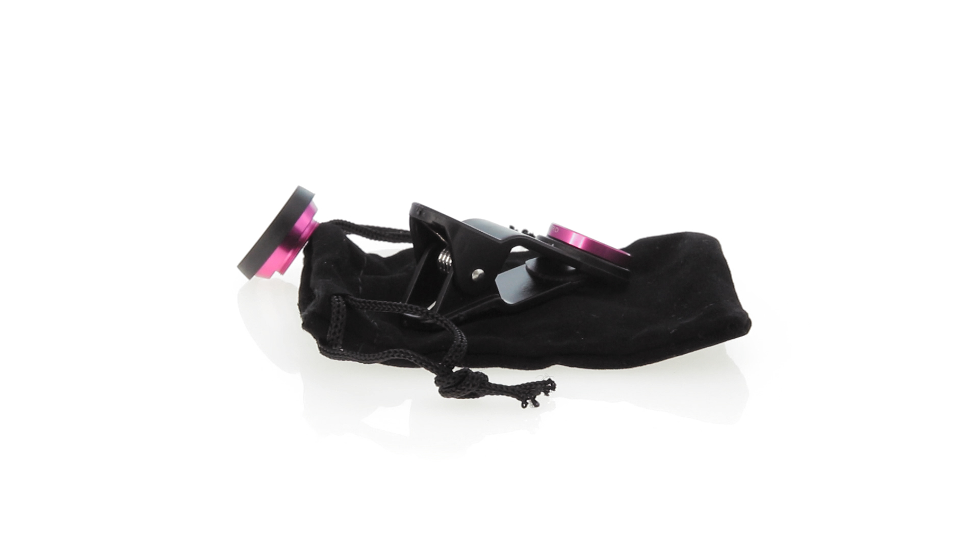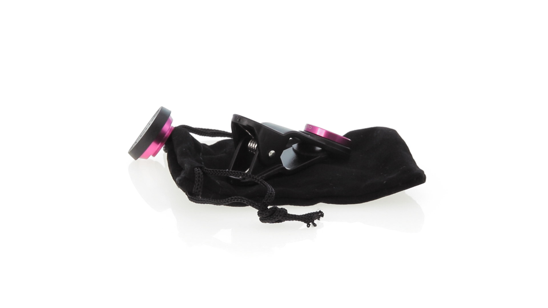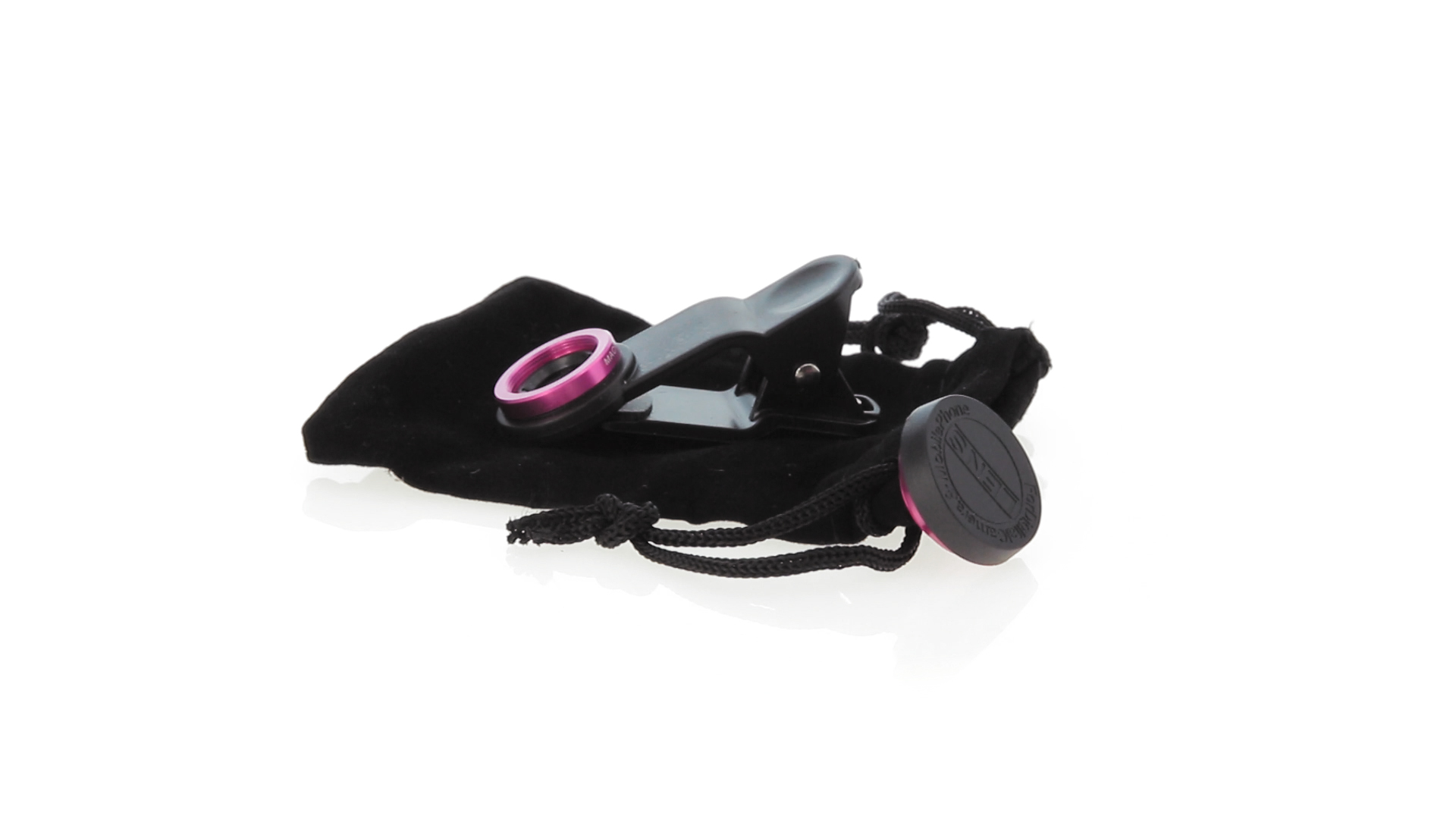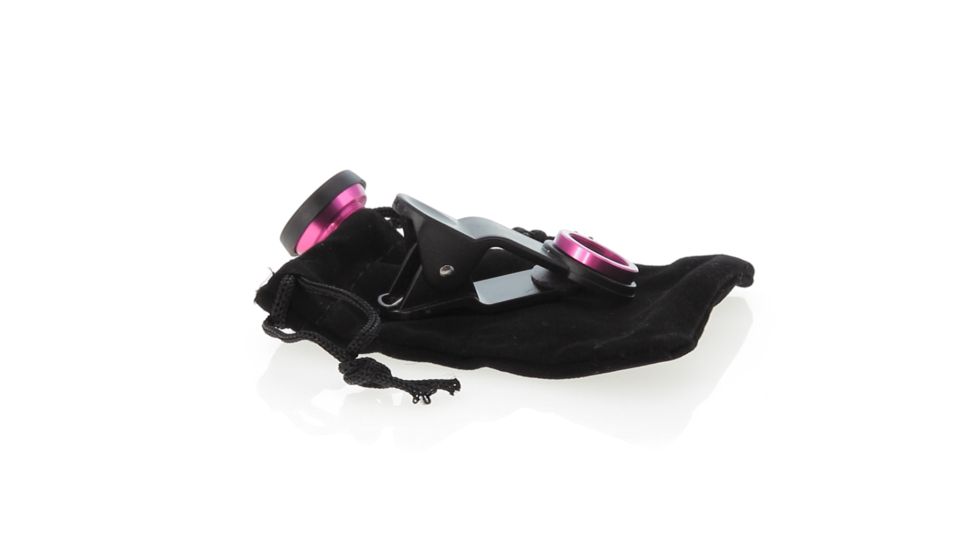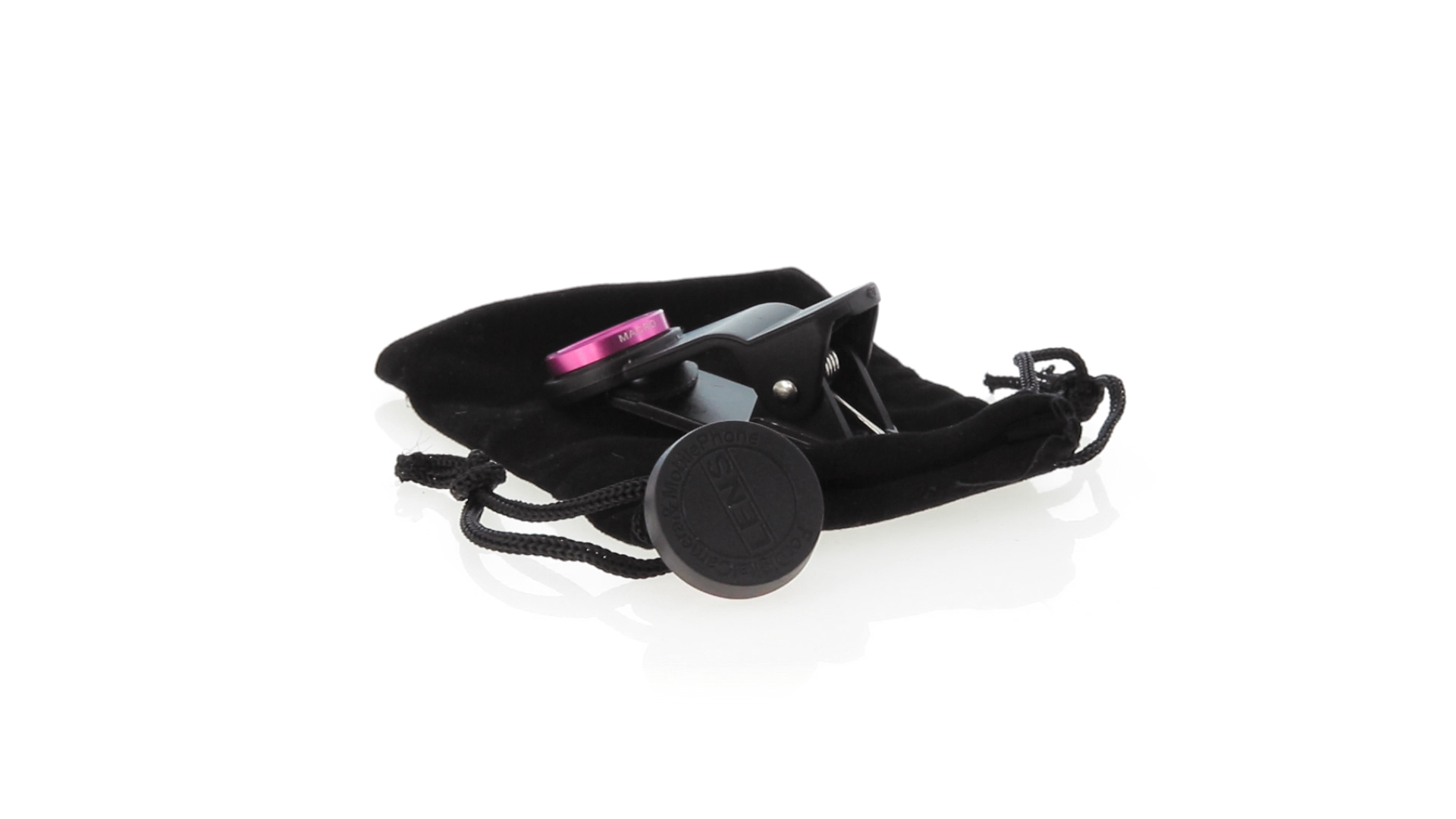 Set aus Universal-Objektiven für Smartphones - mit Clip zum Befestigen. Hergestellt aus Aluminium und Glas. Enthält Makro und Weitwinkel sowie ein Mikrofaser-Reinigungstuch. Objektive werden in einem Samtbeutel mit Kordelzug präsentiert. Set präsentiert in einer attraktiven Designbox.