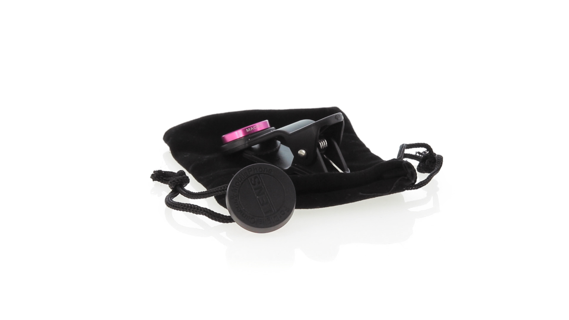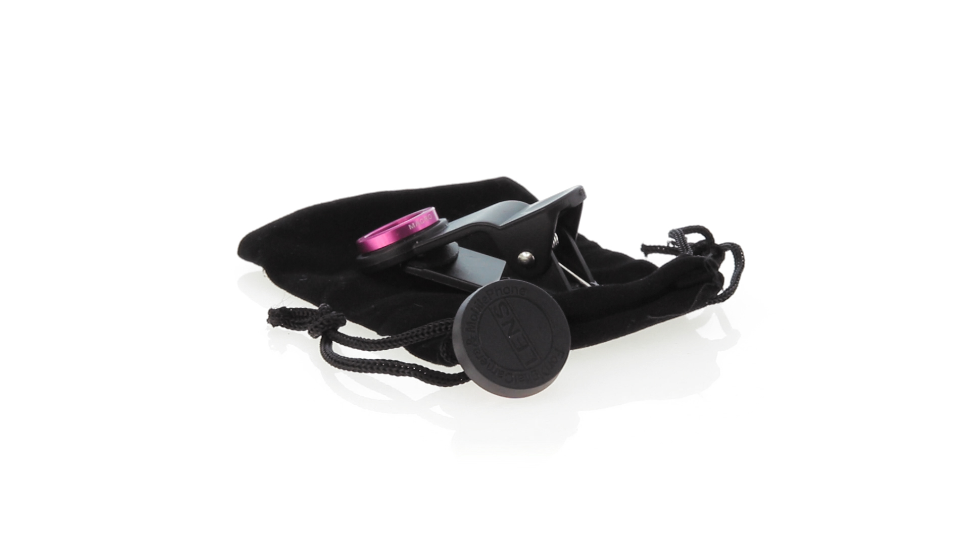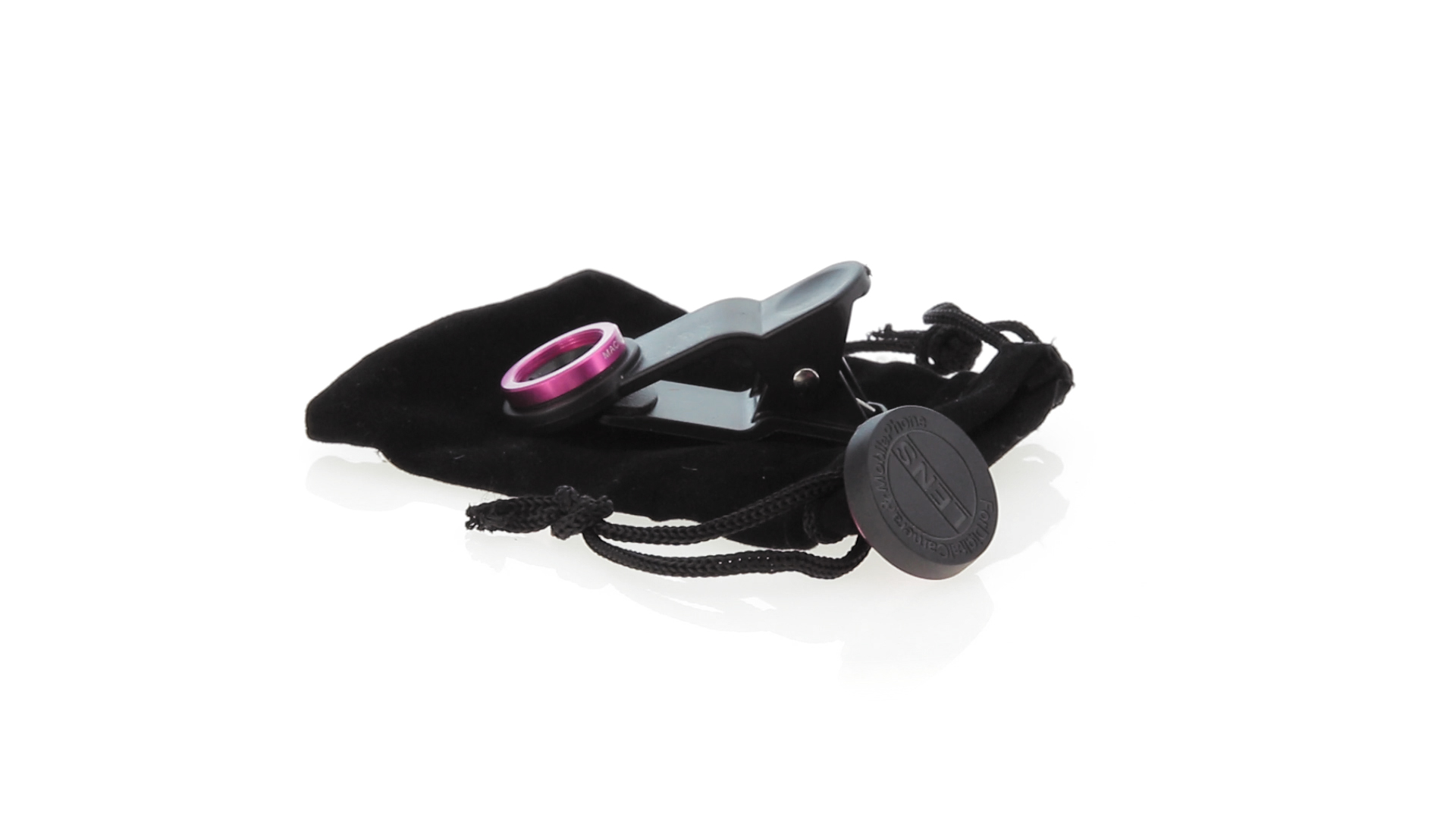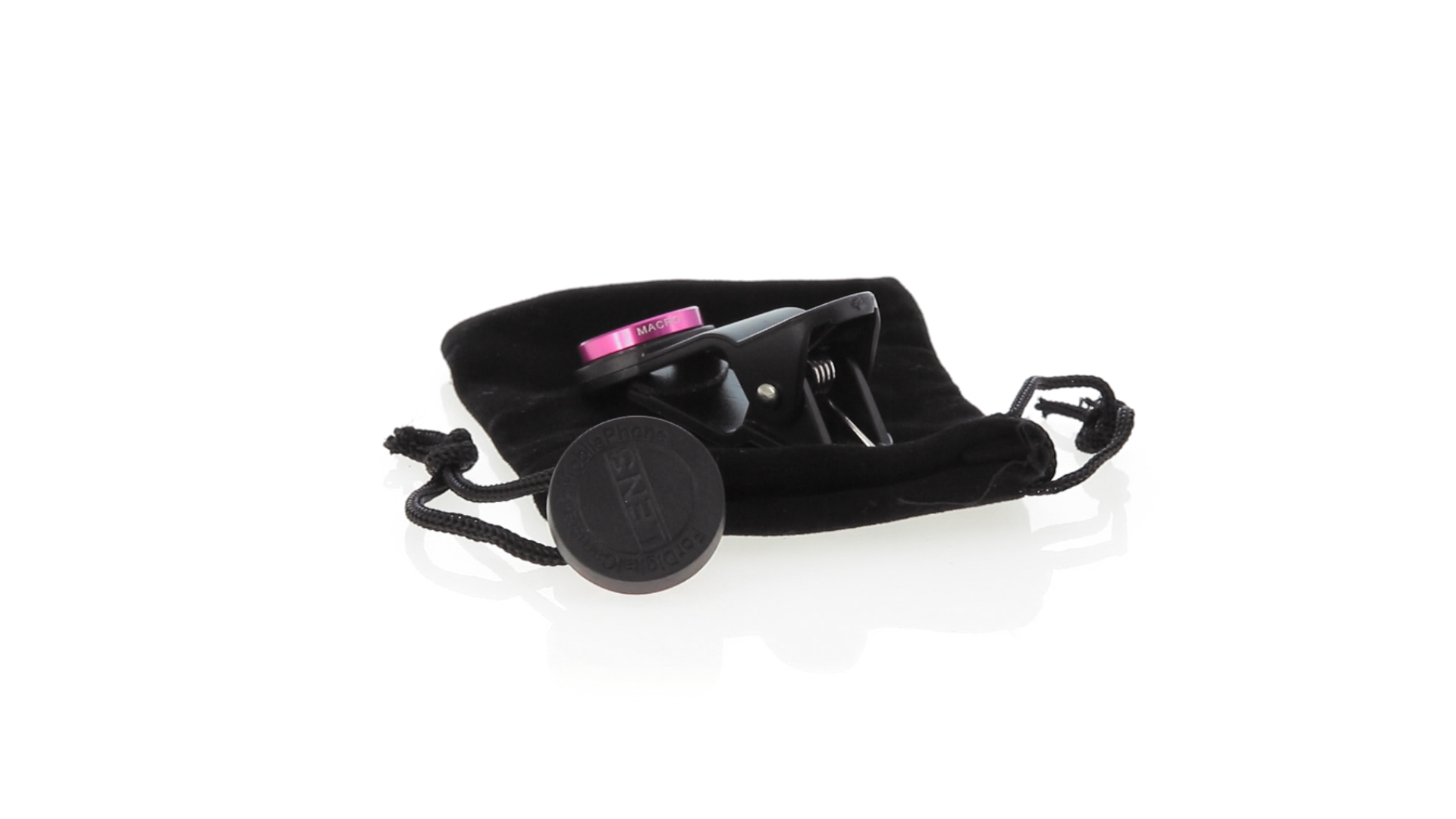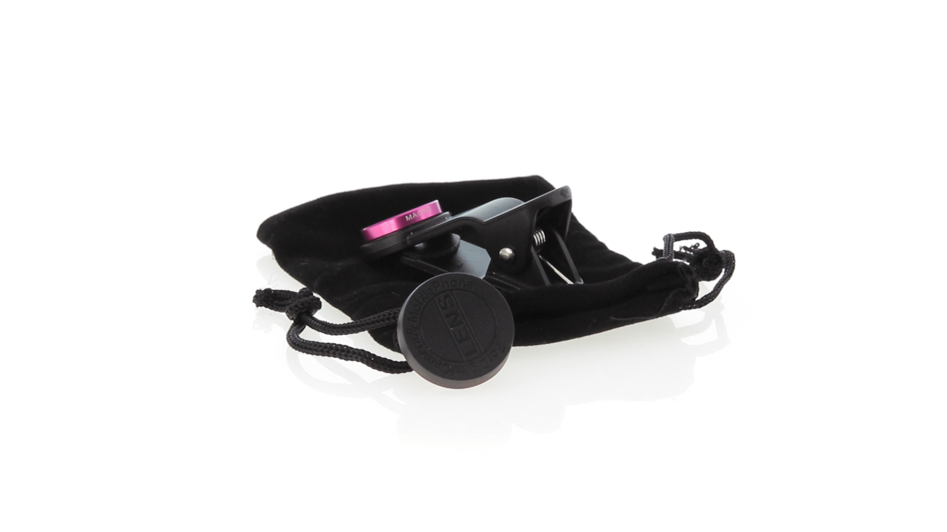 Set aus Universal-Objektiven für Smartphones - mit Clip zum Befestigen. Hergestellt aus Aluminium und Glas. Enthält Makro und Weitwinkel sowie ein Mikrofaser-Reinigungstuch. Objektive werden in einem Samtbeutel mit Kordelzug präsentiert. Set präsentiert in einer attraktiven Designbox.