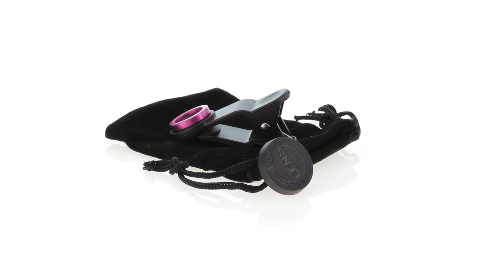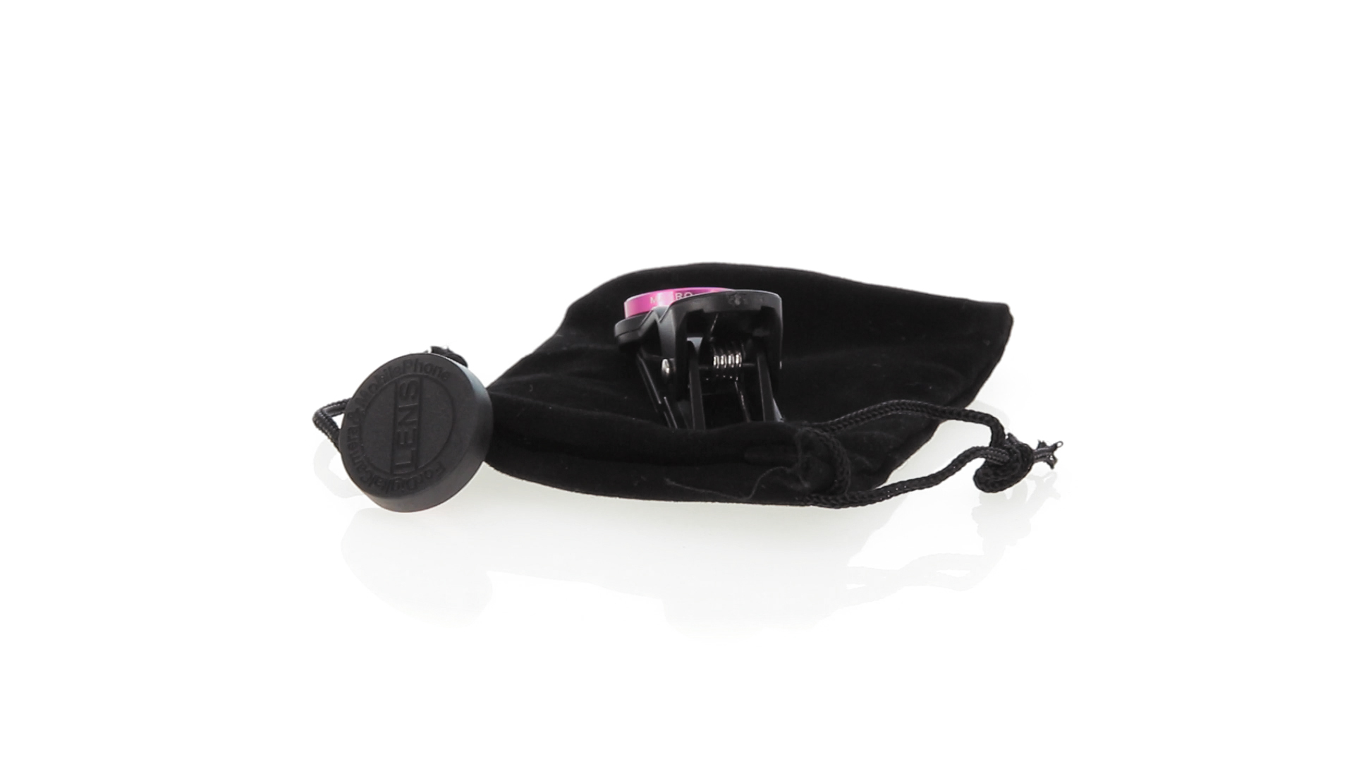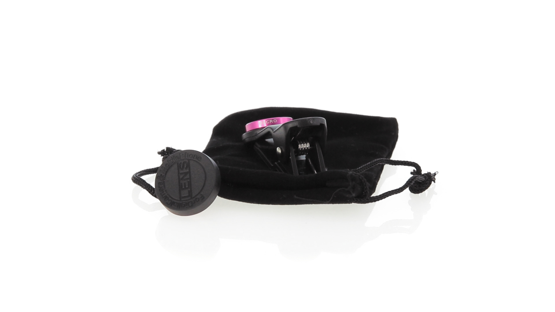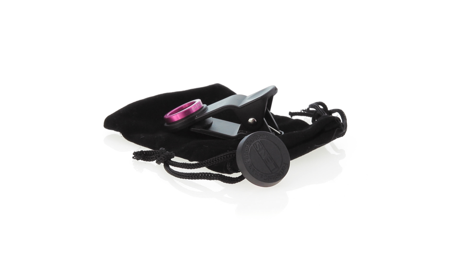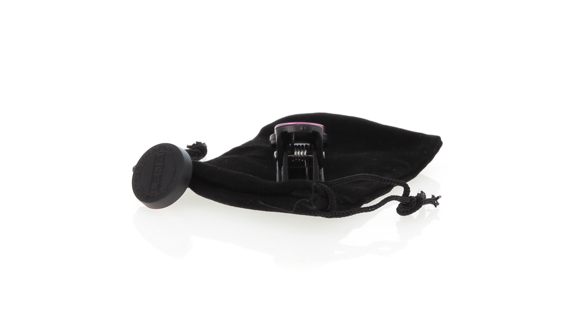 Set aus Universal-Objektiven für Smartphones - mit Clip zum Befestigen. Hergestellt aus Aluminium und Glas. Enthält Makro und Weitwinkel sowie ein Mikrofaser-Reinigungstuch. Objektive werden in einem Samtbeutel mit Kordelzug präsentiert. Set präsentiert in einer attraktiven Designbox.