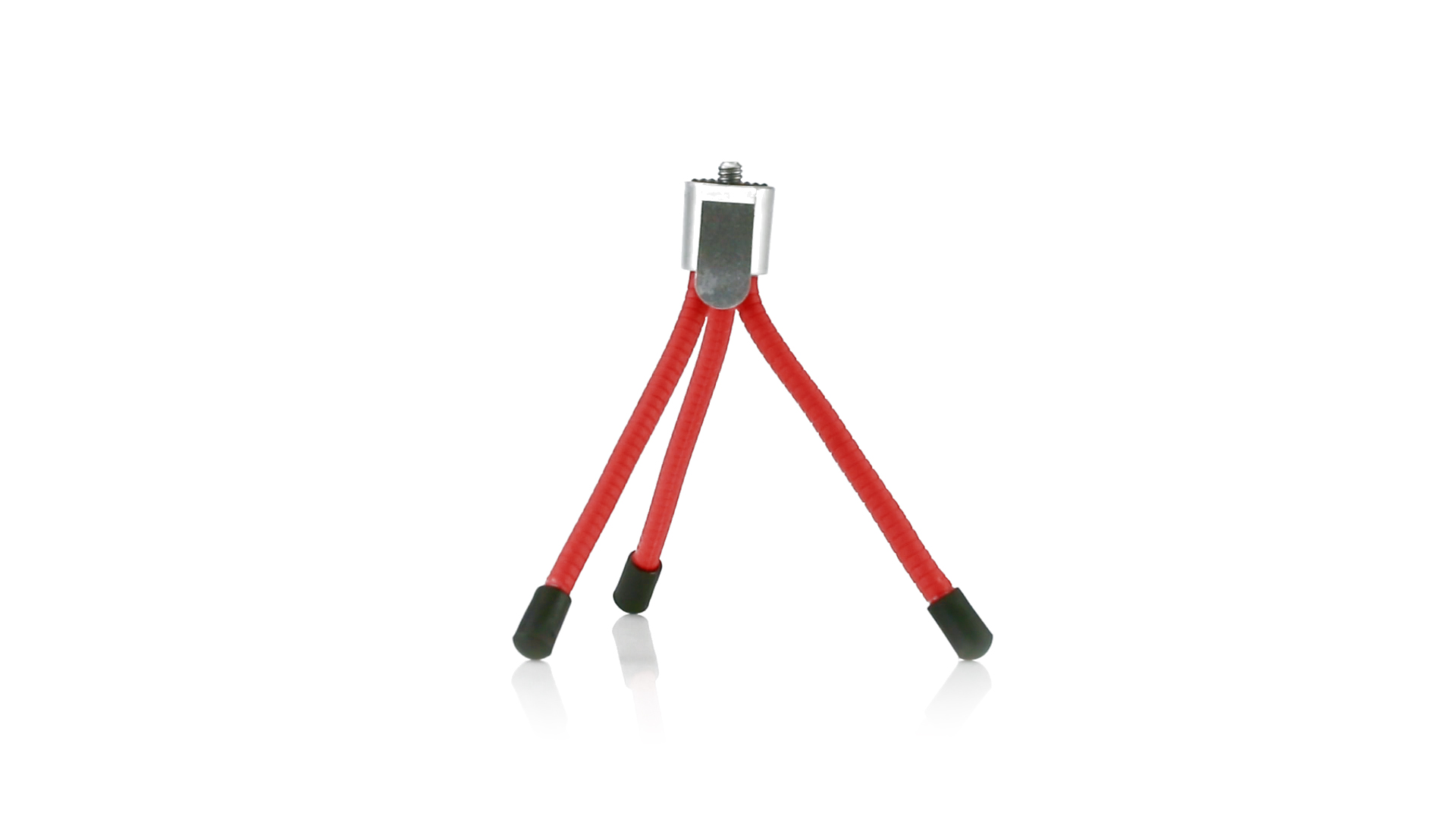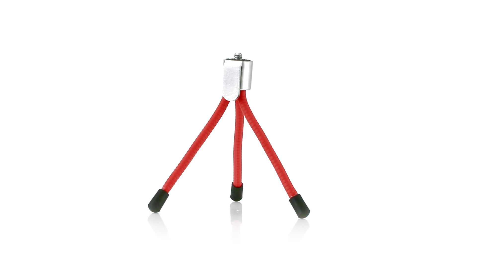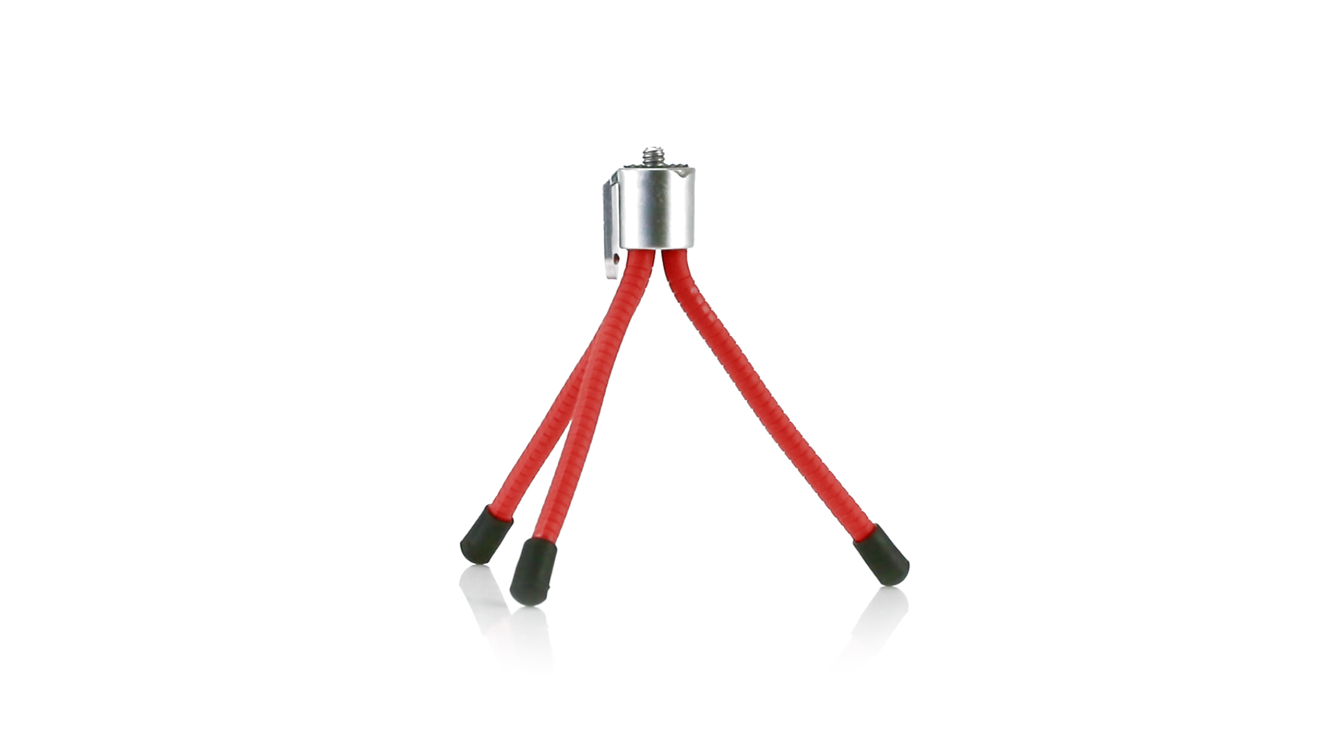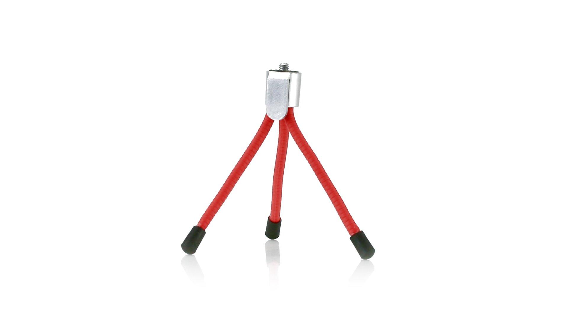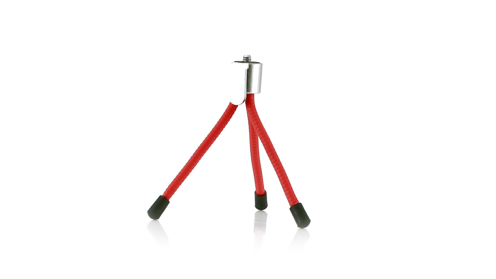 Stativ für Kameras mit universeller Einstellschraube und flexiblen Standfüssen mit rutschfester Gummierung für die Befestigung auf allen Arten von Oberflächen. Präsentiert in einer individuellen Box.