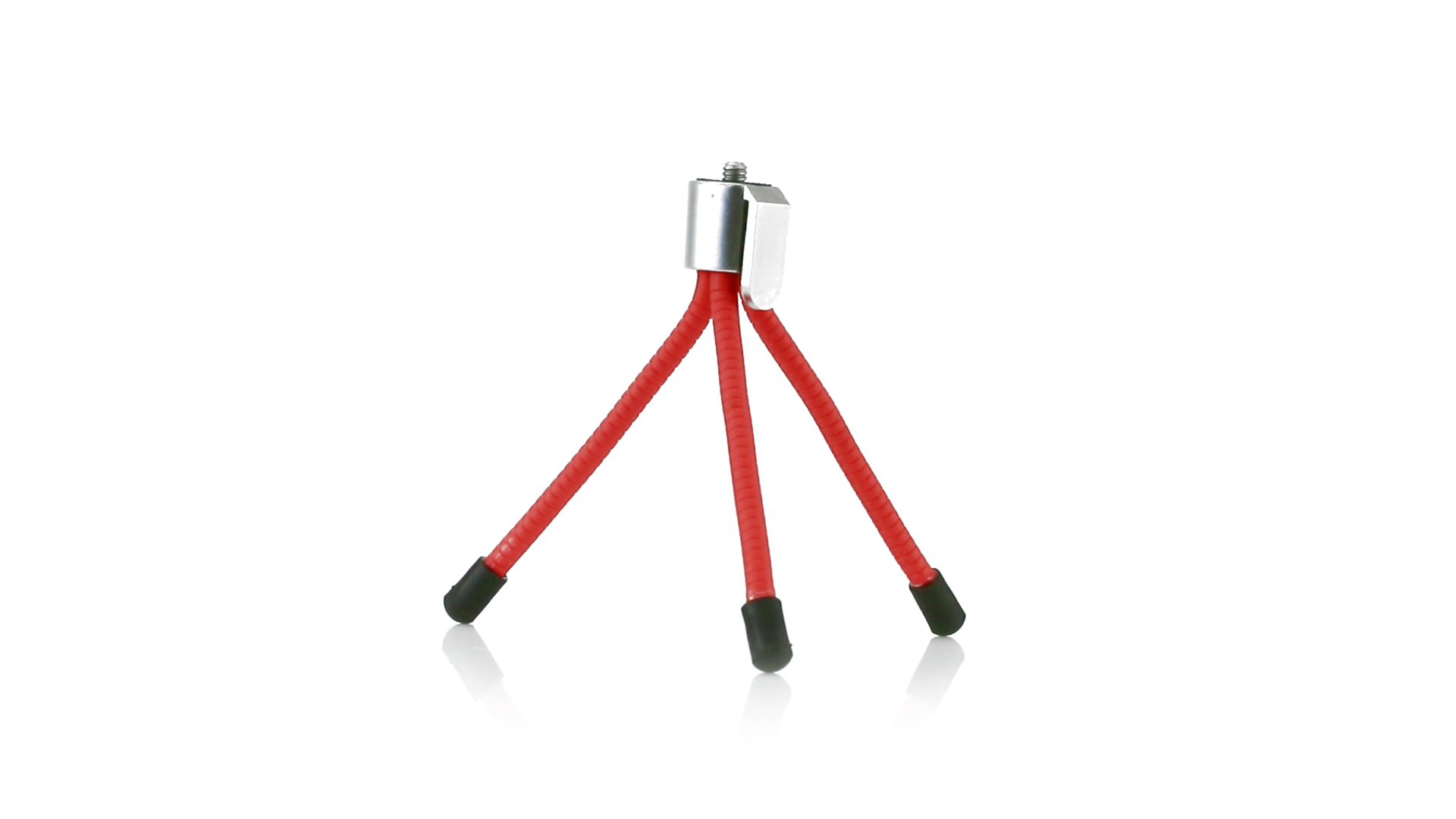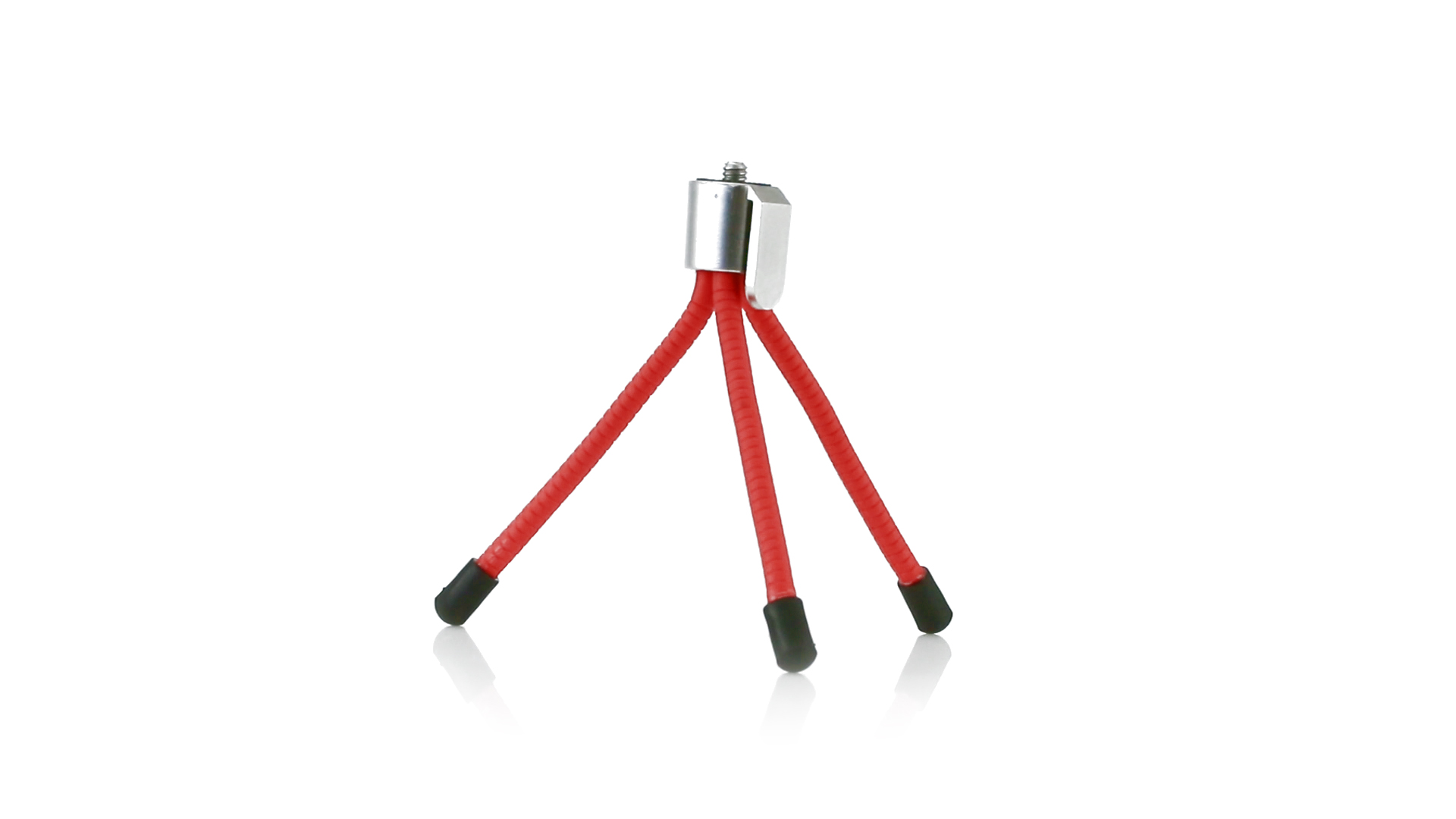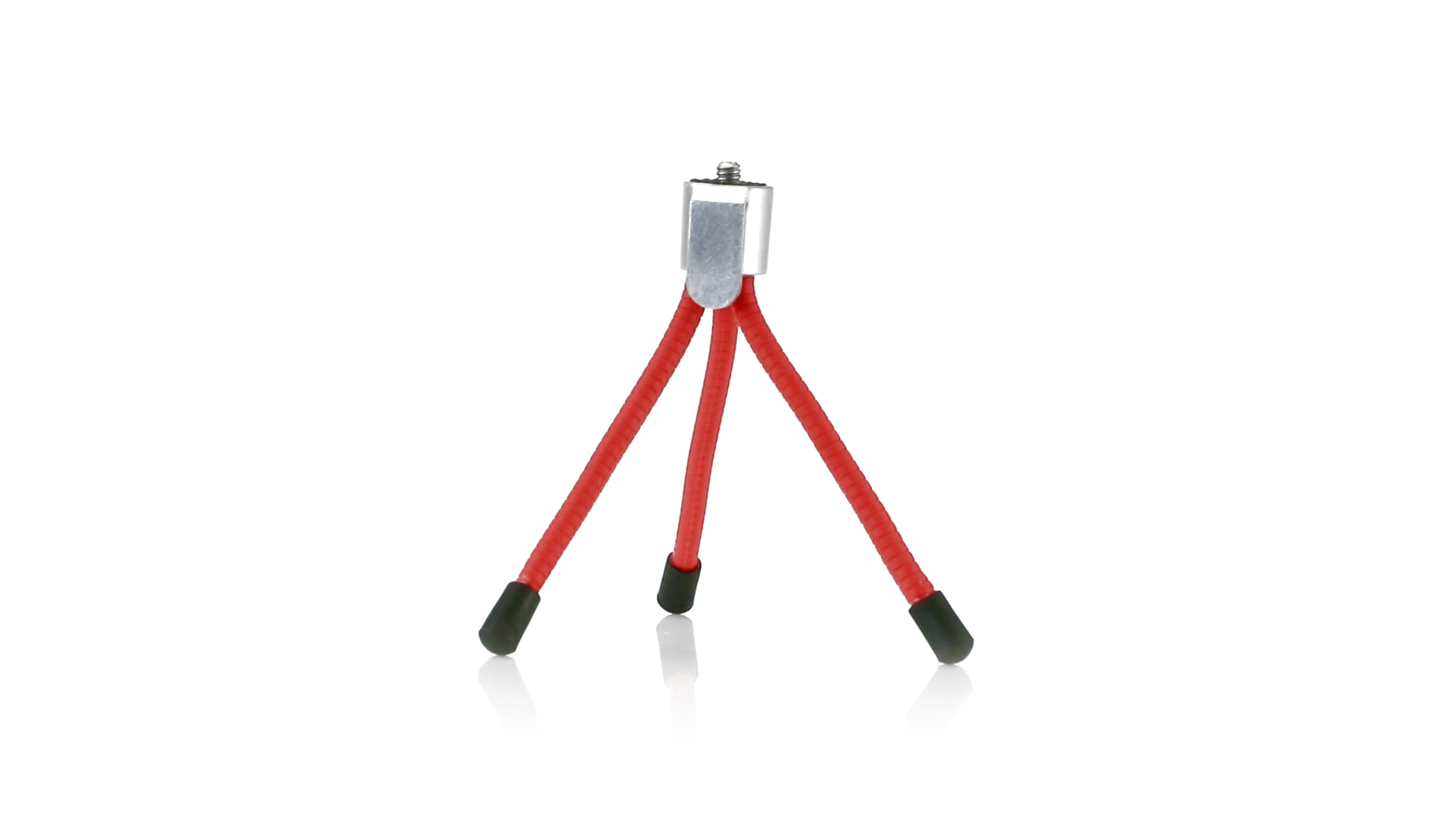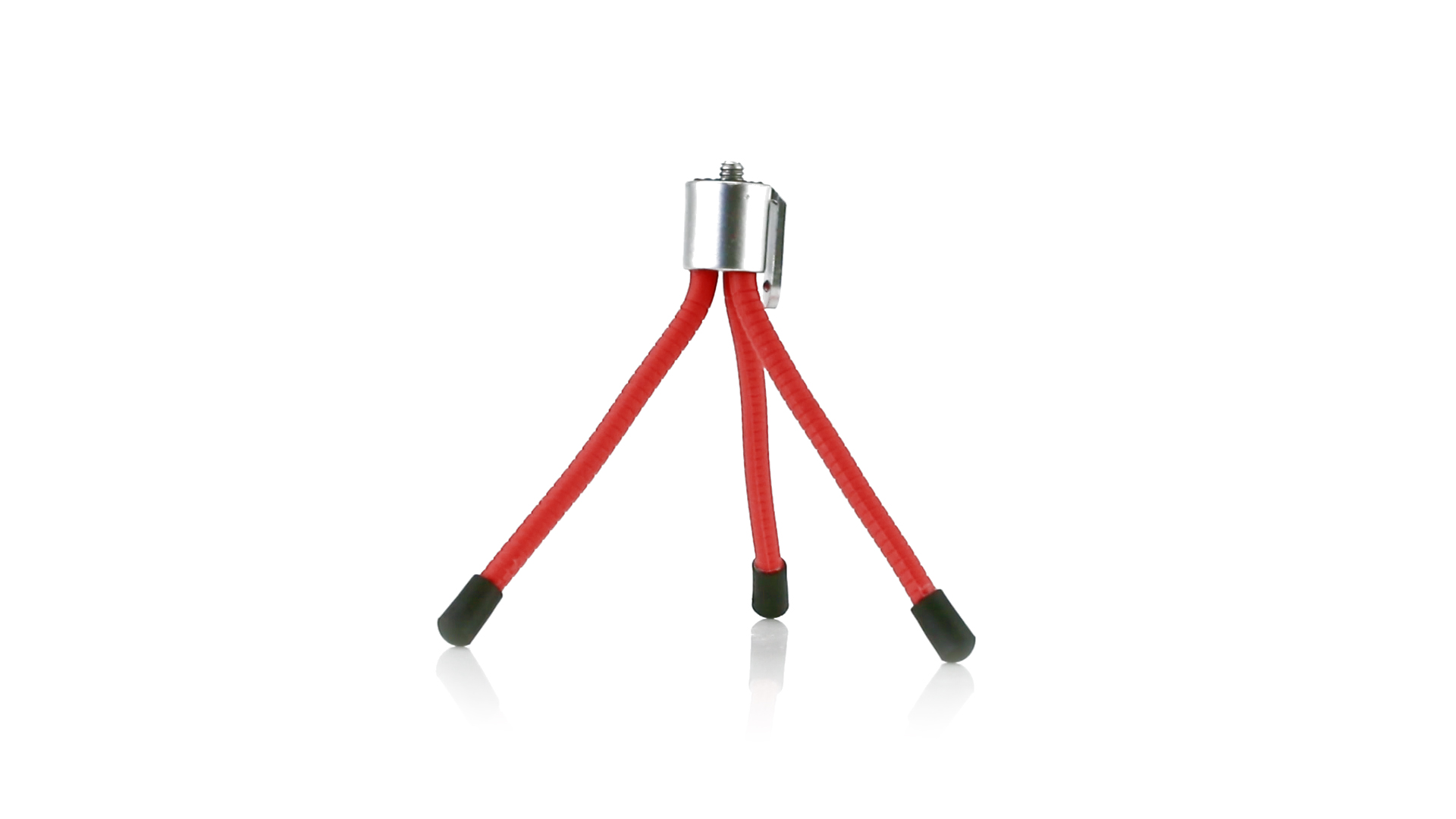 Stativ für Kameras mit universeller Einstellschraube und flexiblen Standfüssen mit rutschfester Gummierung für die Befestigung auf allen Arten von Oberflächen. Präsentiert in einer individuellen Box.