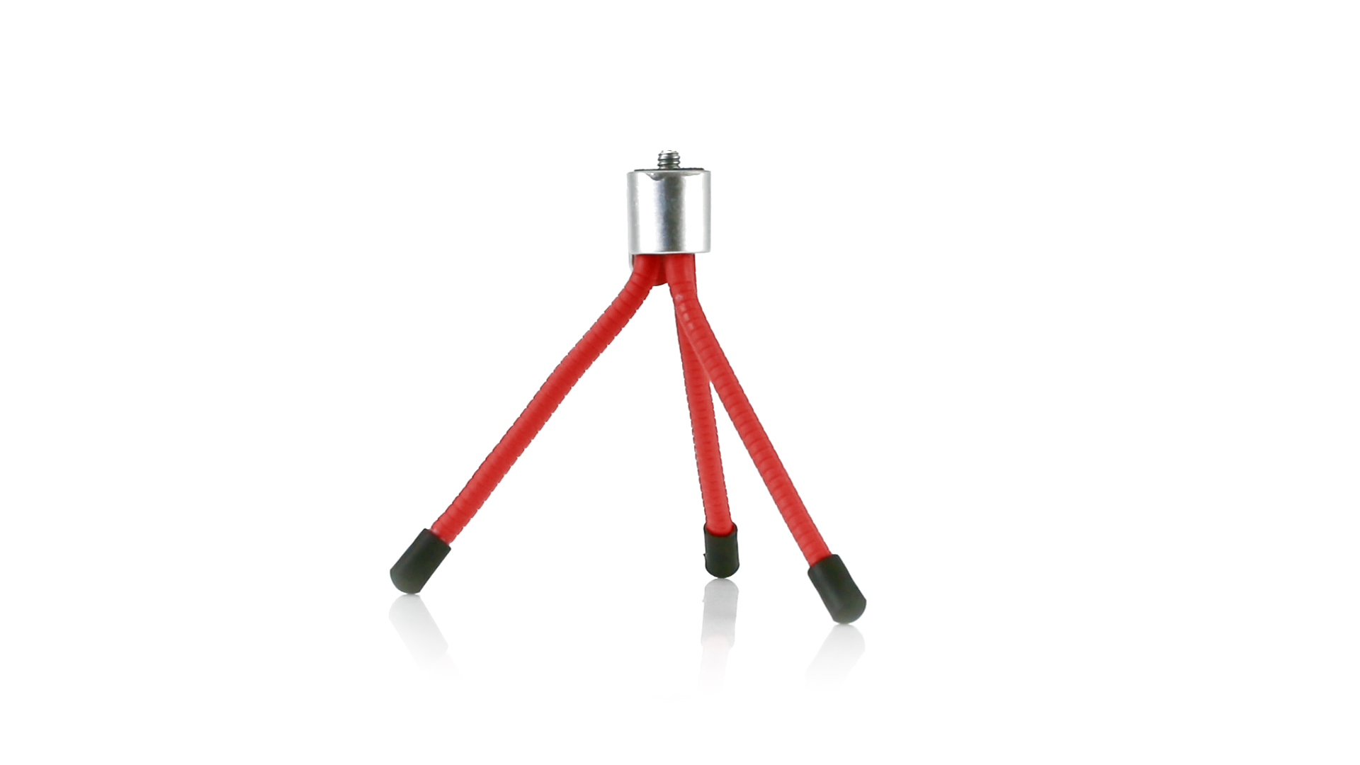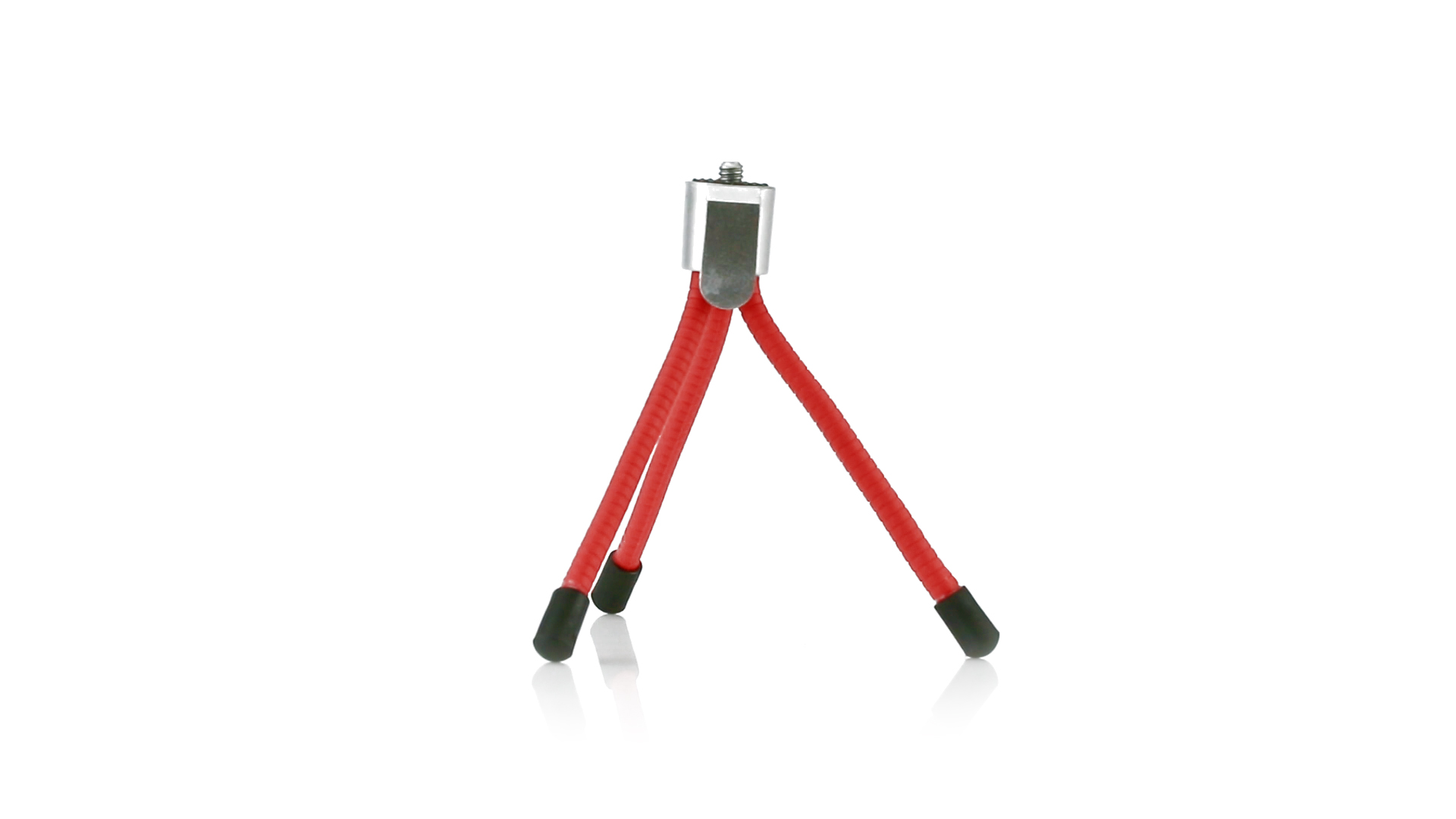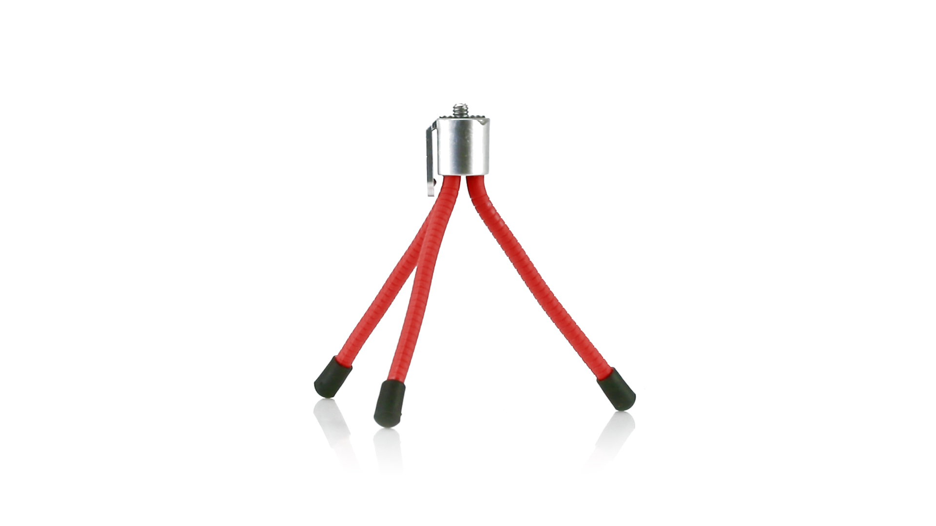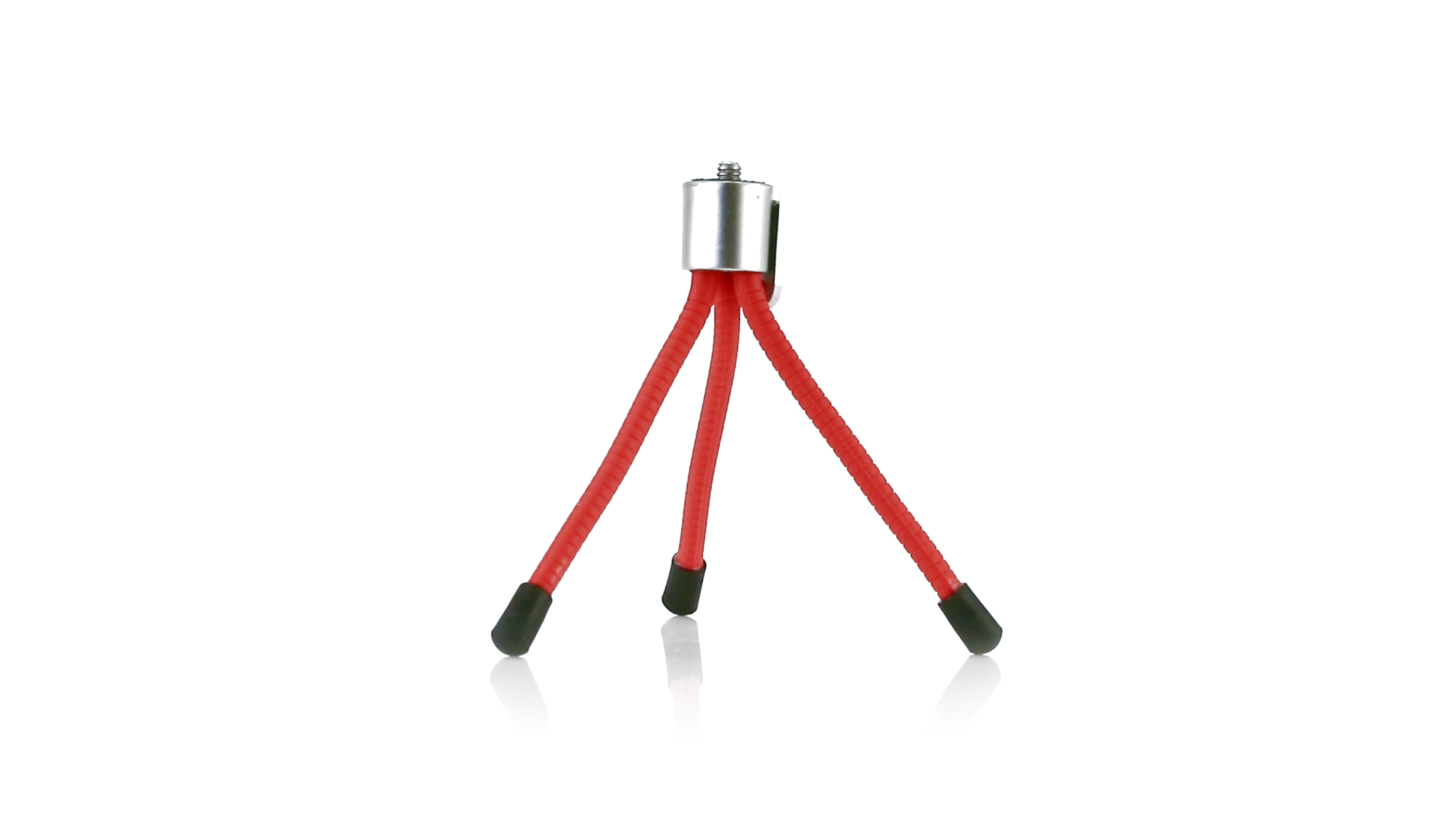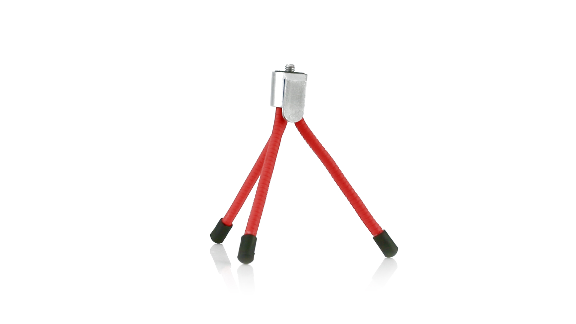 Stativ für Kameras mit universeller Einstellschraube und flexiblen Standfüssen mit rutschfester Gummierung für die Befestigung auf allen Arten von Oberflächen. Präsentiert in einer individuellen Box.