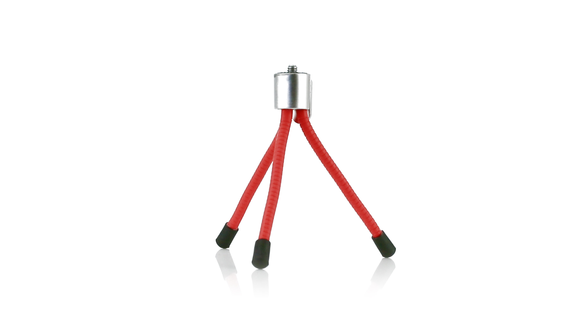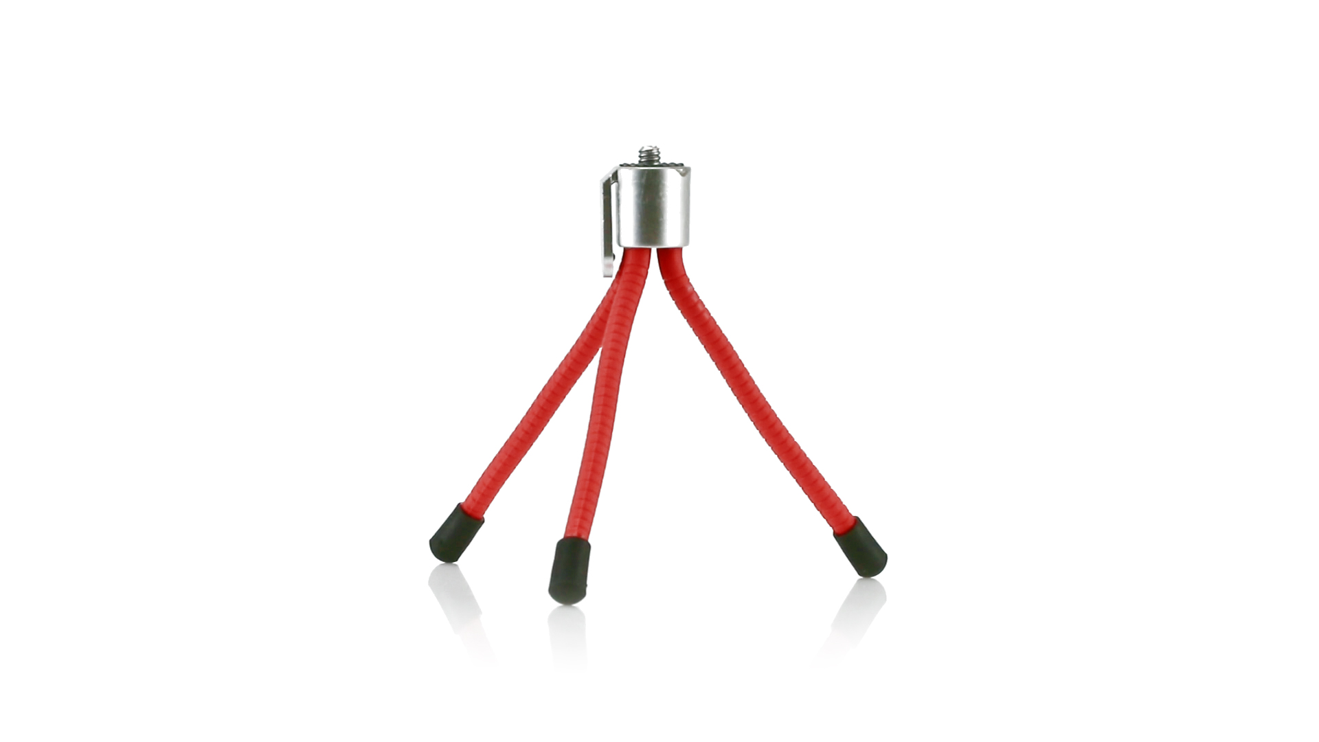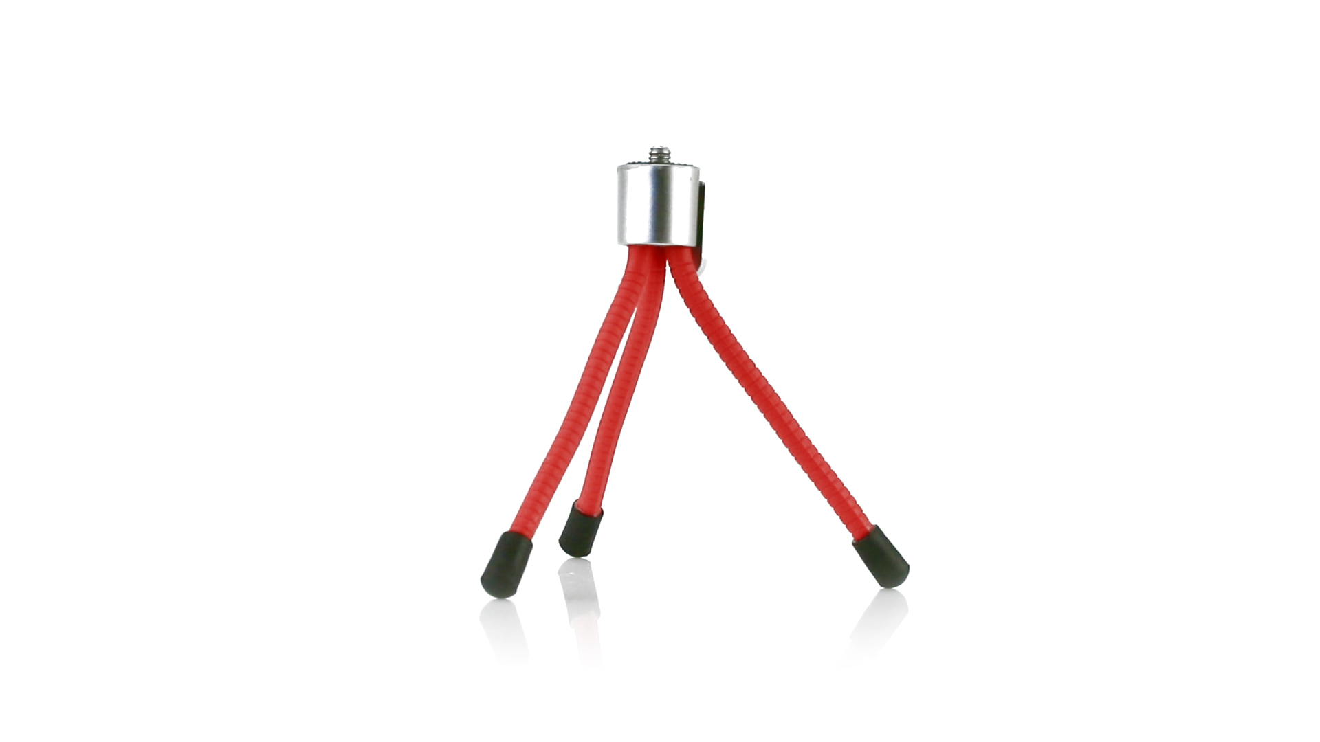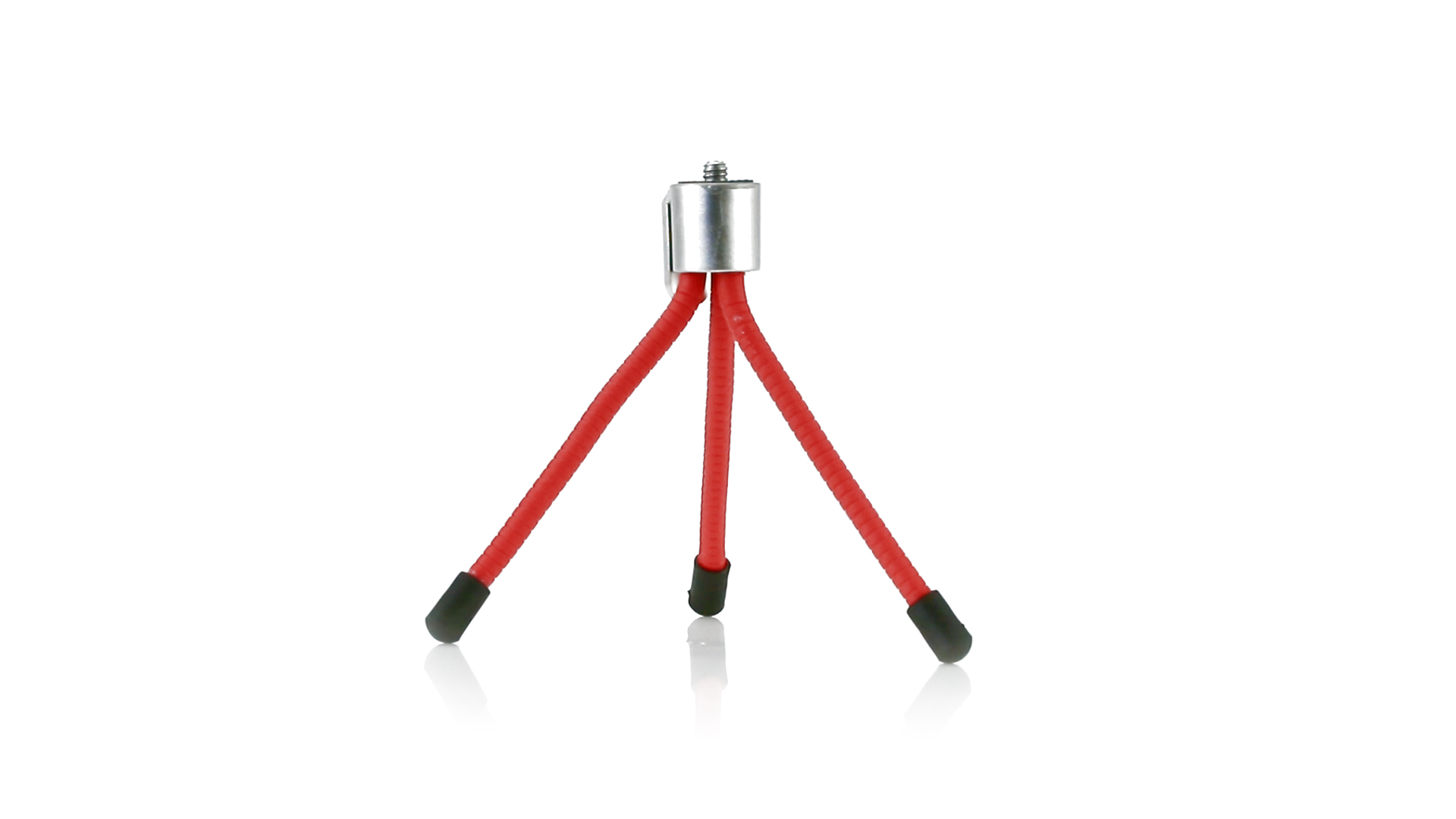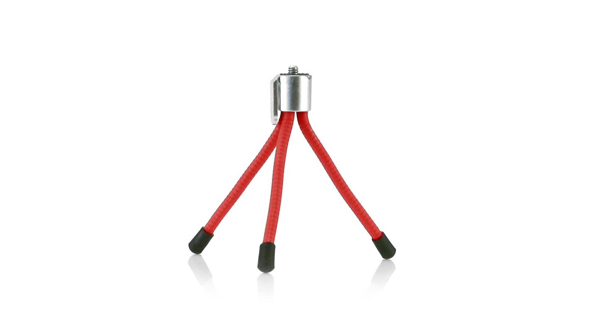 Stativ für Kameras mit universeller Einstellschraube und flexiblen Standfüssen mit rutschfester Gummierung für die Befestigung auf allen Arten von Oberflächen. Präsentiert in einer individuellen Box.
