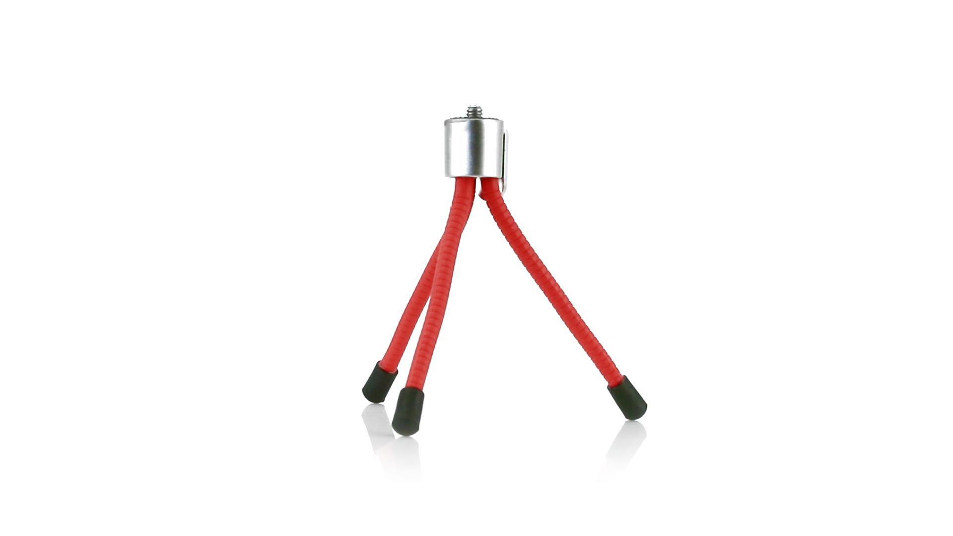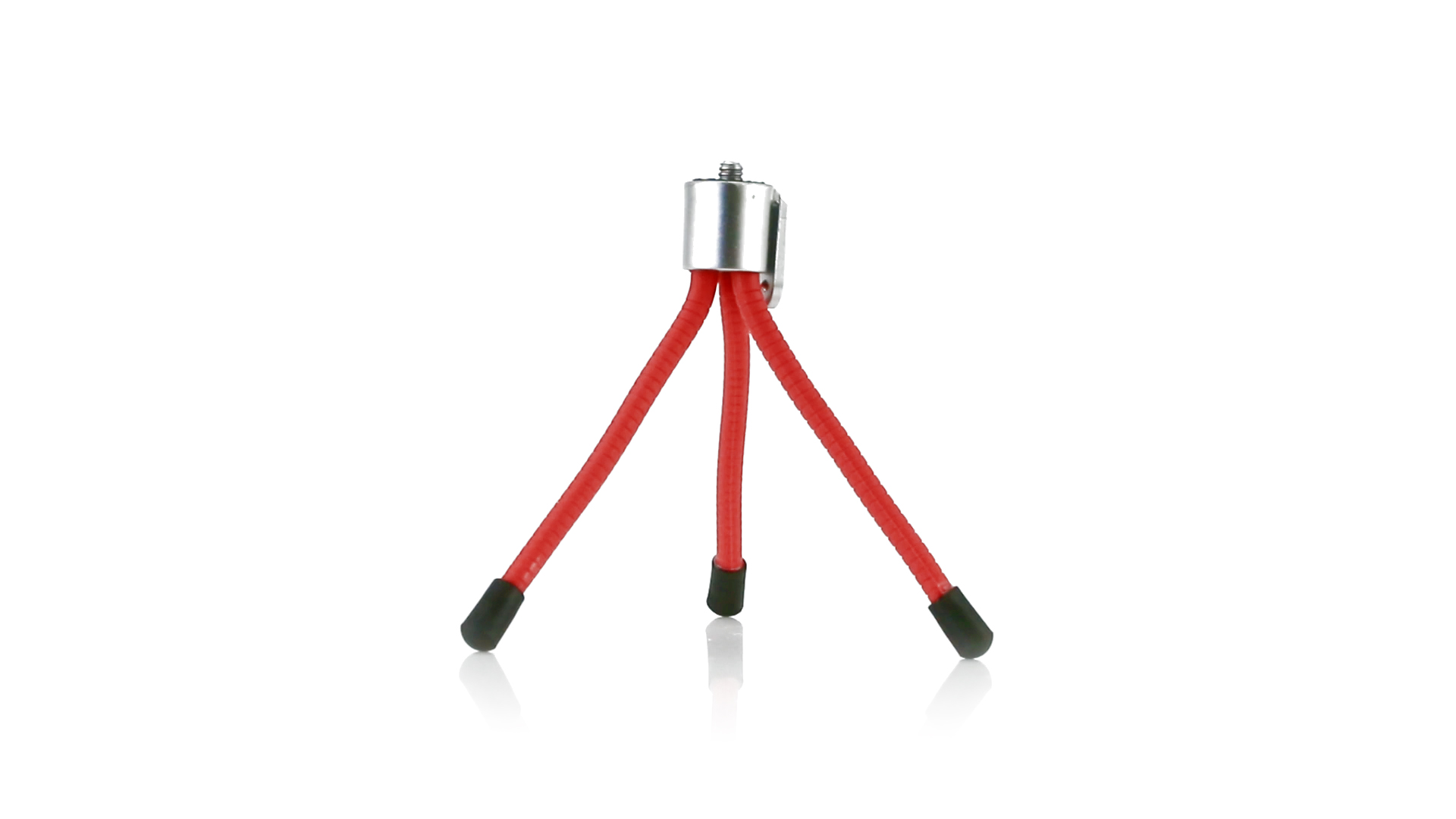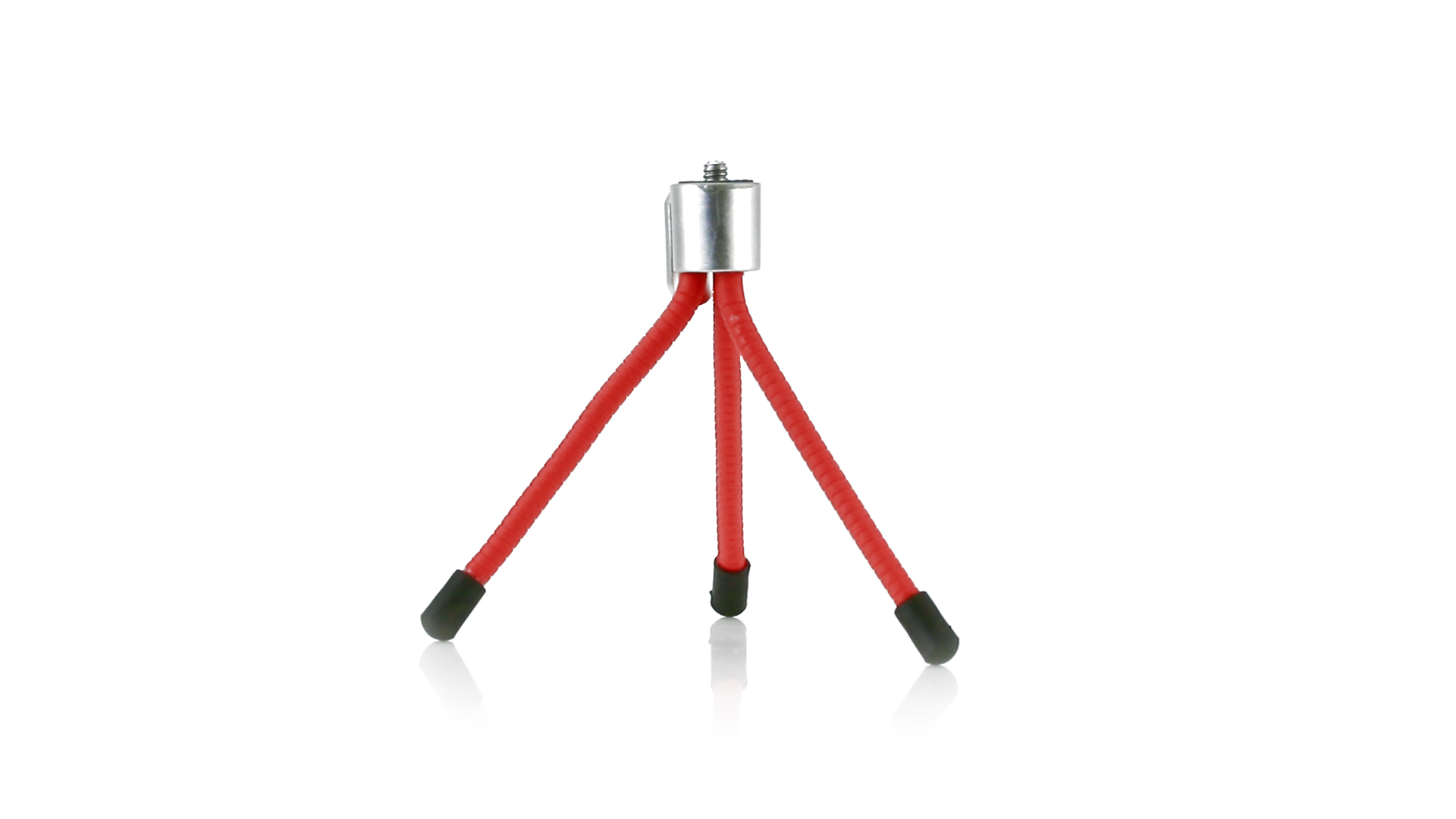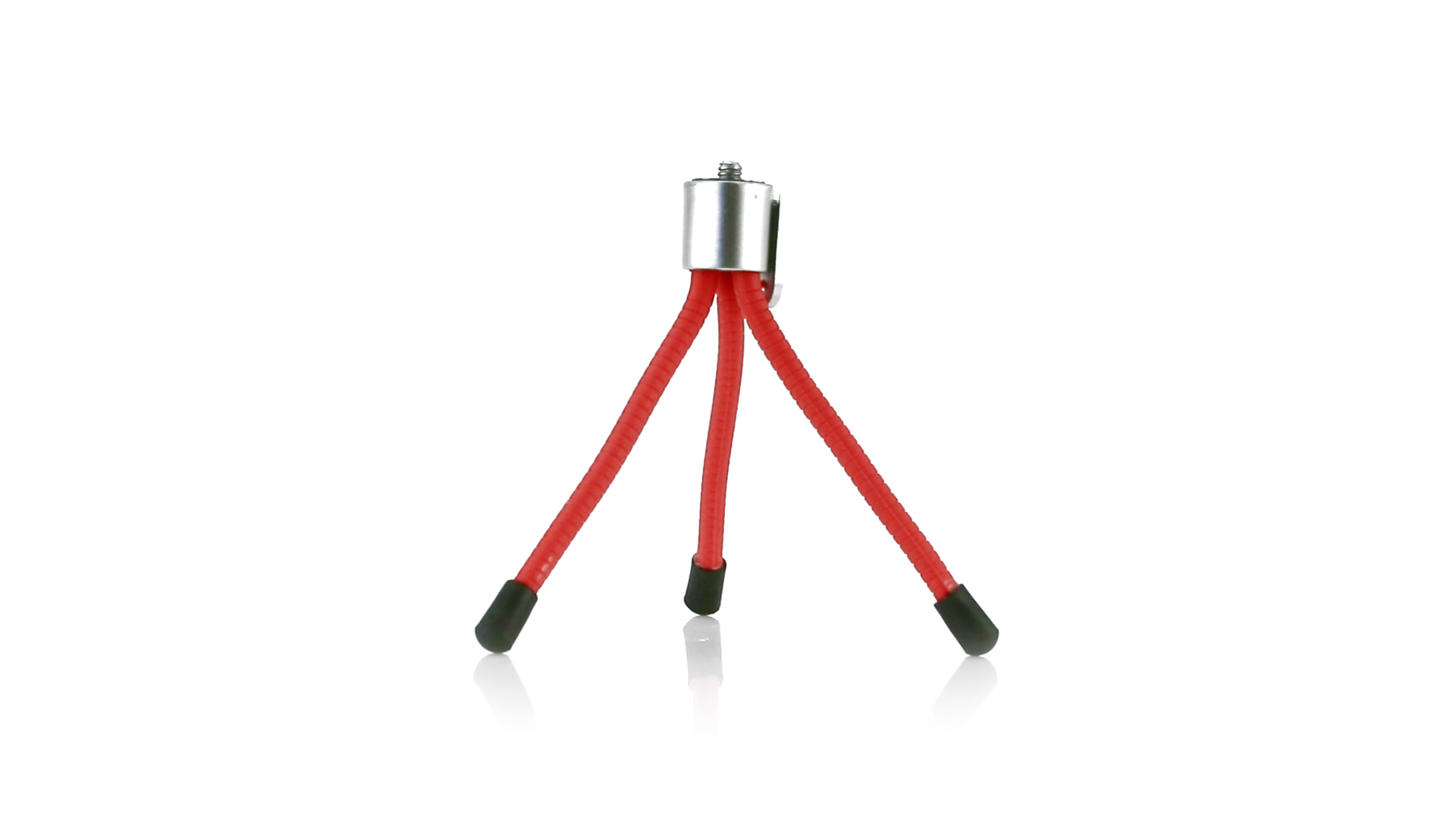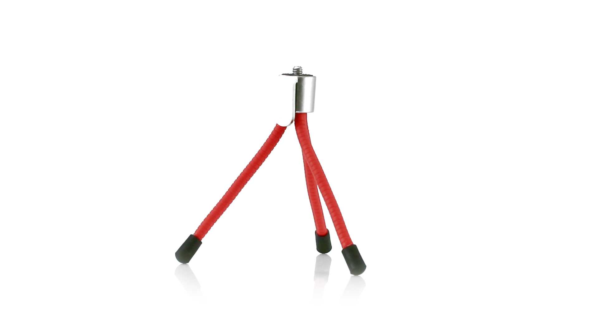 Stativ für Kameras mit universeller Einstellschraube und flexiblen Standfüssen mit rutschfester Gummierung für die Befestigung auf allen Arten von Oberflächen. Präsentiert in einer individuellen Box.