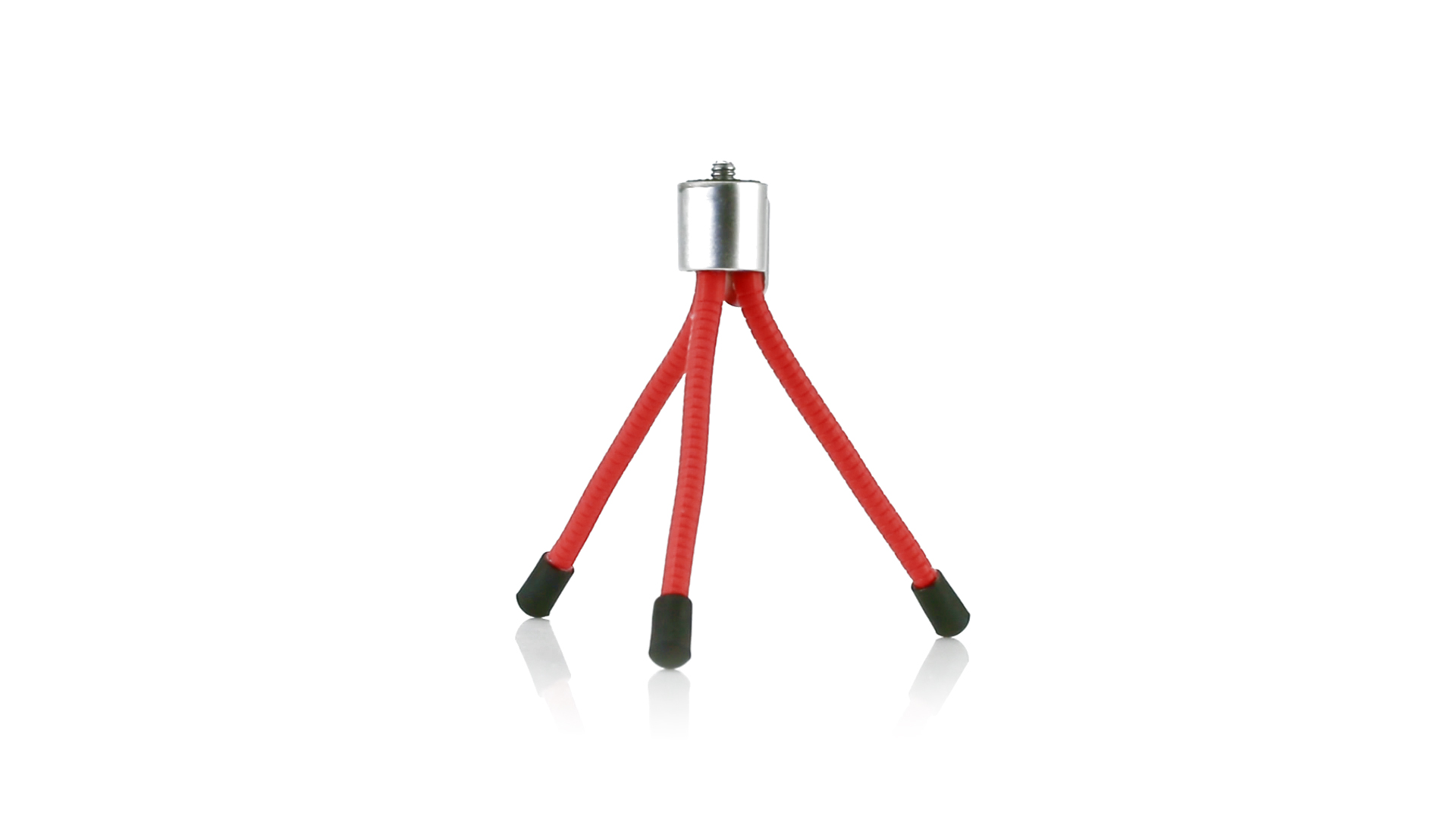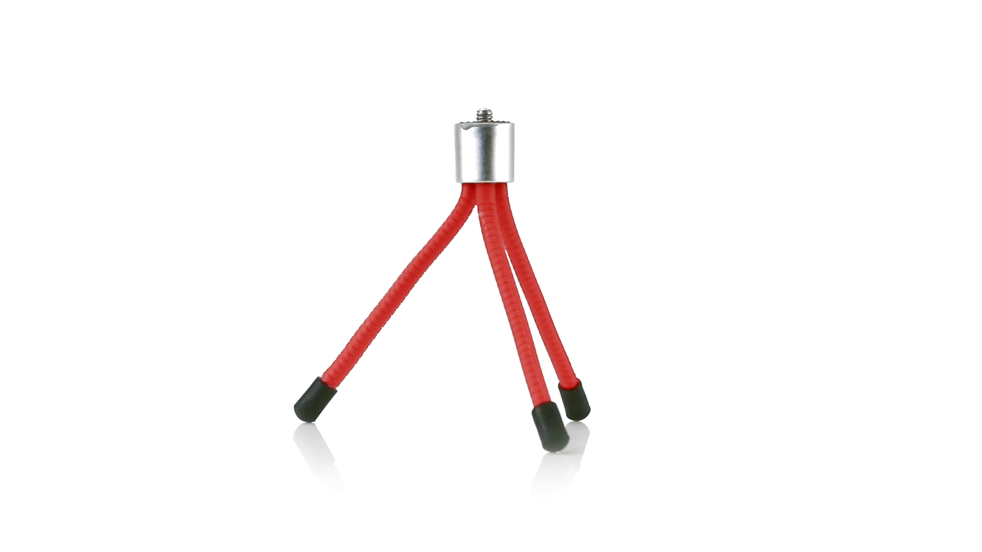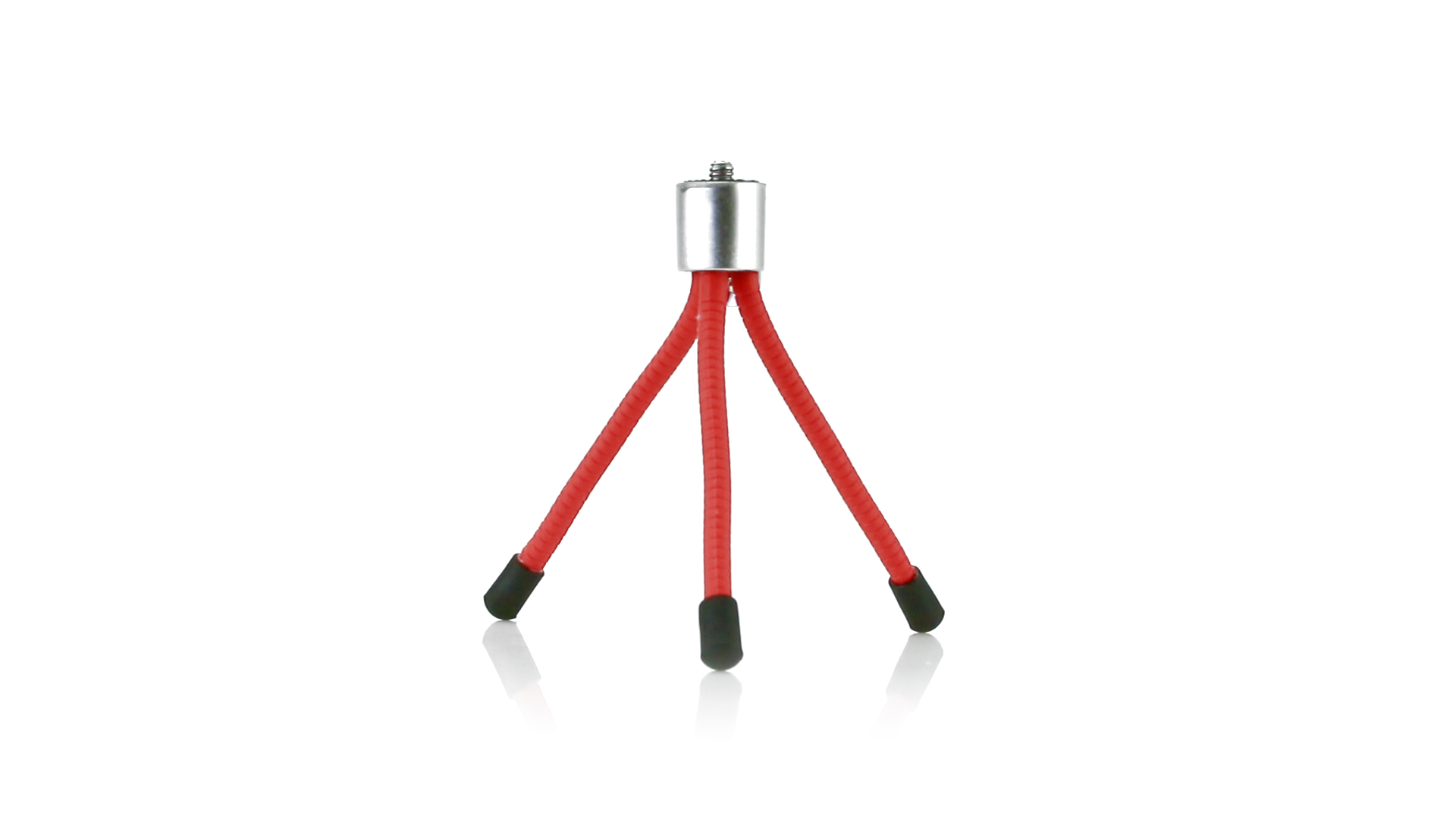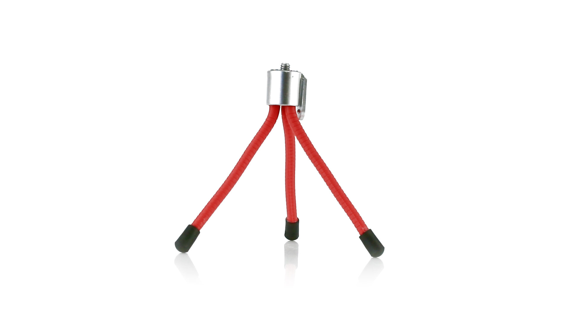 Stativ für Kameras mit universeller Einstellschraube und flexiblen Standfüssen mit rutschfester Gummierung für die Befestigung auf allen Arten von Oberflächen. Präsentiert in einer individuellen Box.